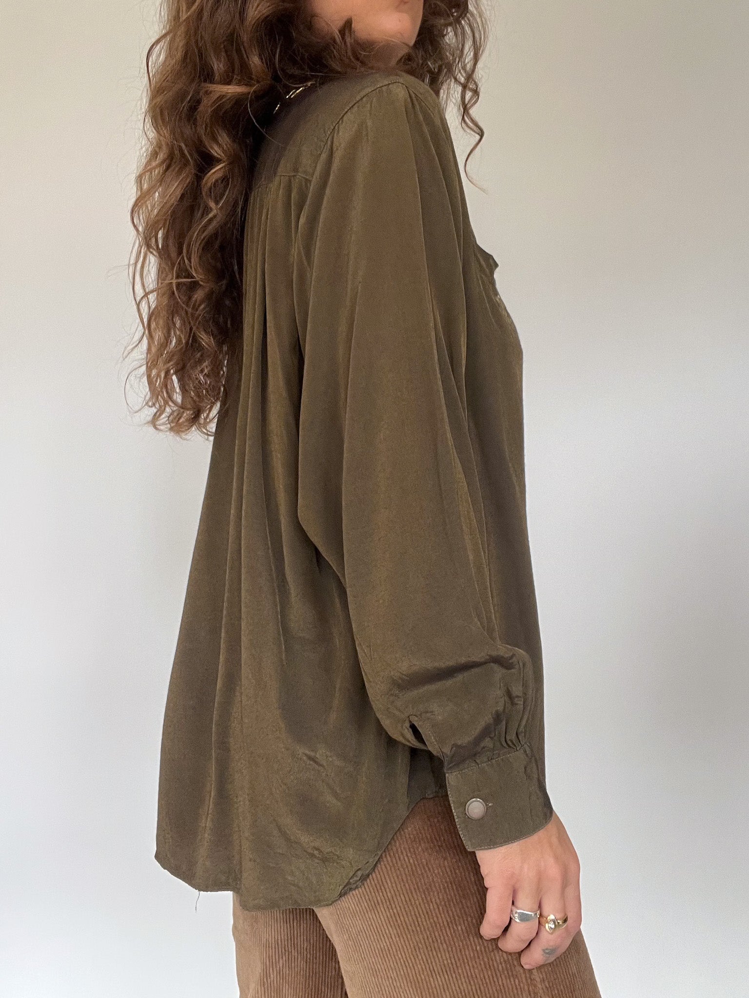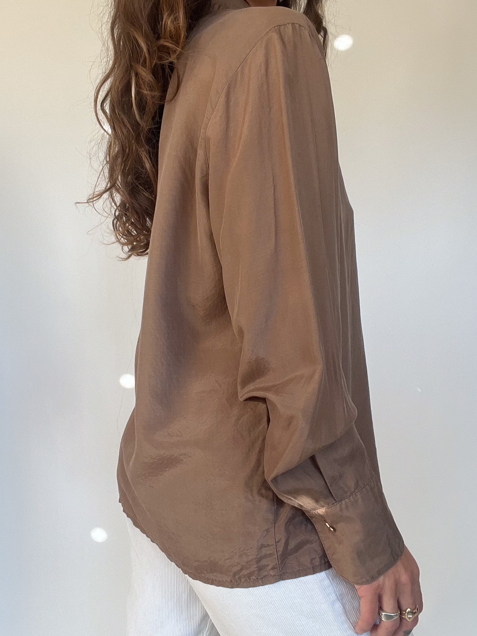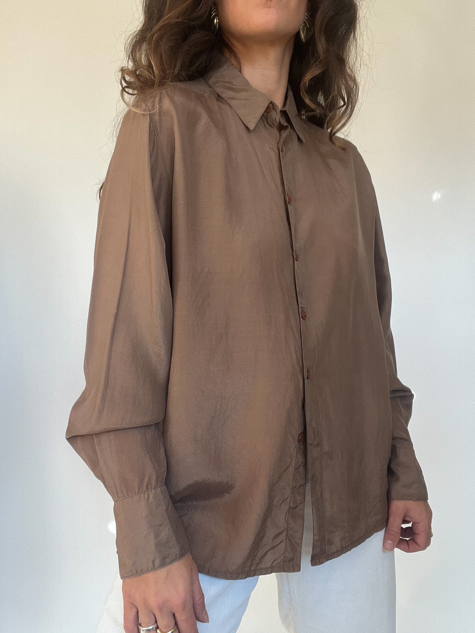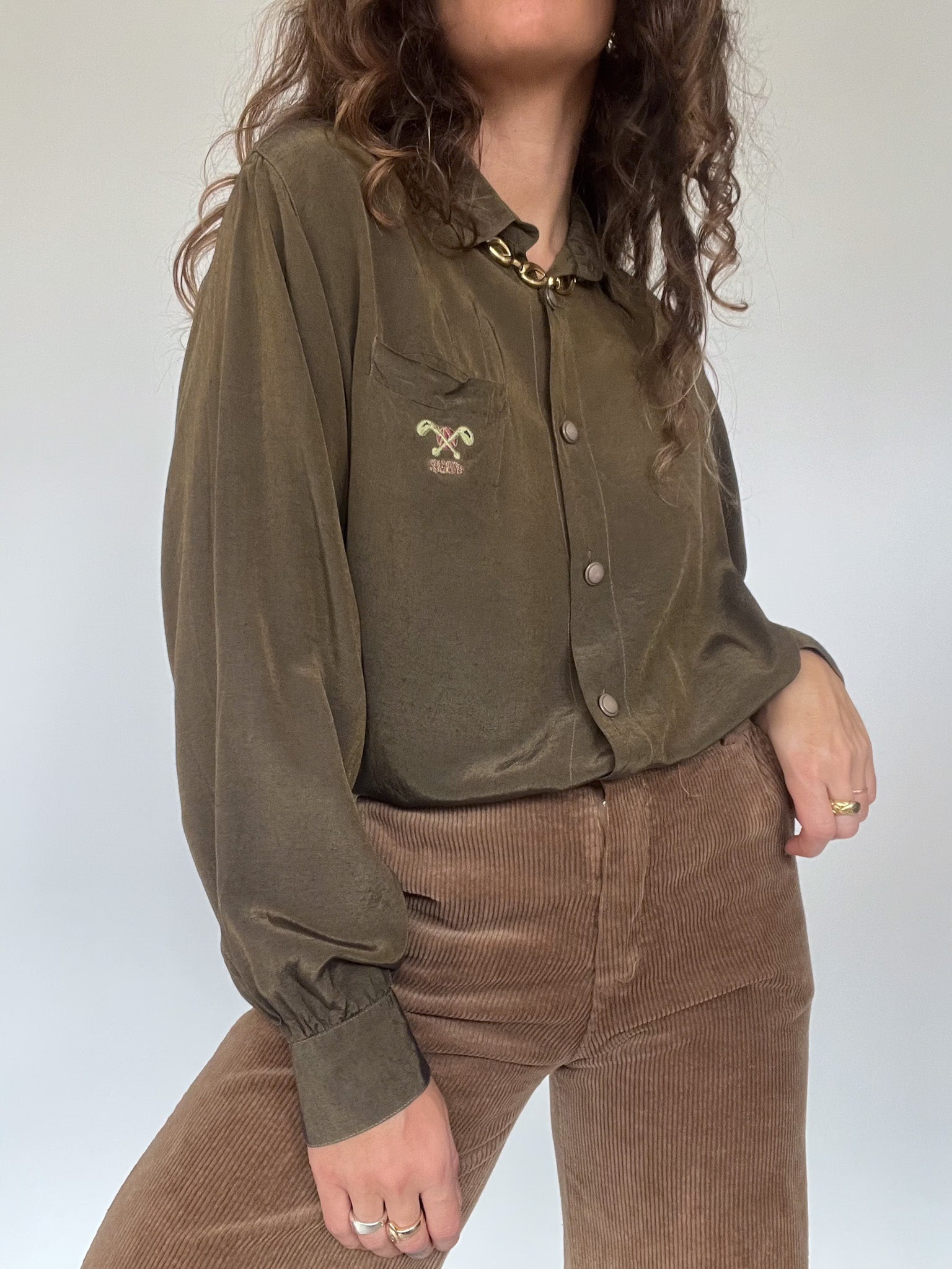 Vintage 80’s Khaki Satin Button-Up Shirt