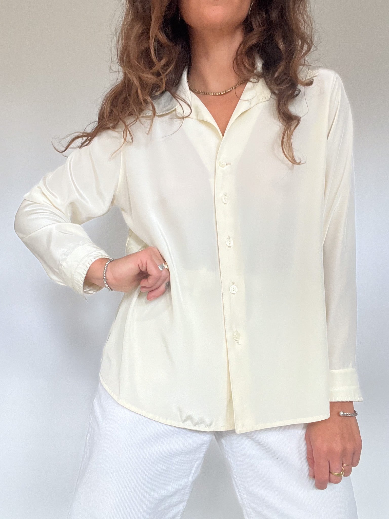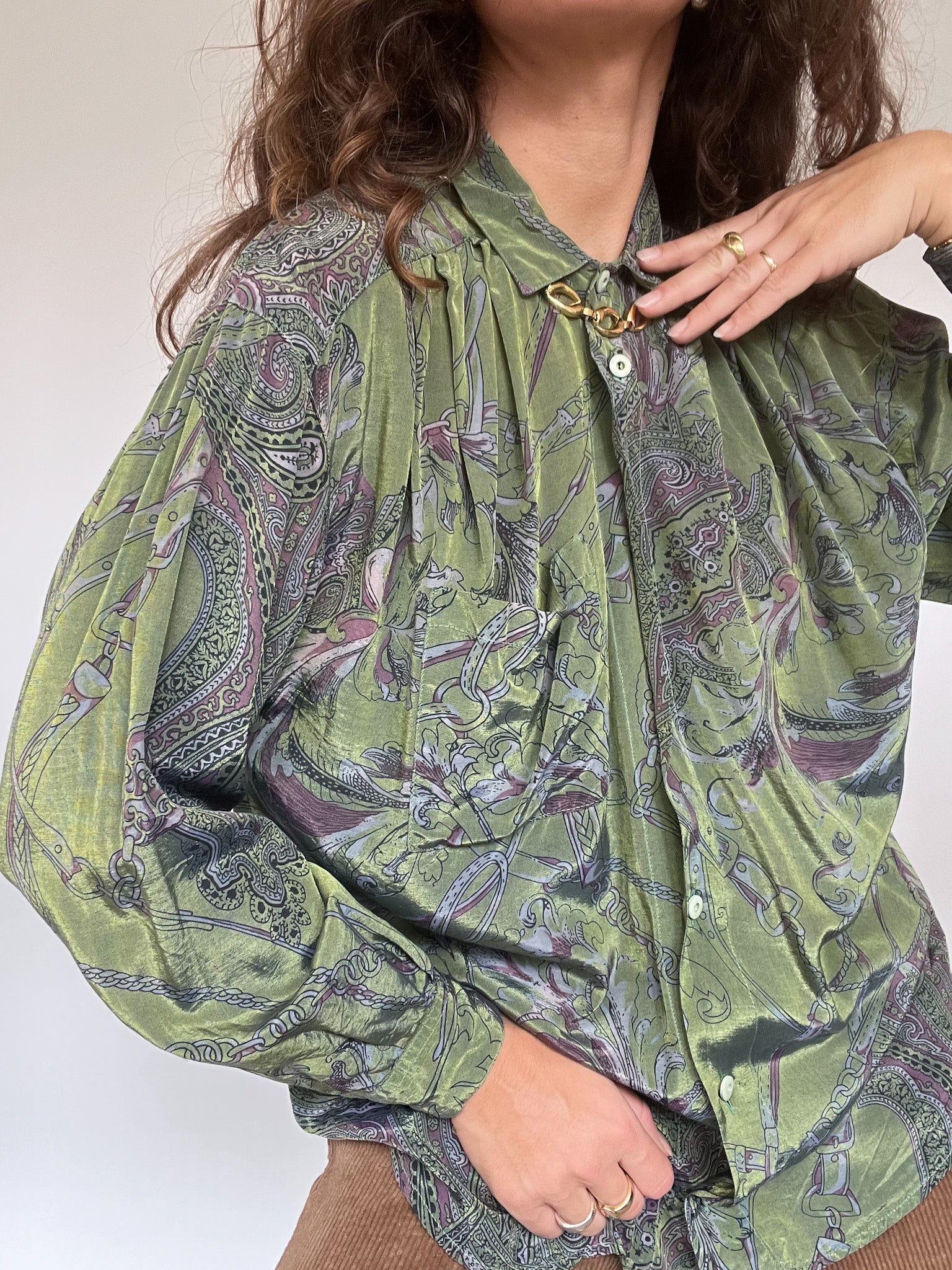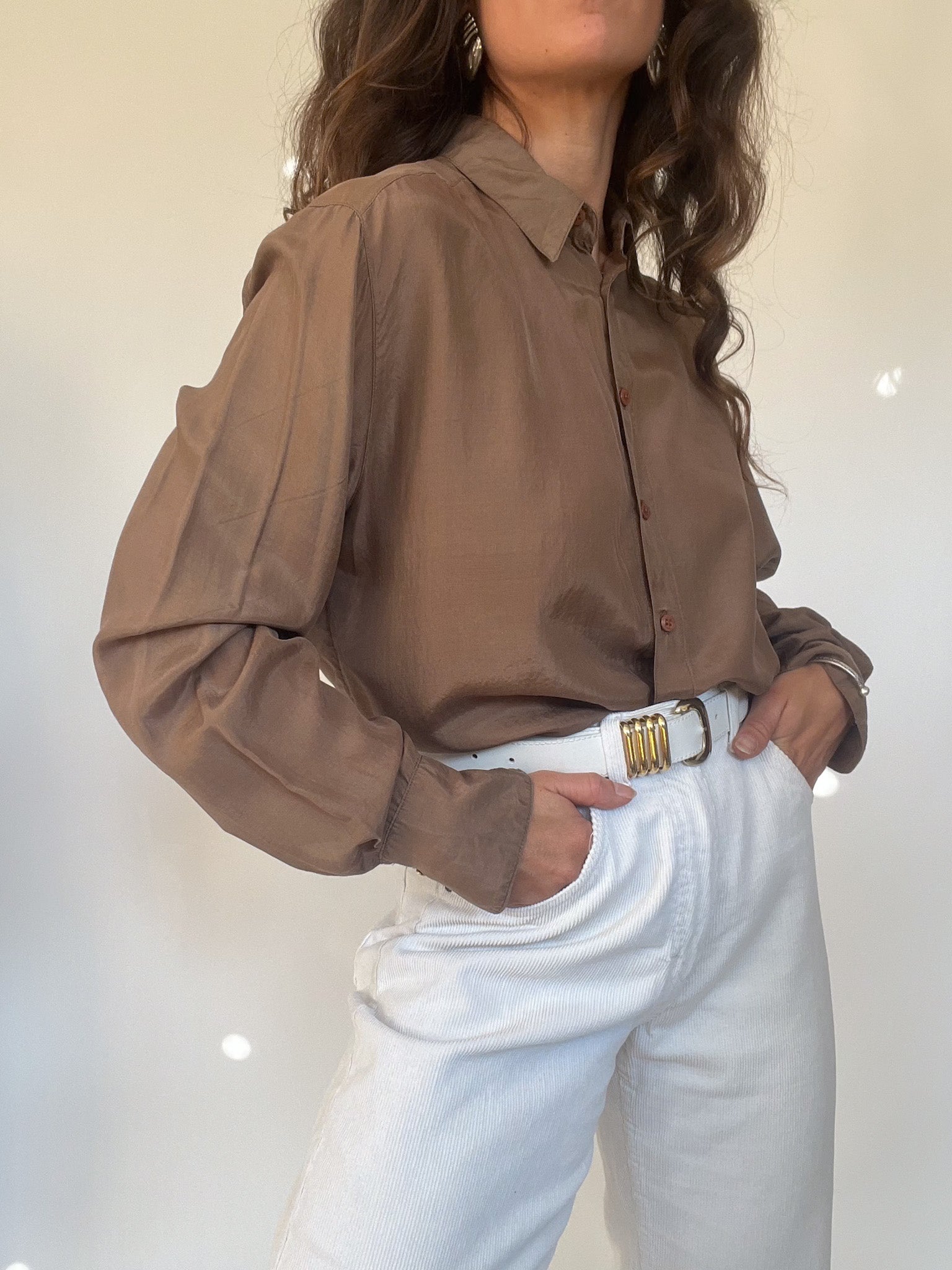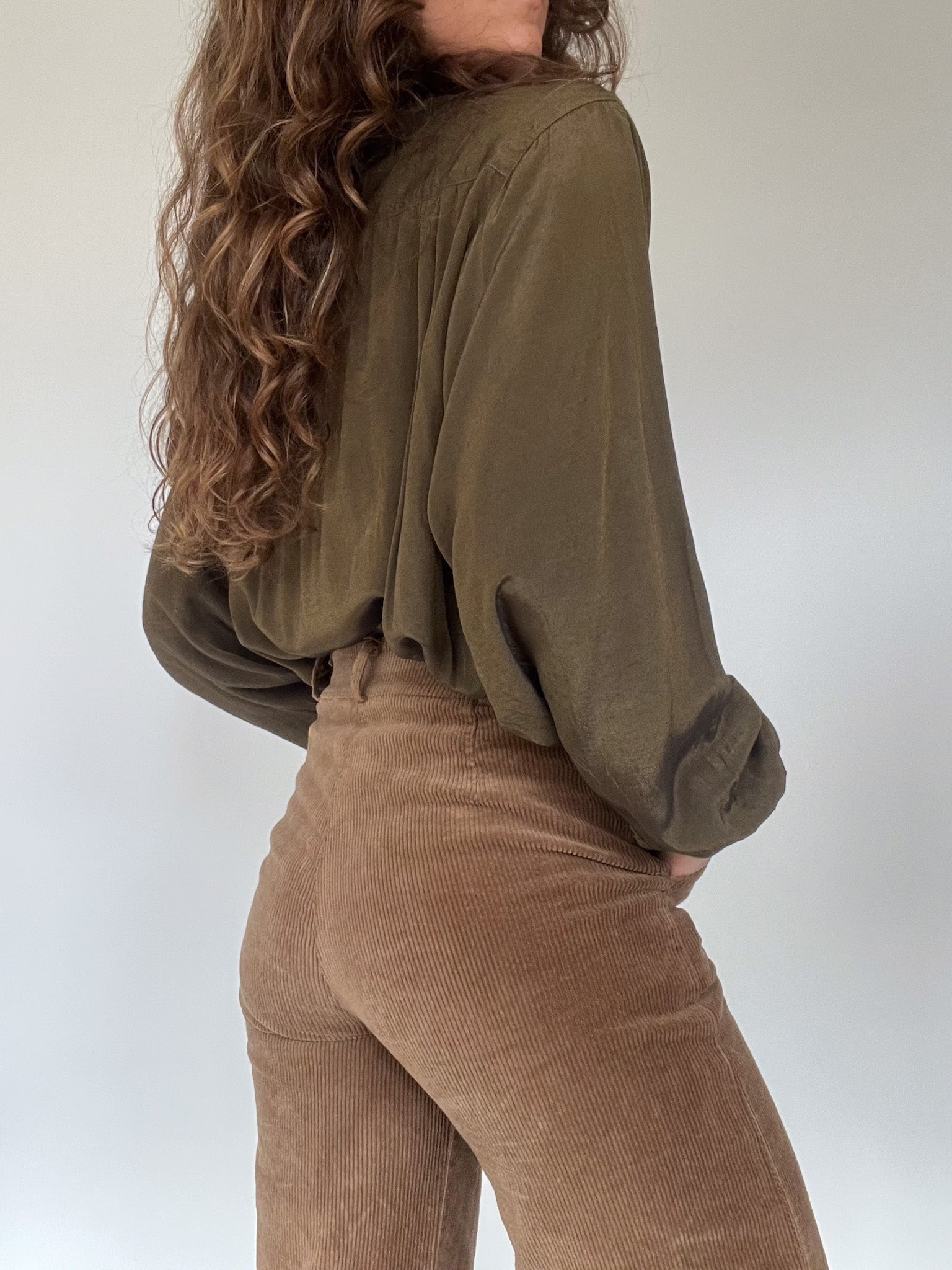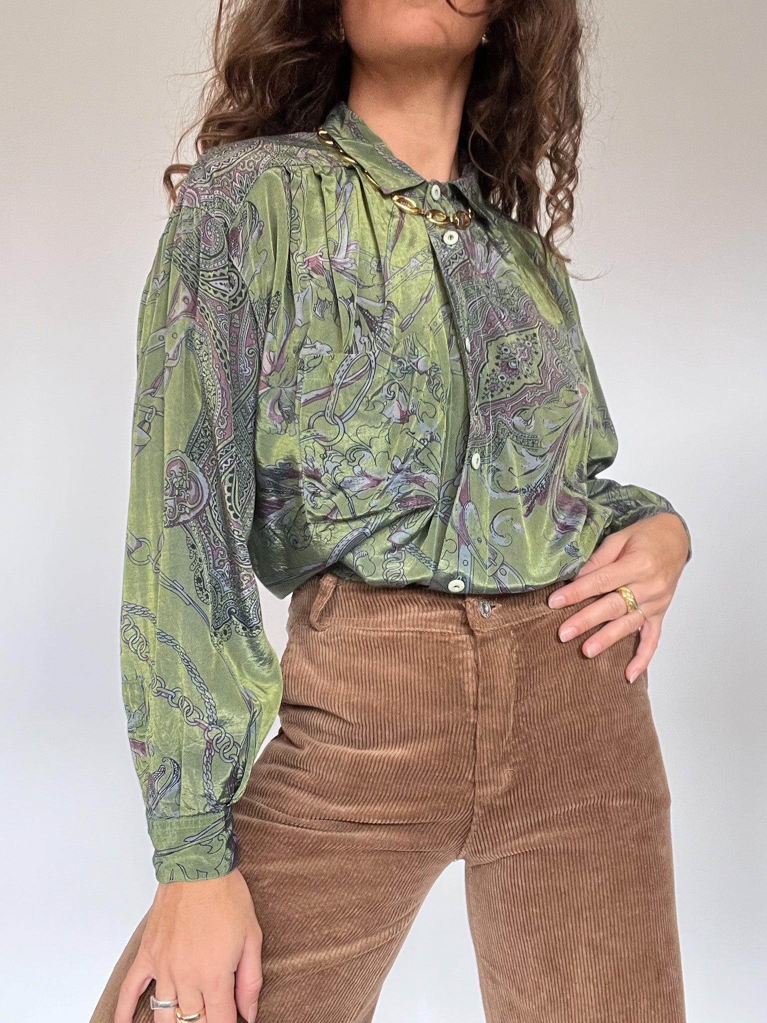 Vintage 80’s Khaki Satin Button-Up Shirt
