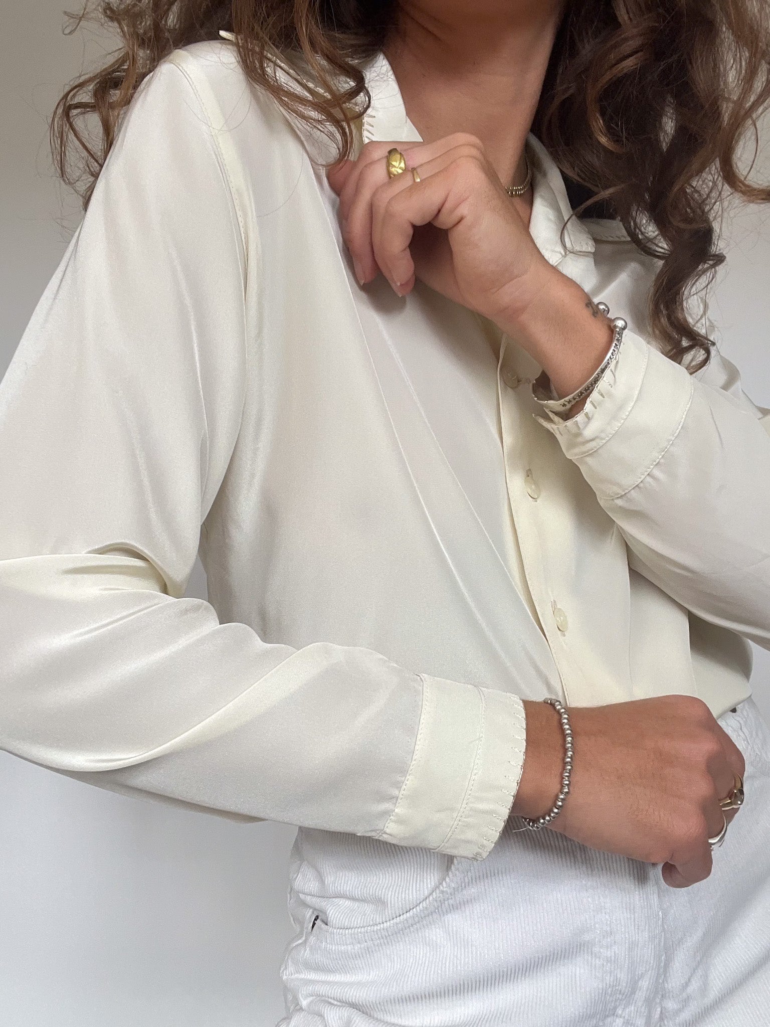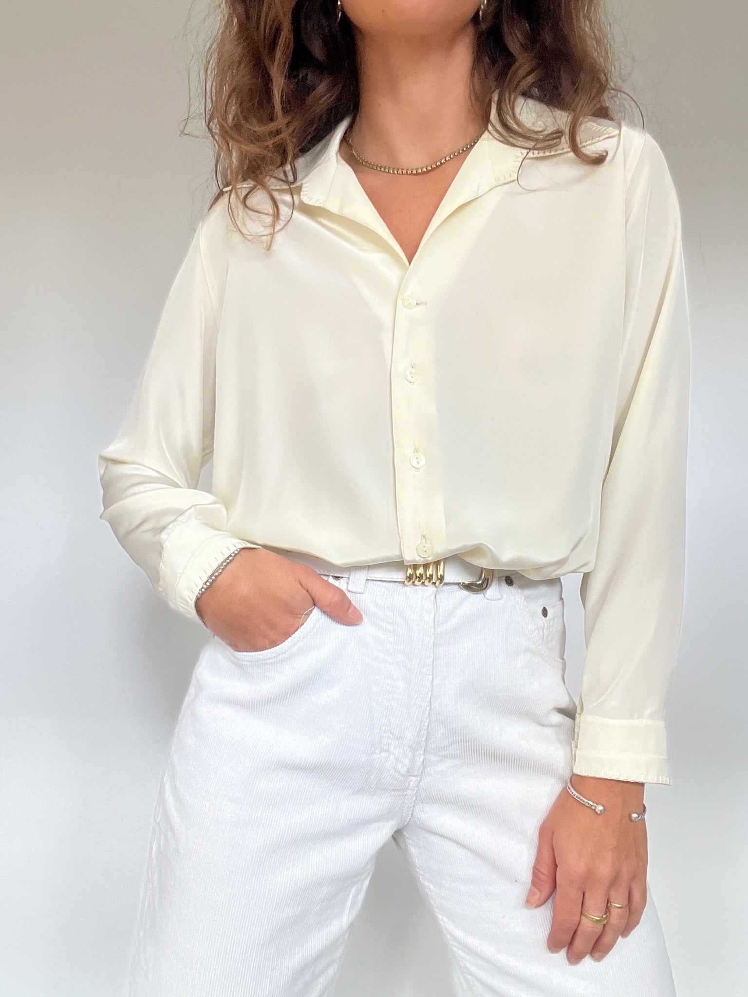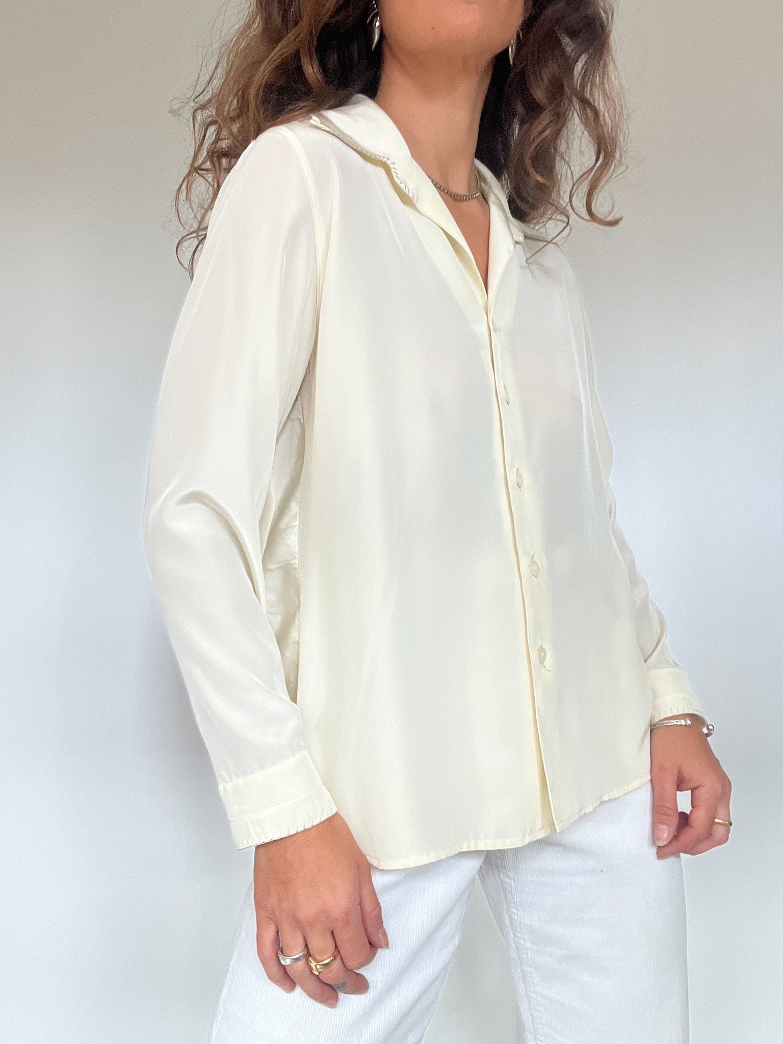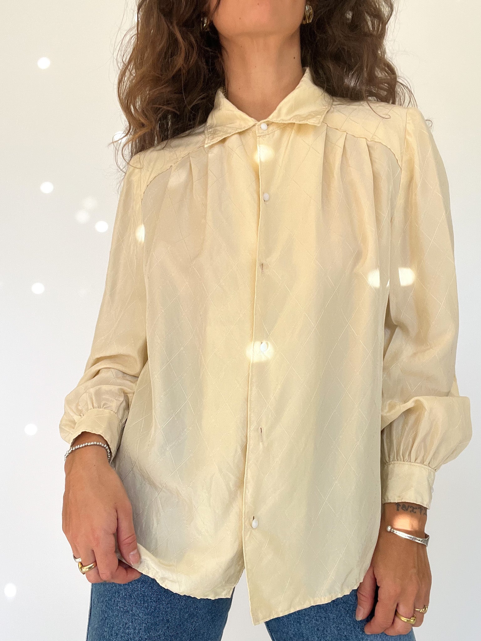 Vintage 80’s Khaki Satin Button-Up Shirt