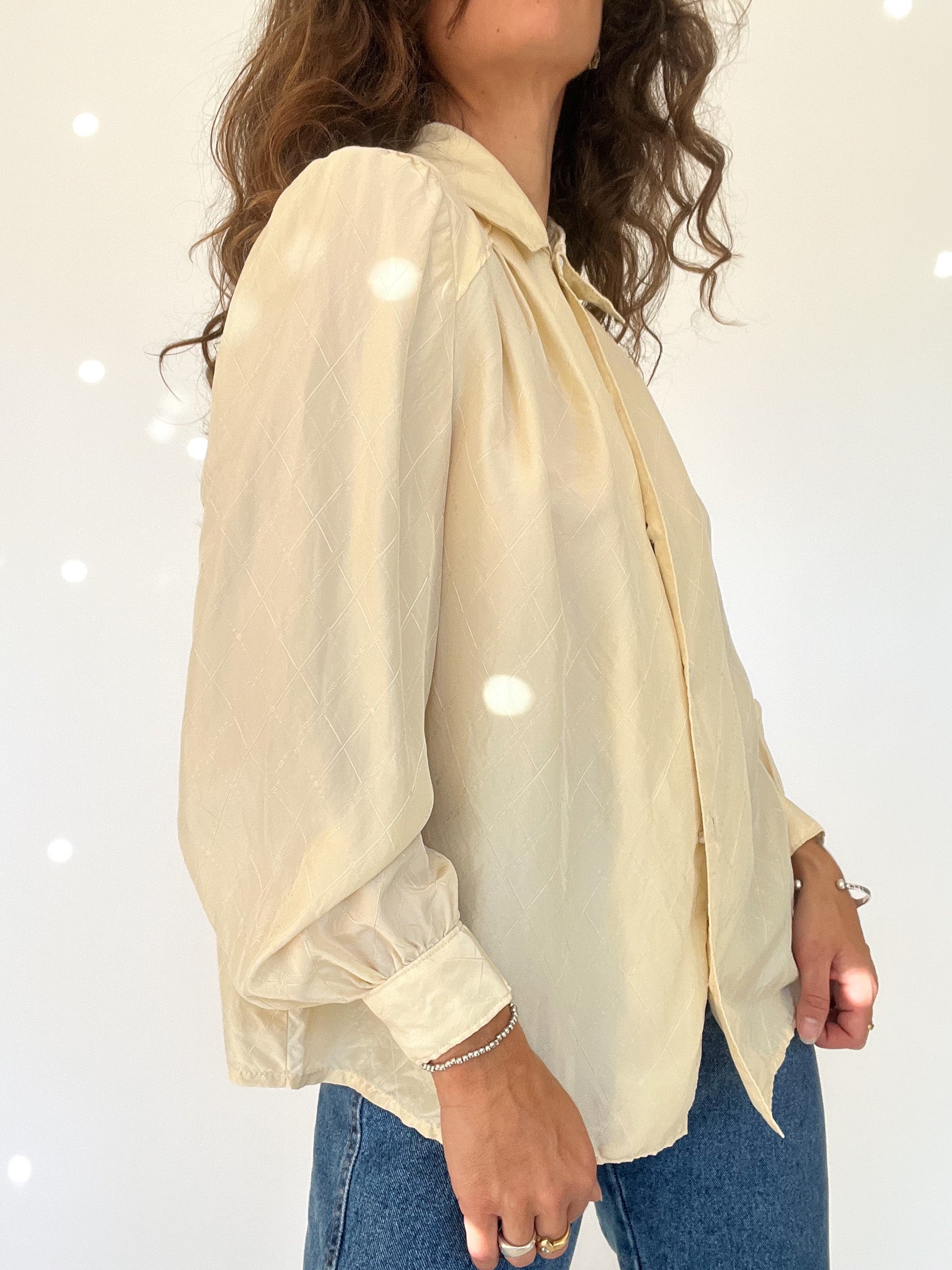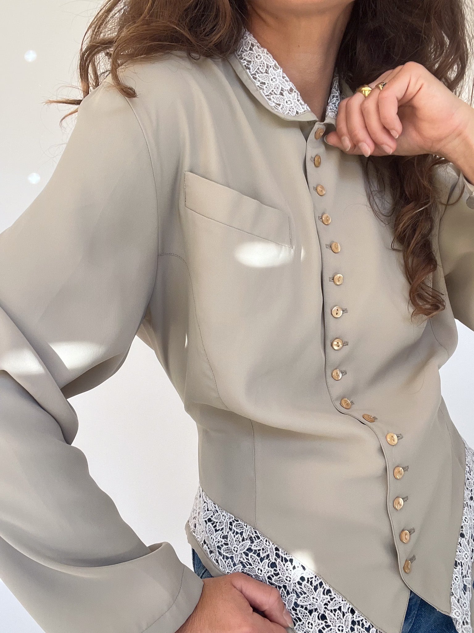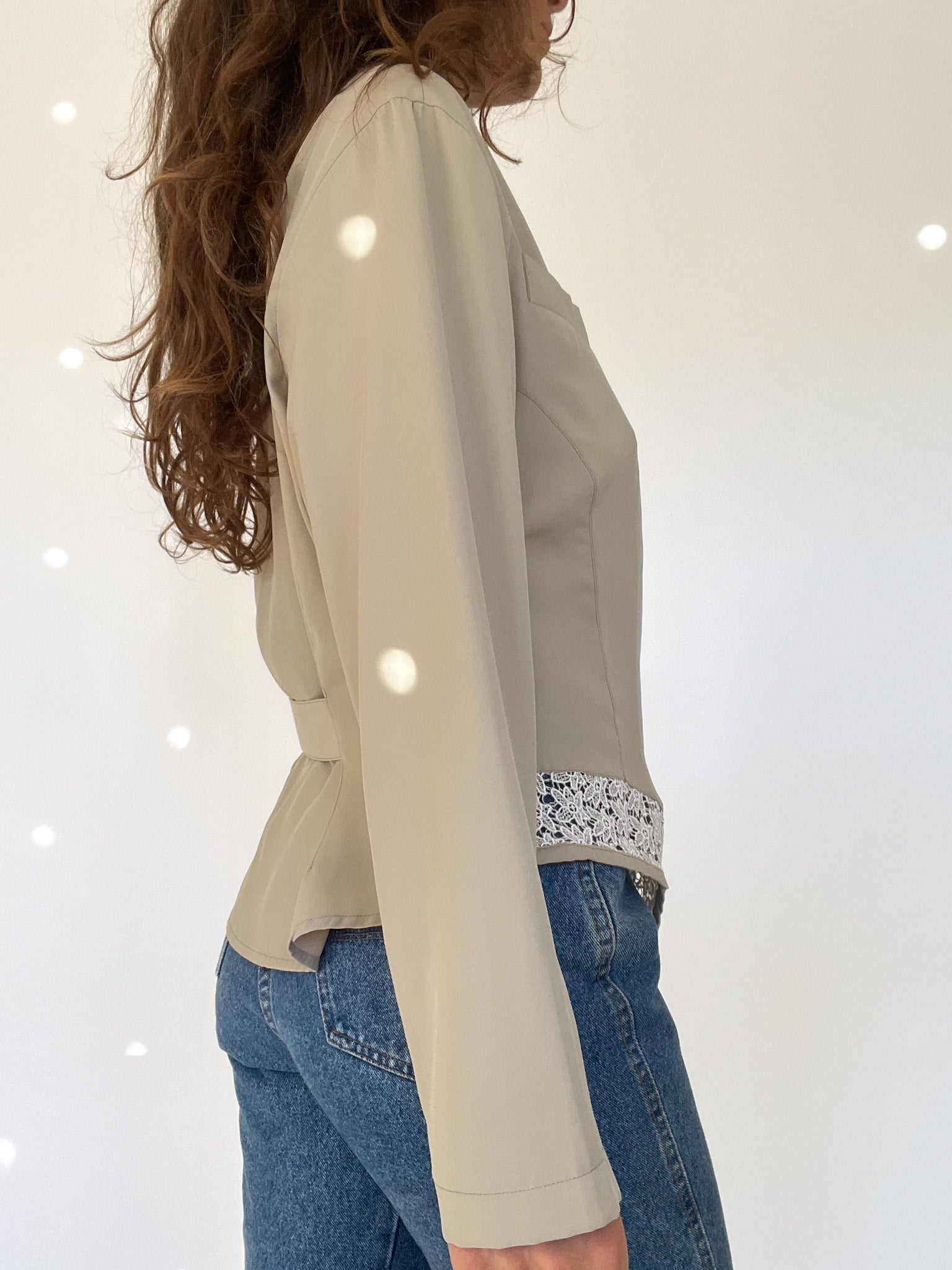 Vintage 80’s Beige Fitted Blouse with Lace Trim