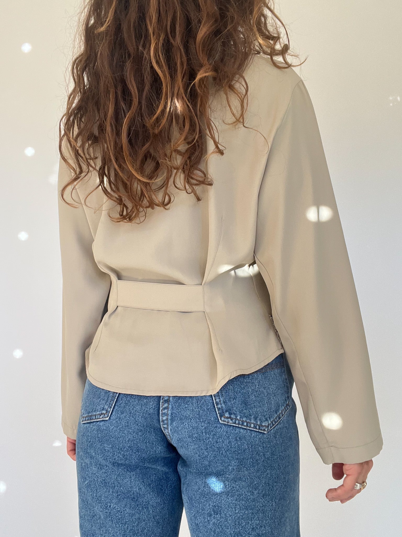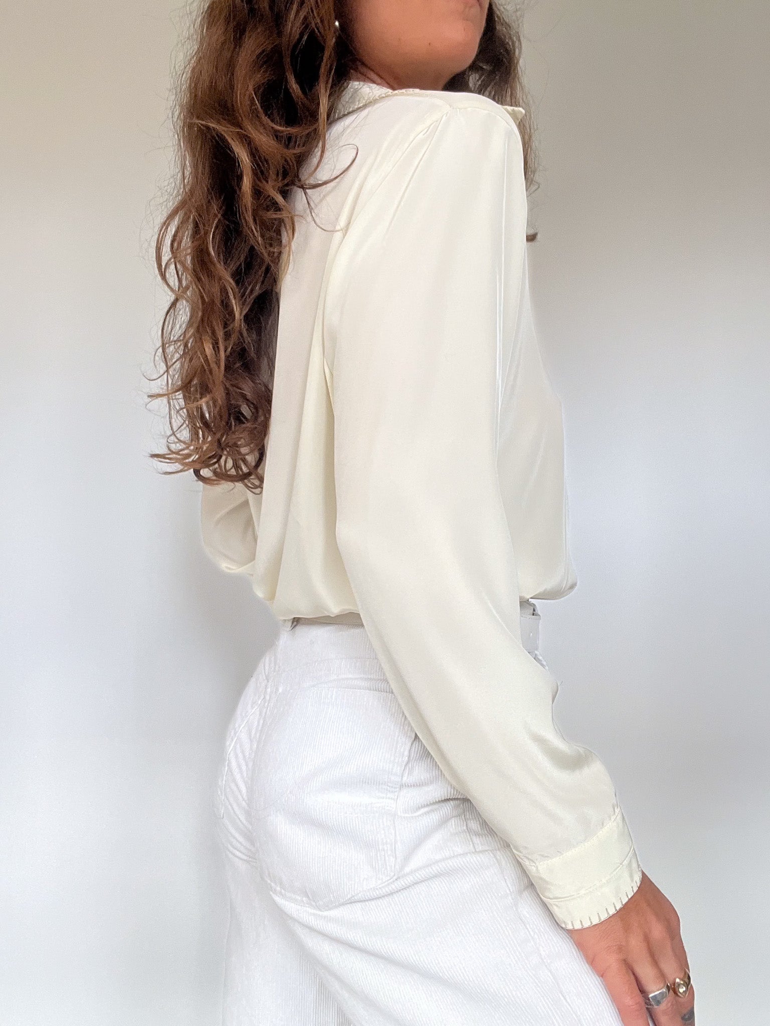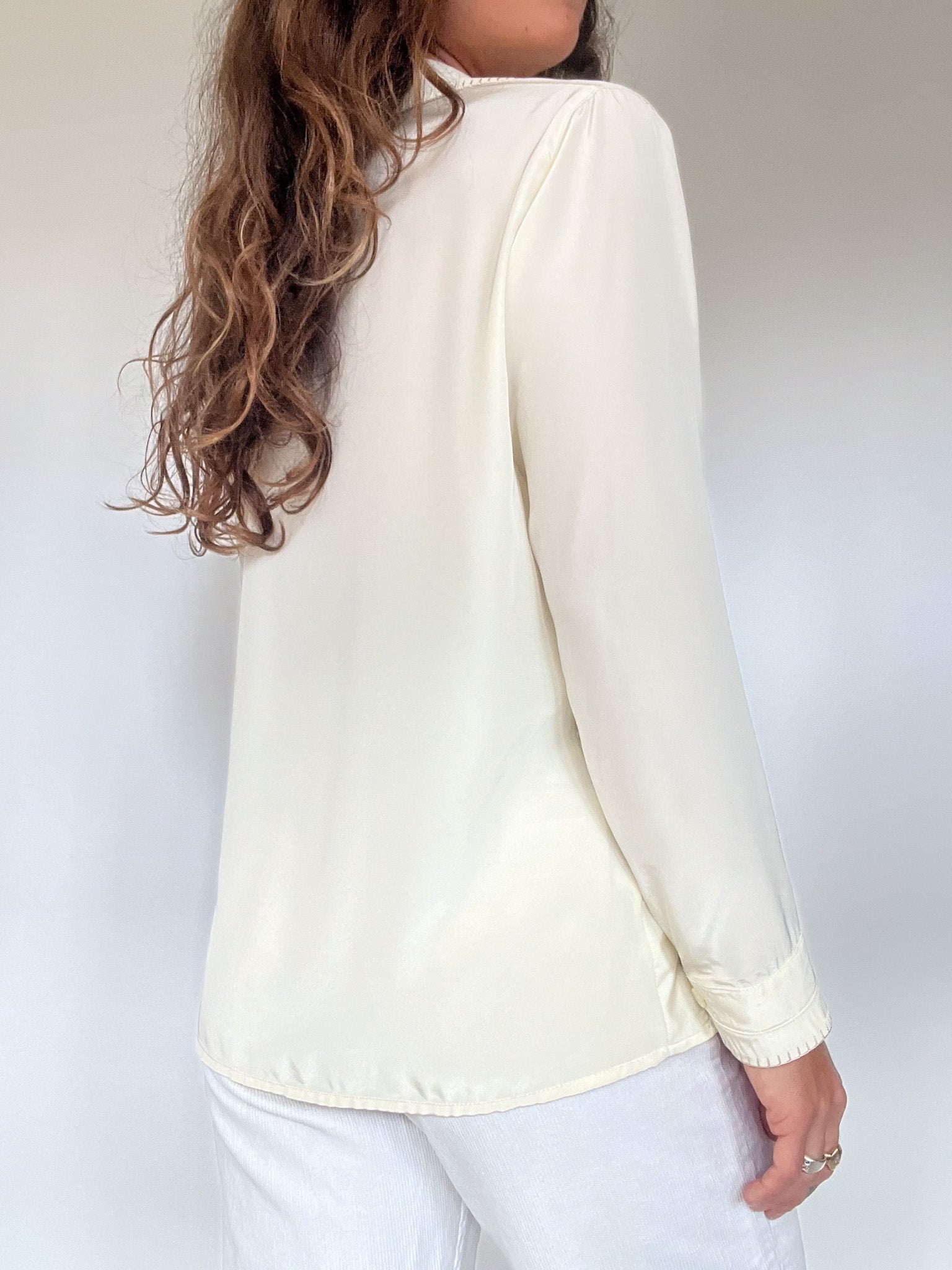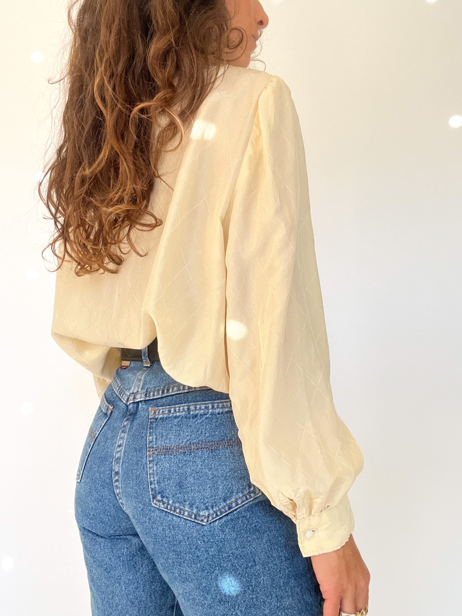 Vintage 80’s Beige Fitted Blouse with Lace Trim