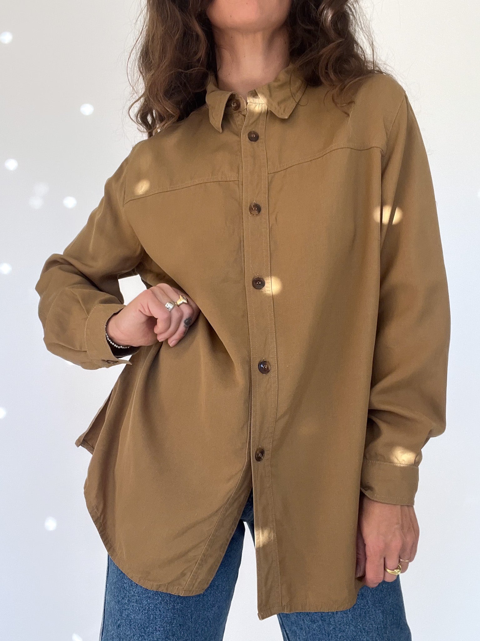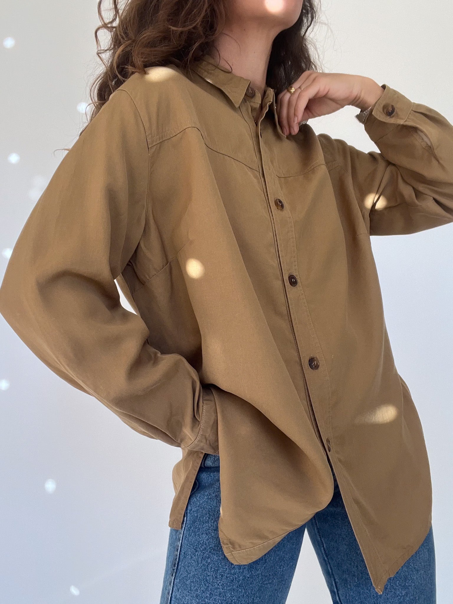 Vintage 90’s Camel Oversized Button-Up Shirt