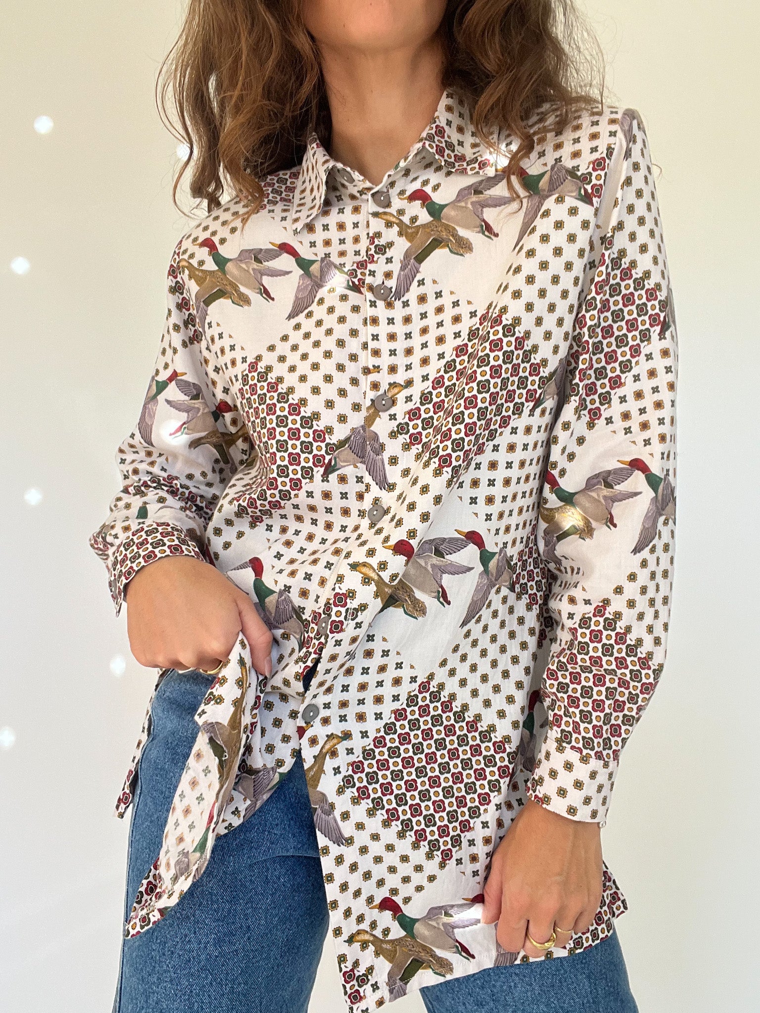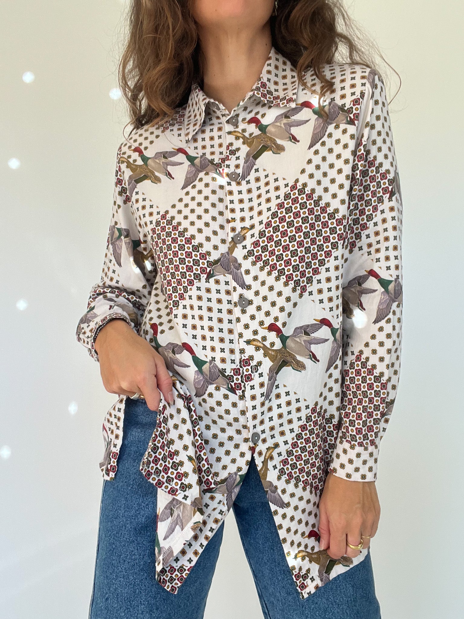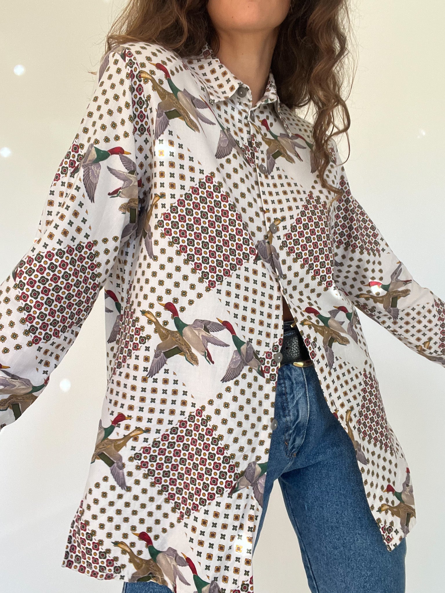 Vintage 90’s White & Multicolor Duck Print Shirt