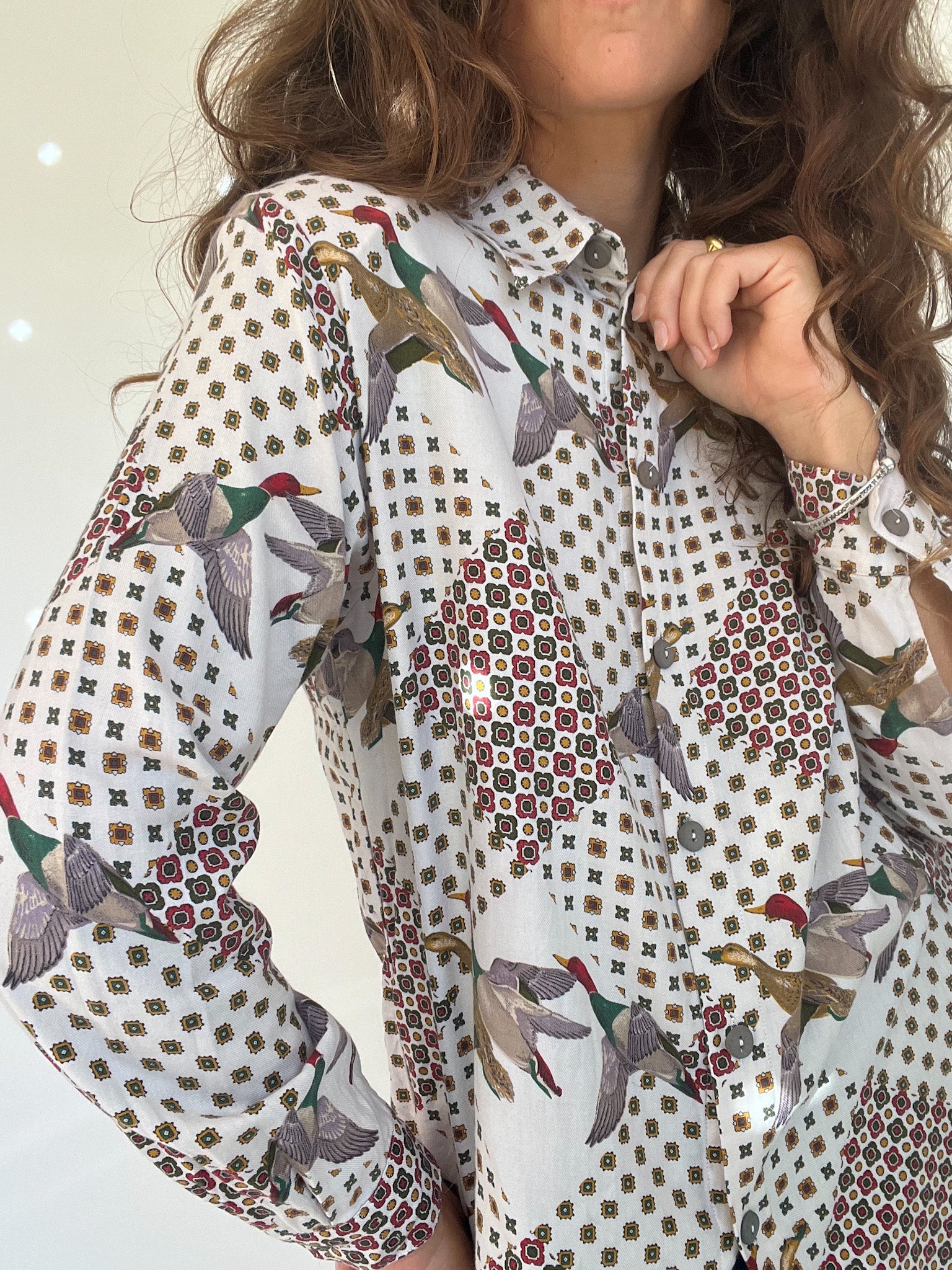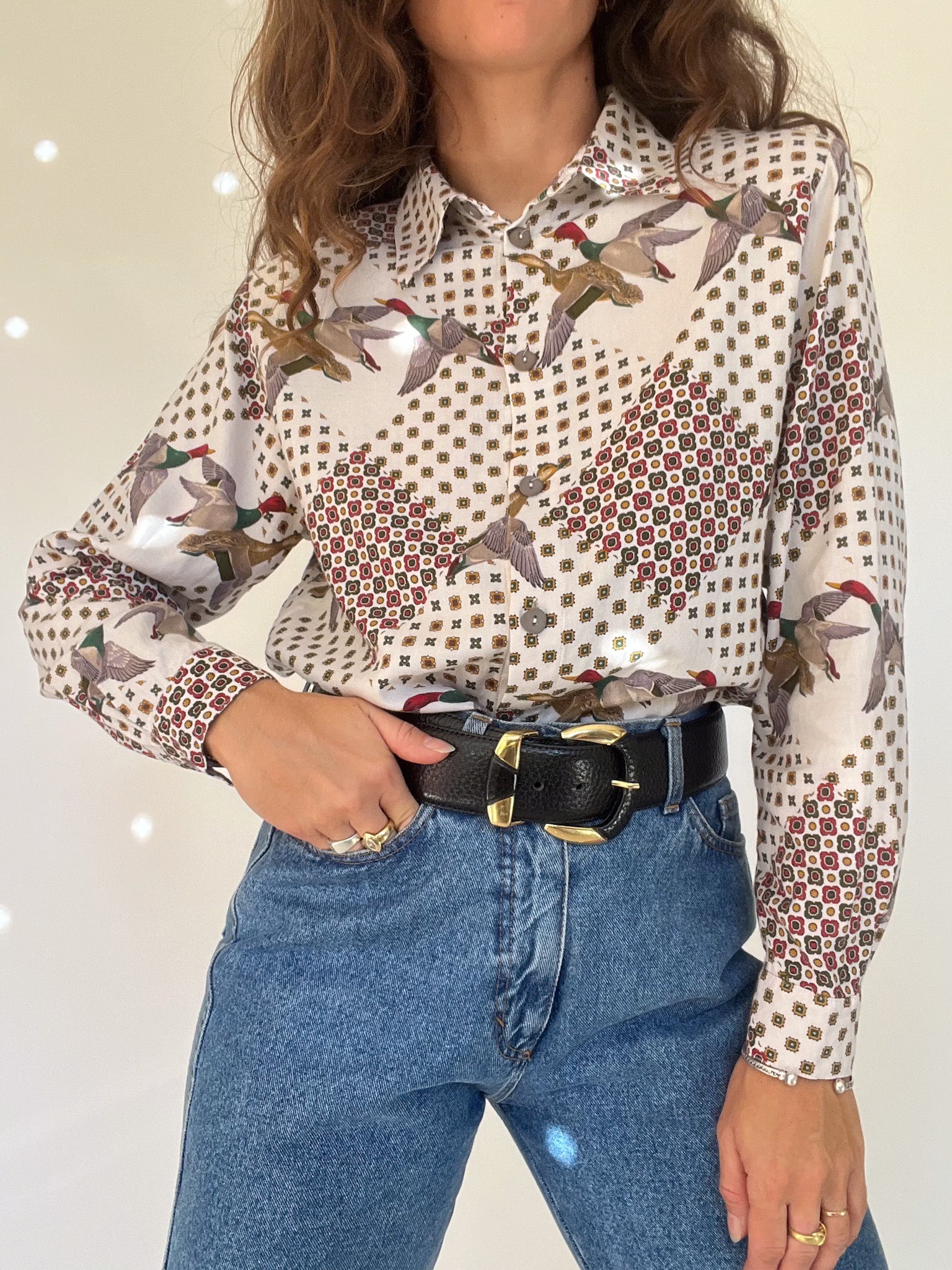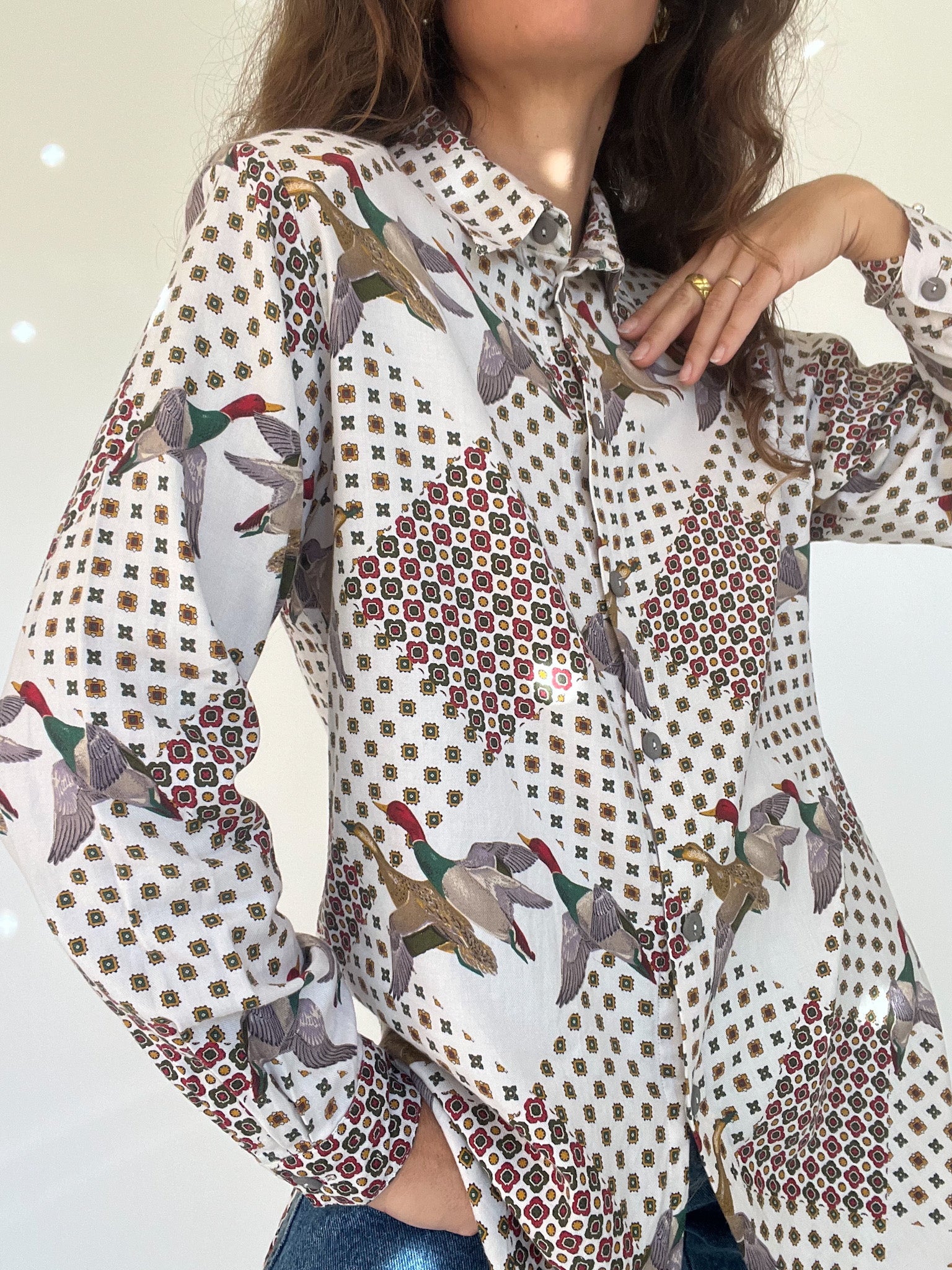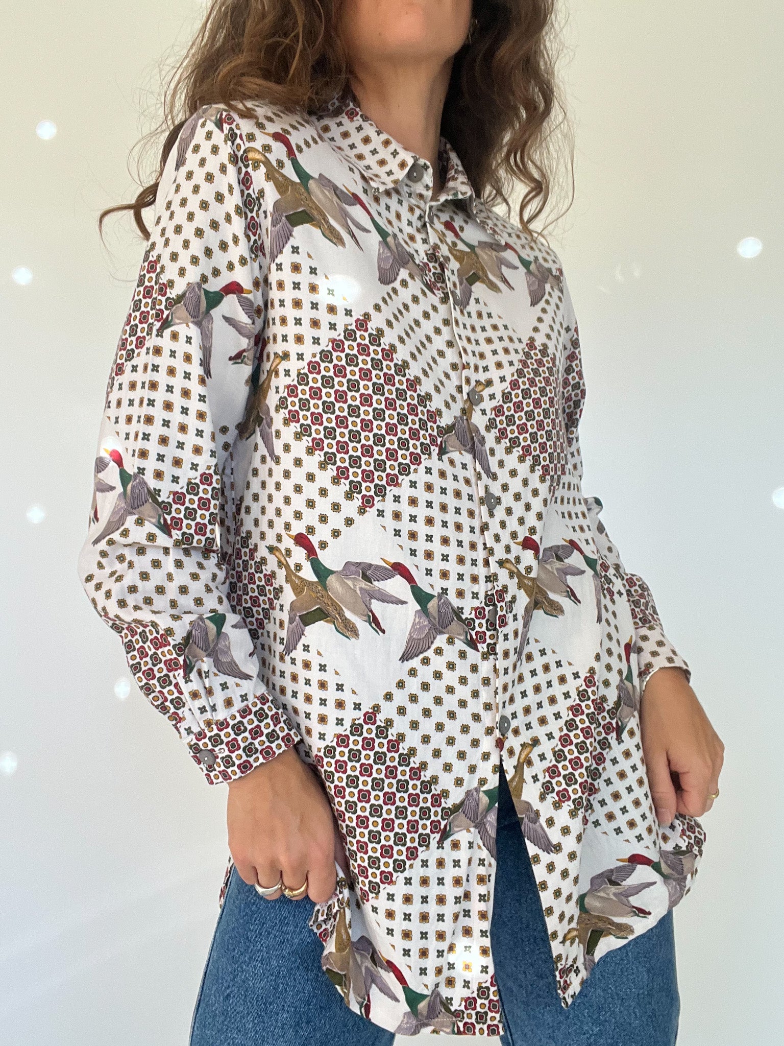 Vintage 90’s White & Multicolor Duck Print Shirt