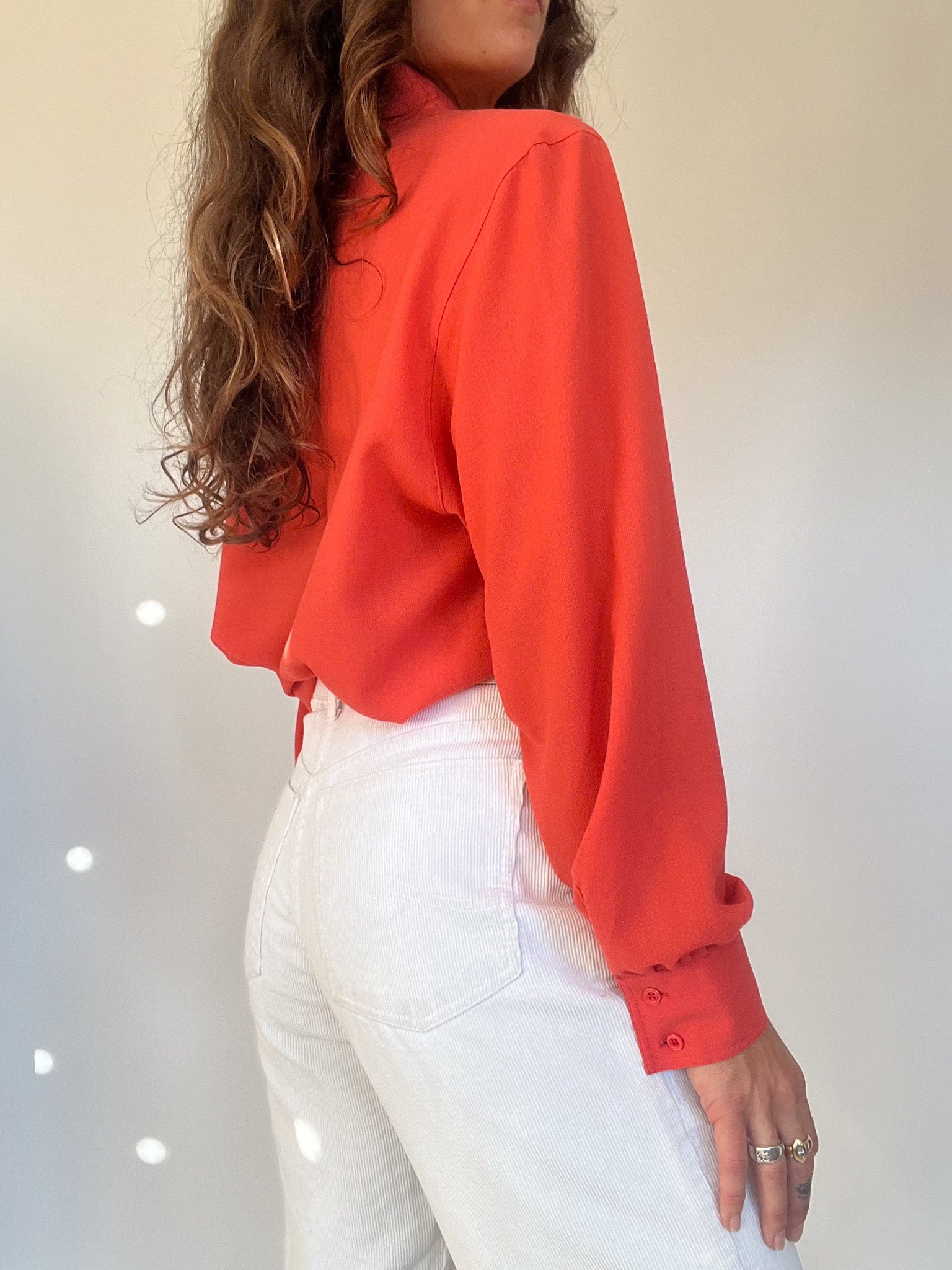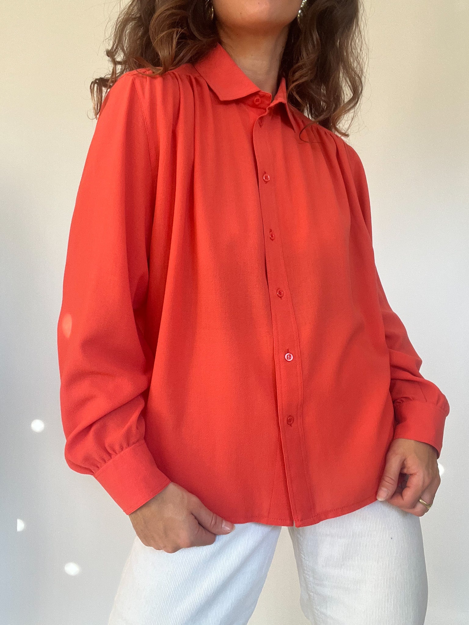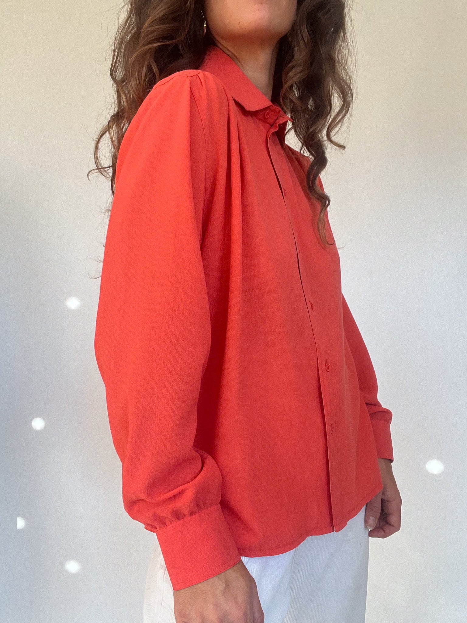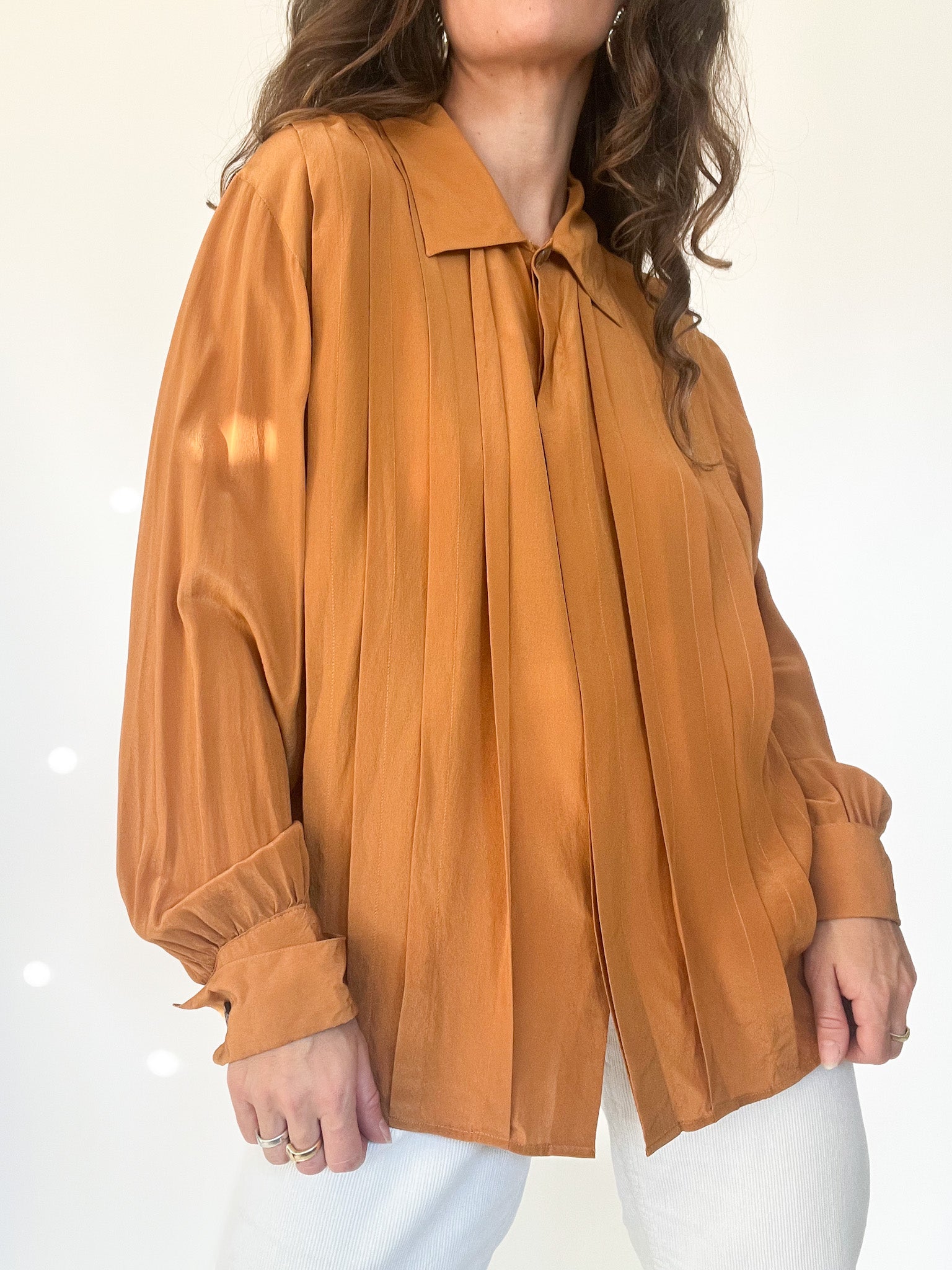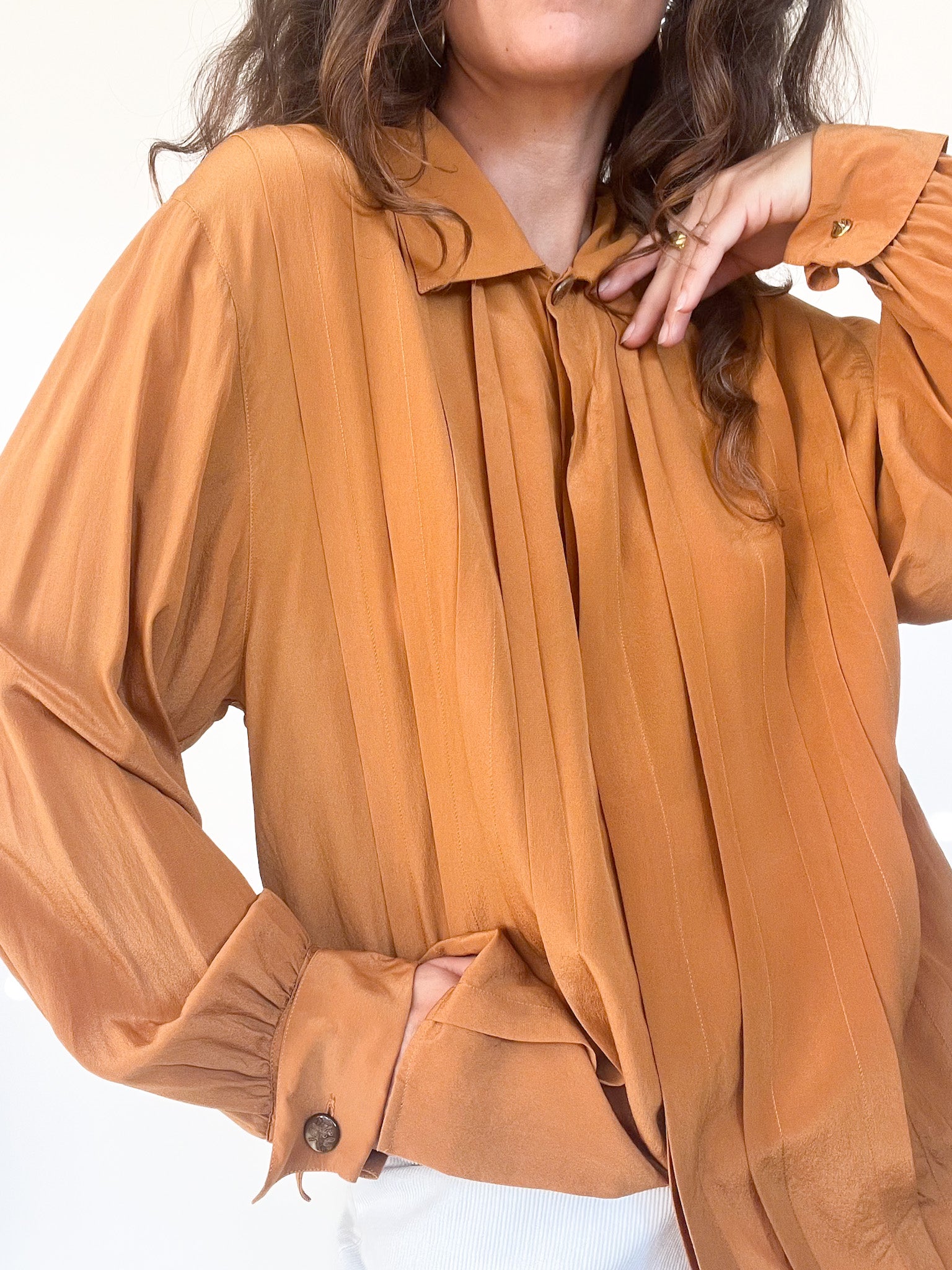 Vintage 80’s Terracotta Pleated Silk Blouse