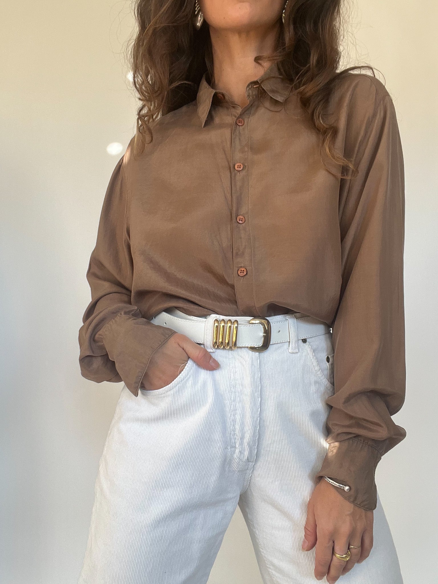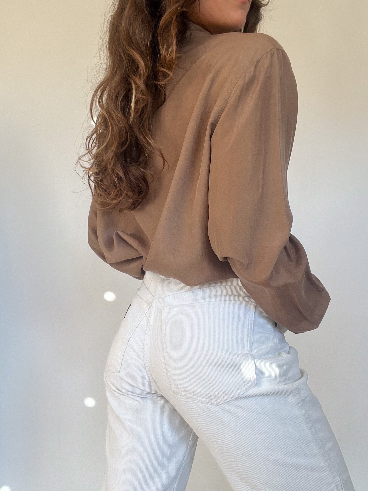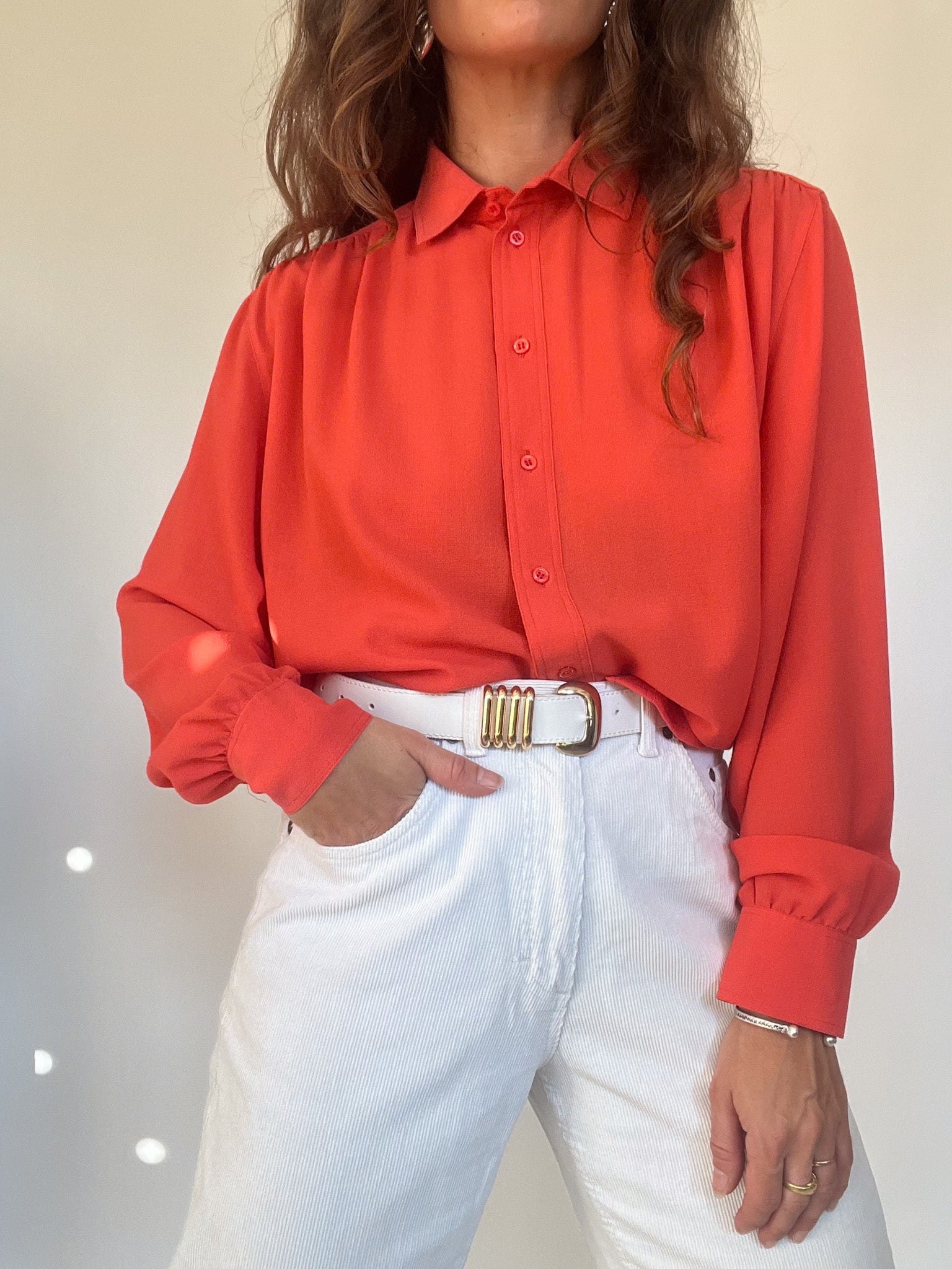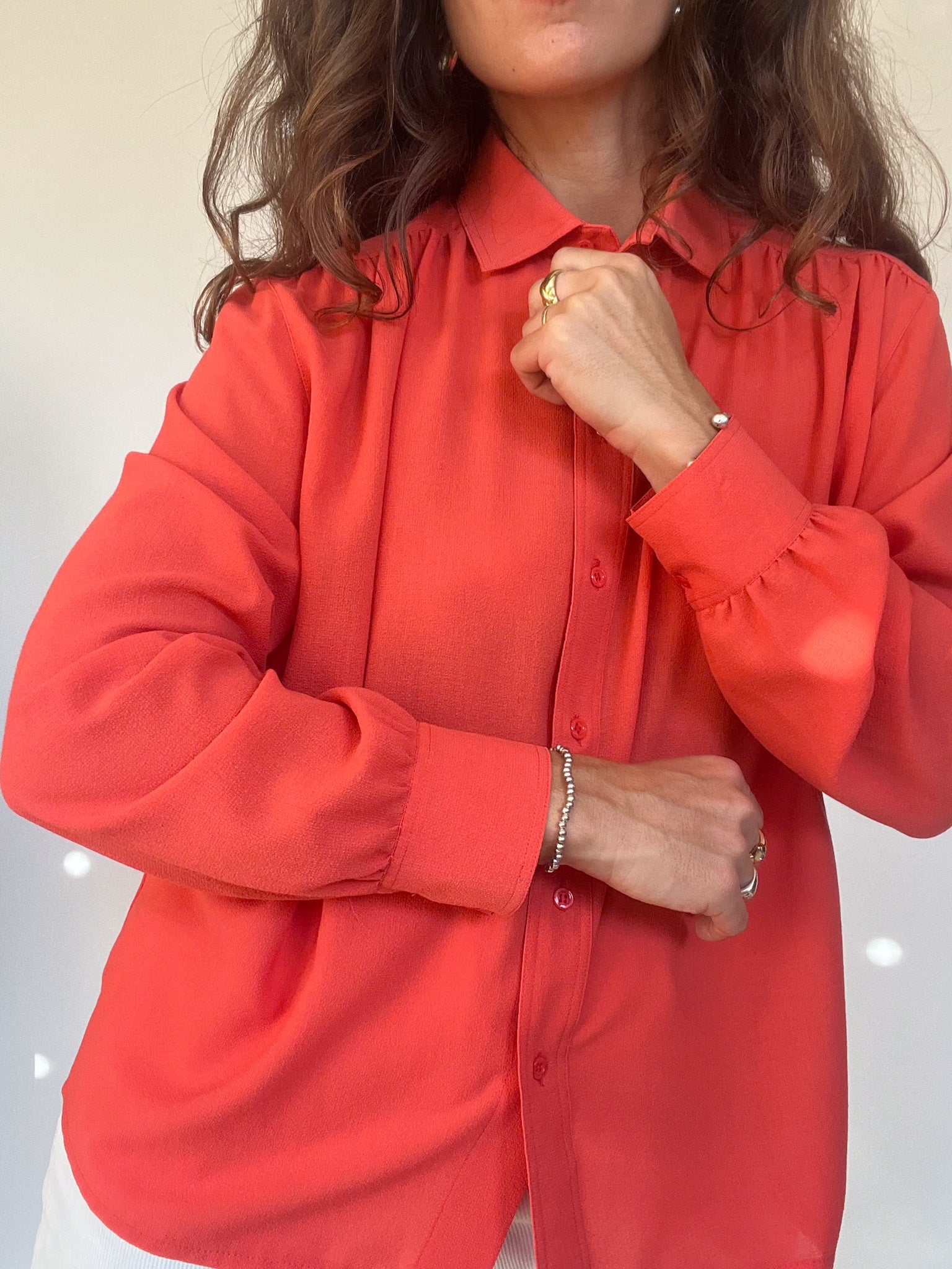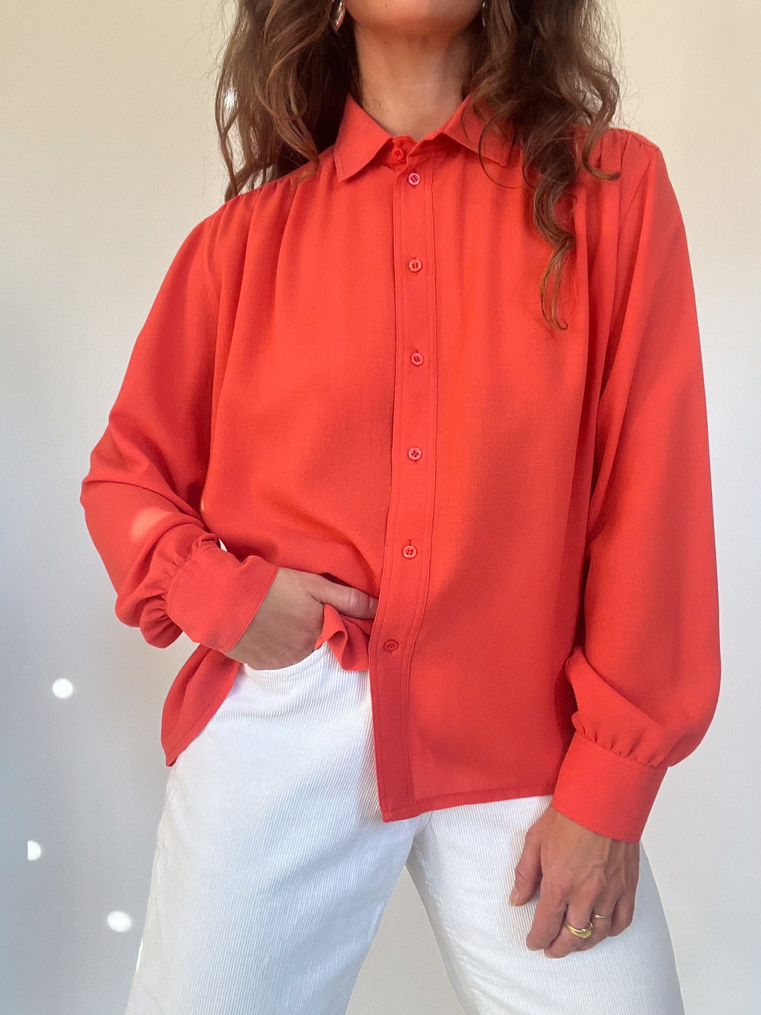 Vintage 80’s Terracotta Pleated Silk Blouse