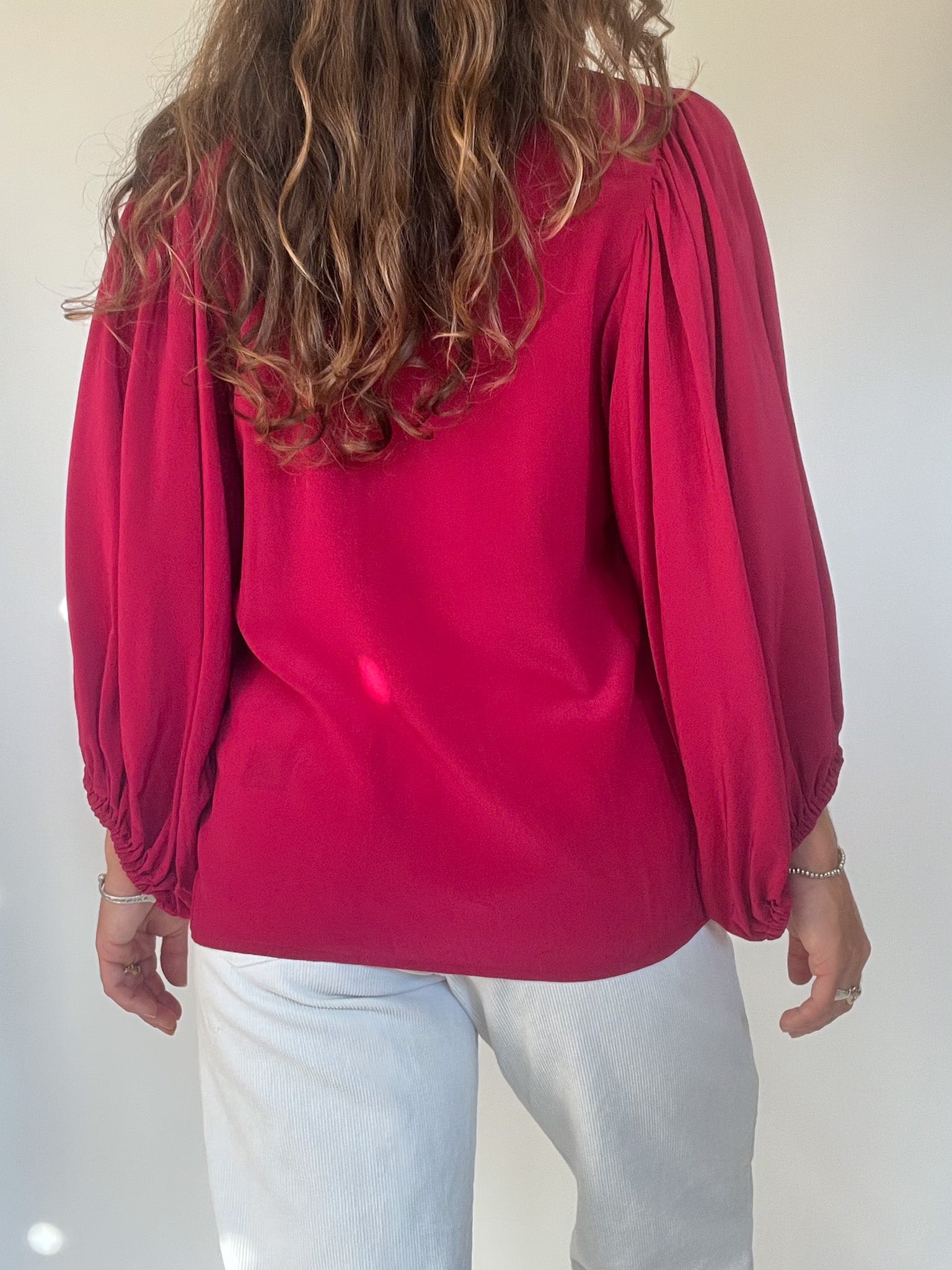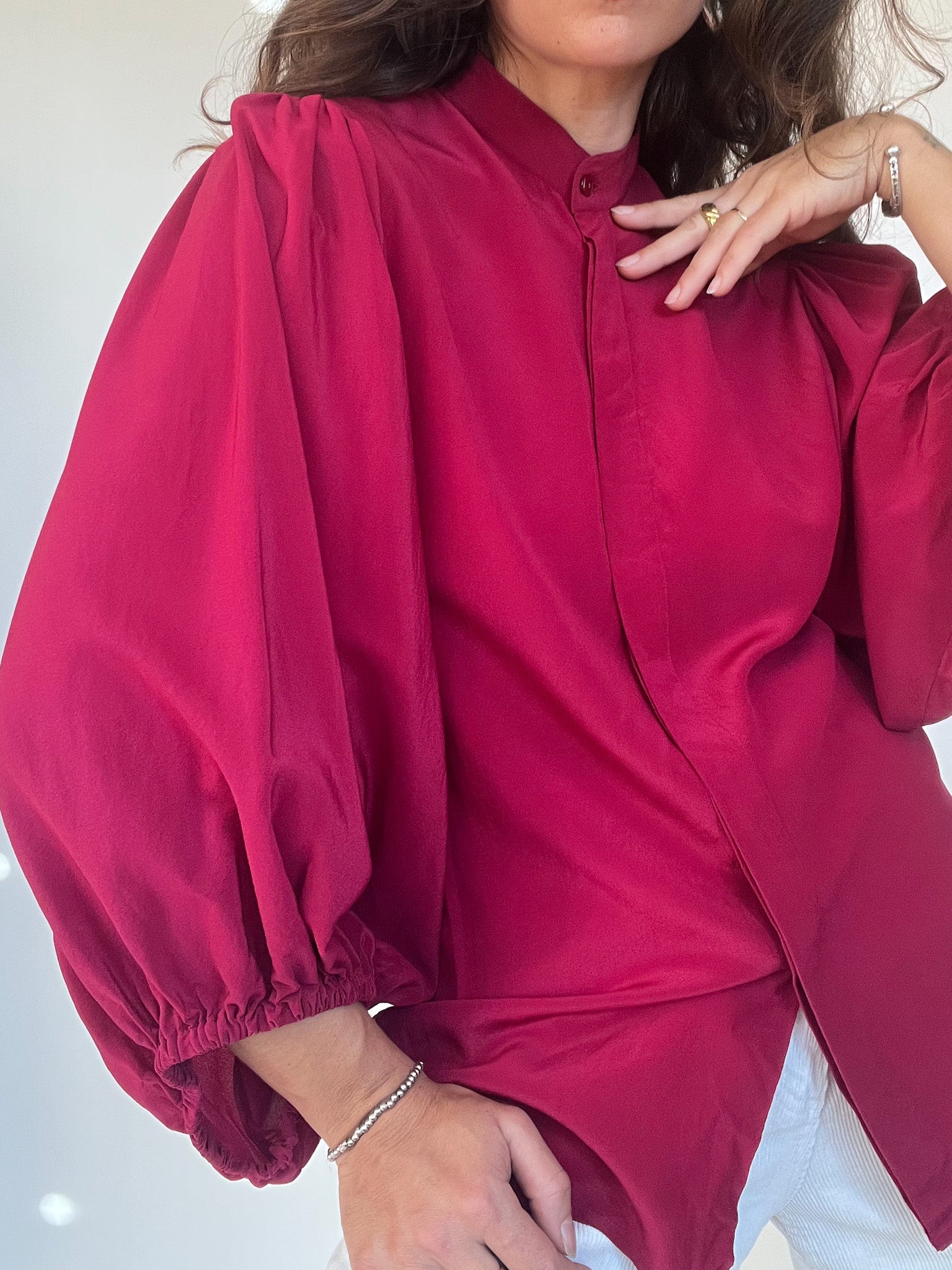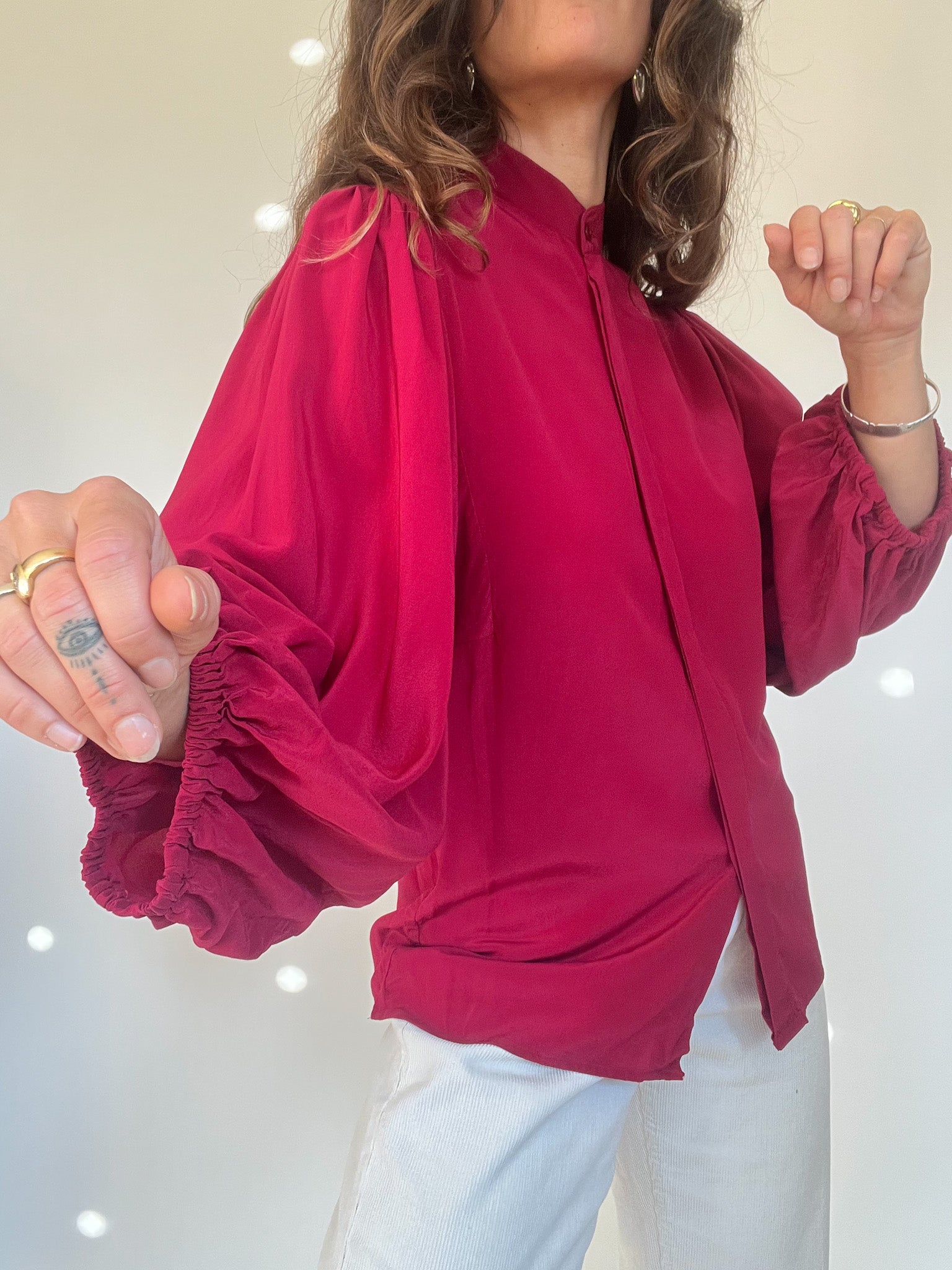 Vintage 80’s Burgundy Silk Balloon Sleeve Blouse