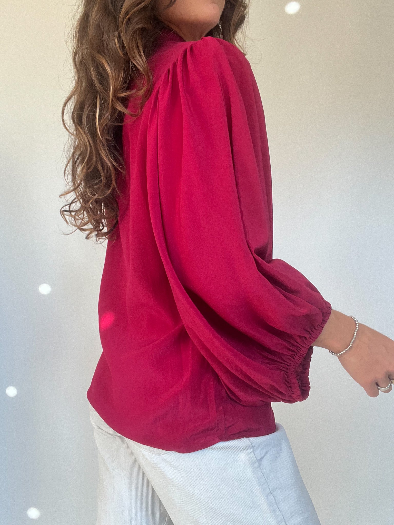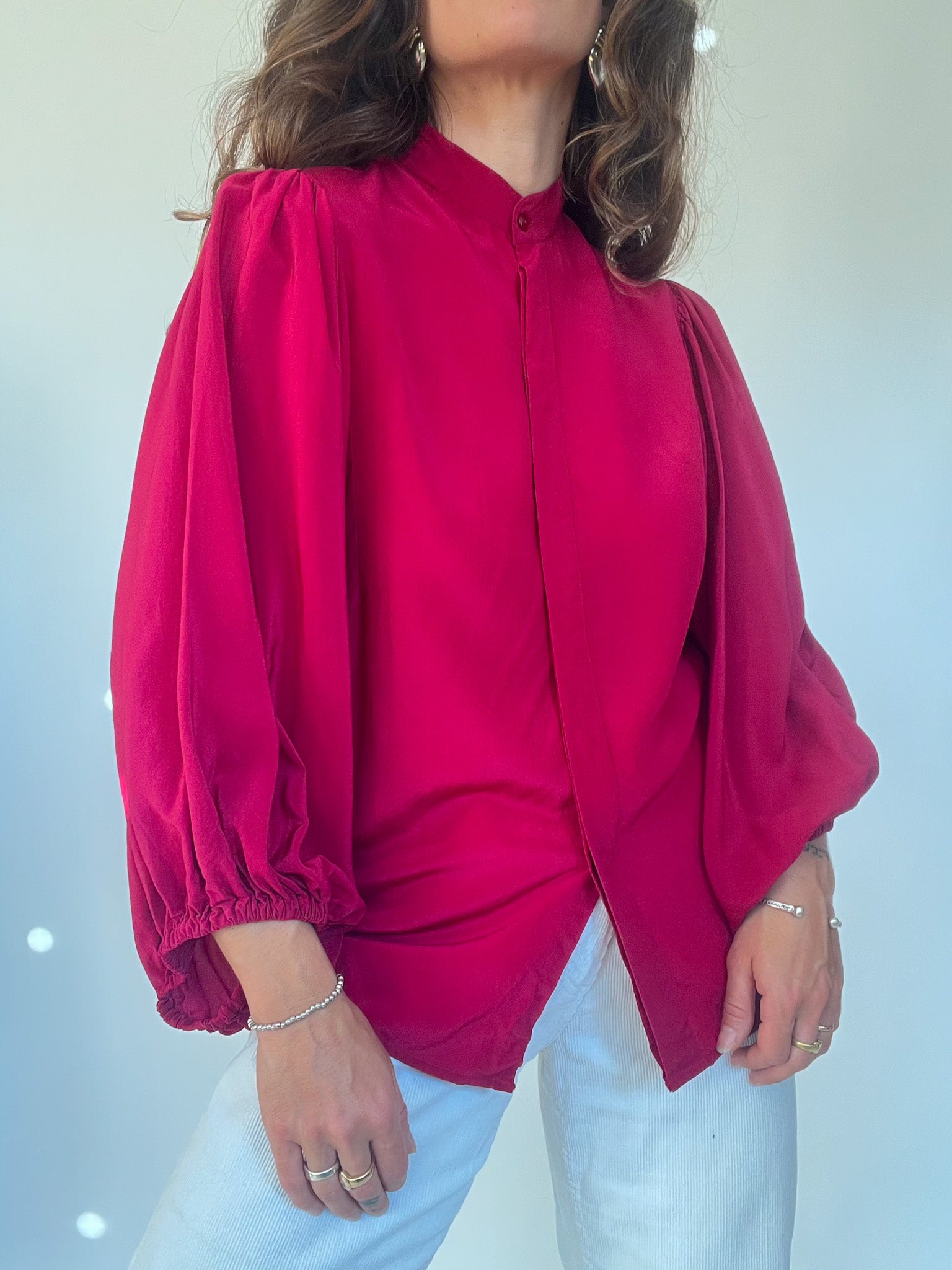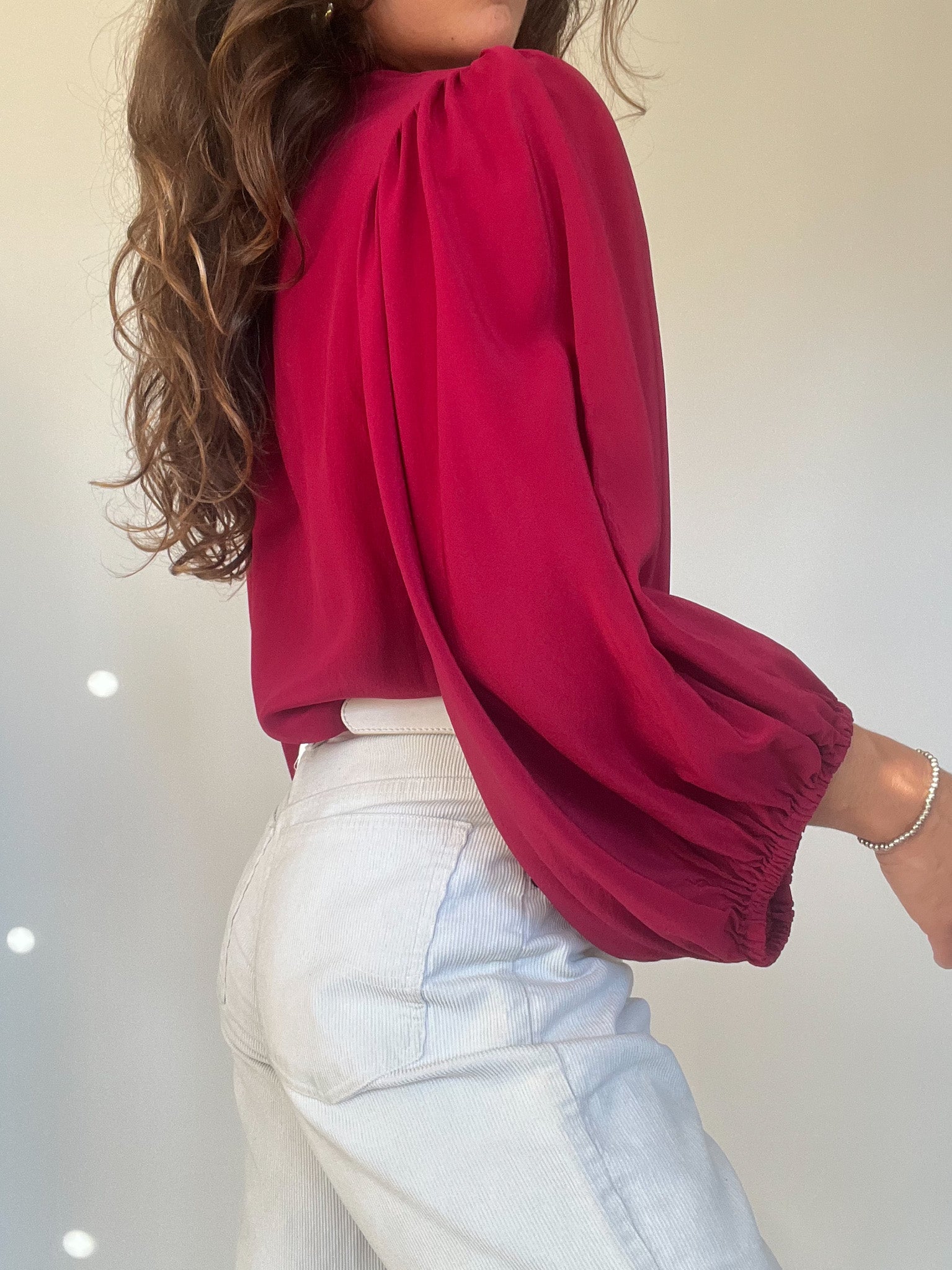 Vintage 80’s Burgundy Silk Balloon Sleeve Blouse
