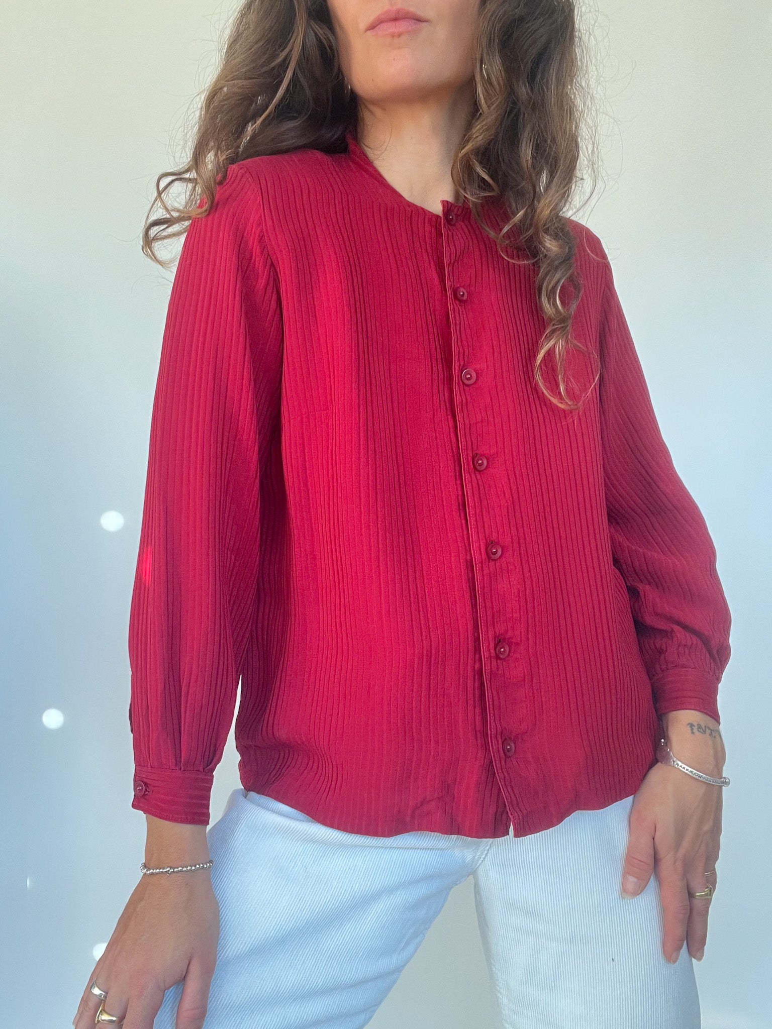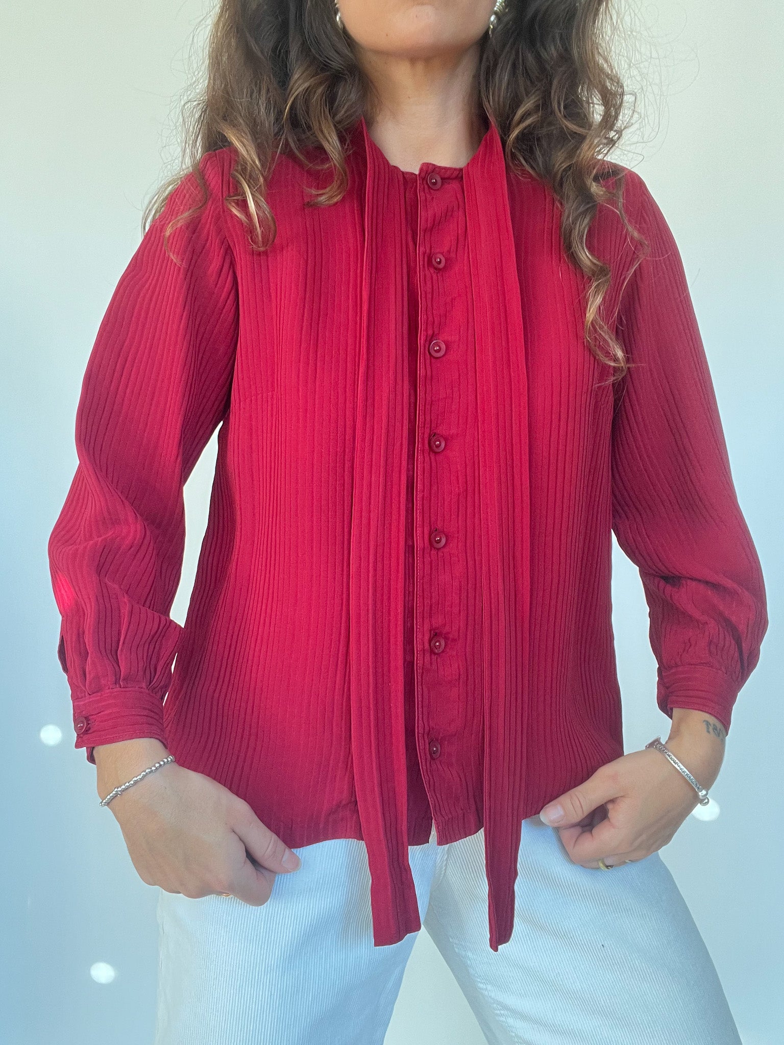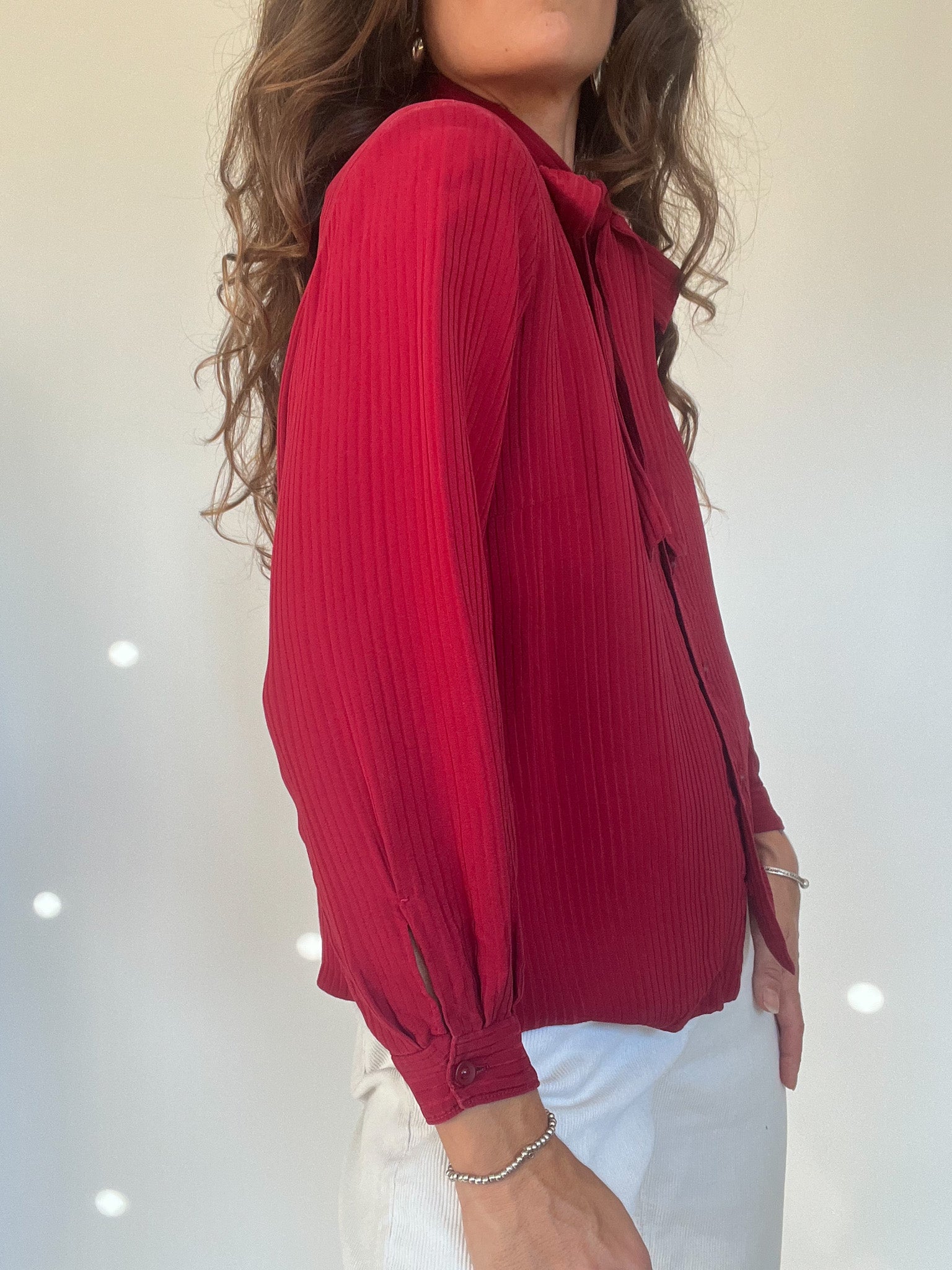 Vintage 80’s Cherry Red Textured Silk Blouse