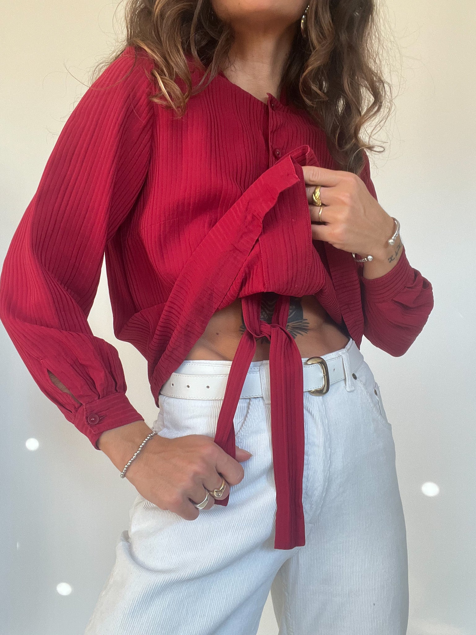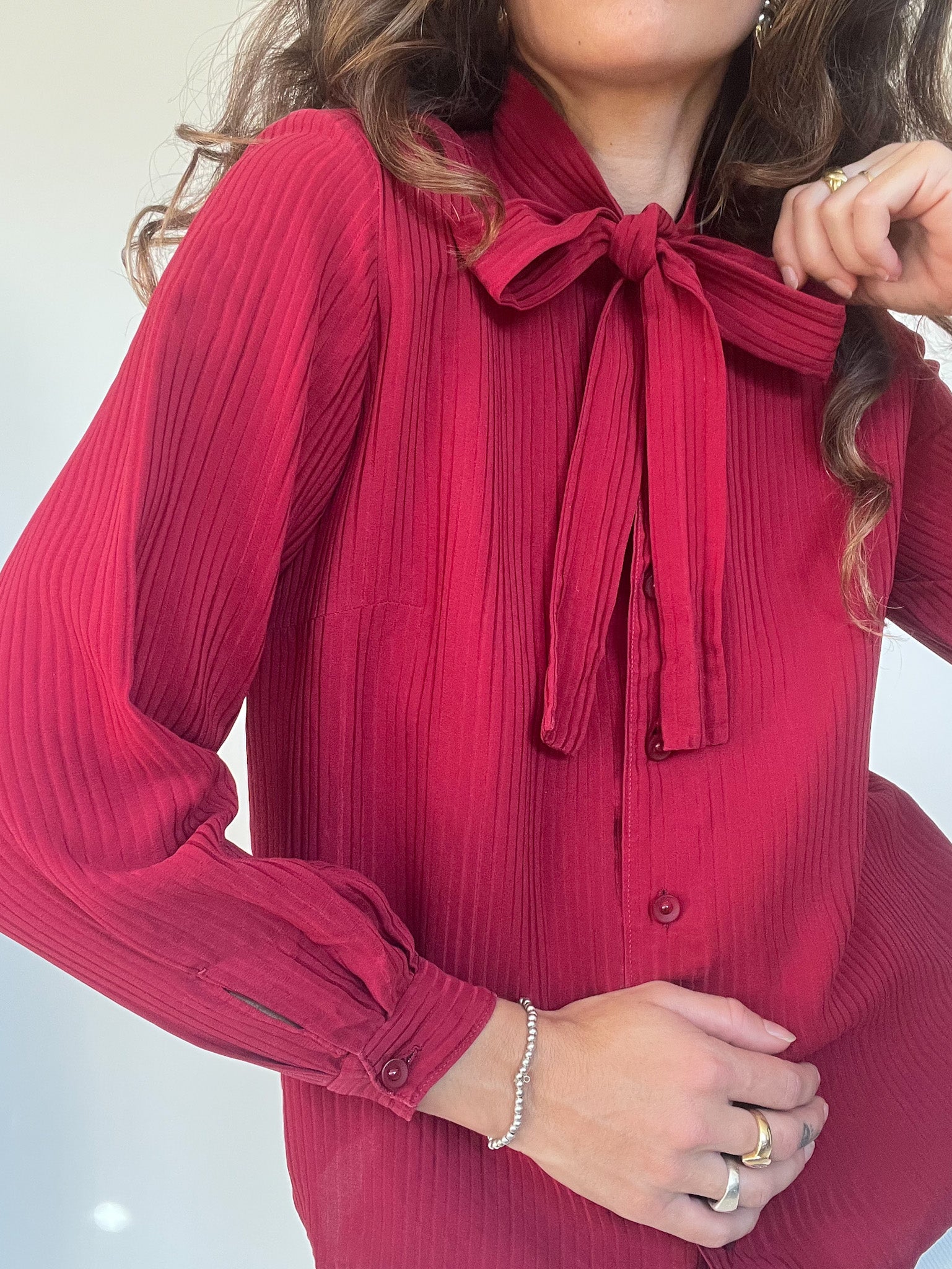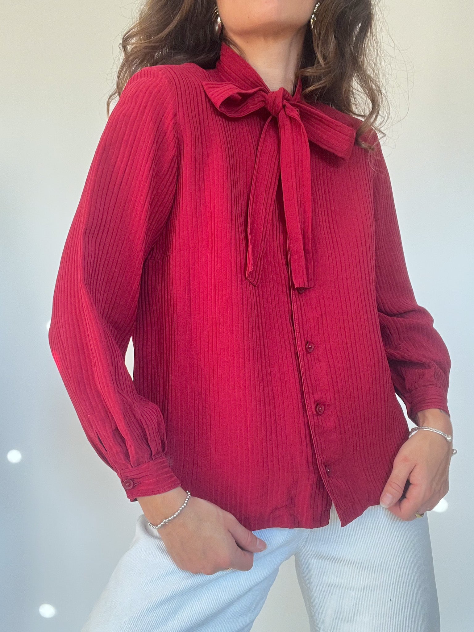 Vintage 80’s Cherry Red Textured Silk Blouse
