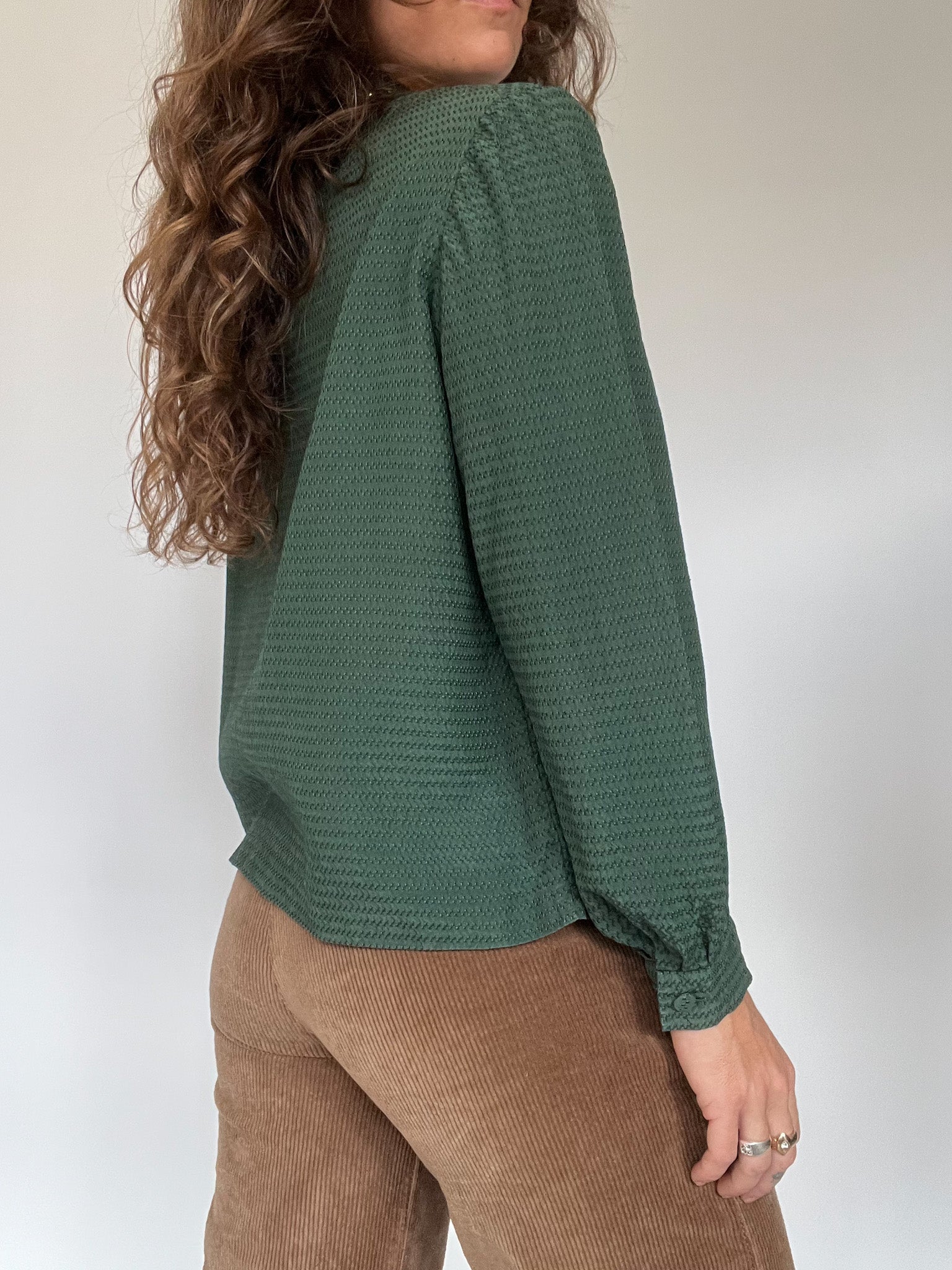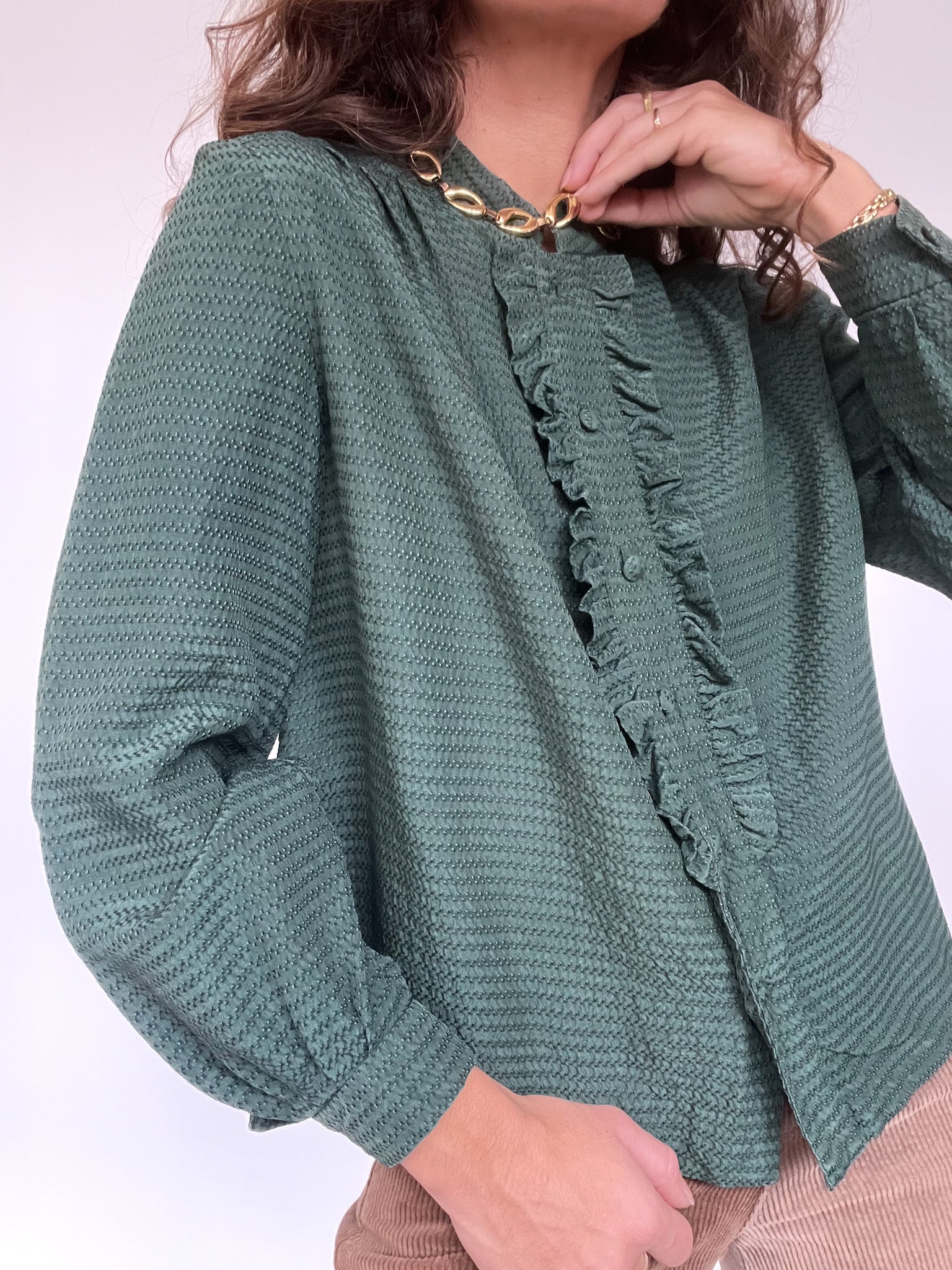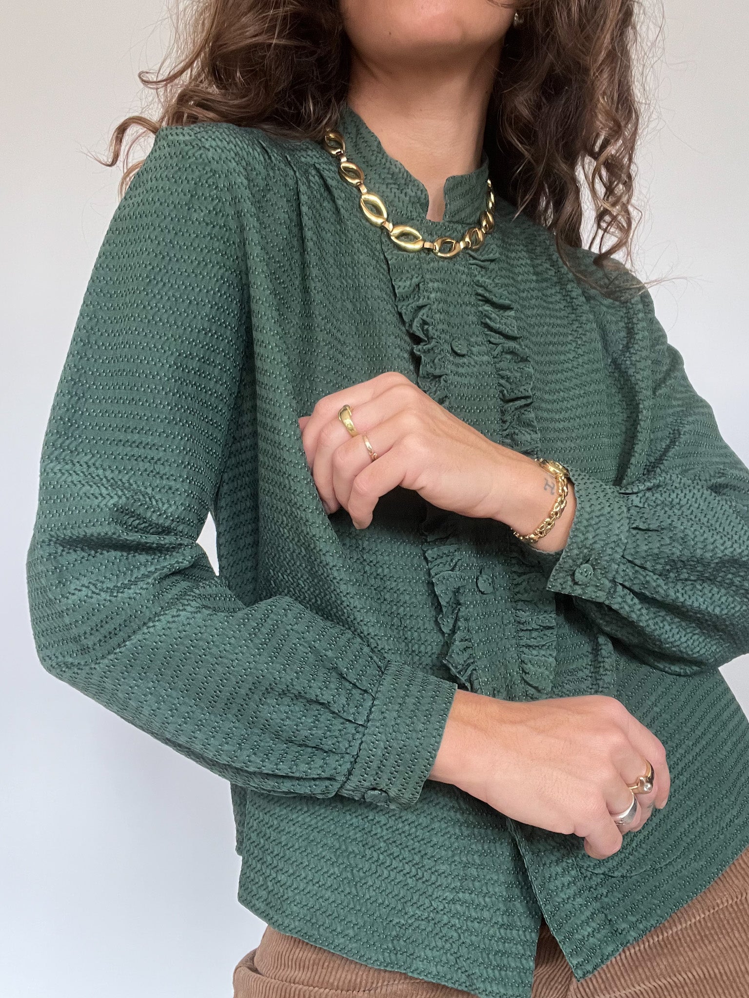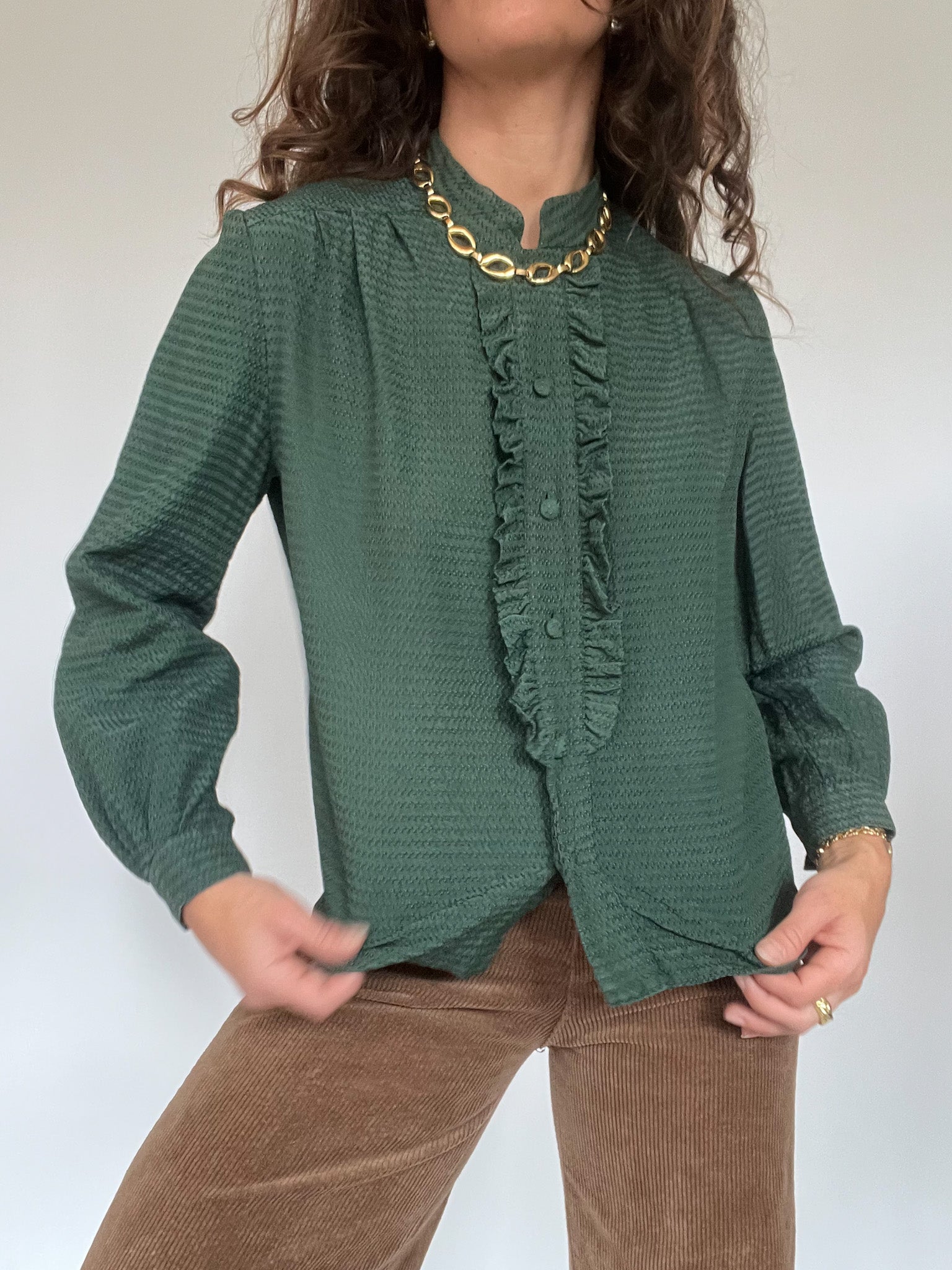 Vintage 80’s Emerald Green Ruffled Handmade Blouse