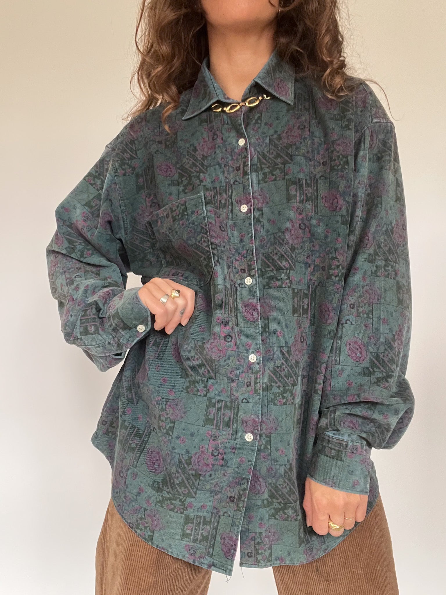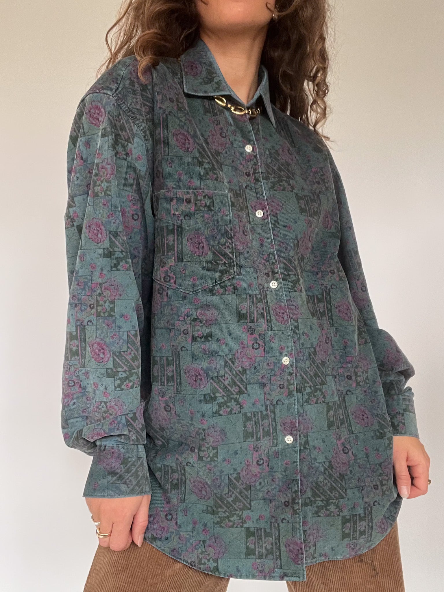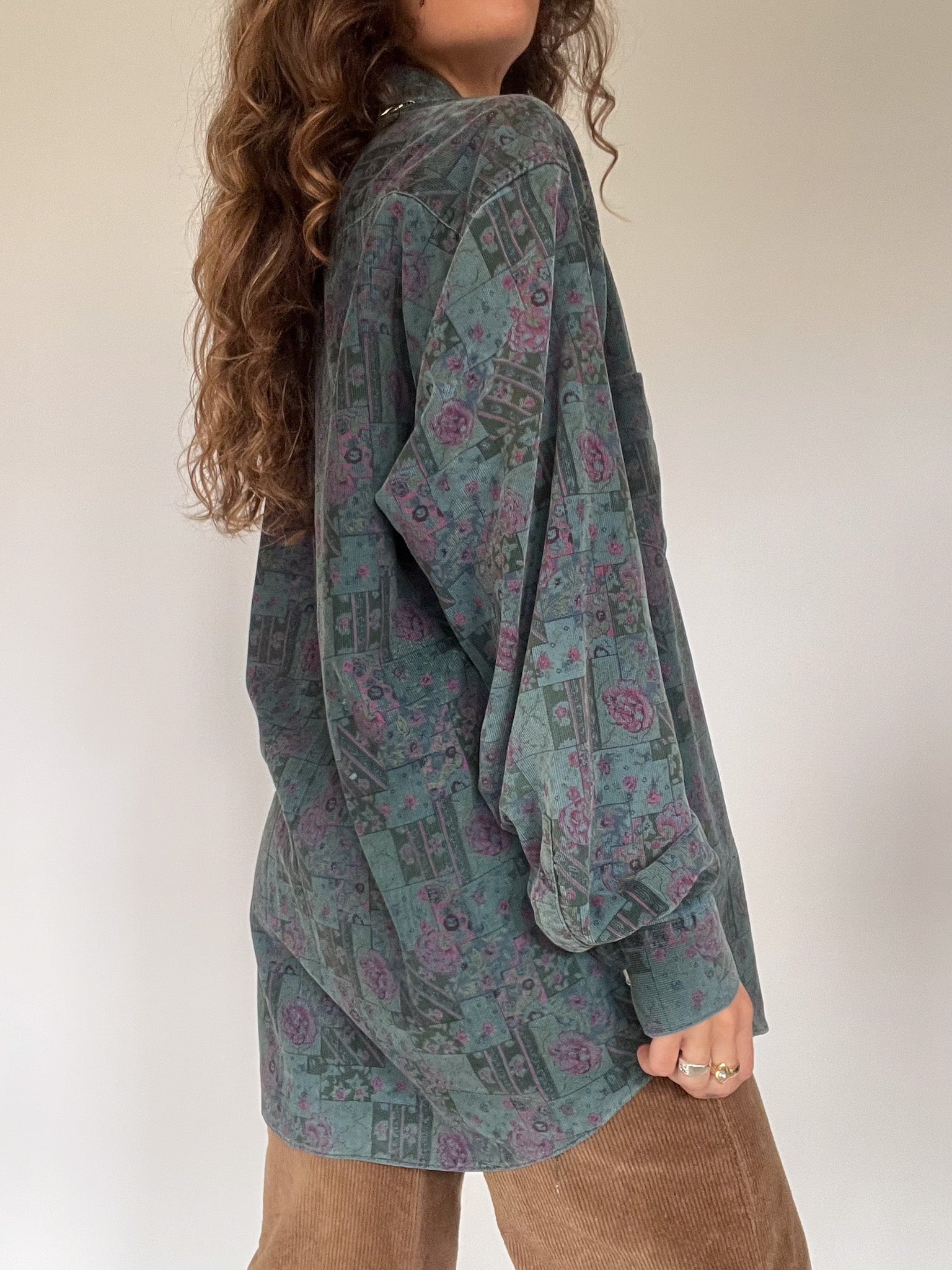 Vintage 80’s Teal Geometric Floral Cotton Shirt
