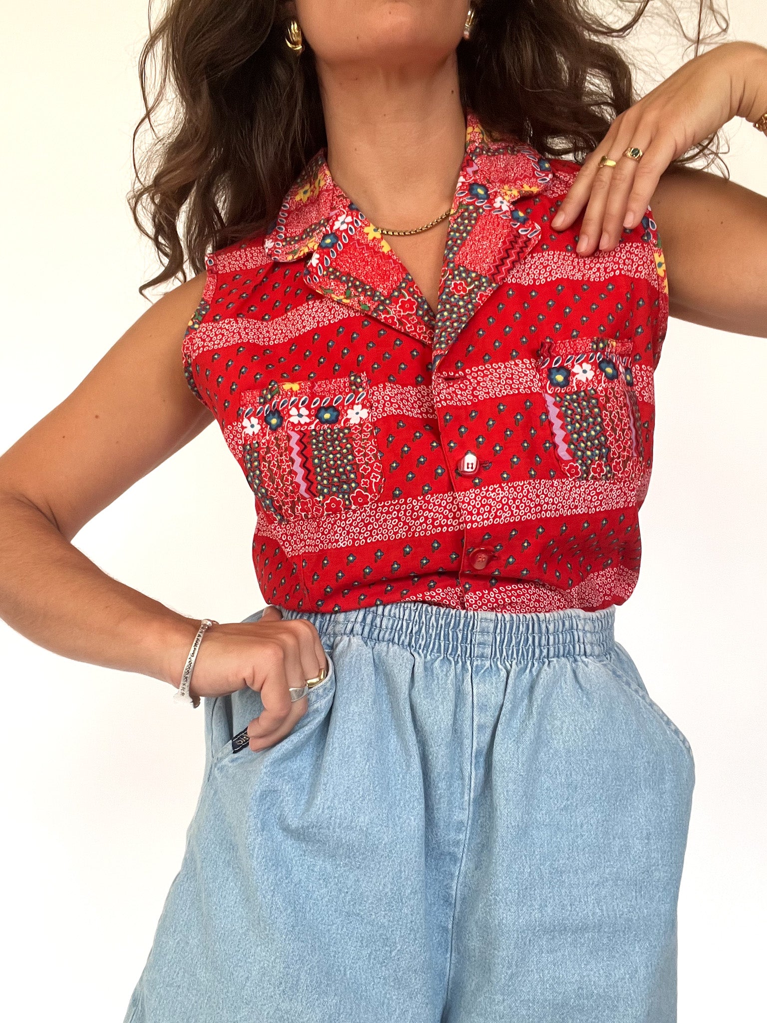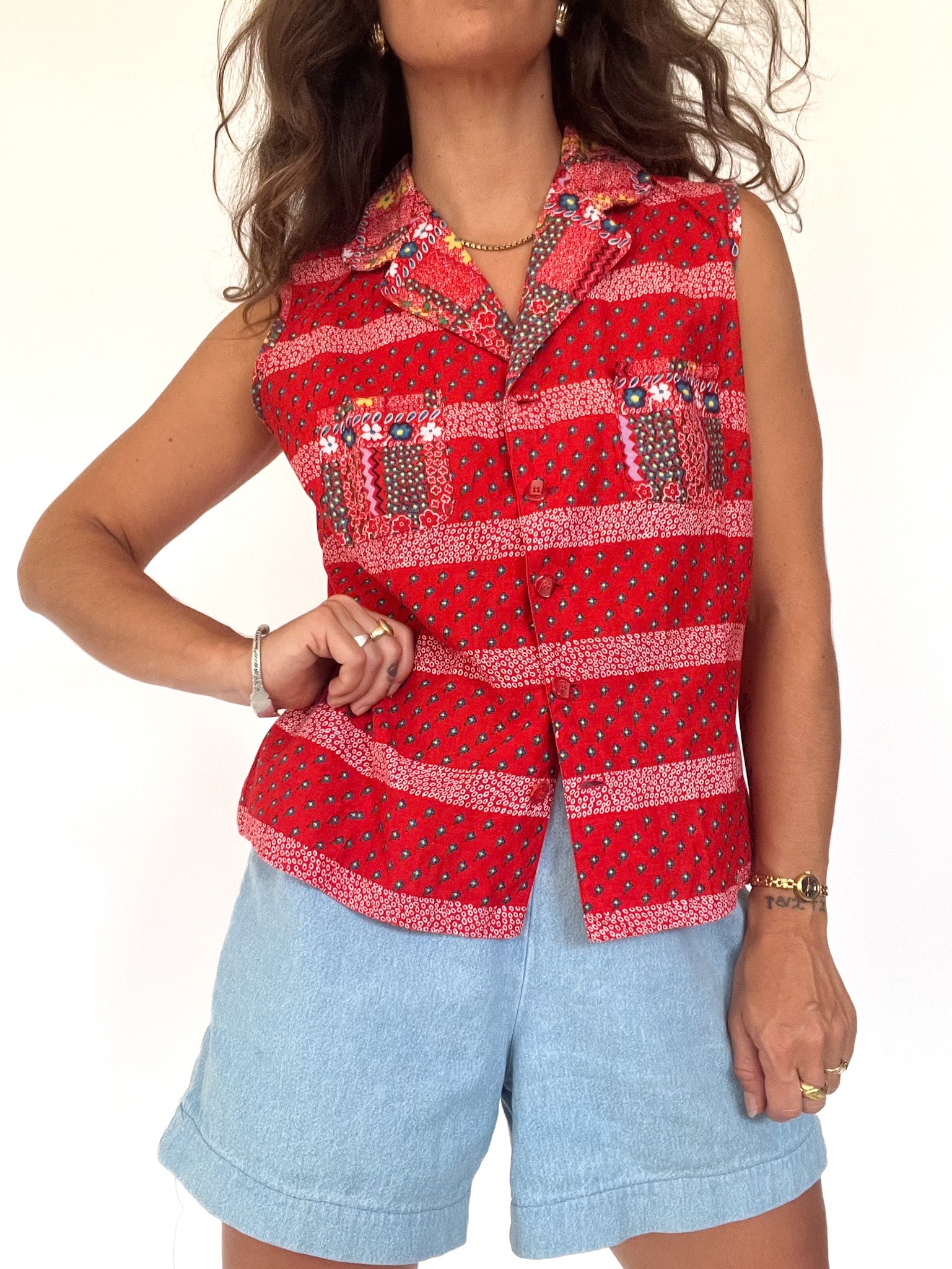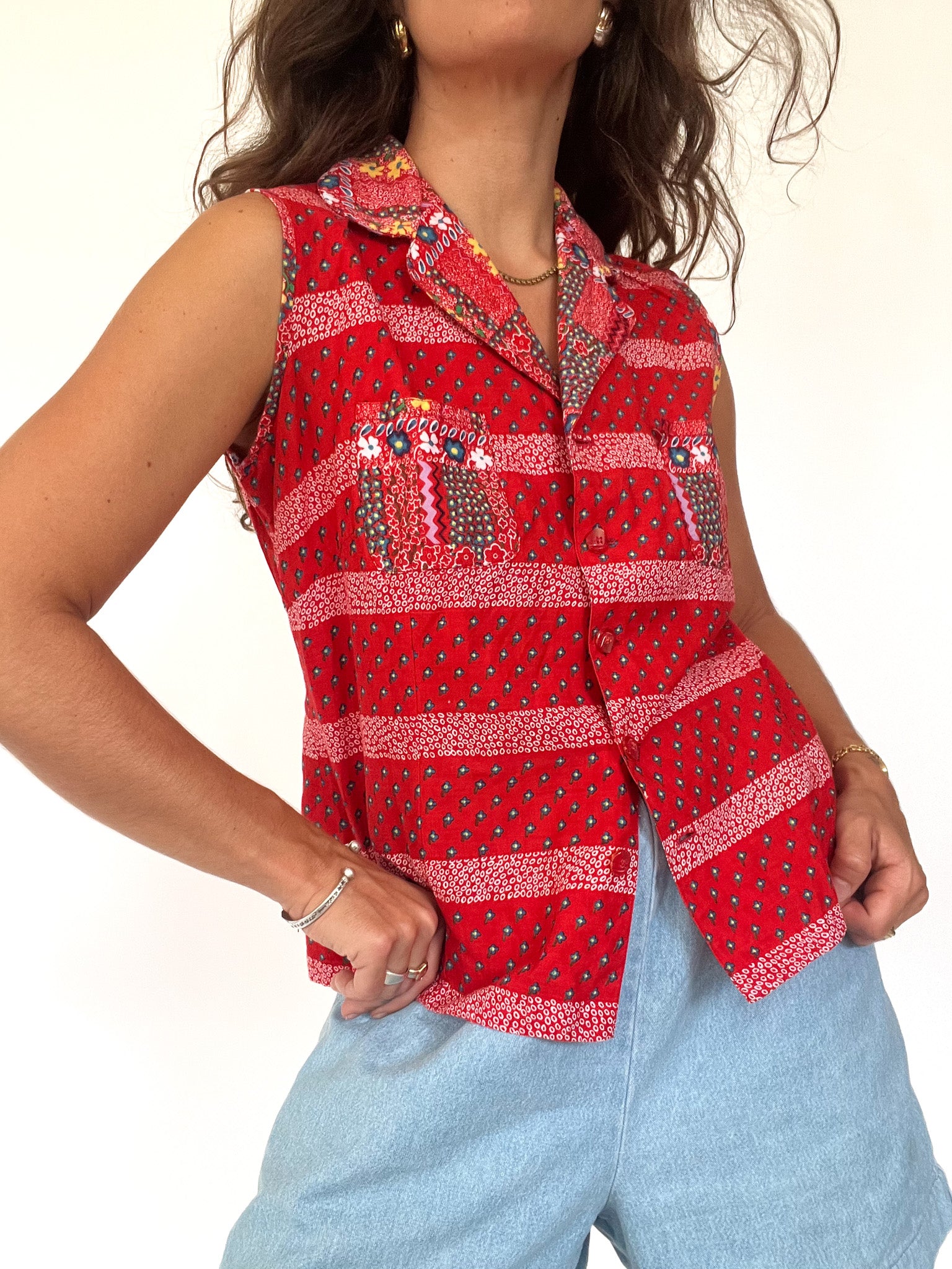 Vintage 90’s Red Patchwork Sleeveless Shirt