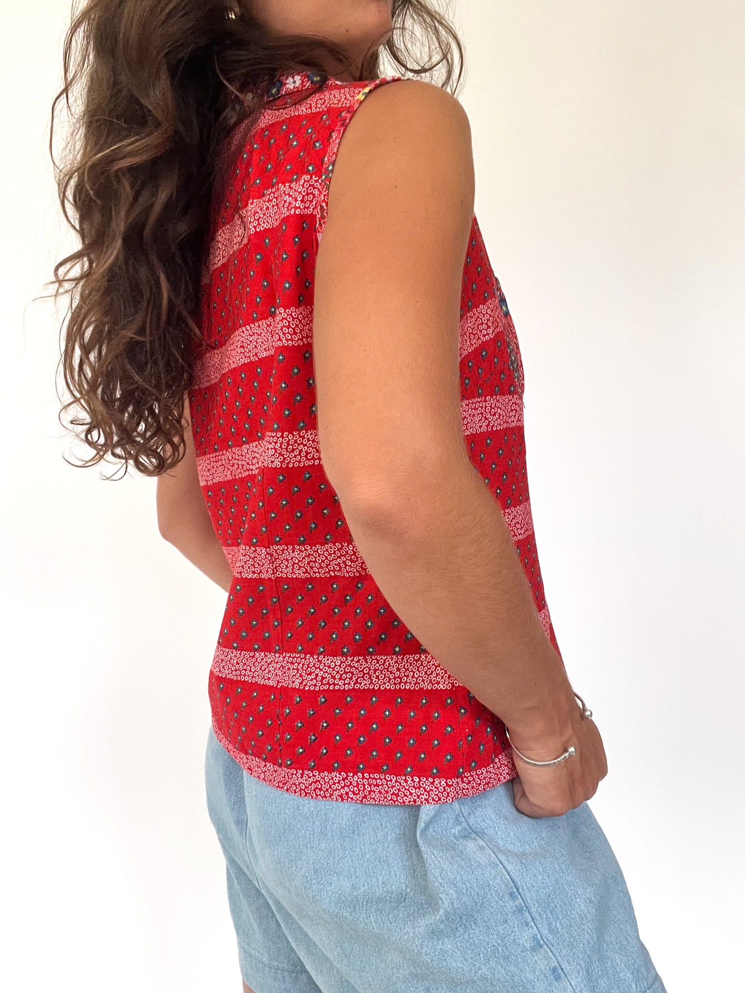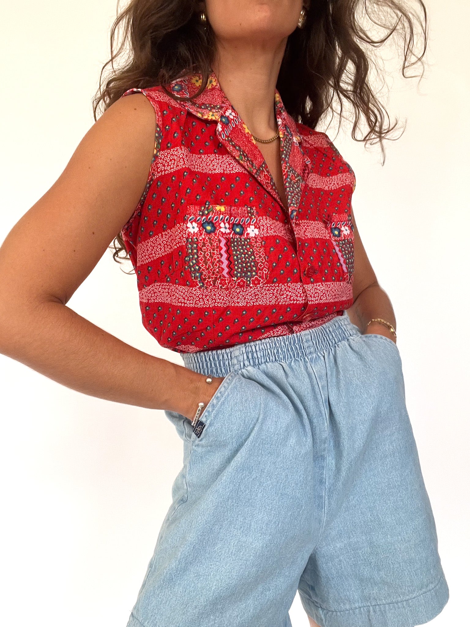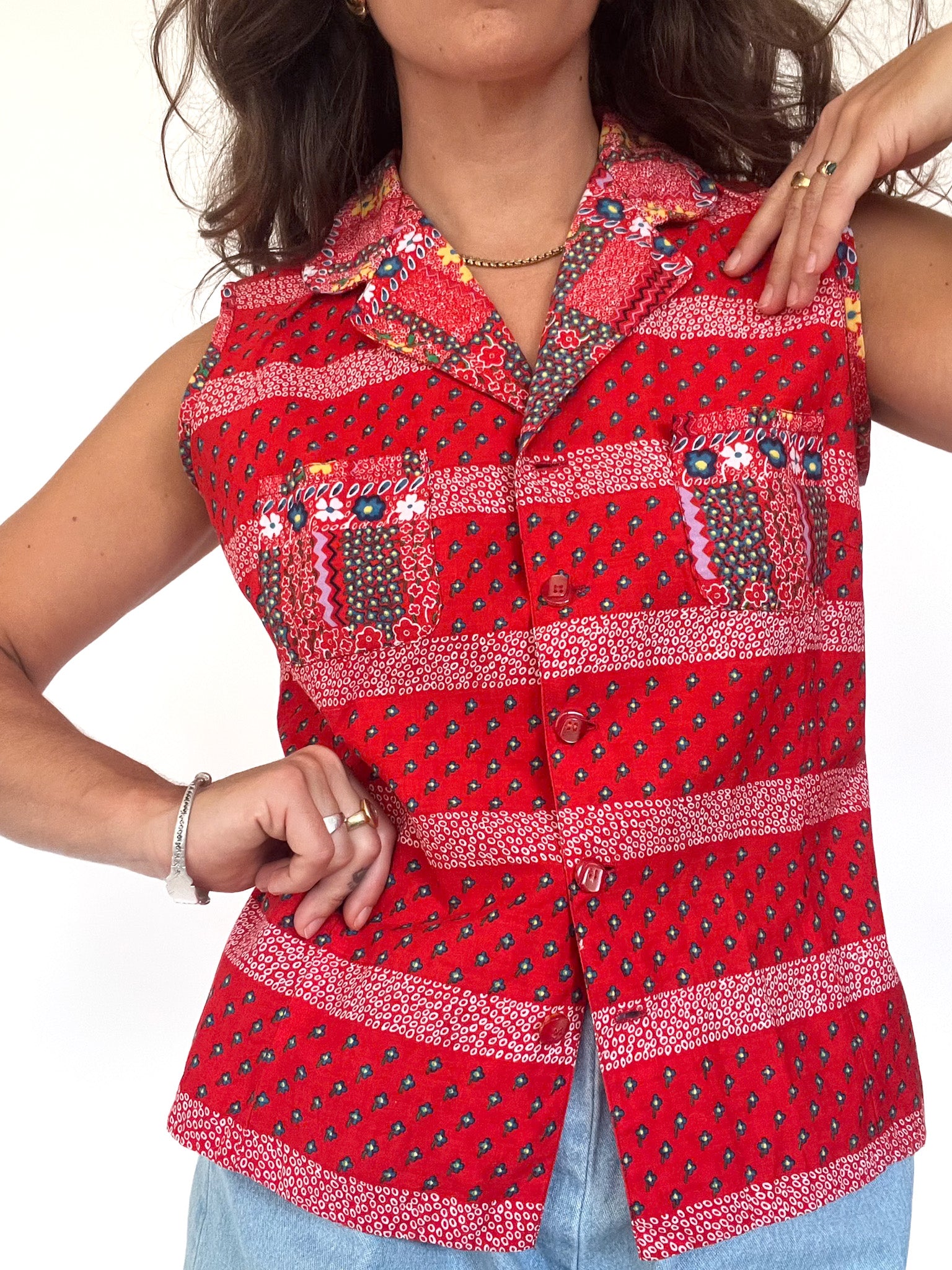Vintage 90’s Red Patchwork Sleeveless Shirt
