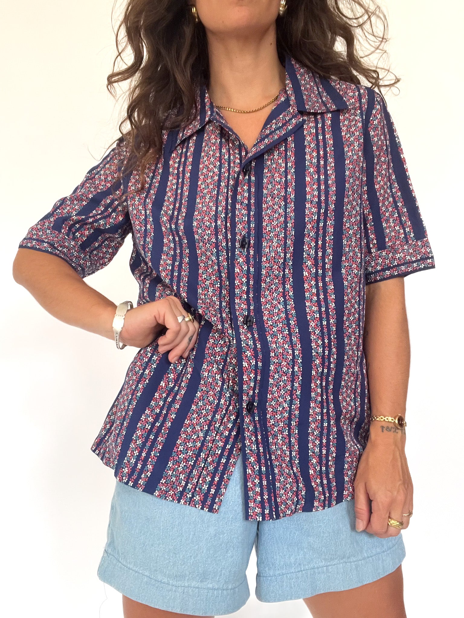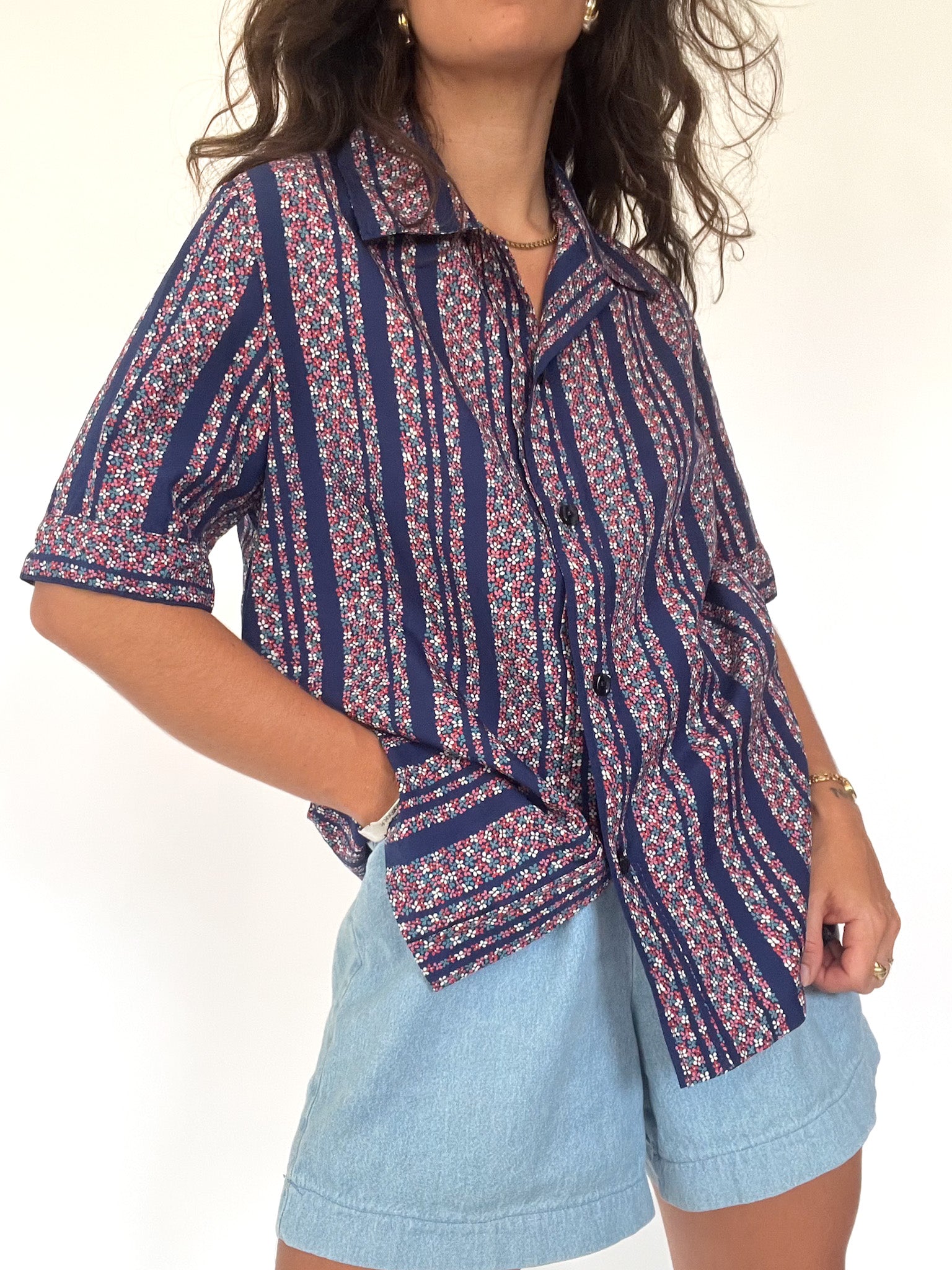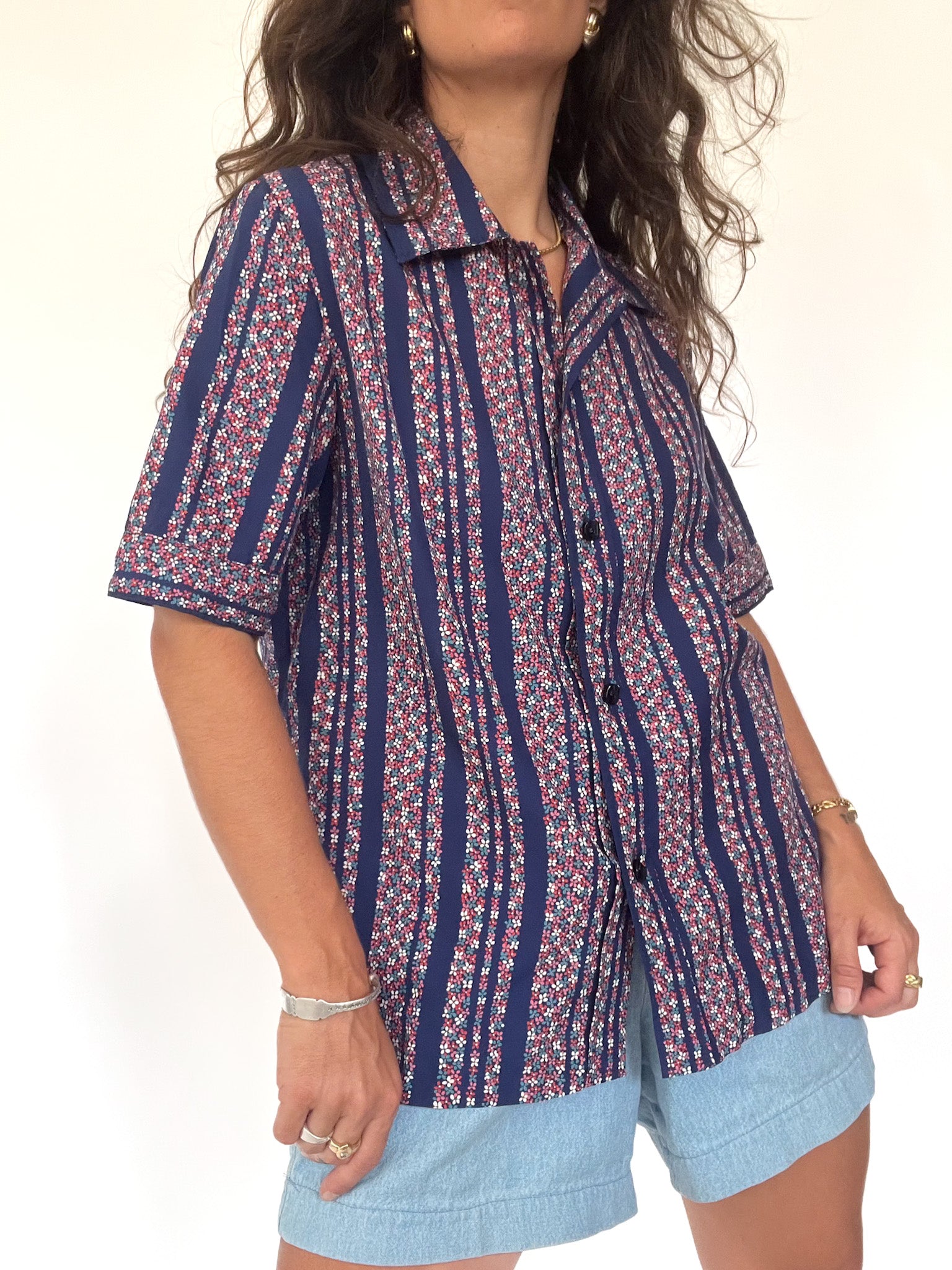Vintage 90’s Navy & Red Striped Floral Shirt