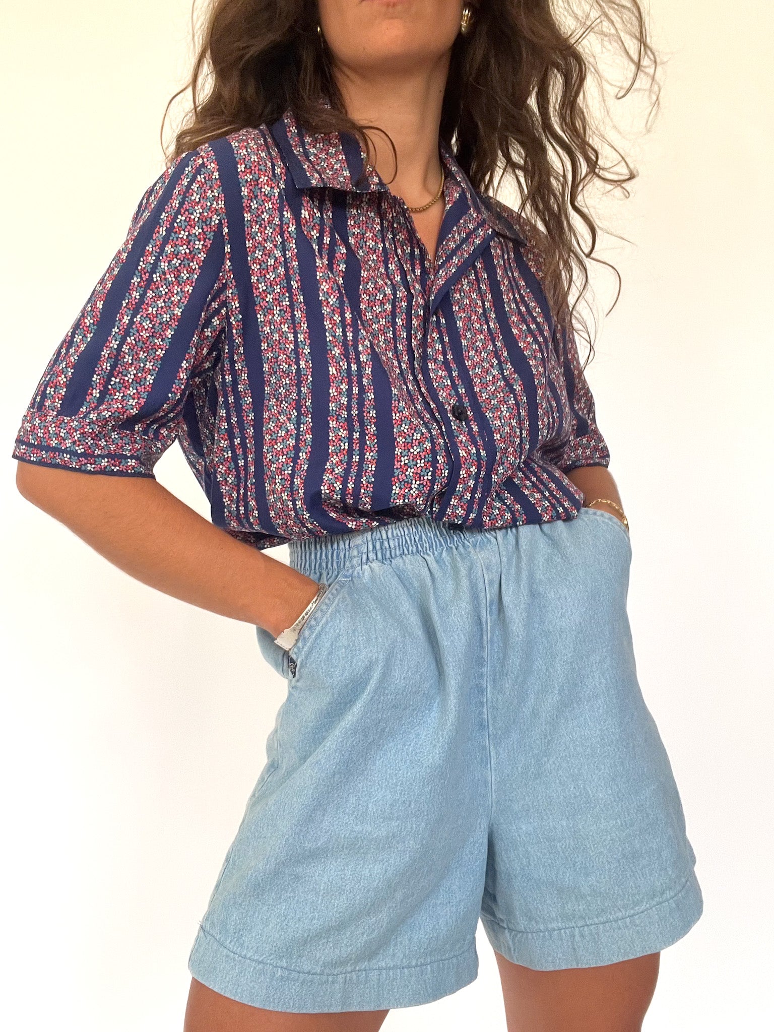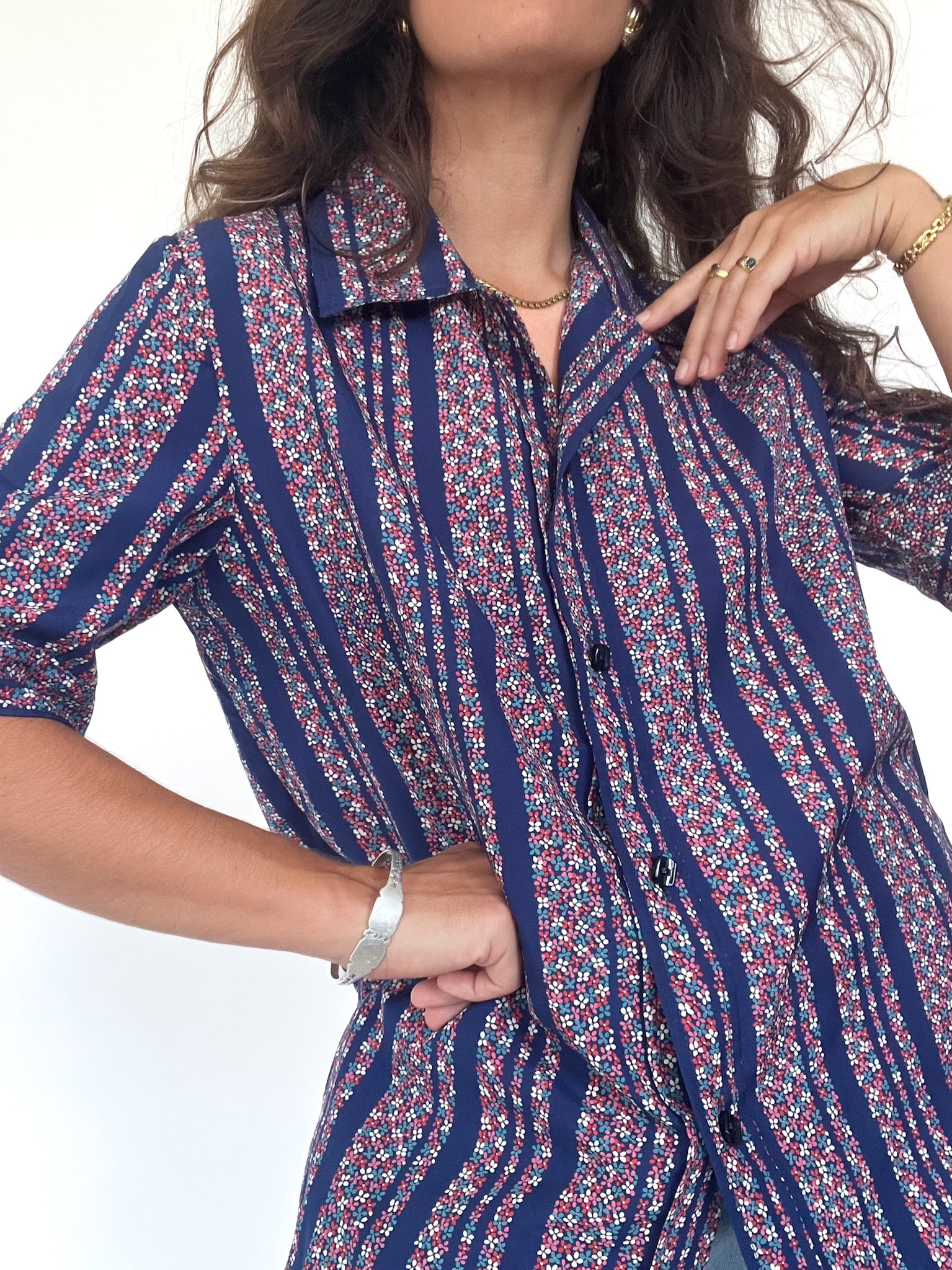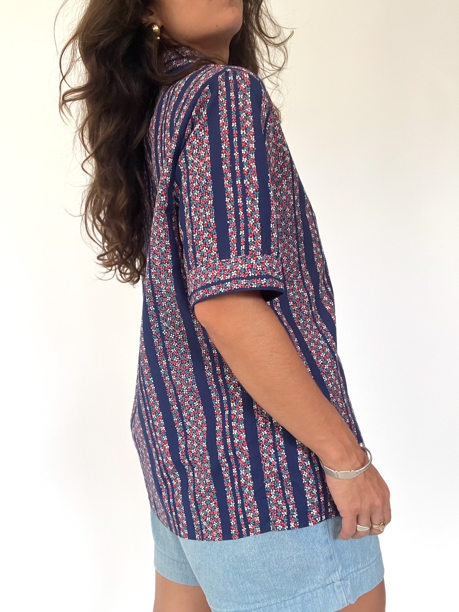 Vintage 90’s Navy & Red Striped Floral Shirt