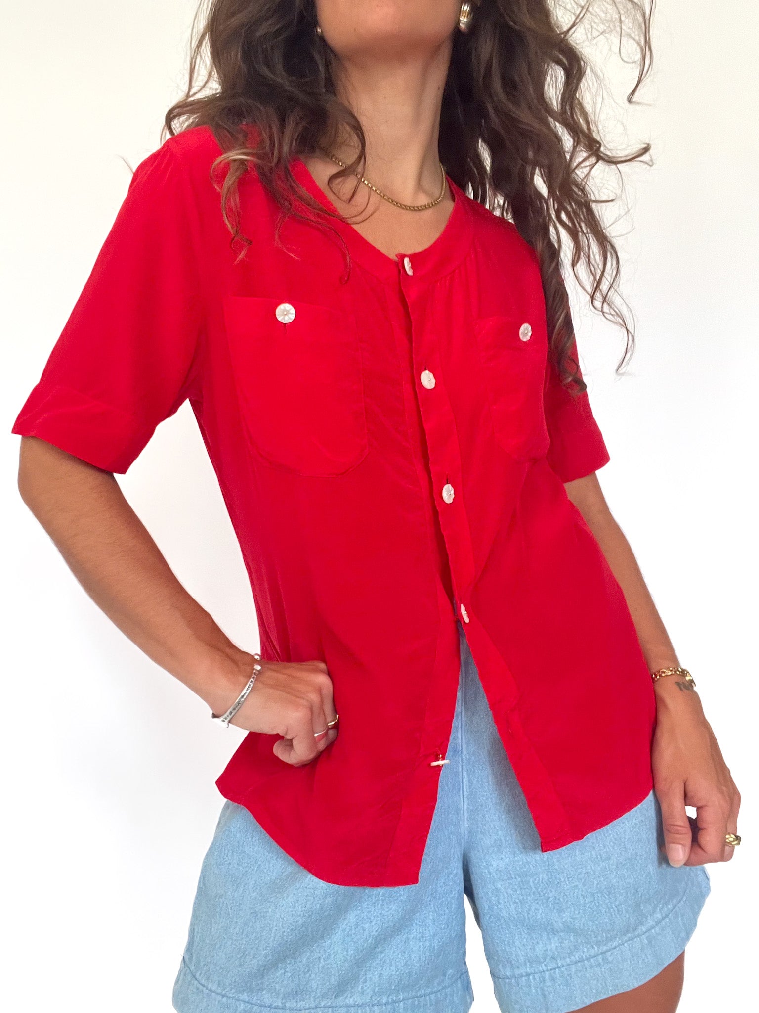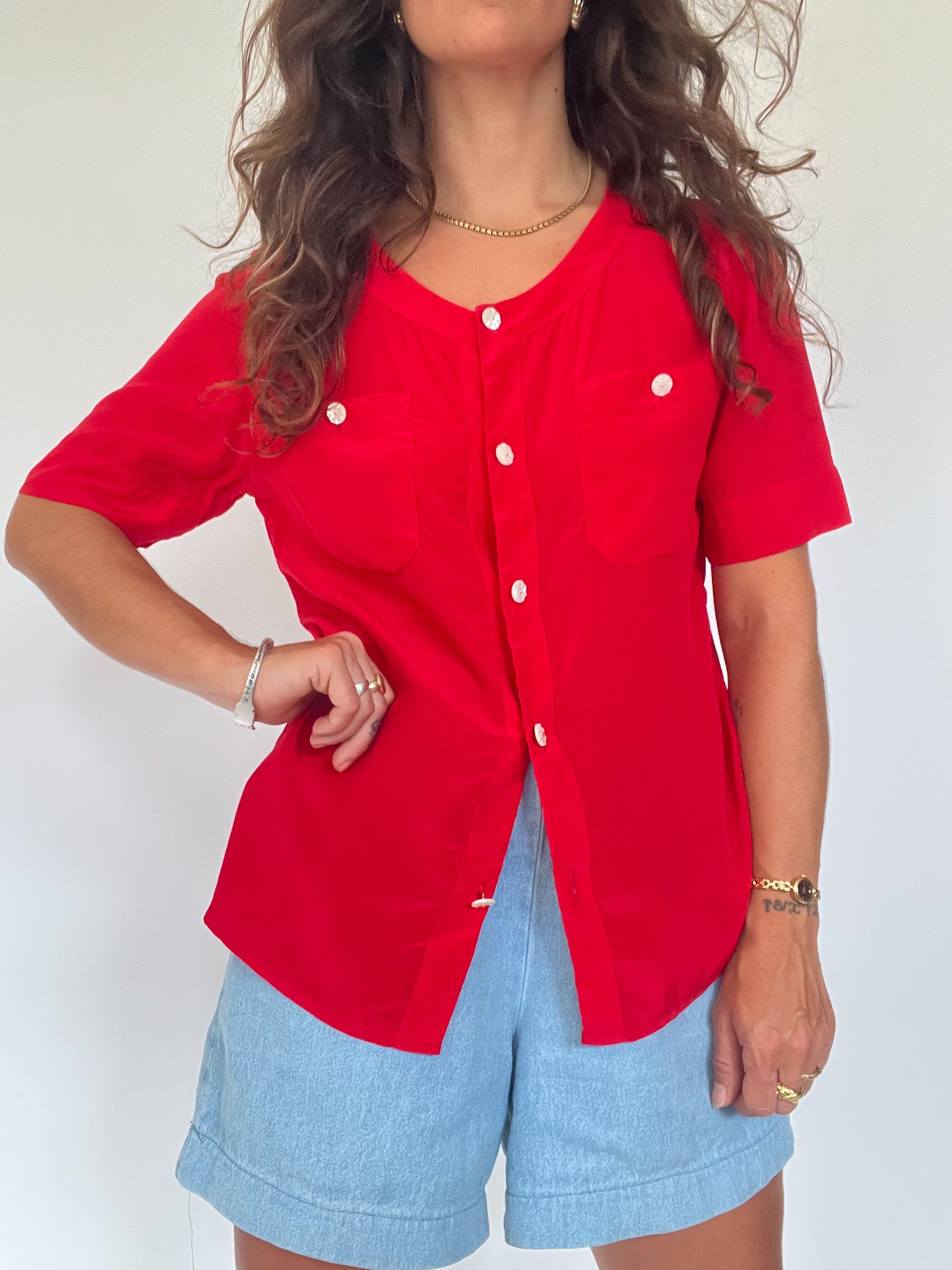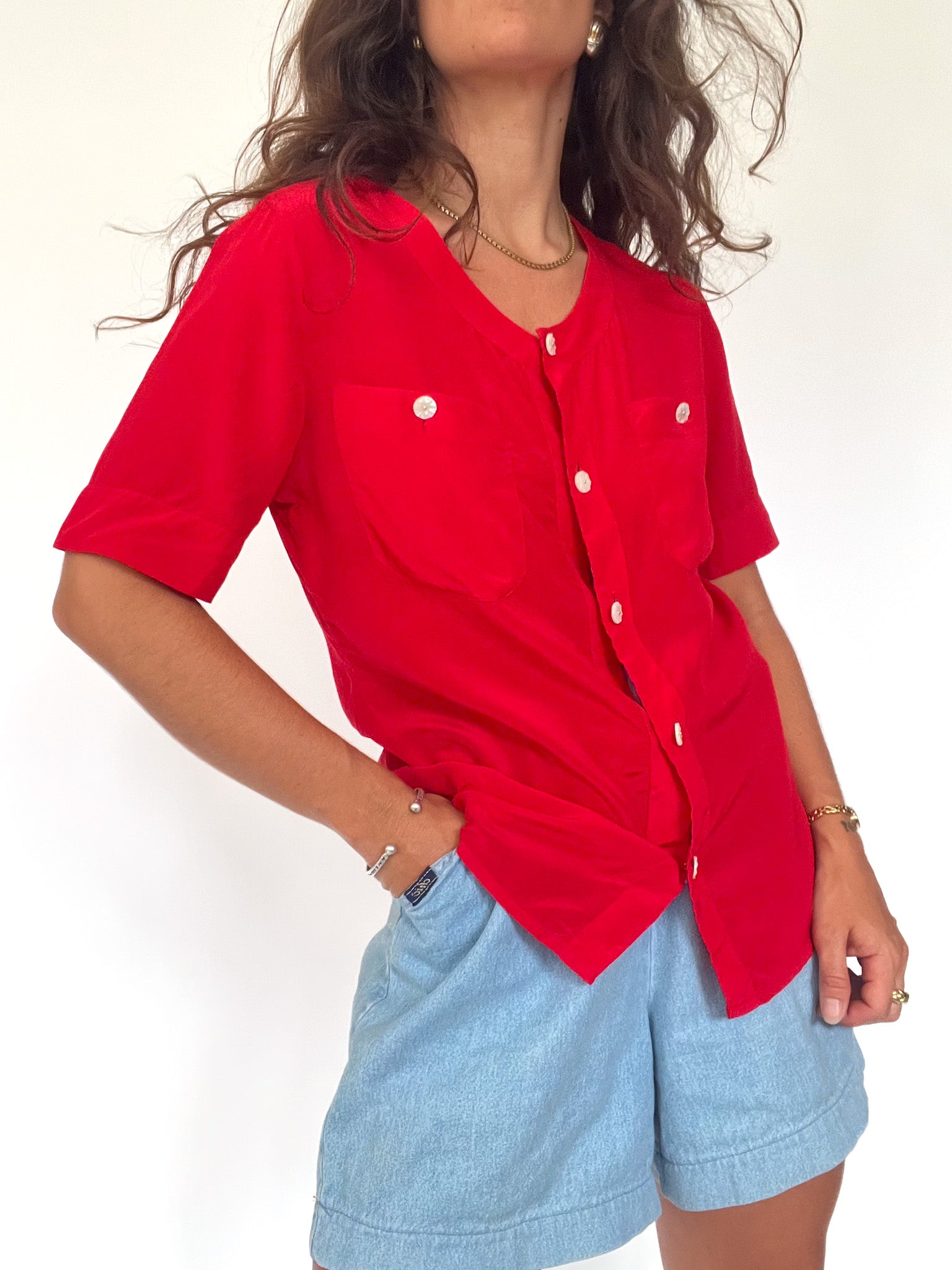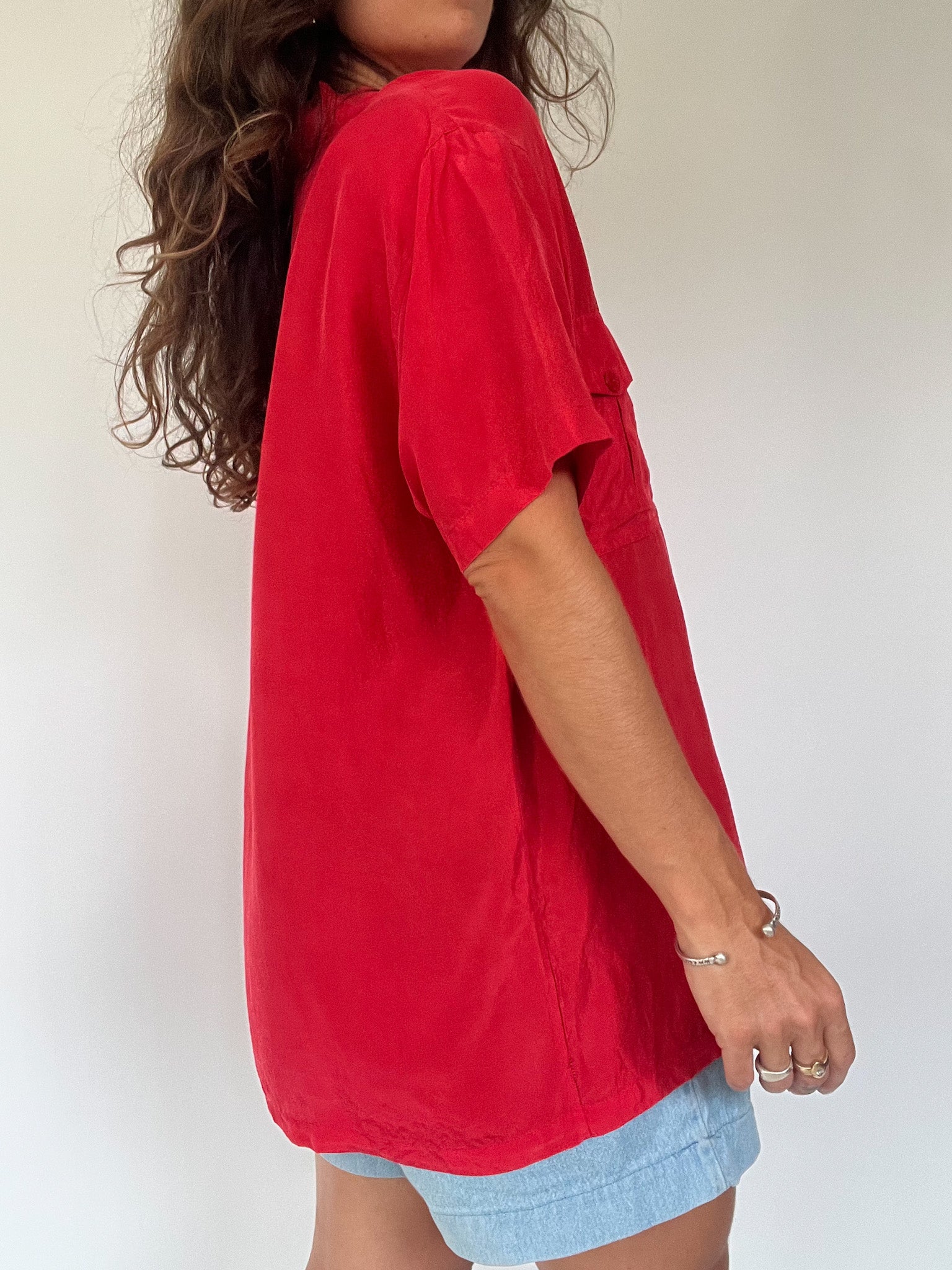 Vintage 90’s Cherry Red Silk Shirt with Pockets