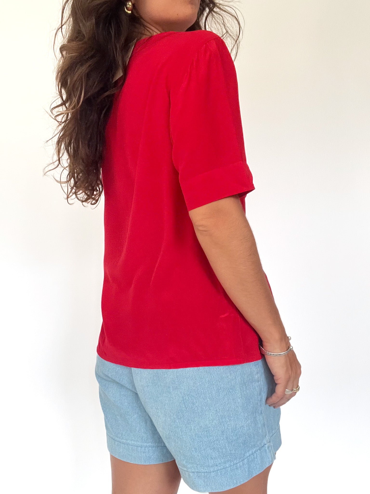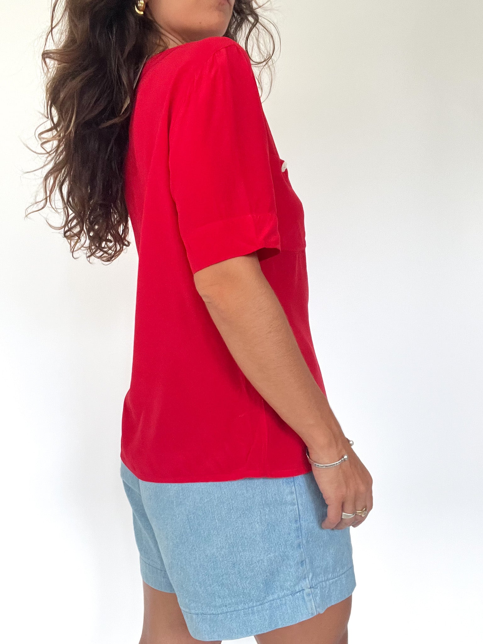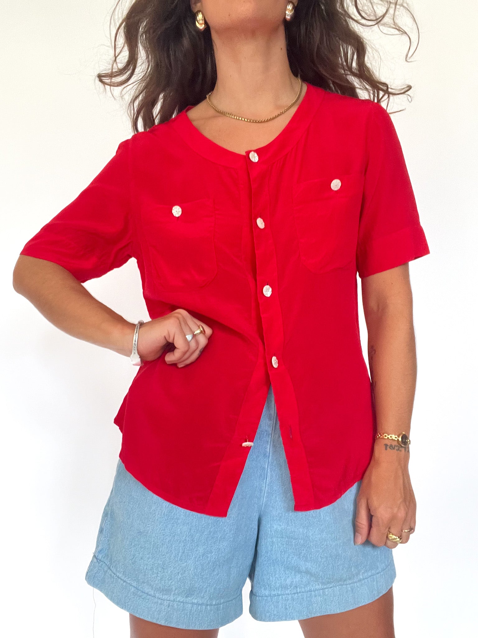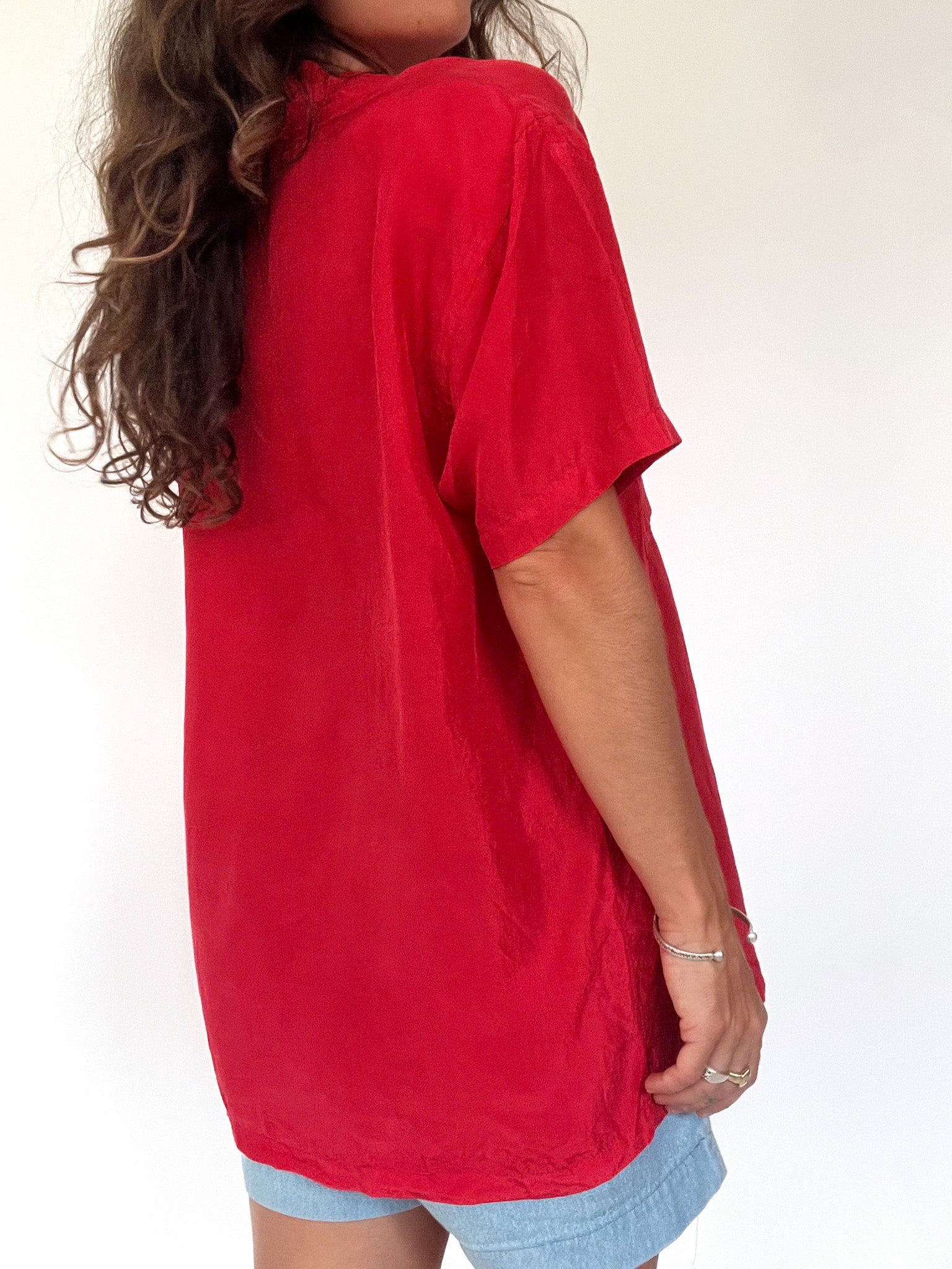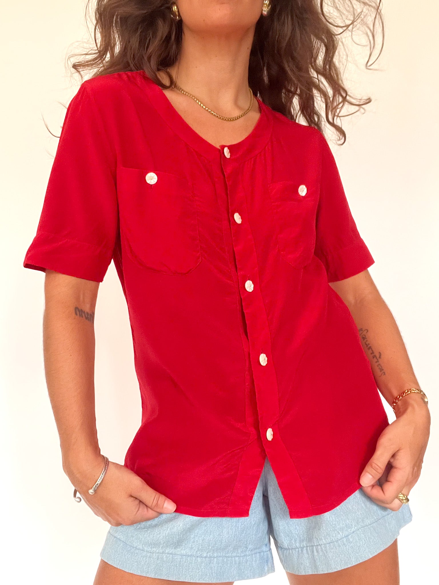 Vintage 90’s Cherry Red Silk Shirt with Pockets