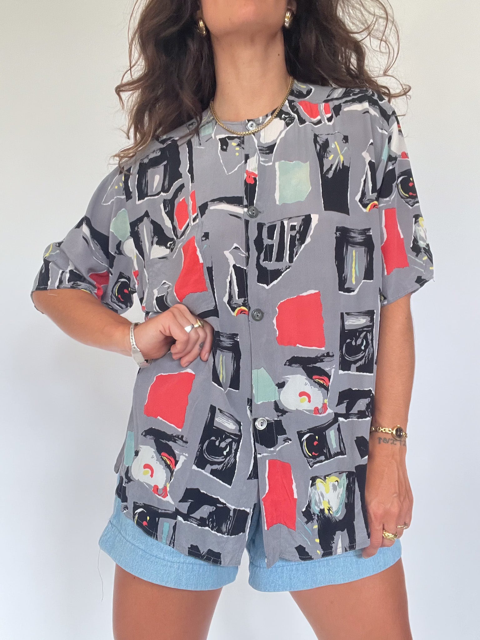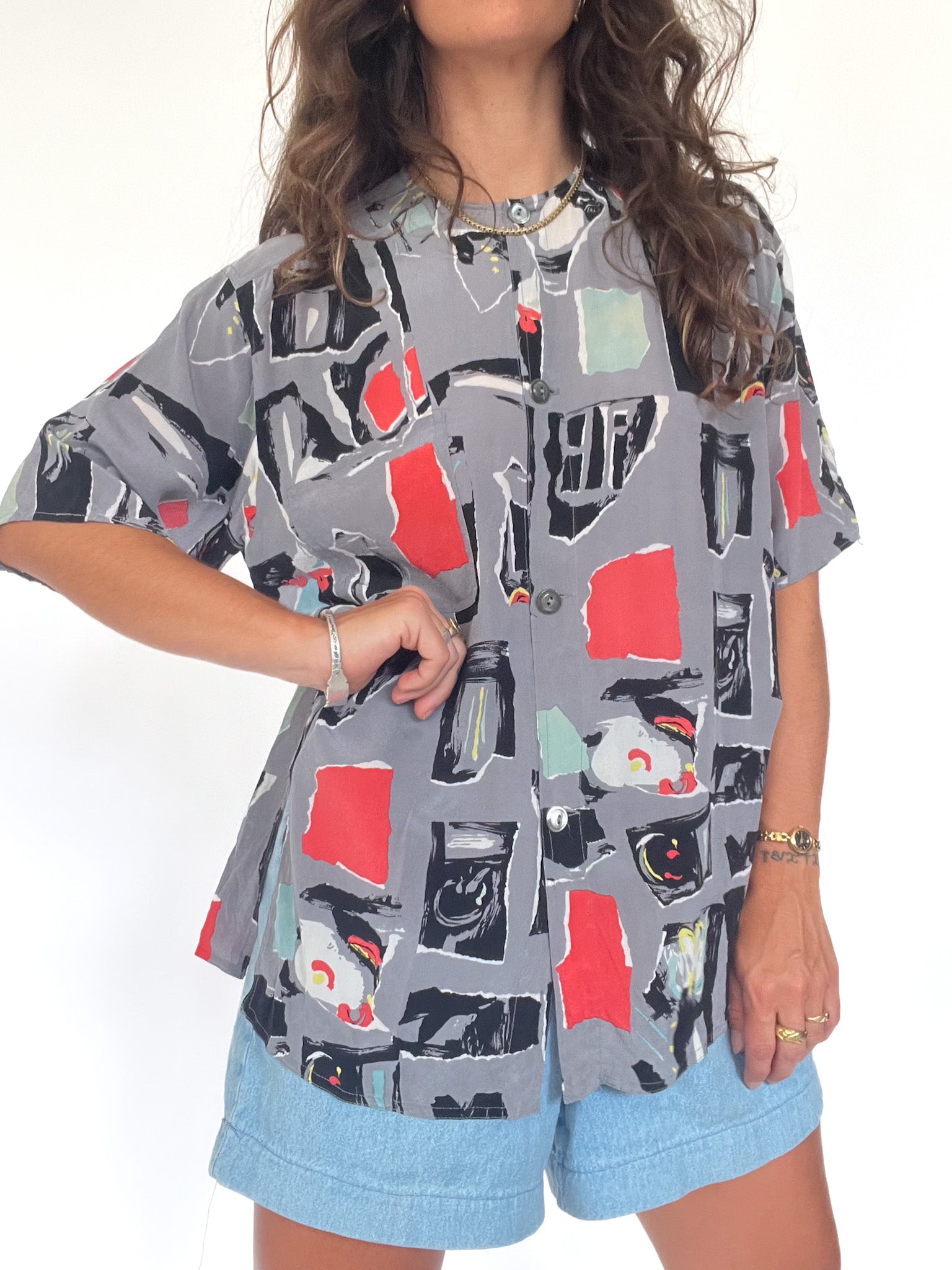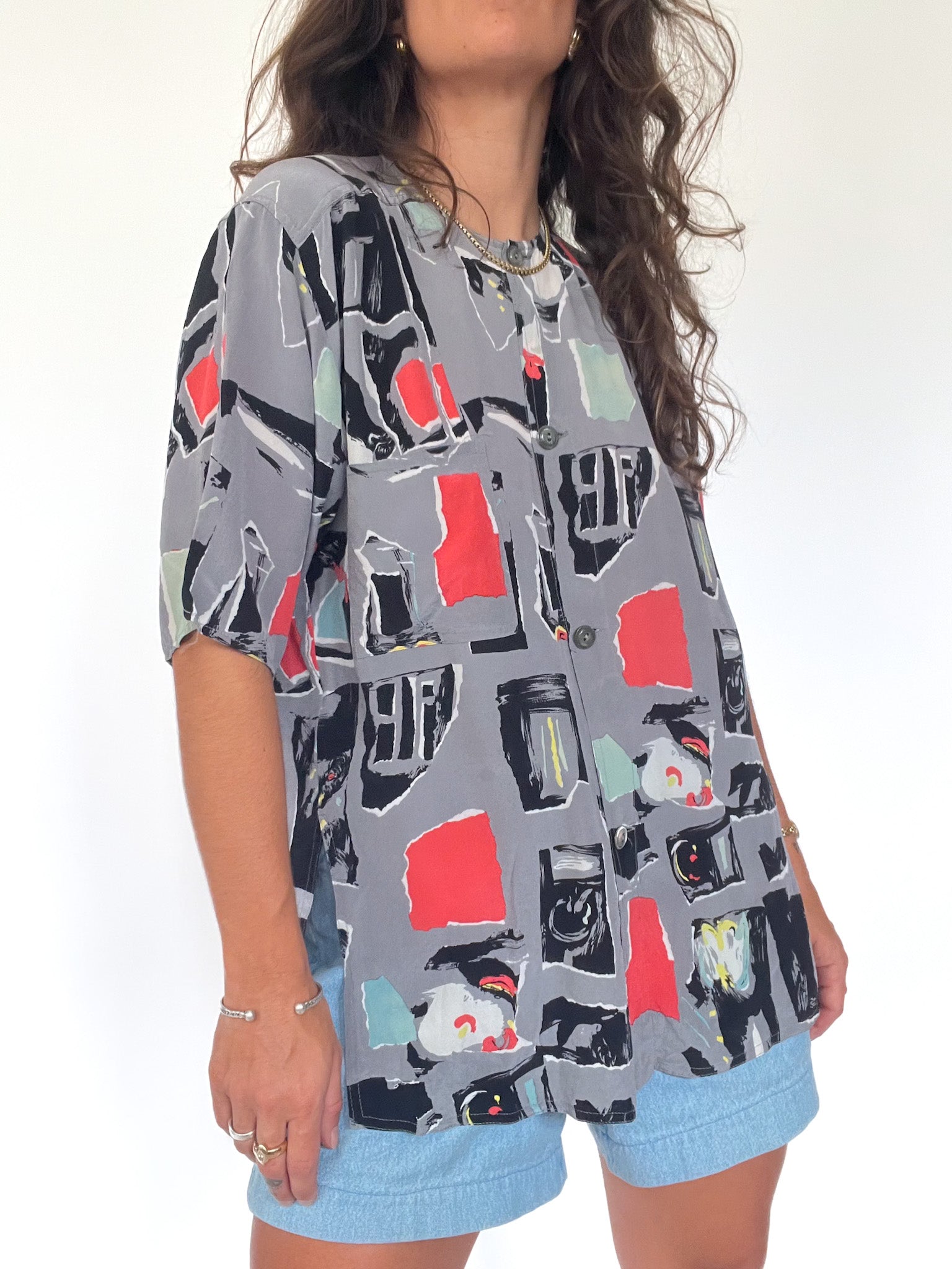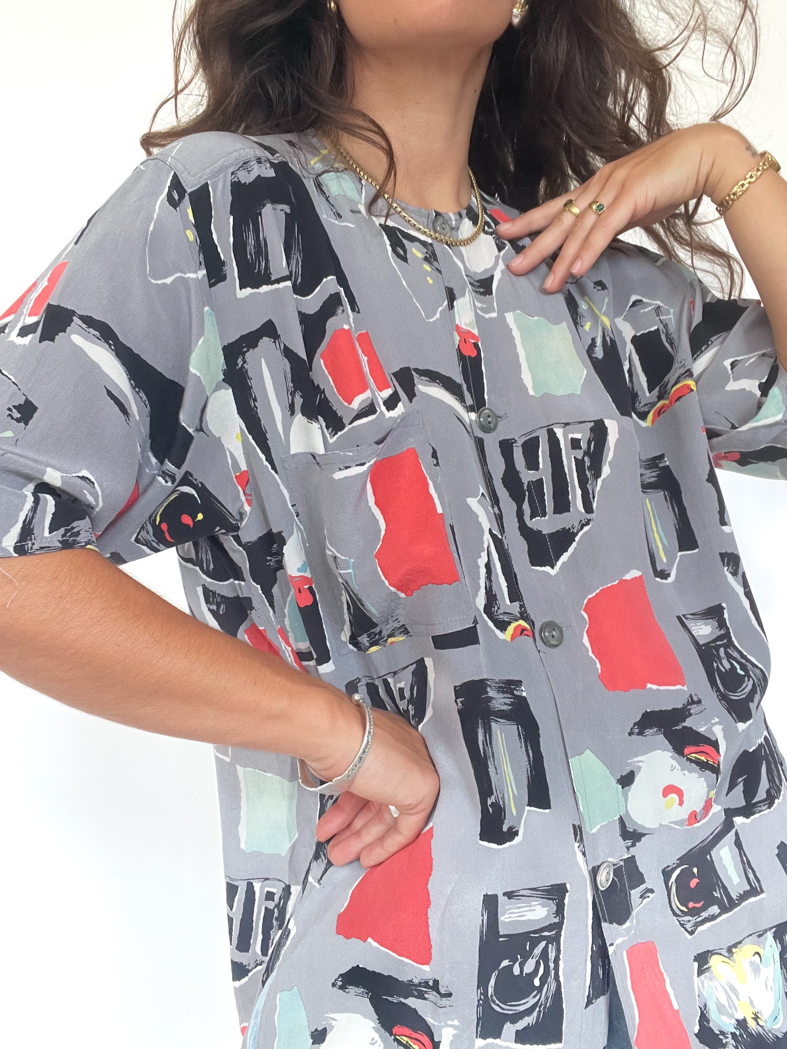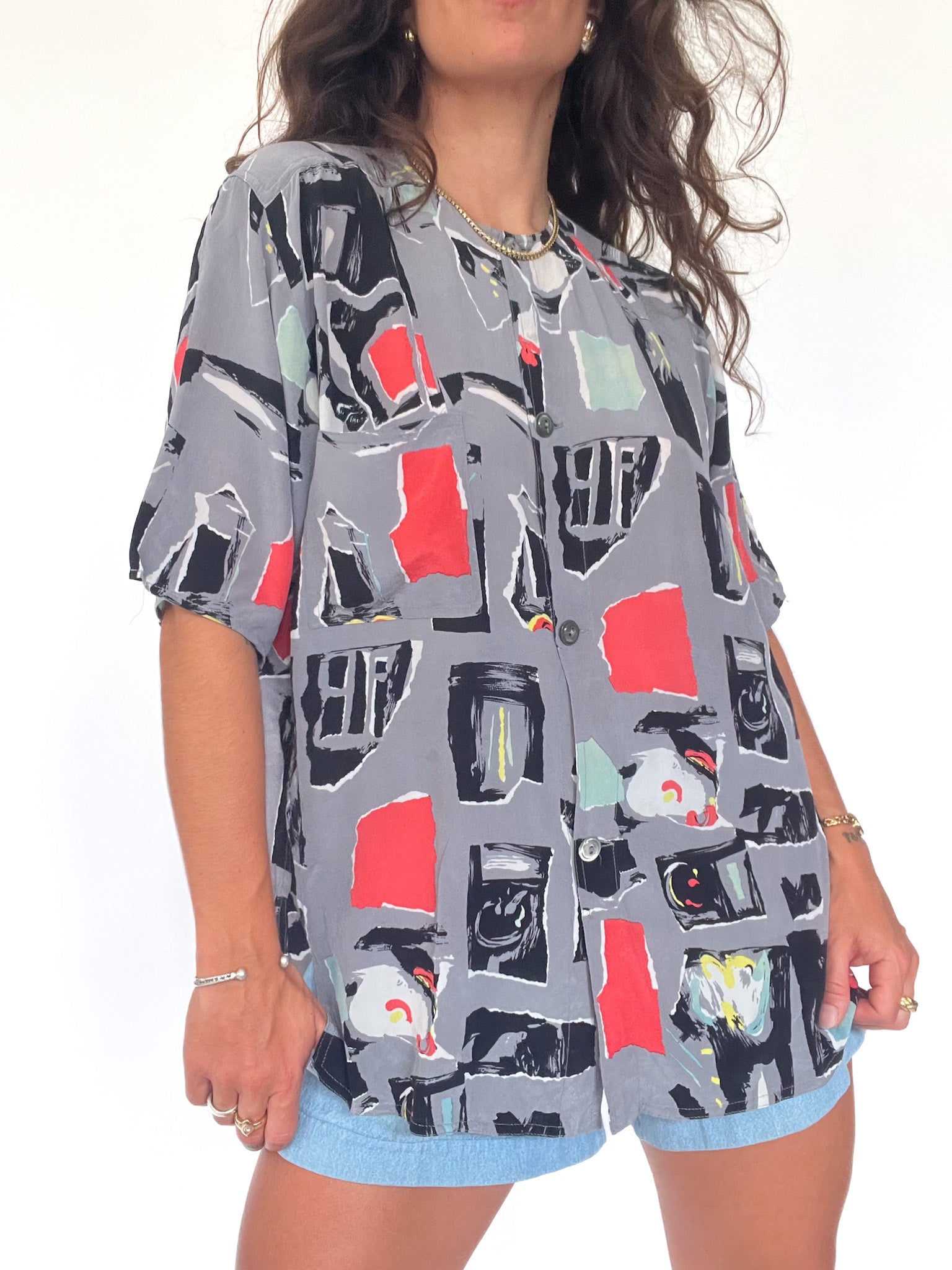 Vintage 90’s Abstract Grey Printed Silk Shirt