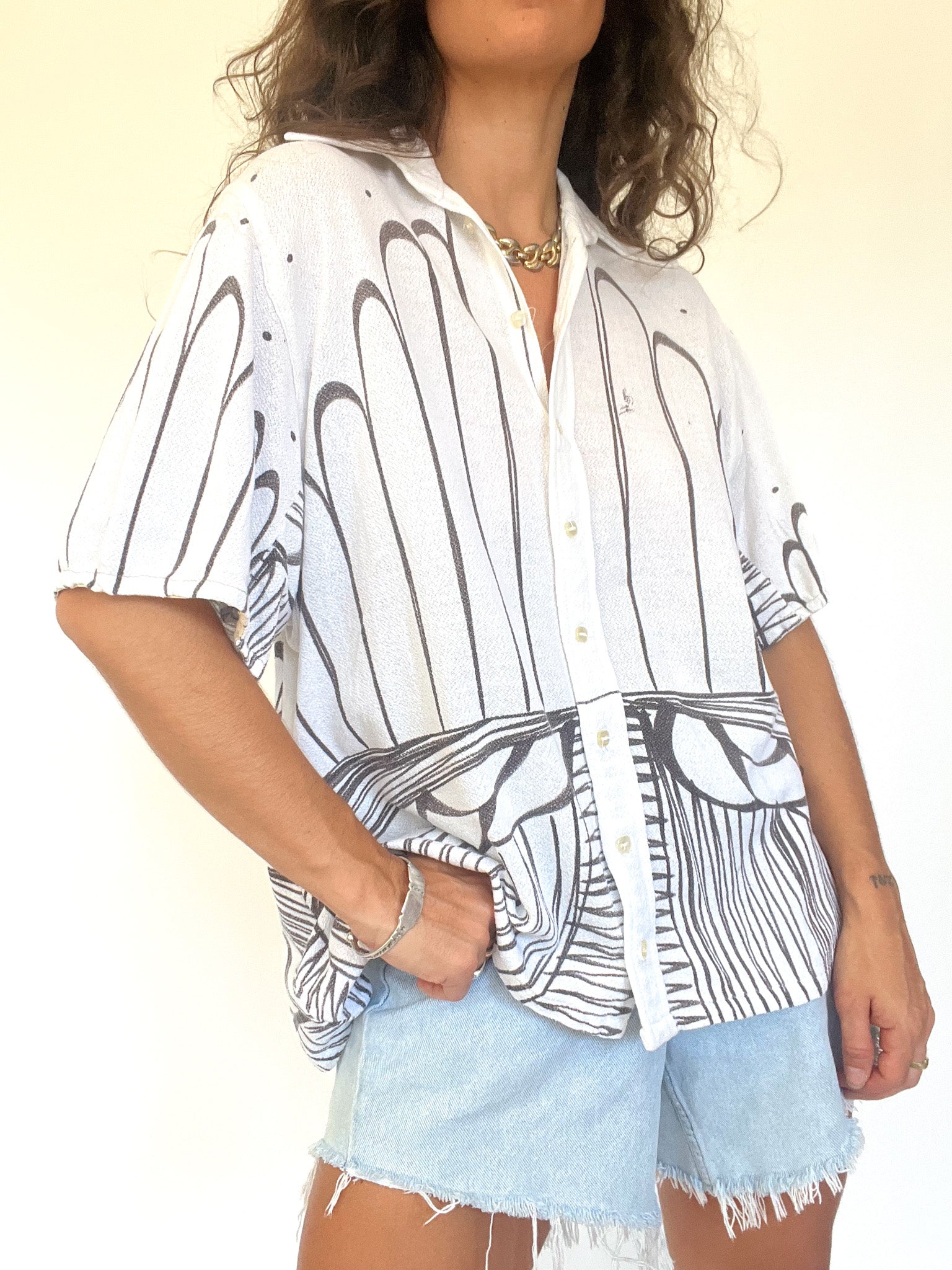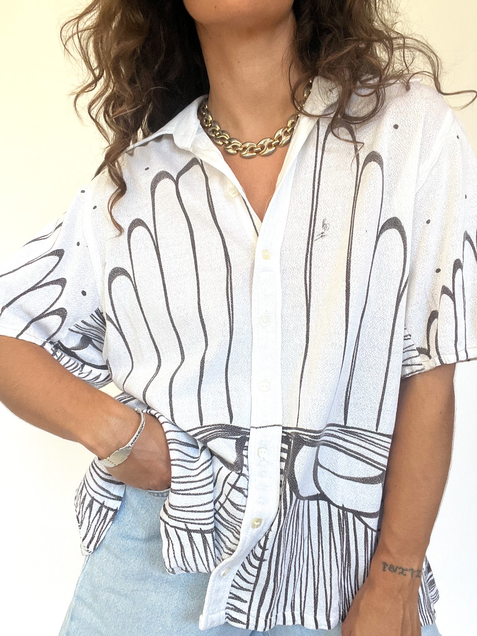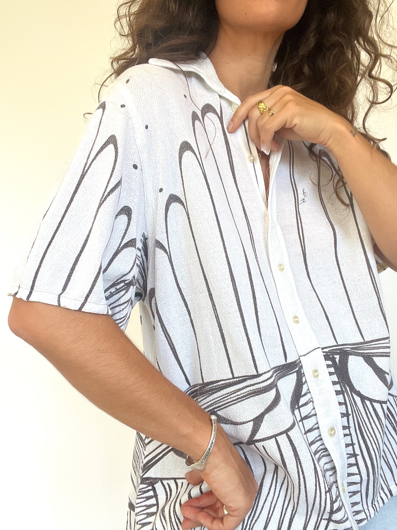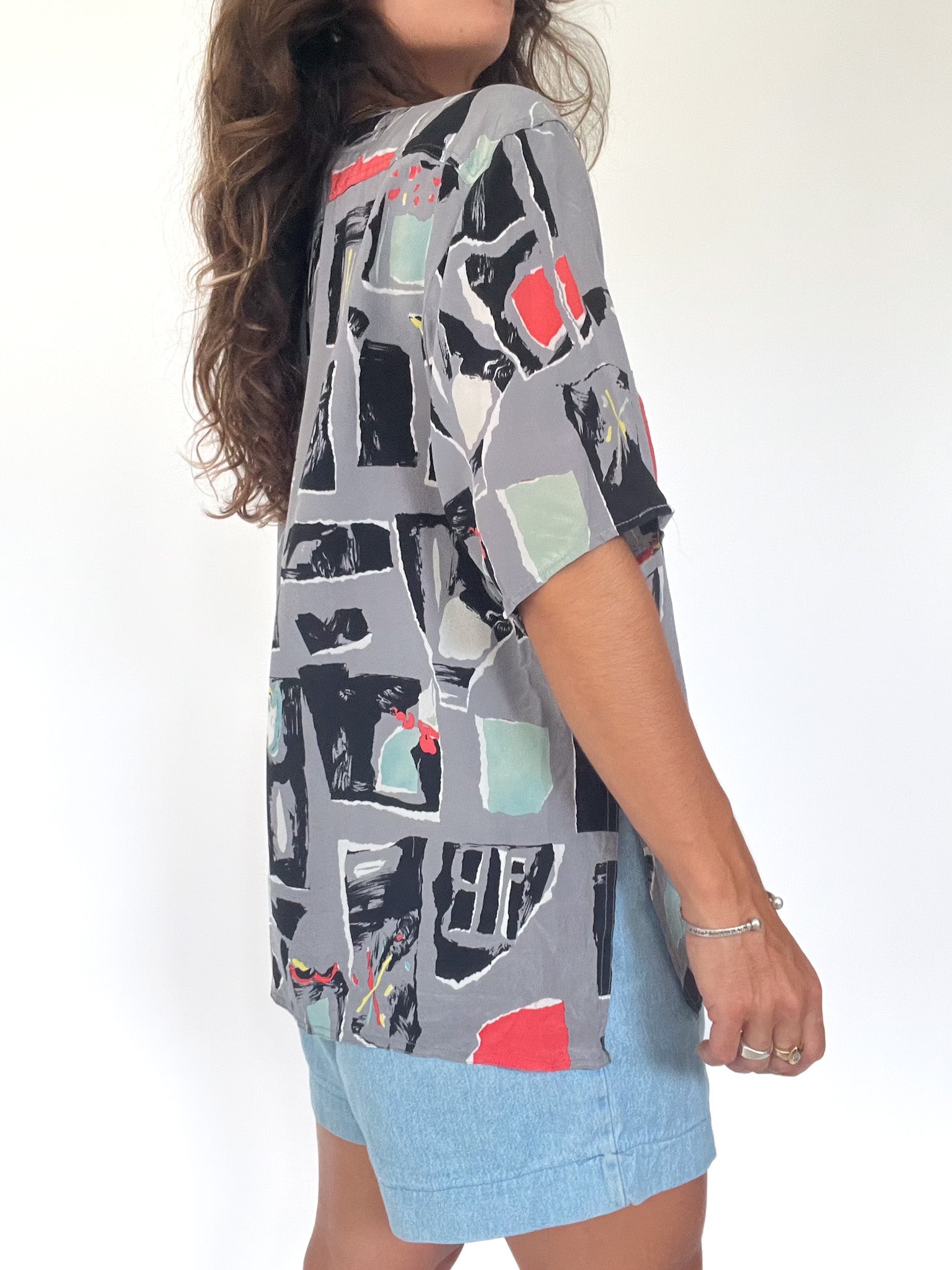 Vintage 90’s Abstract Grey Printed Silk Shirt