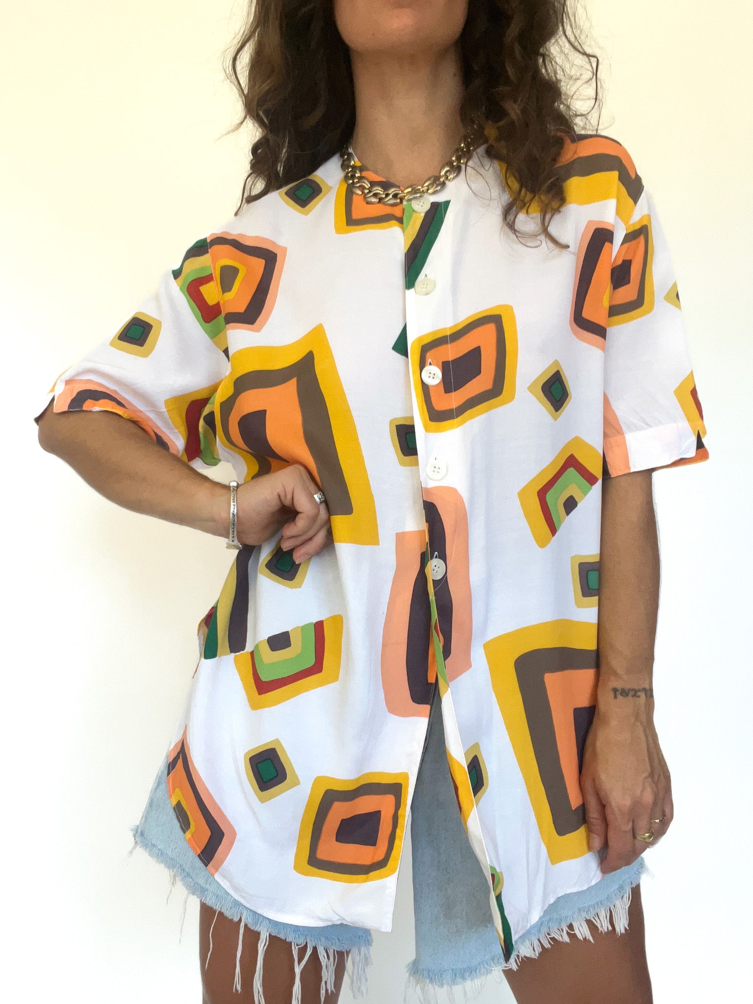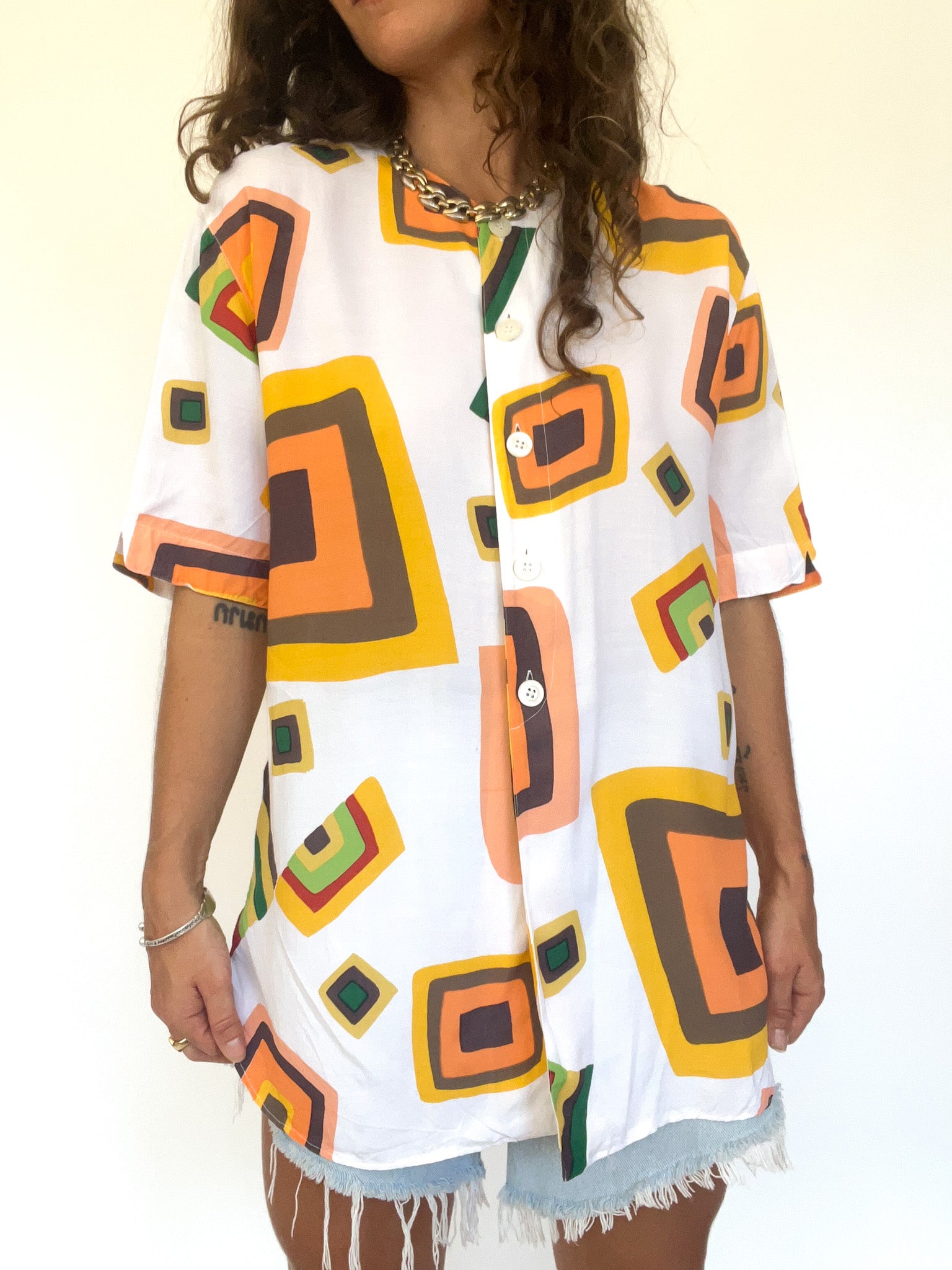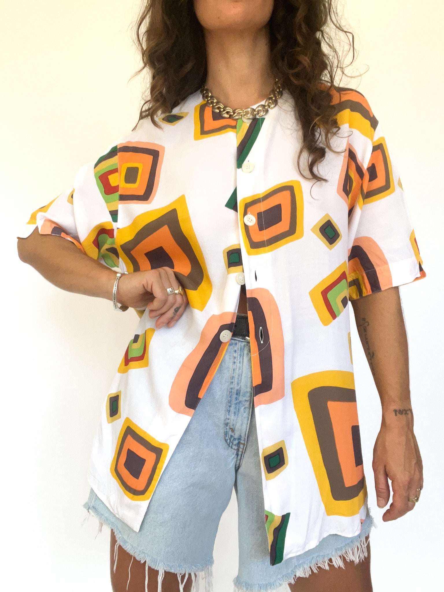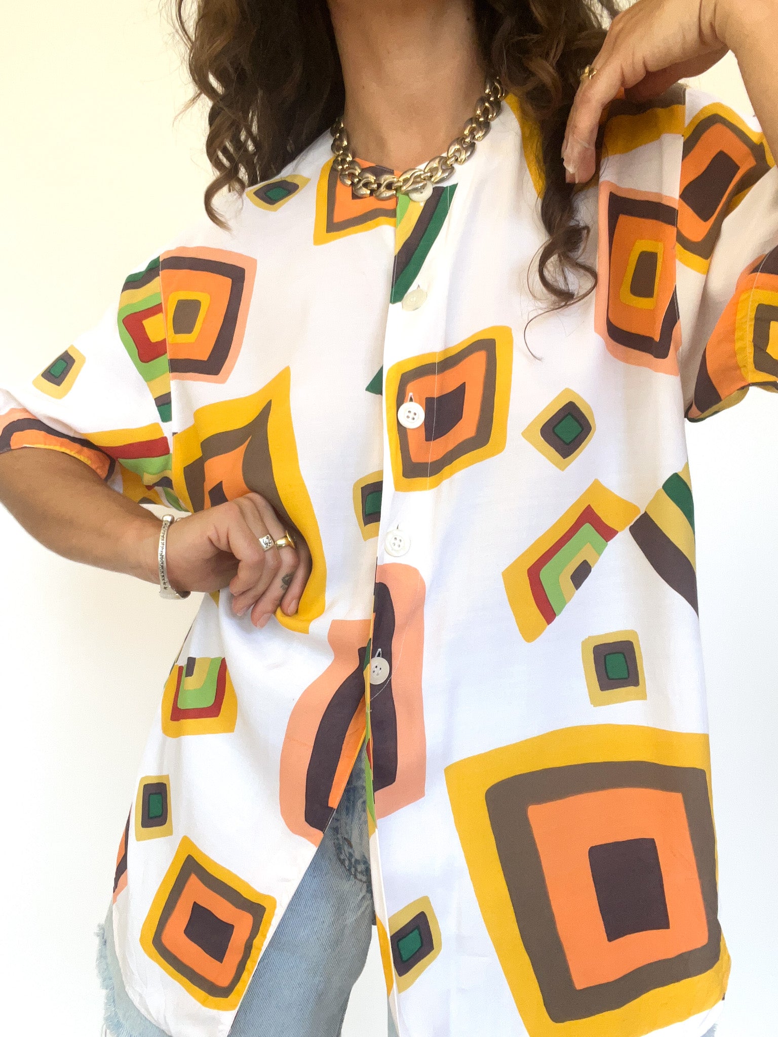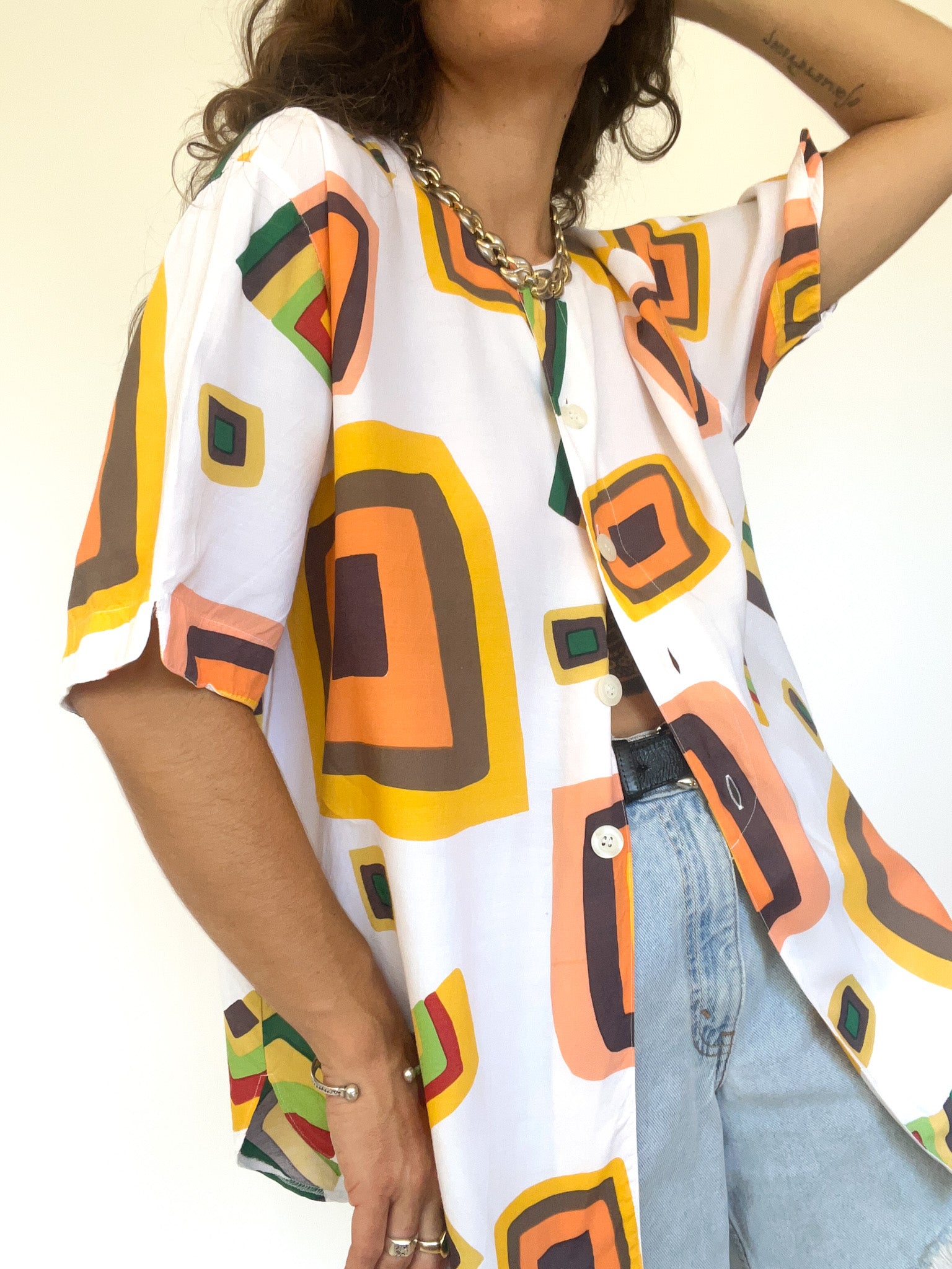 Vintage 90’s Abstract Grey Printed Silk Shirt