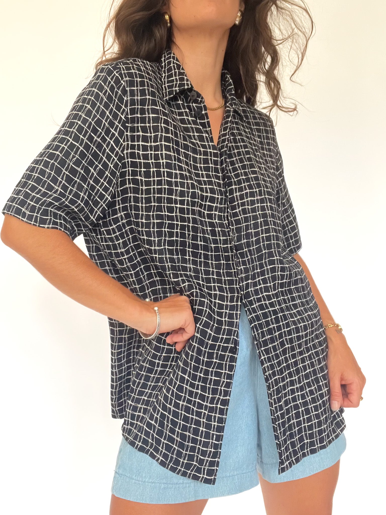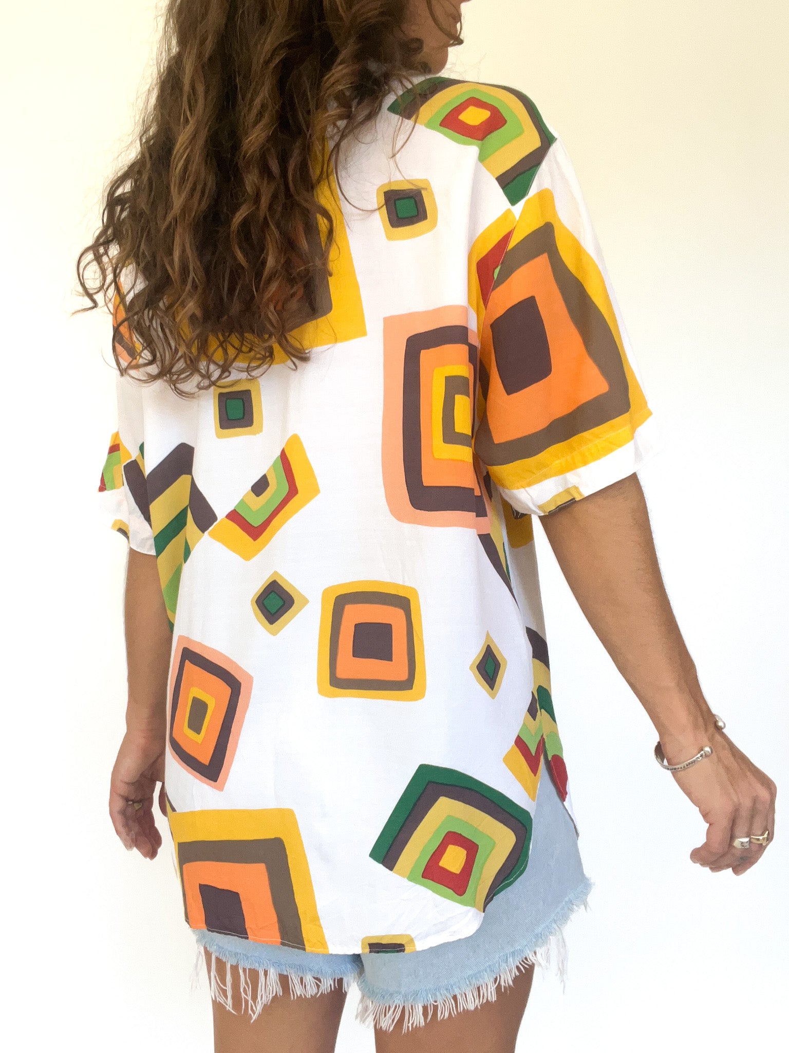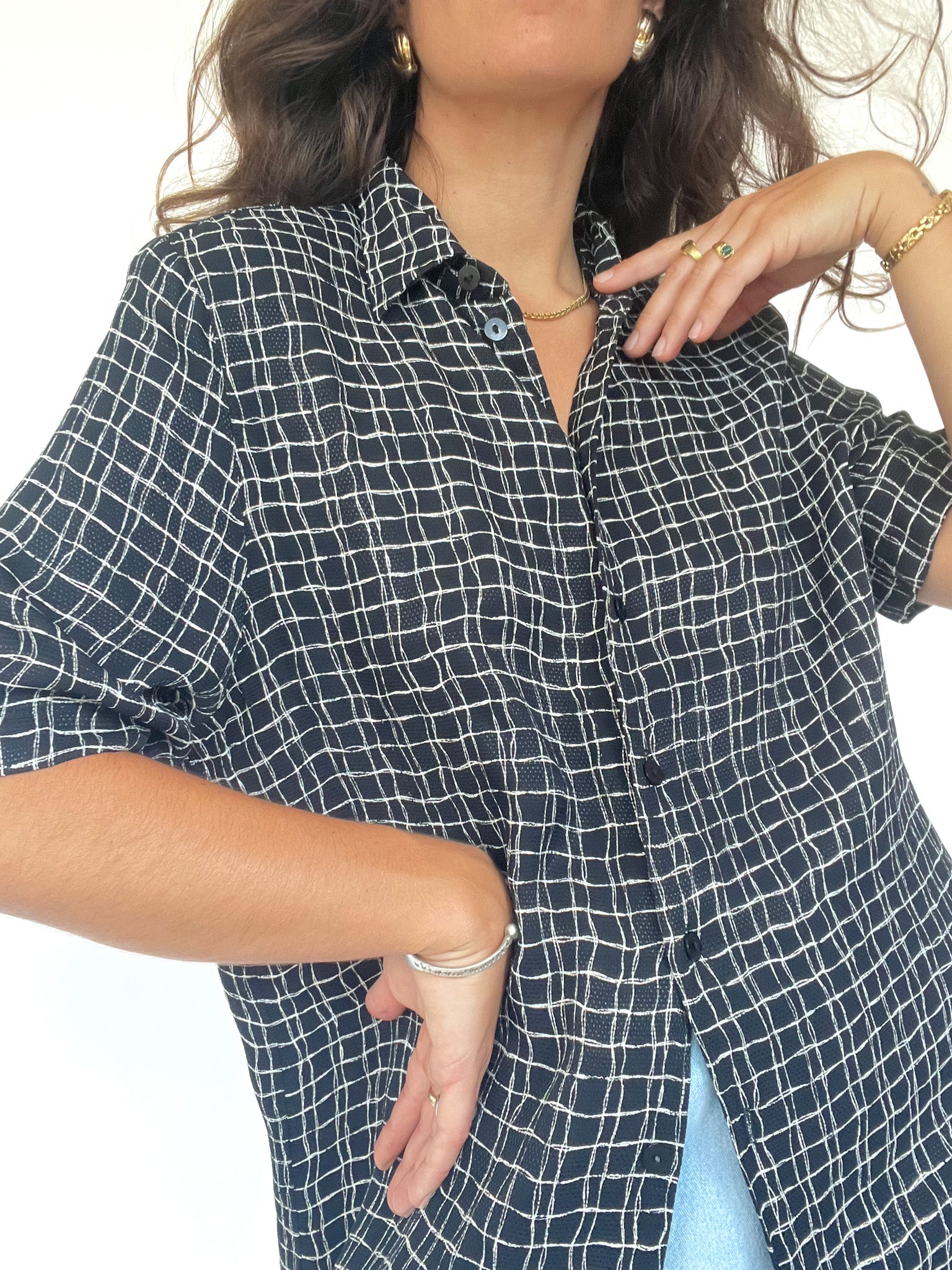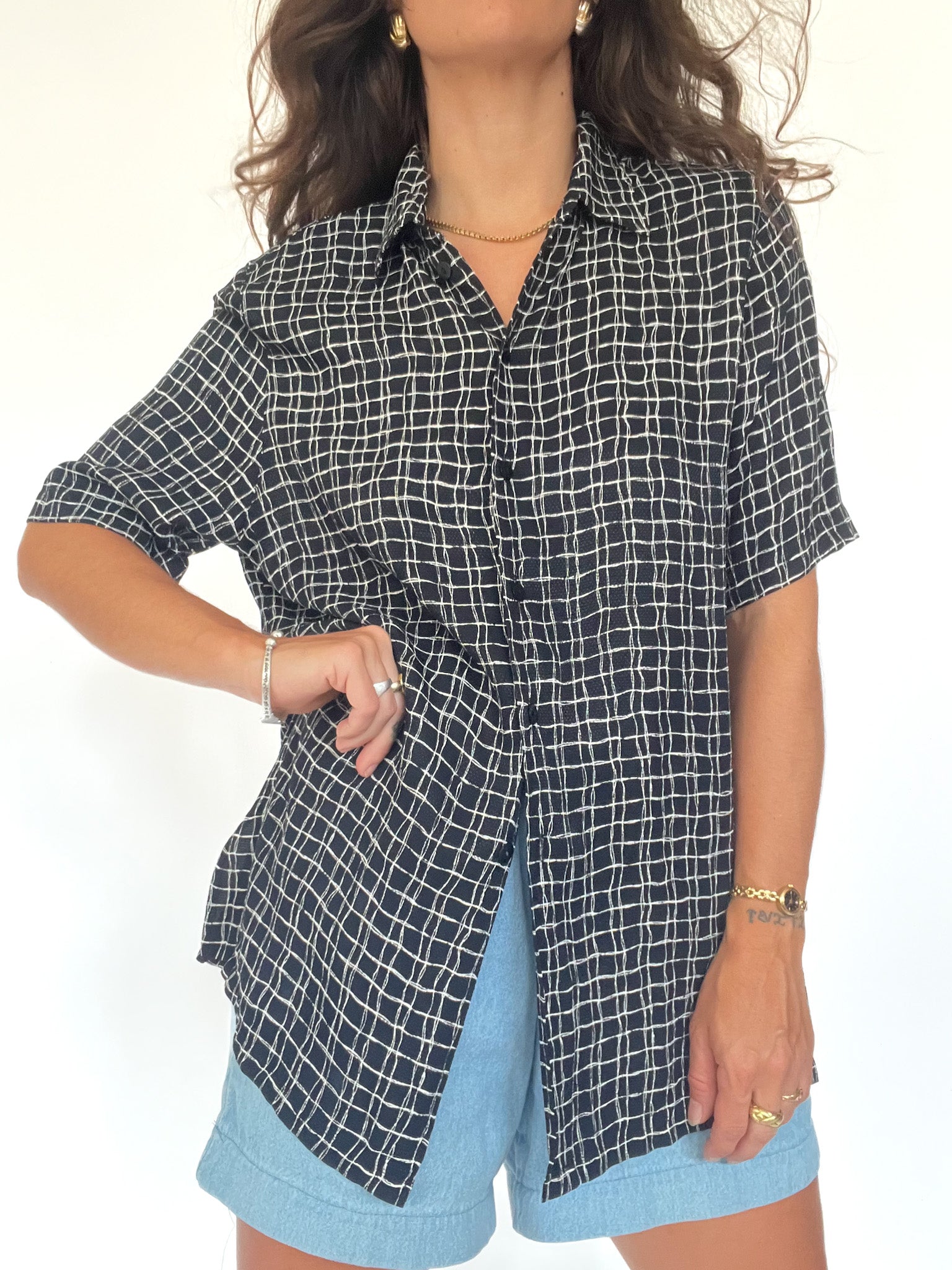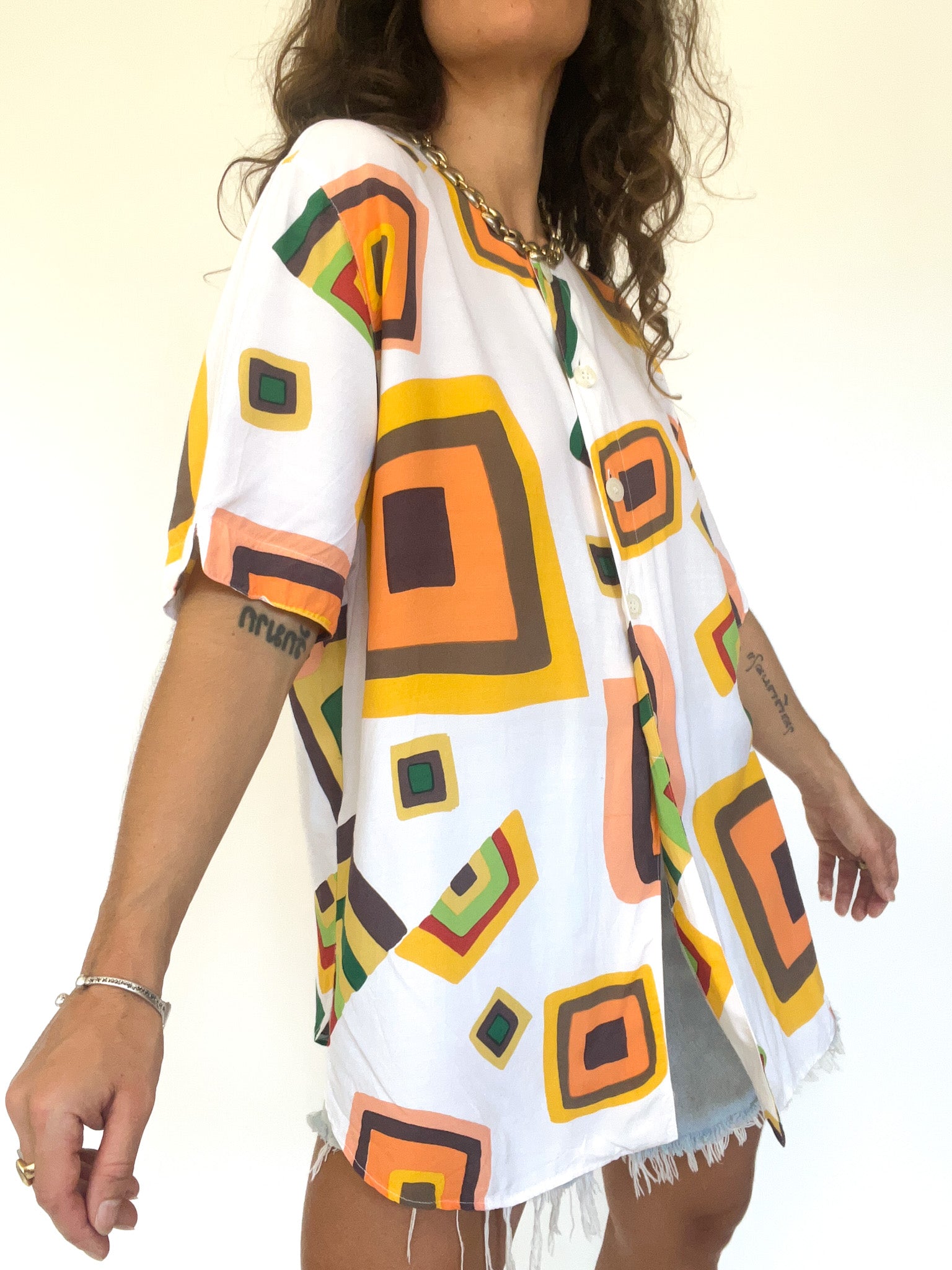 Vintage 90’s Abstract Grey Printed Silk Shirt