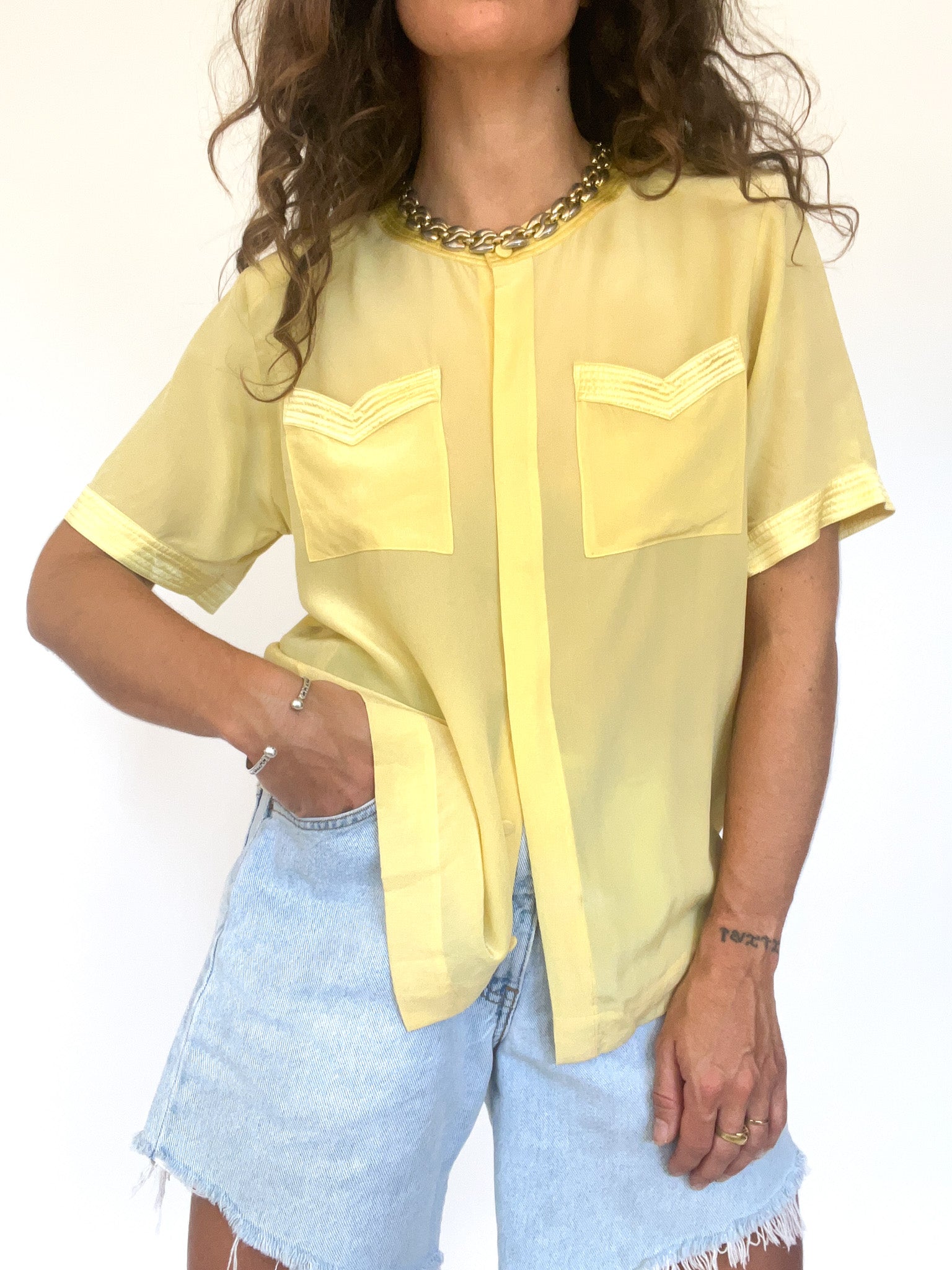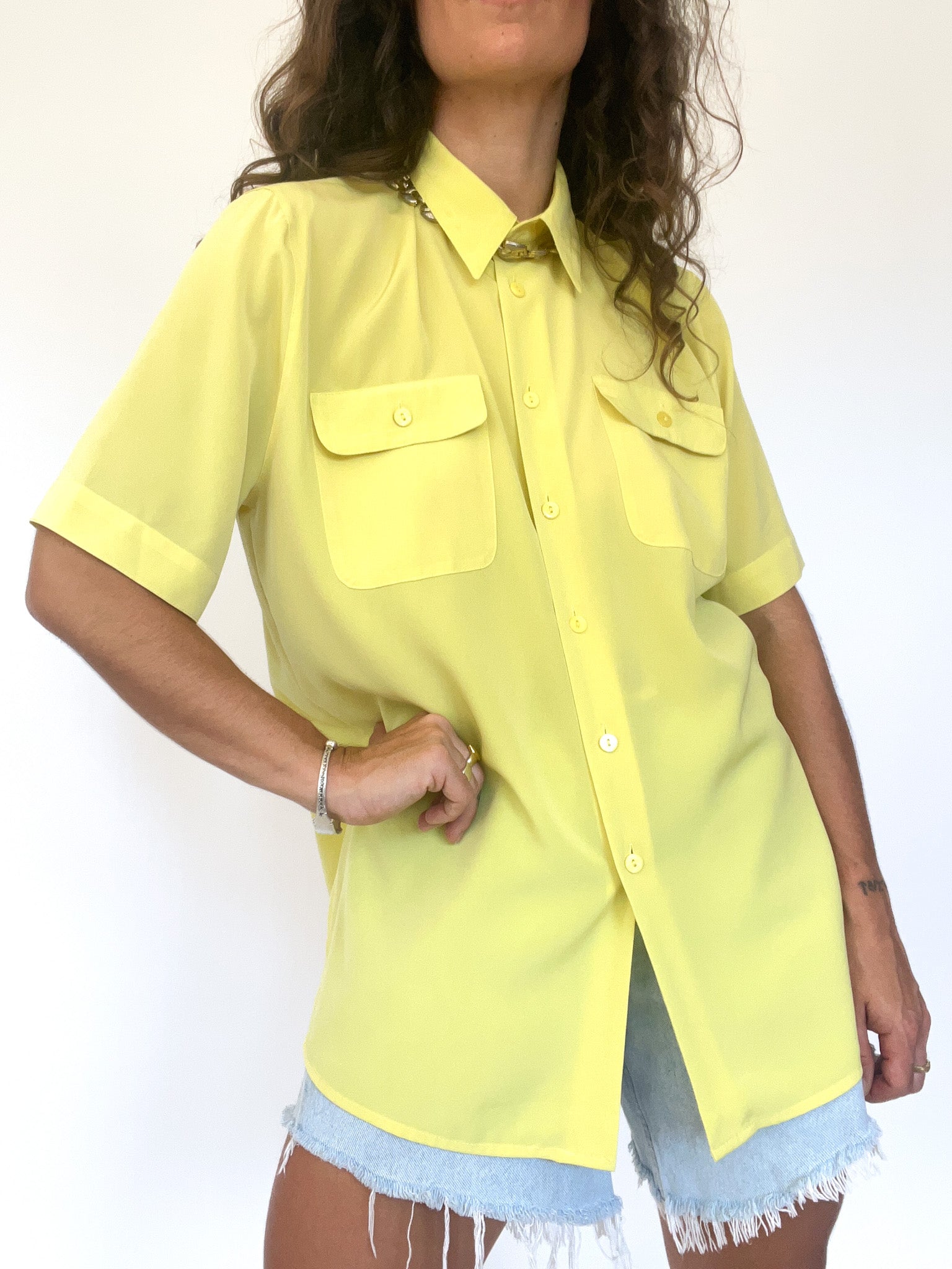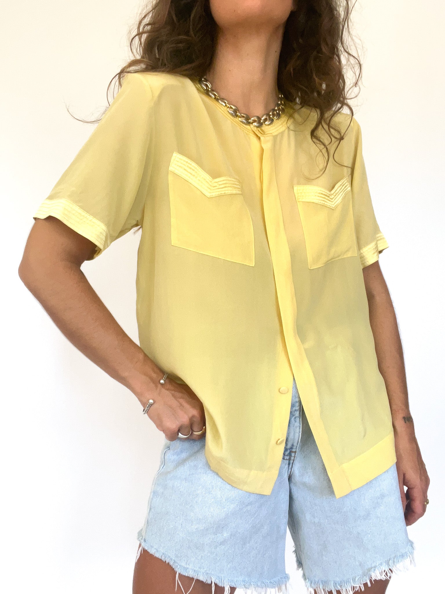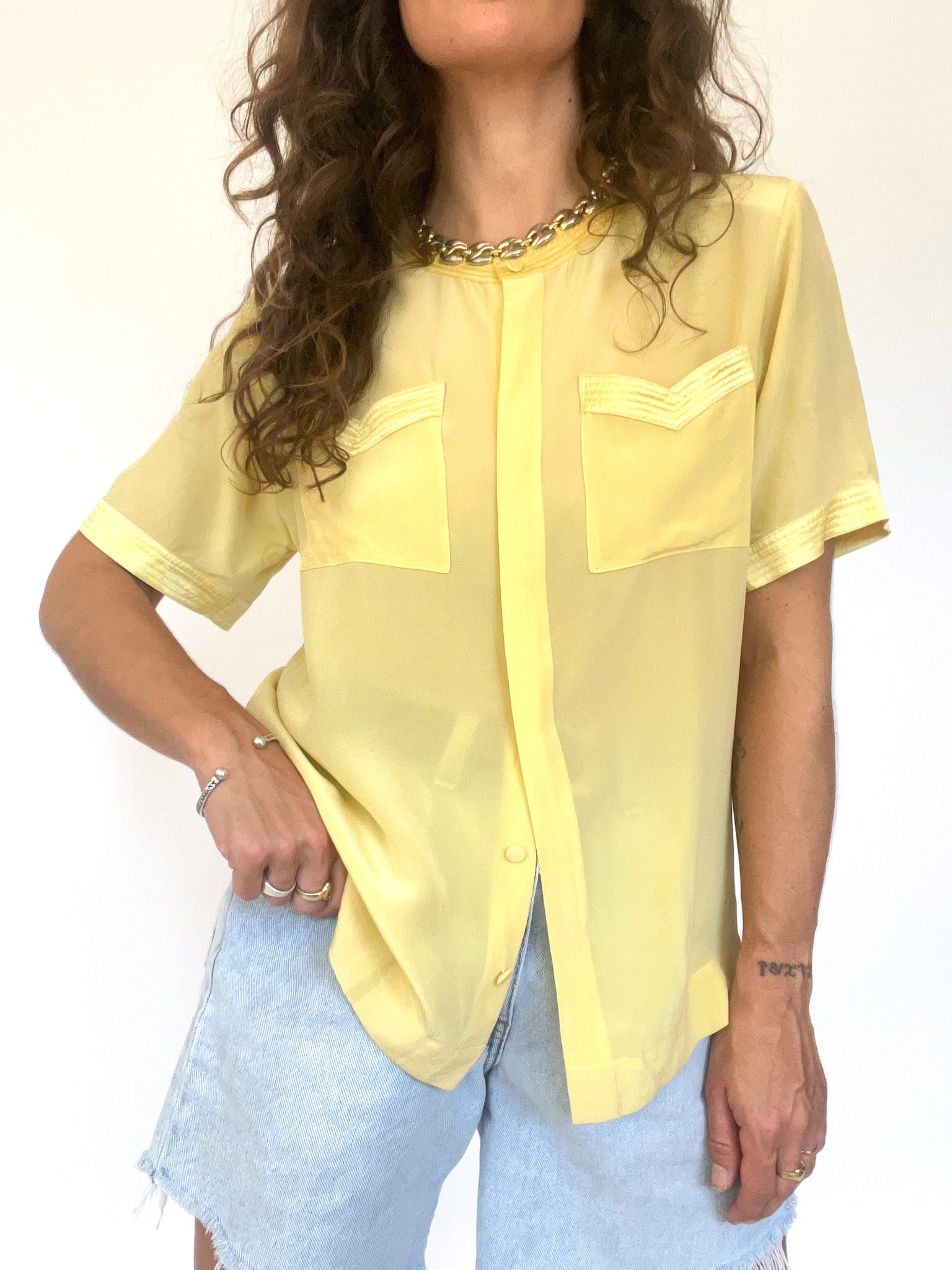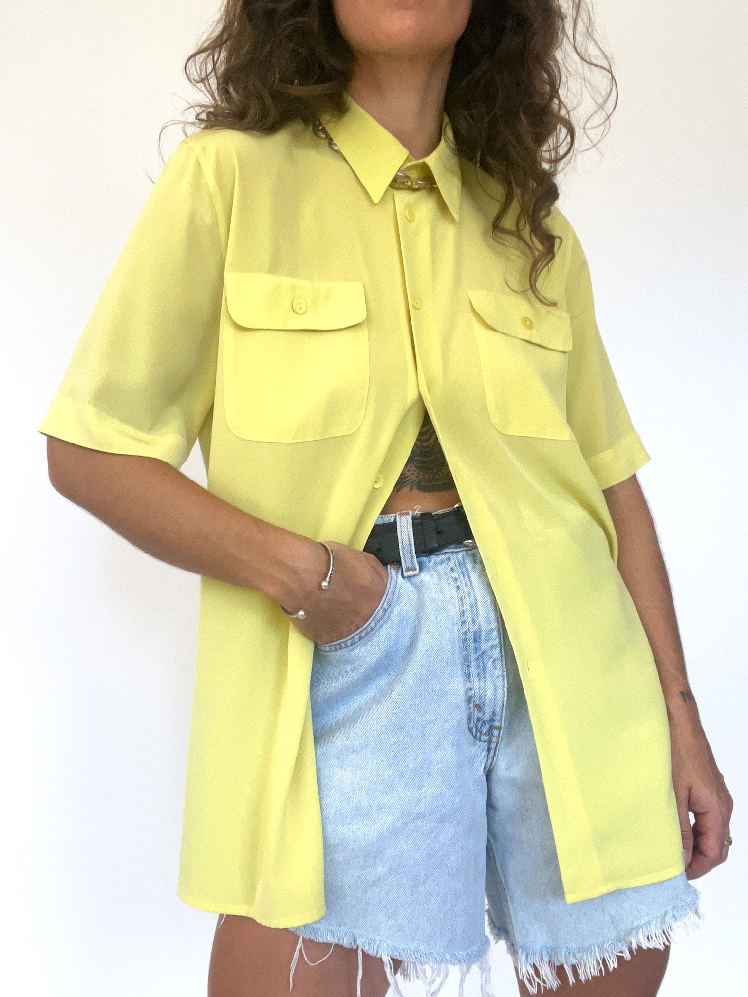 Vintage 90’s Pastel Yellow Silk Short Sleeve Shirt