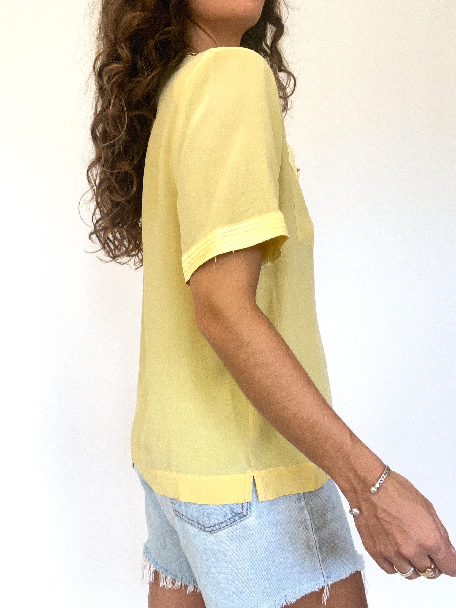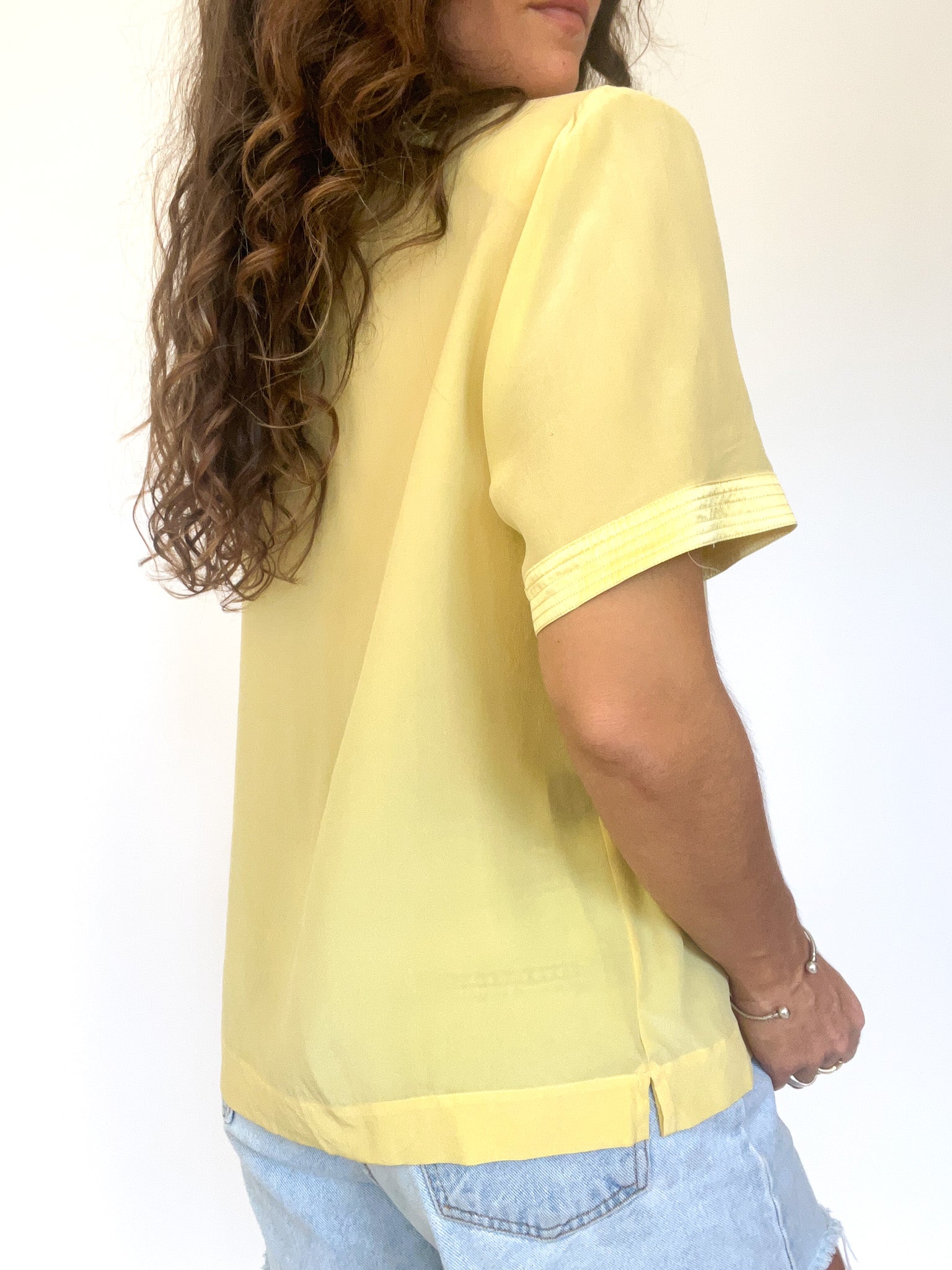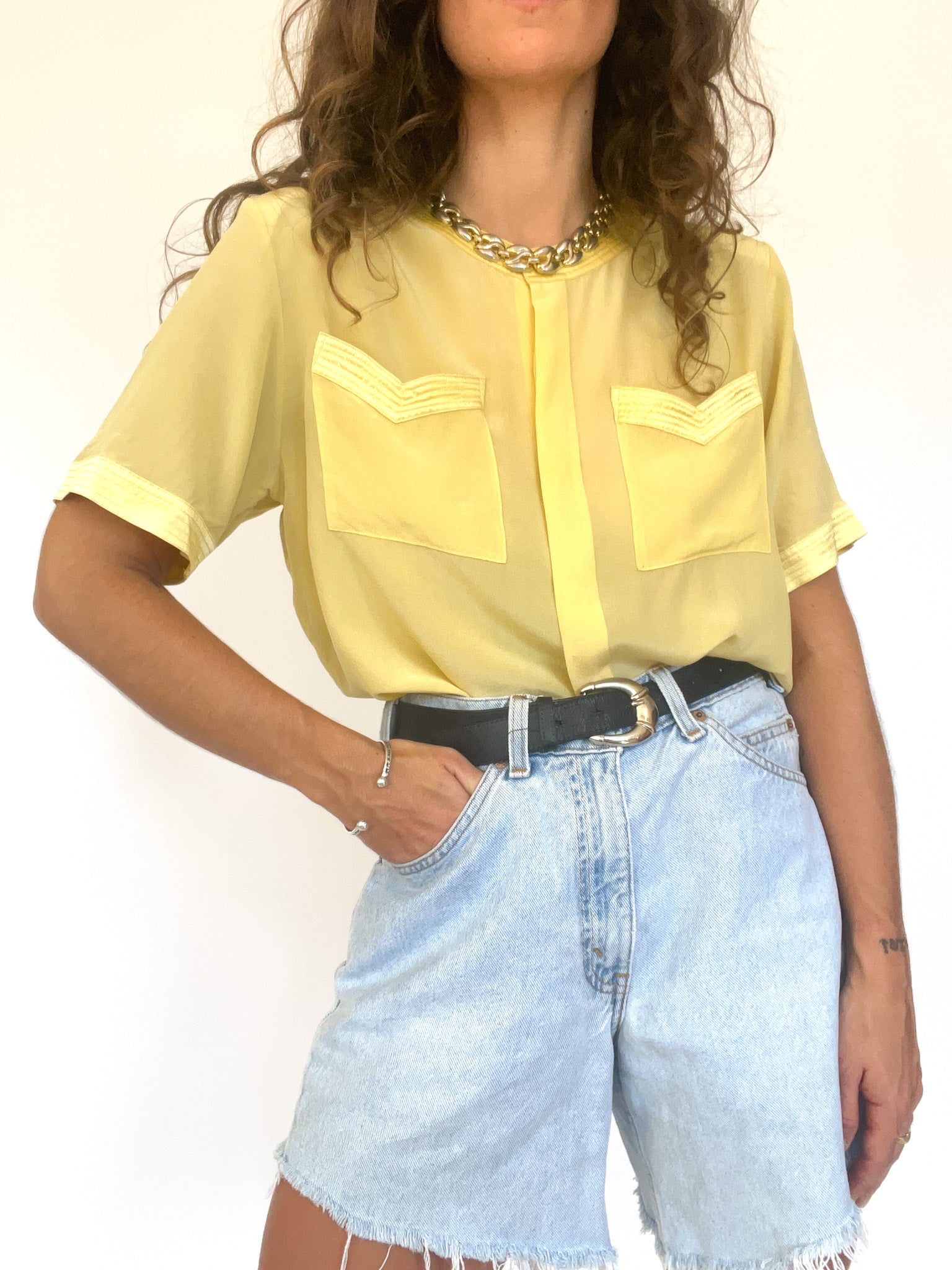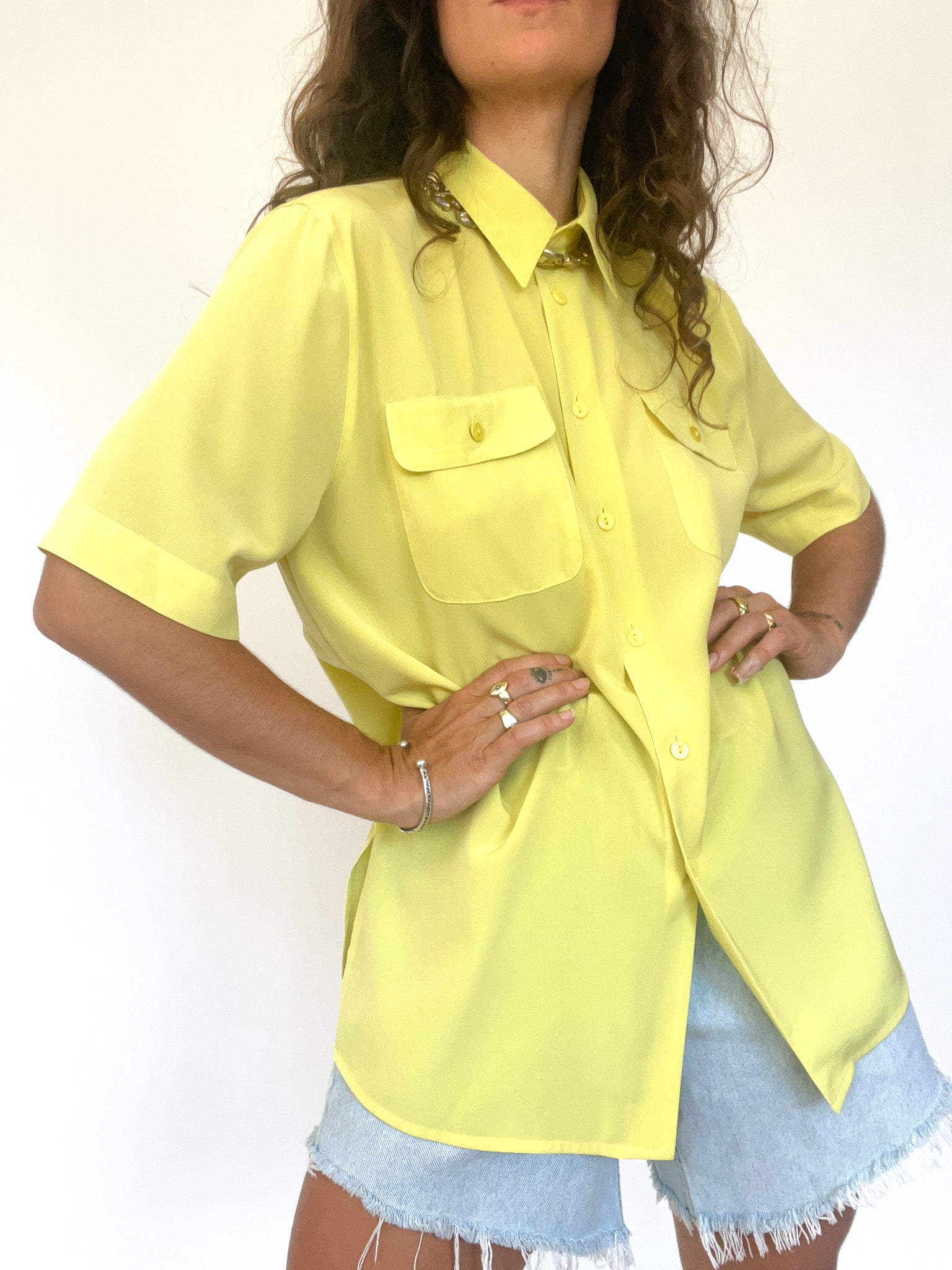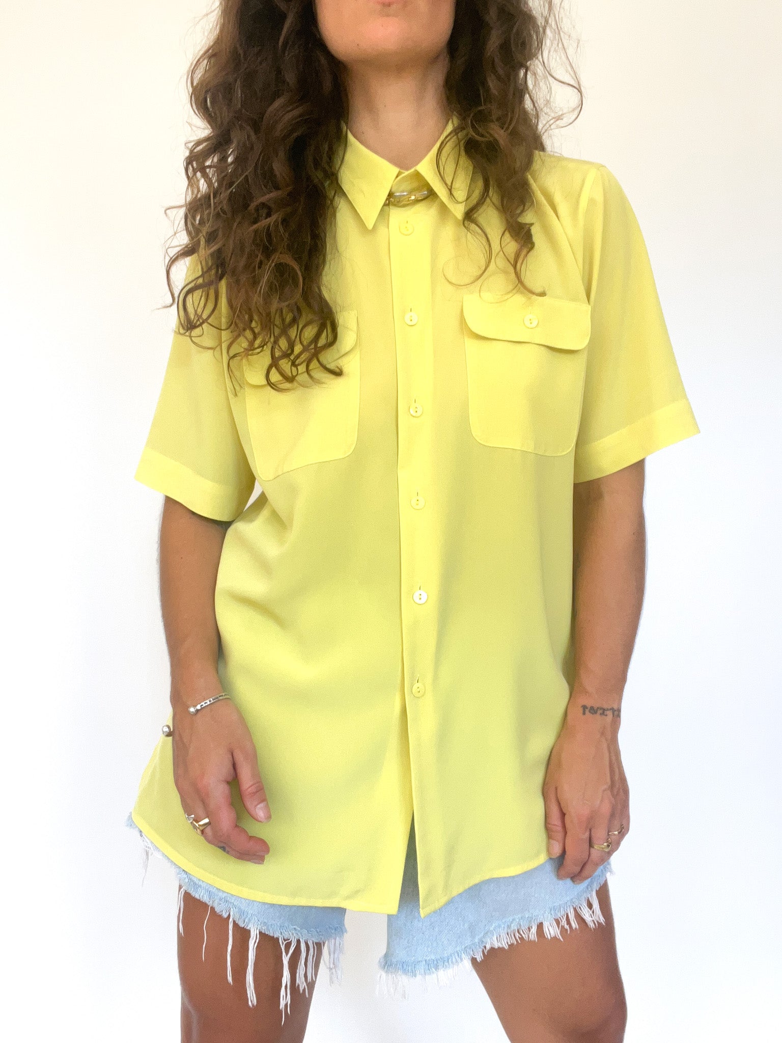 Vintage 90’s Pastel Yellow Silk Short Sleeve Shirt