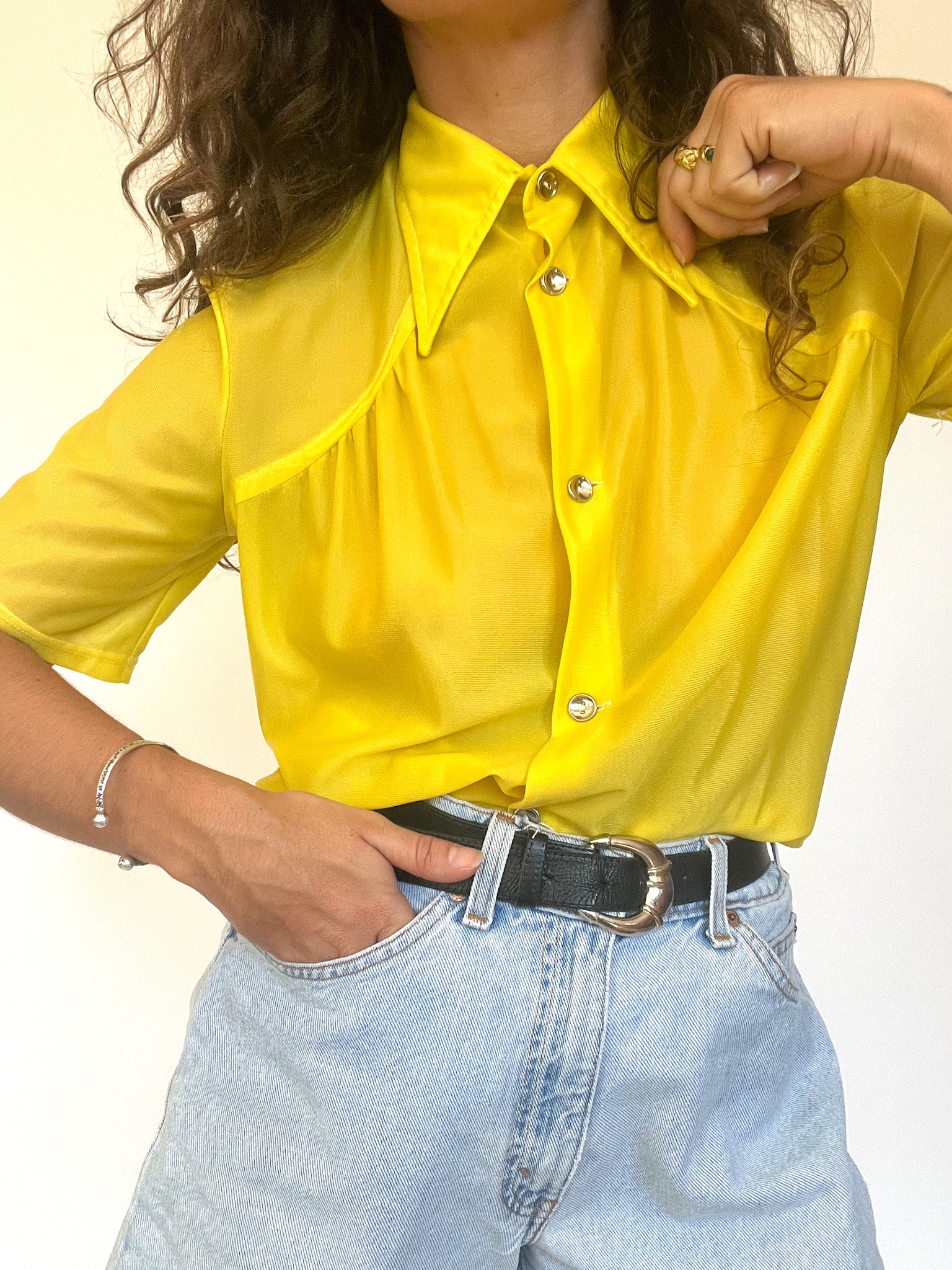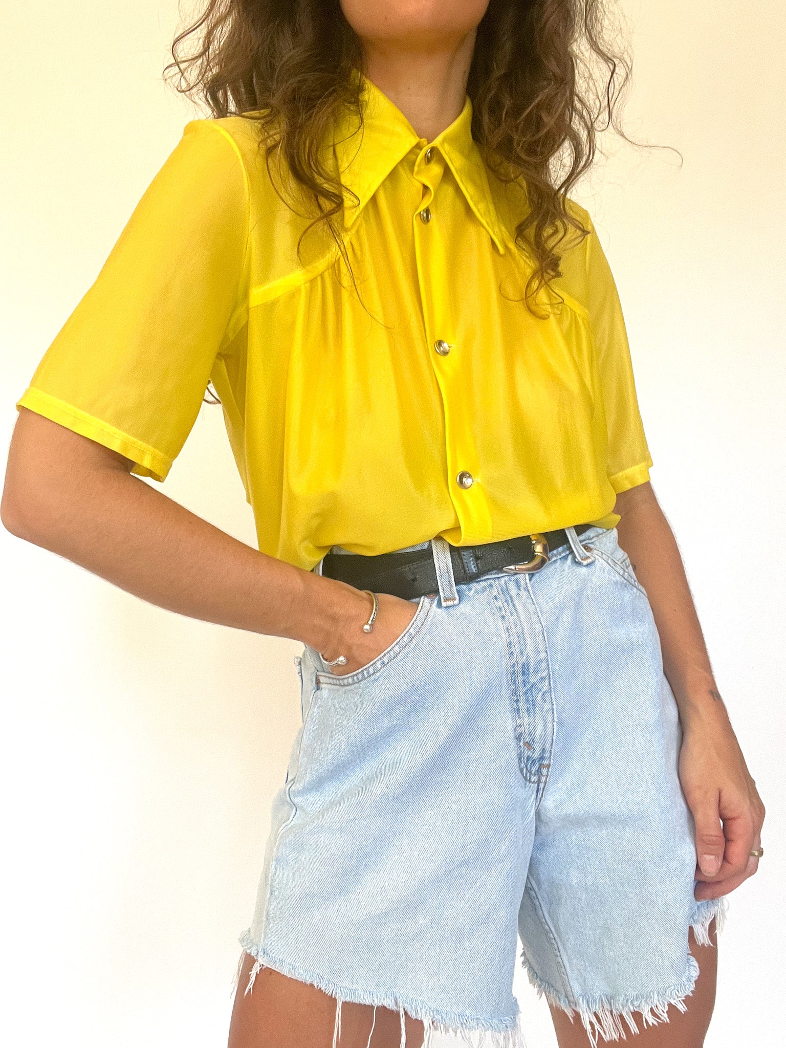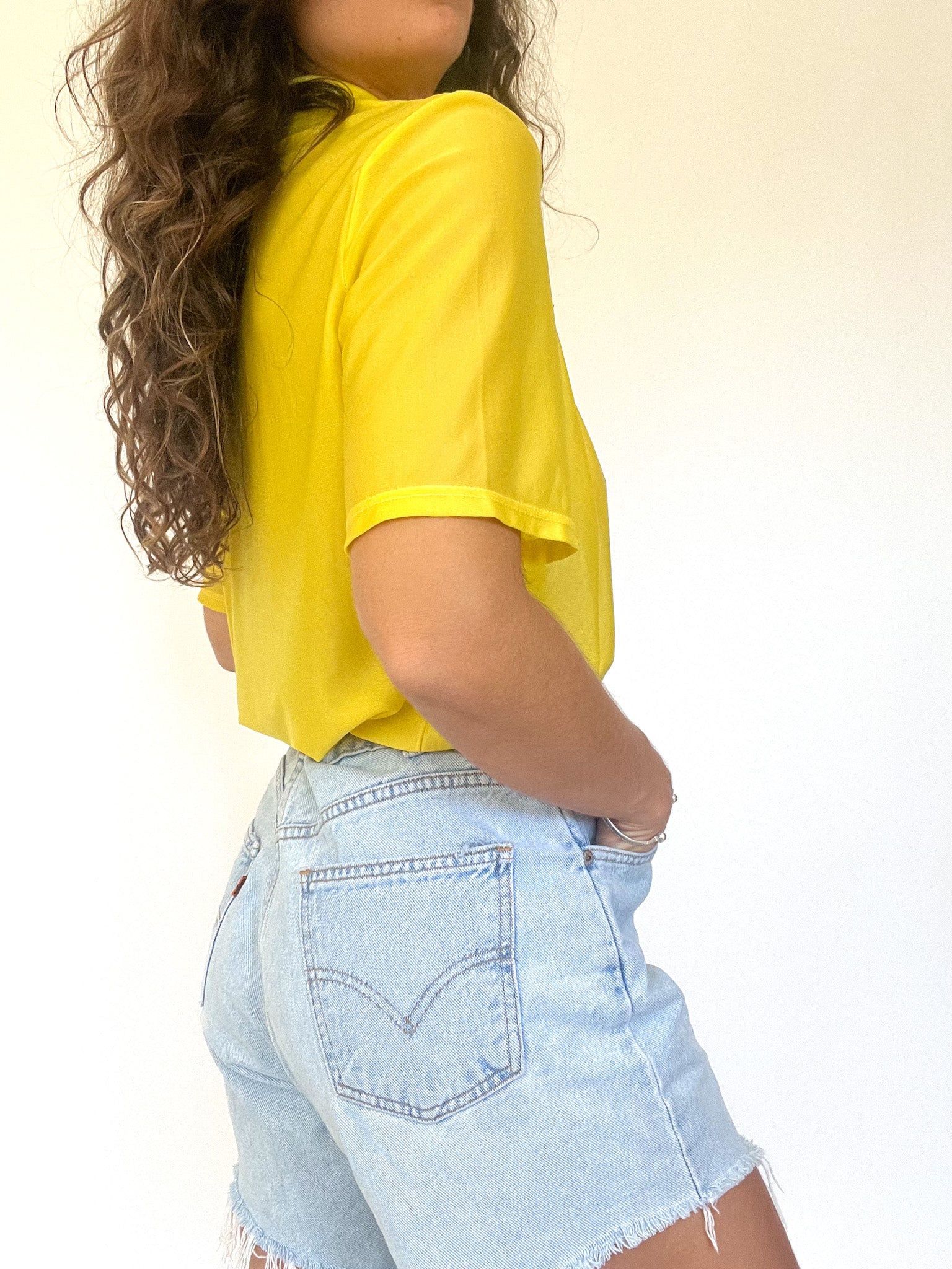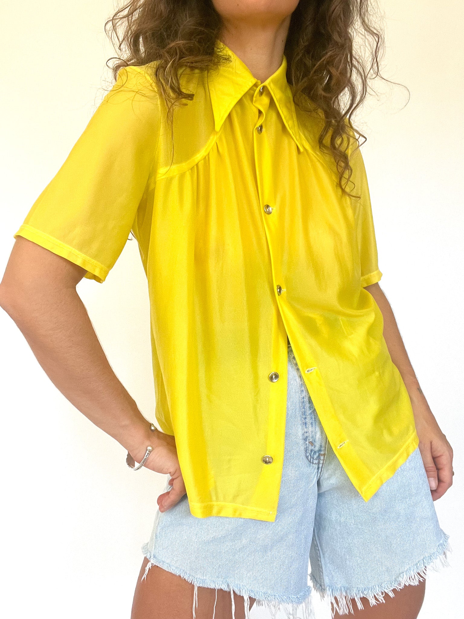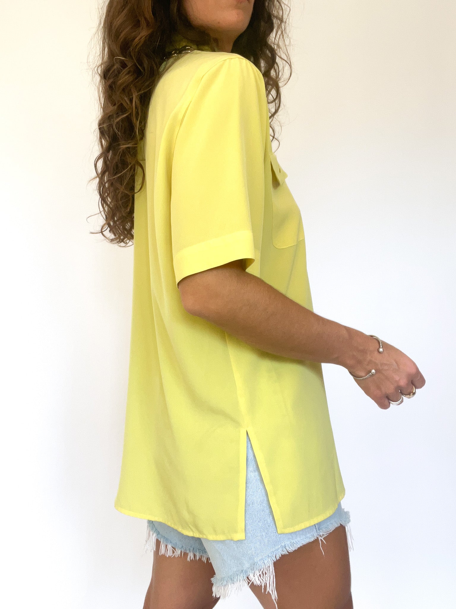 Vintage 90’s Pastel Yellow Silk Short Sleeve Shirt