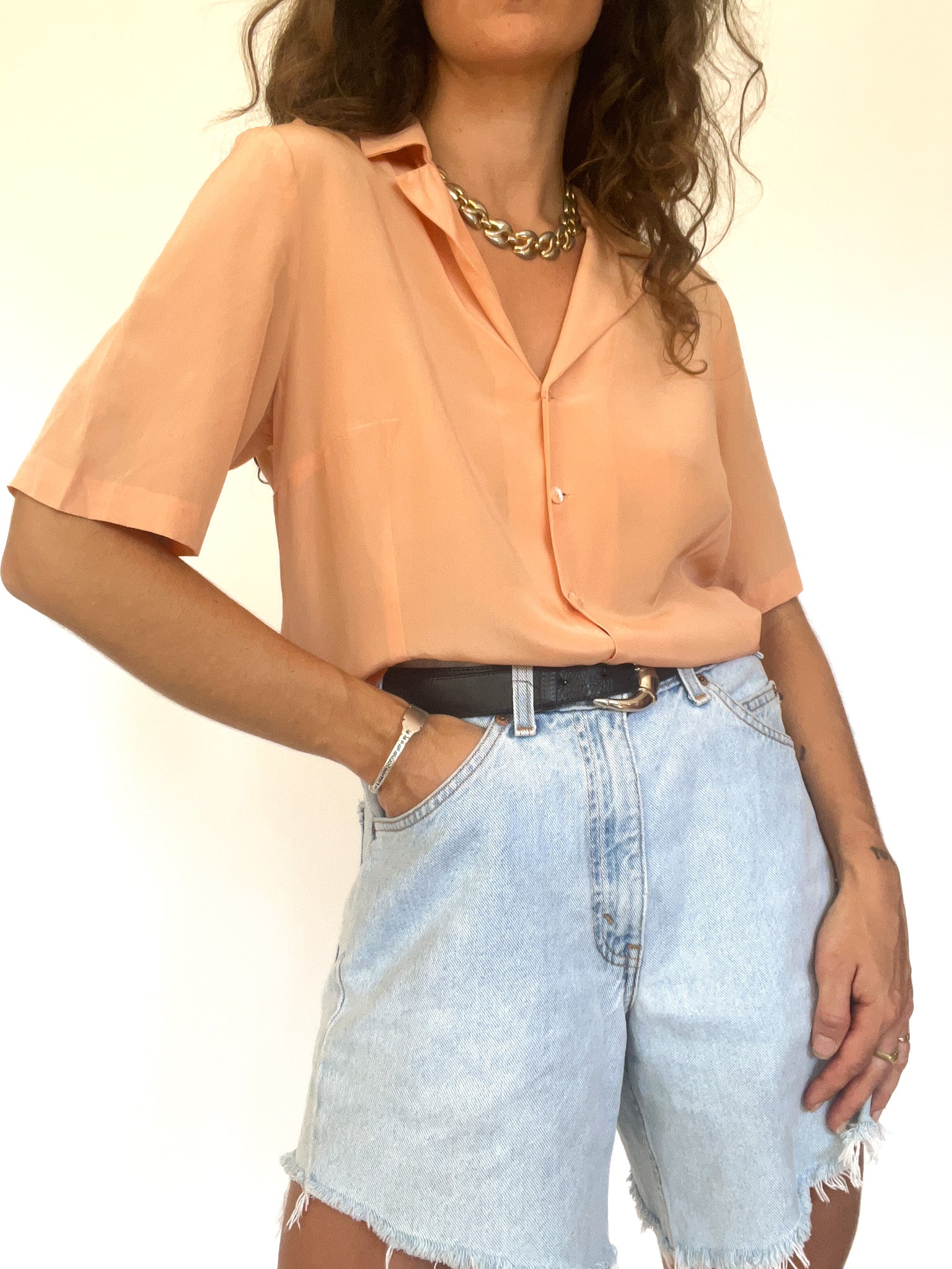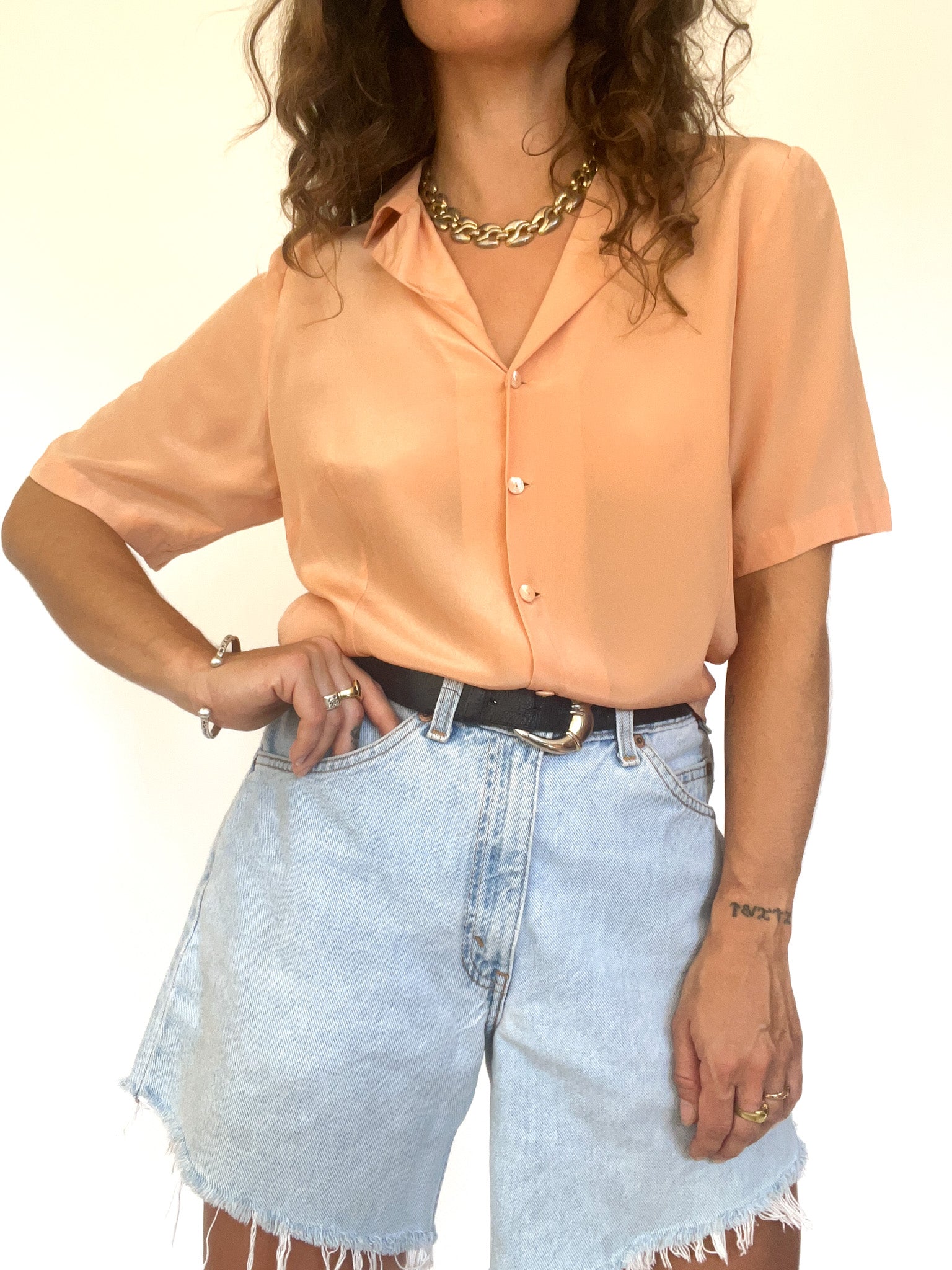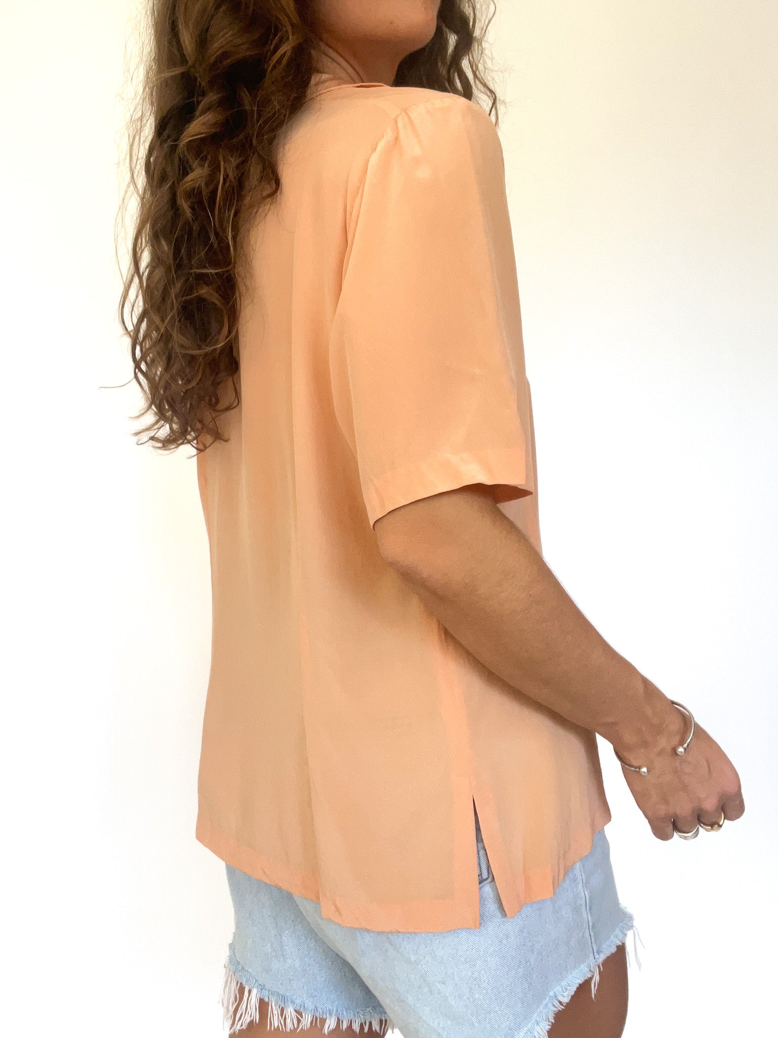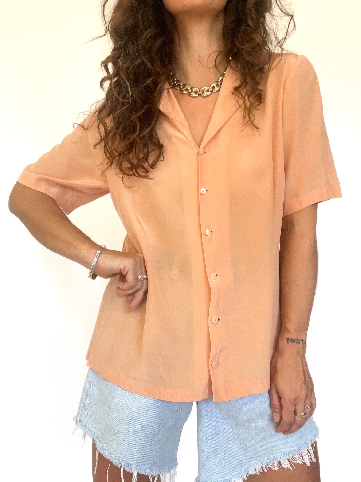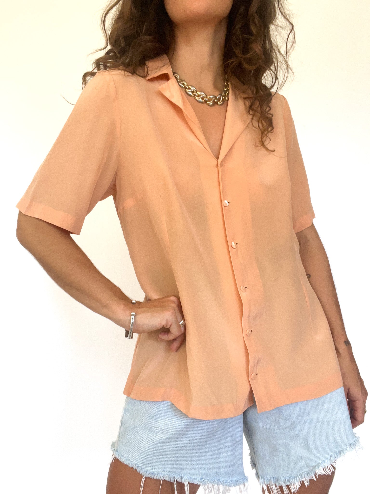 Vintage 90’s Pastel Yellow Silk Short Sleeve Shirt