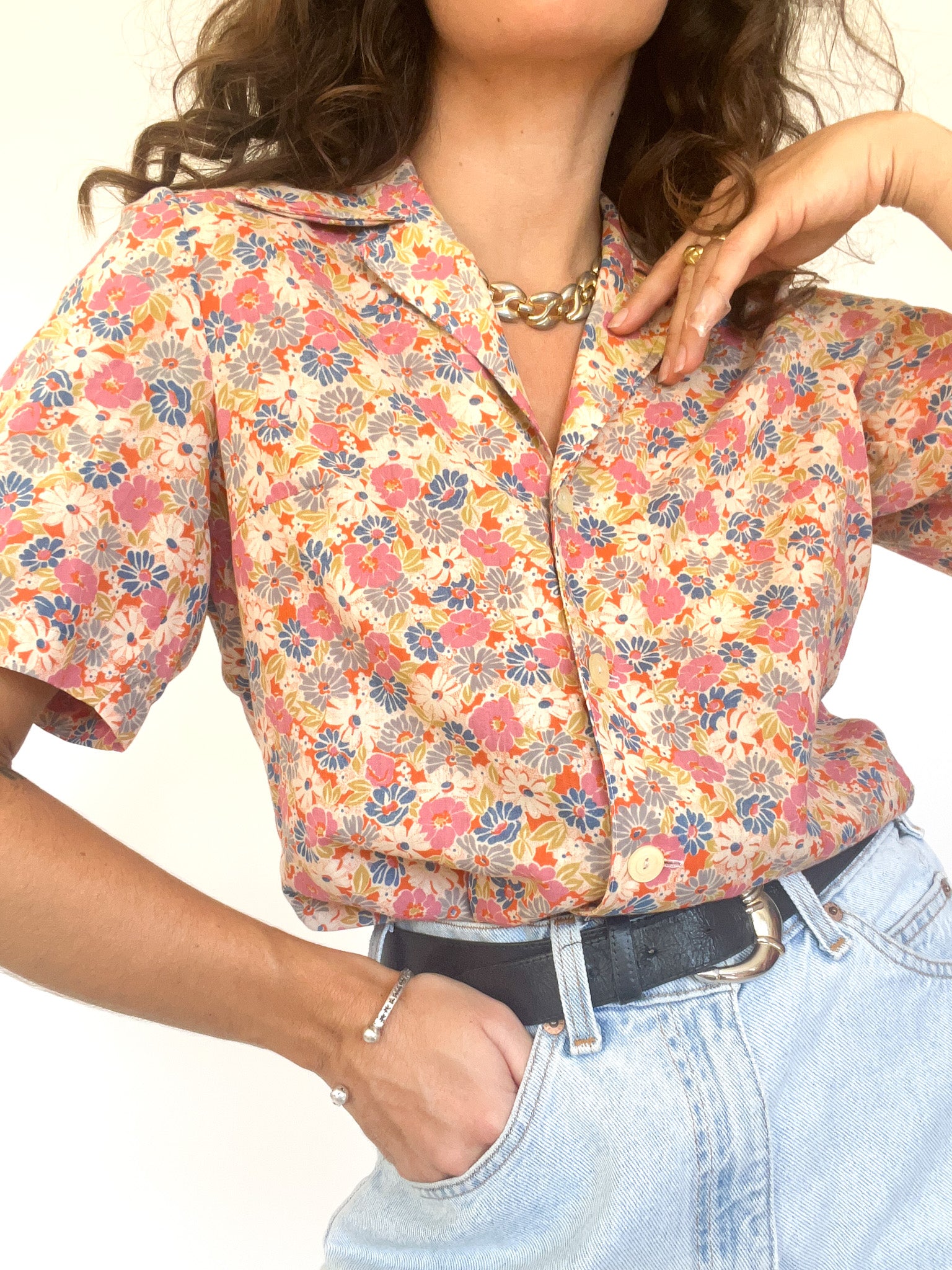 Vintage 90’s Pastel Floral Short Sleeve Shirt