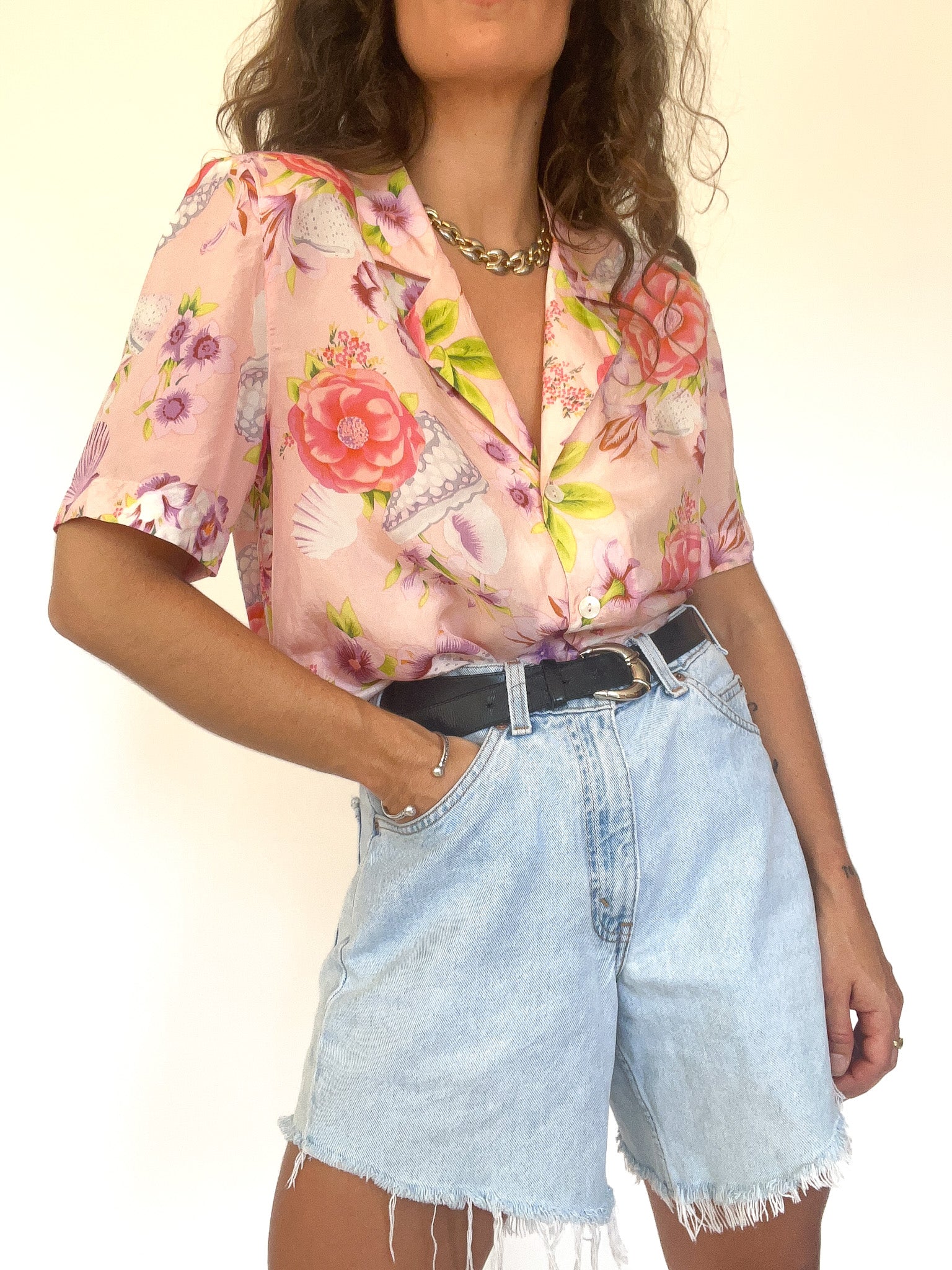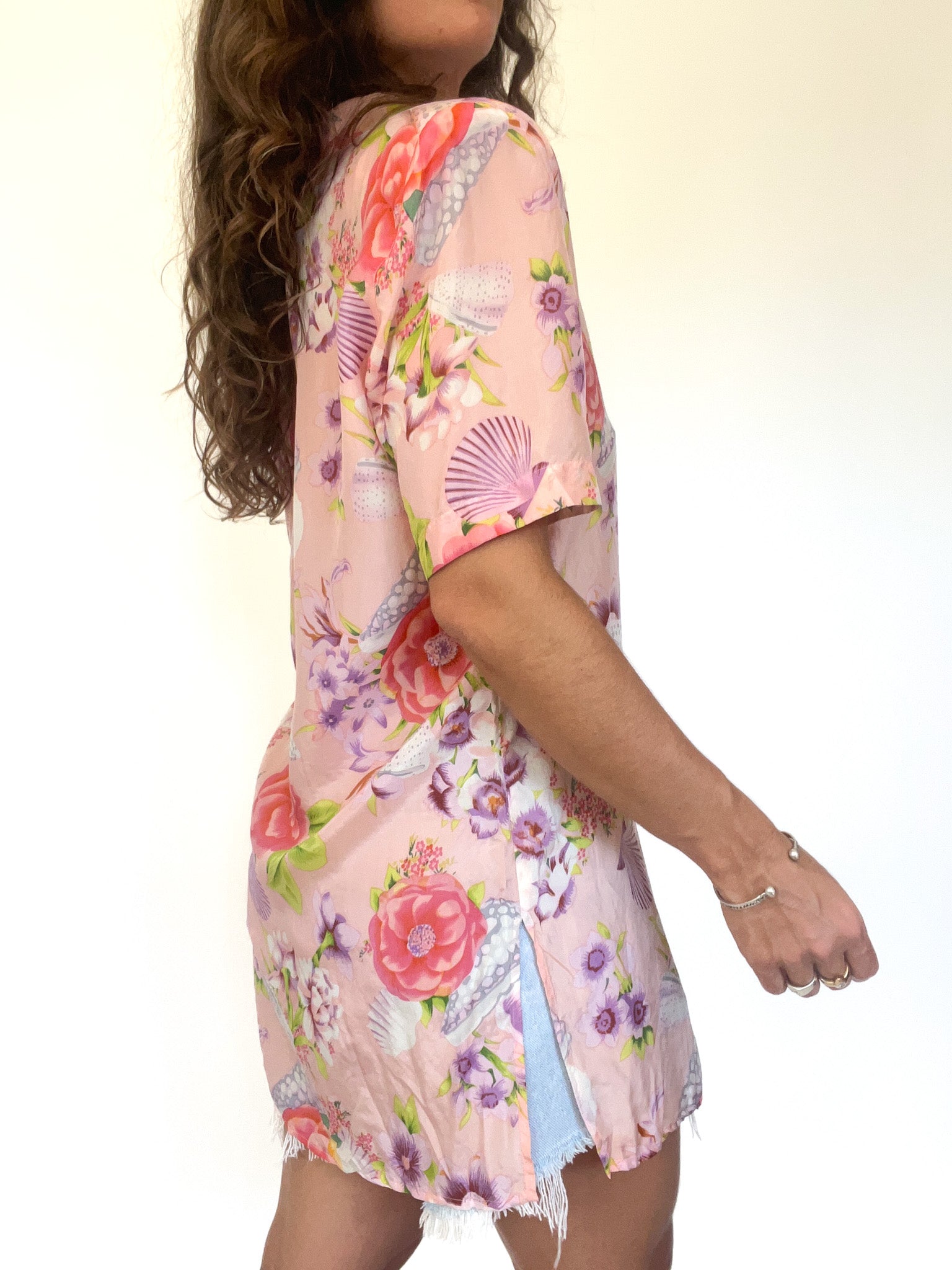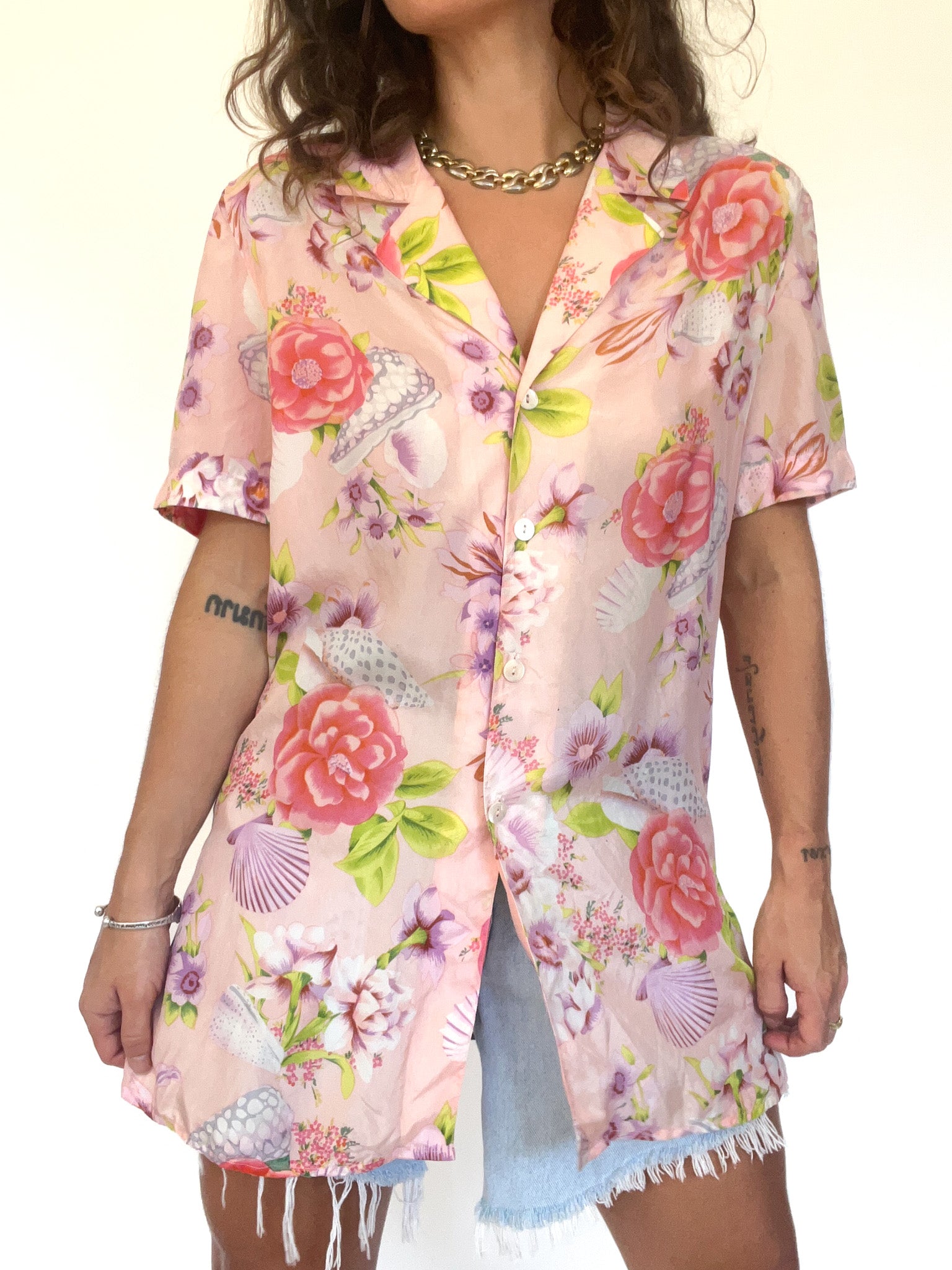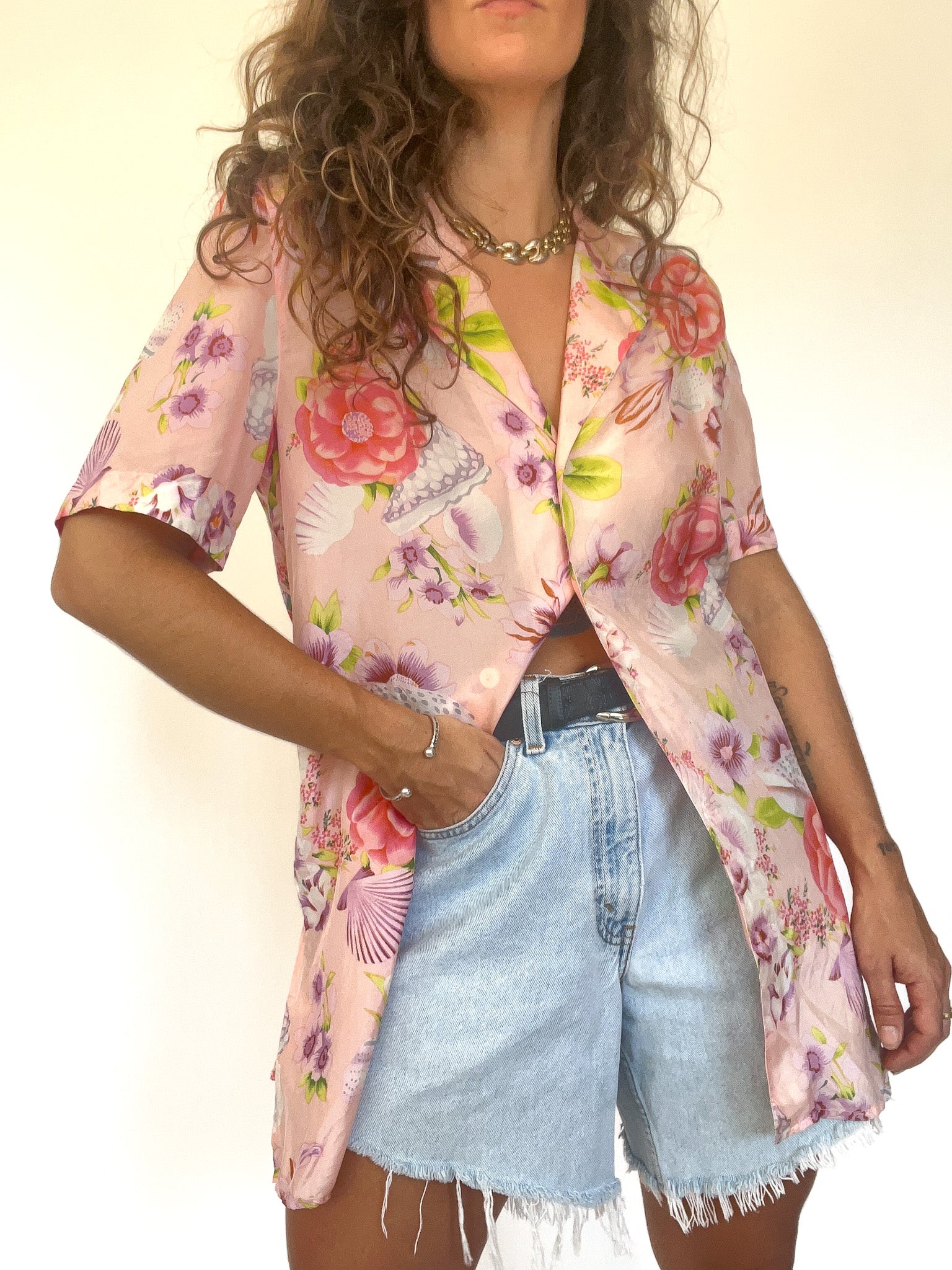 Vintage 90’s Pink Silk Floral Longline Shirt
