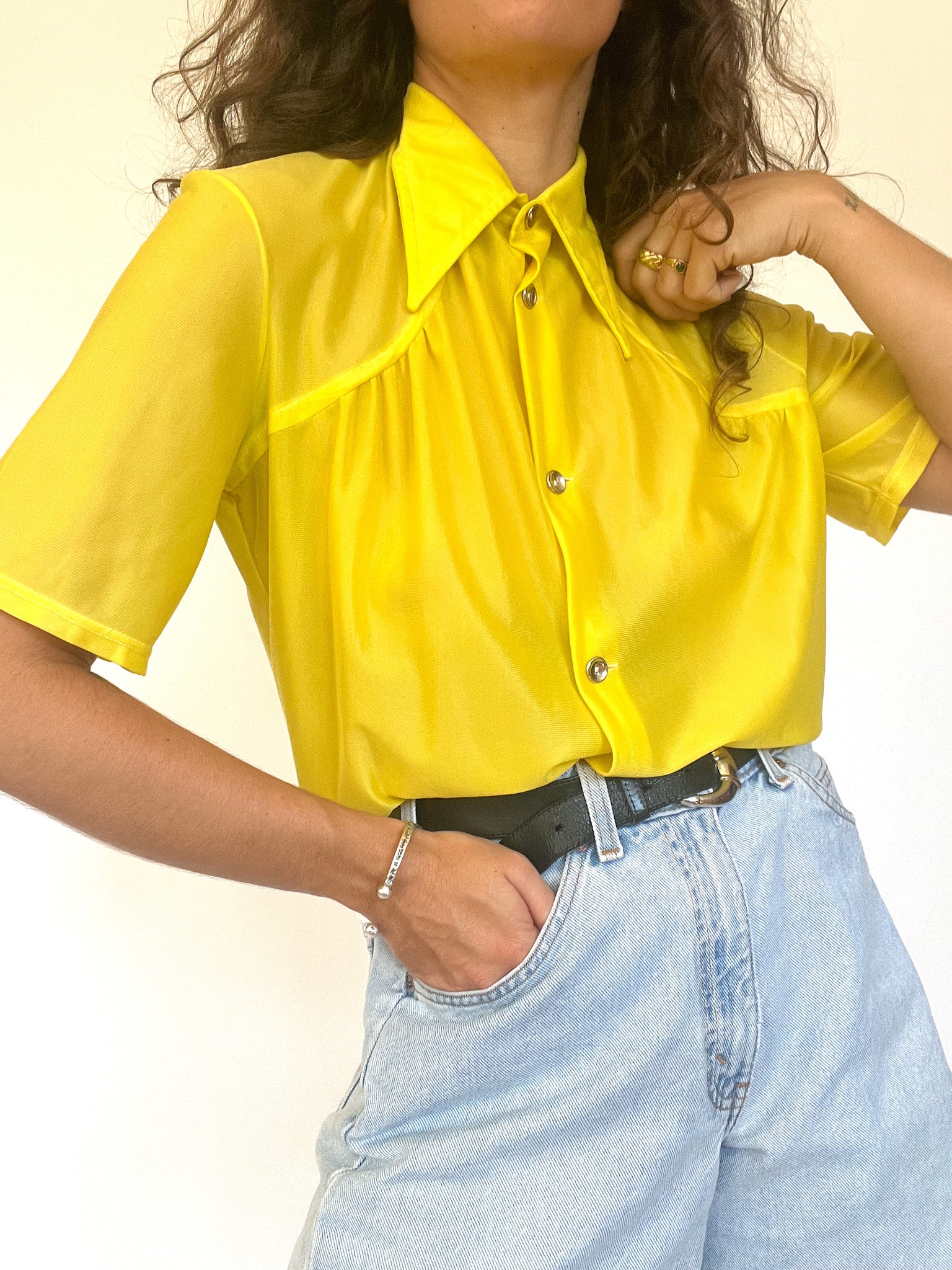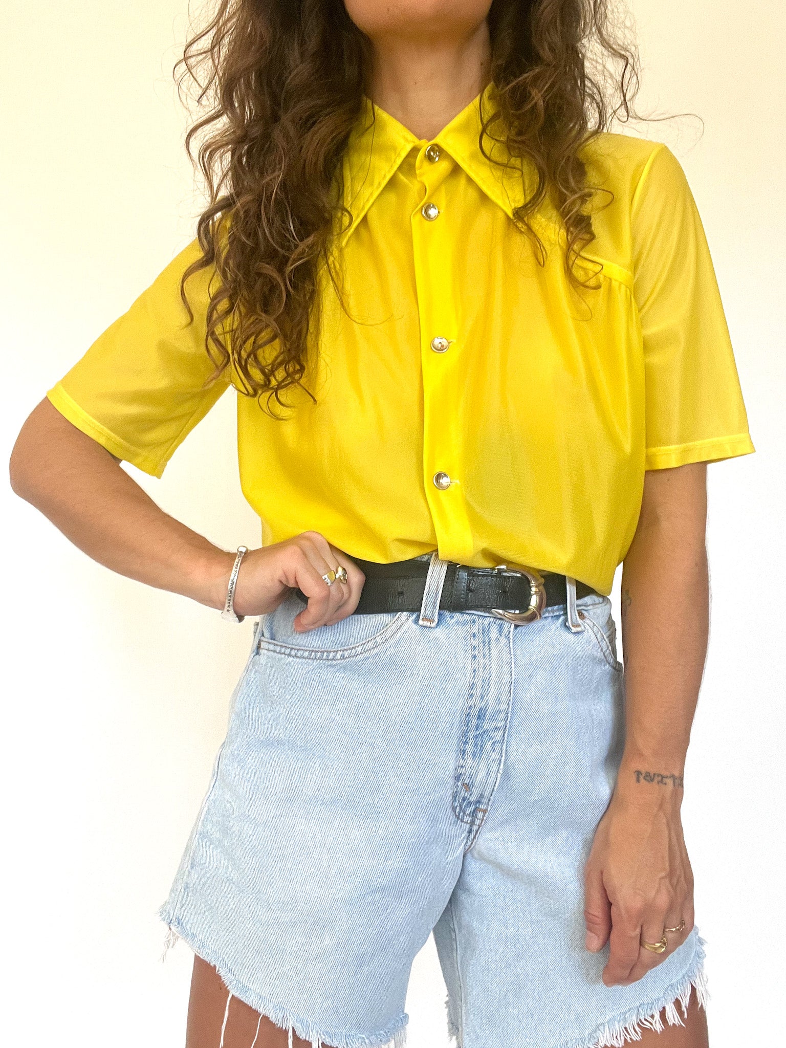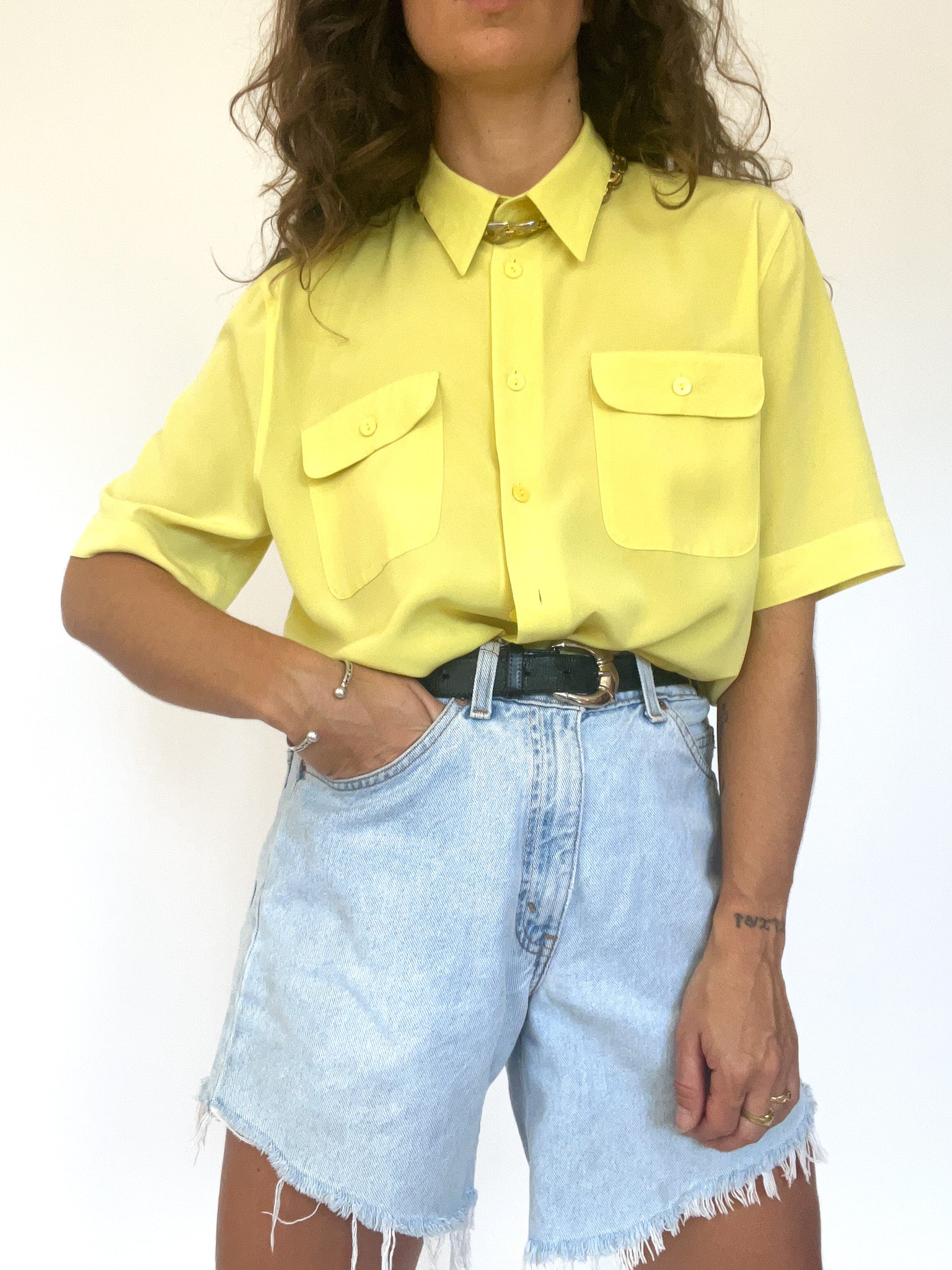 Vintage 90’s Lemon Yellow Utility Short Sleeve Shirt