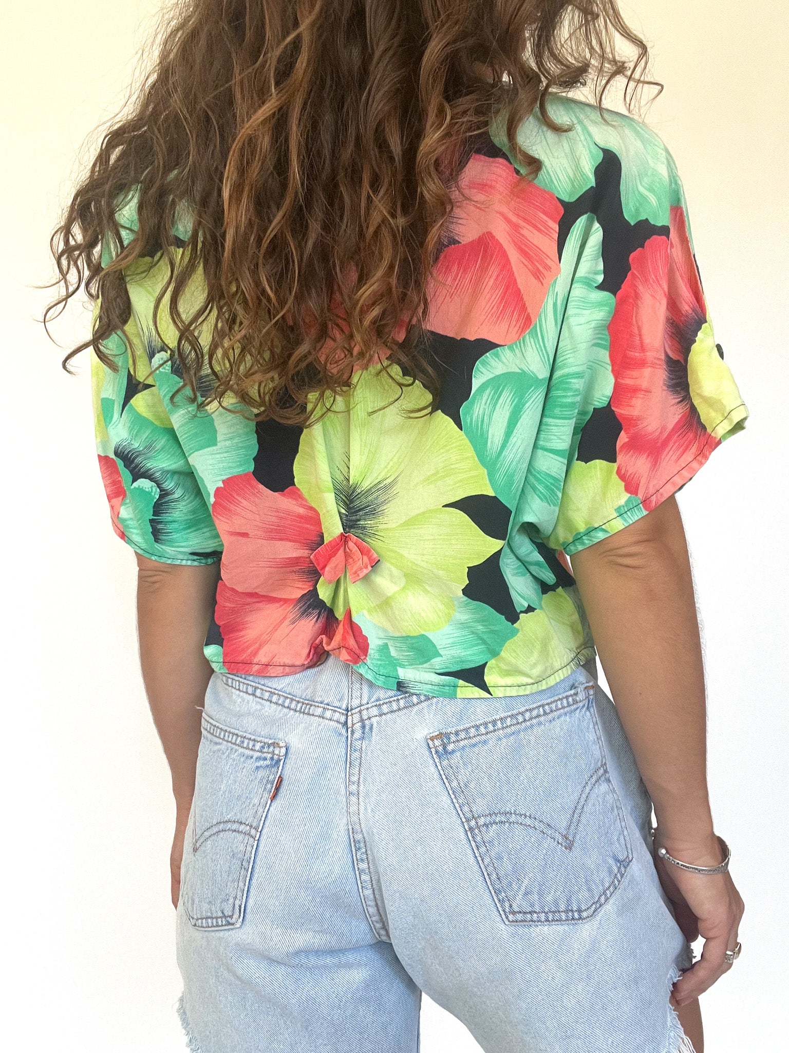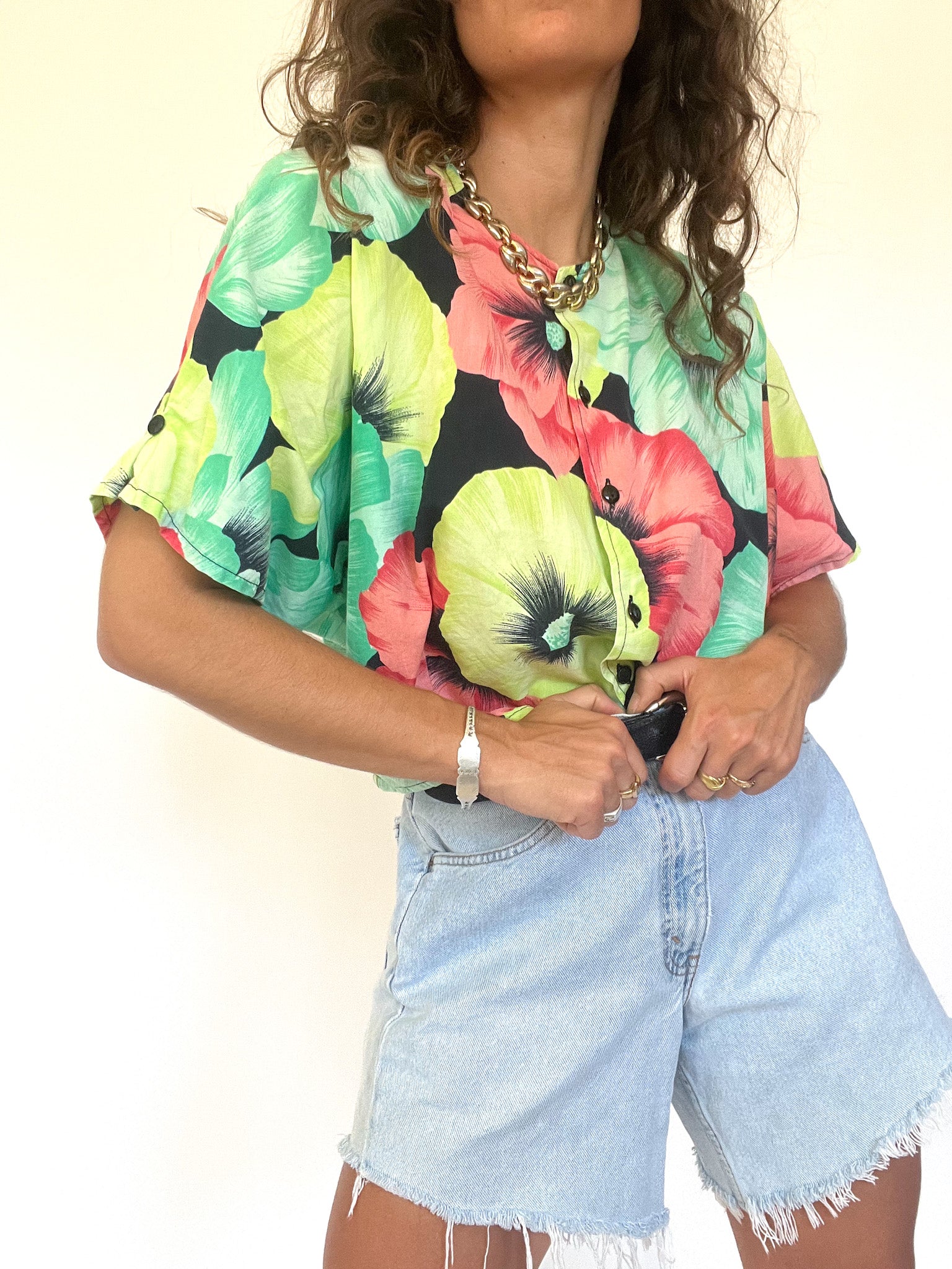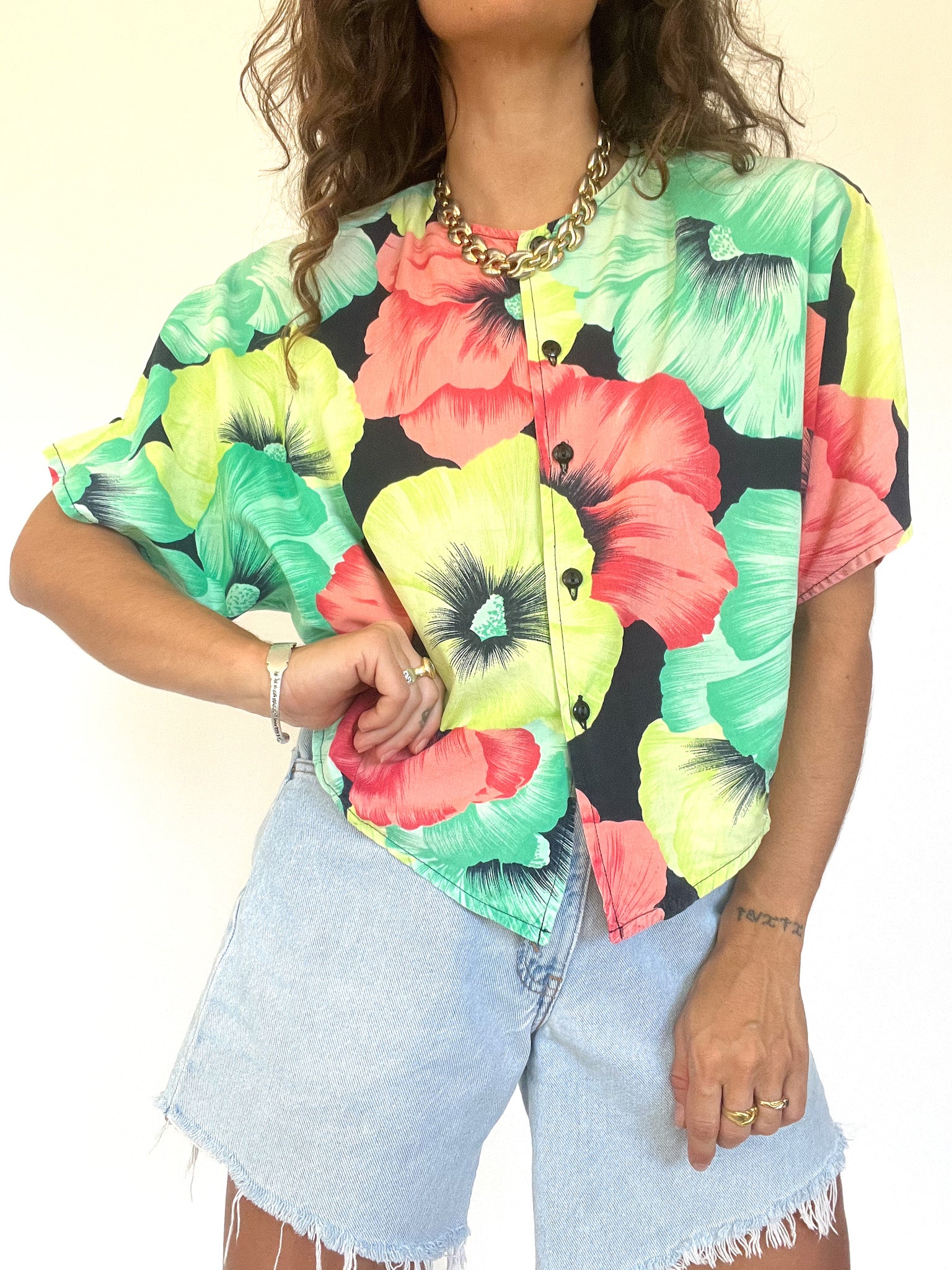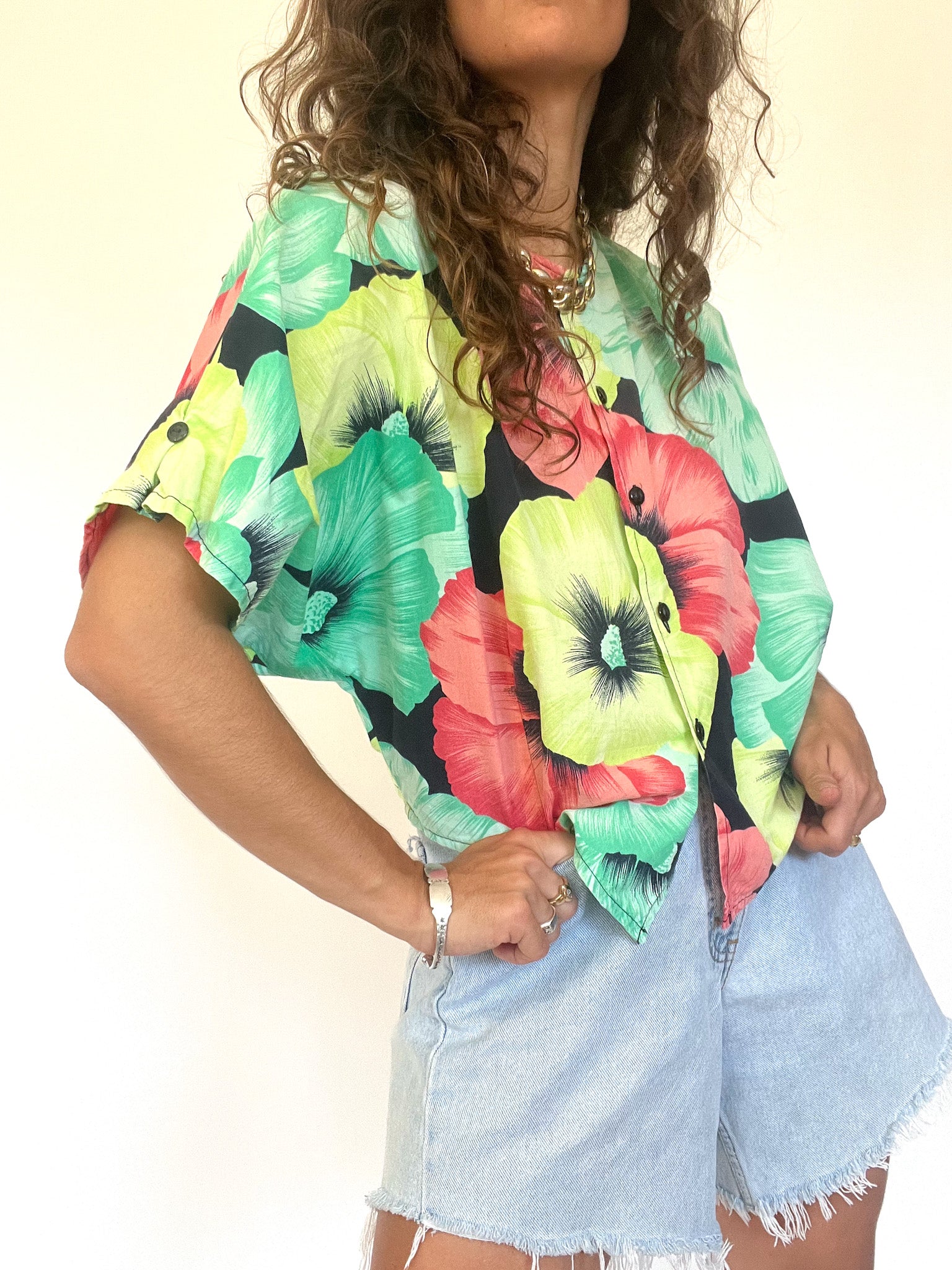 Vintage 90’s Tropical Butterfly & Hibiscus Short Sleeve Shirt