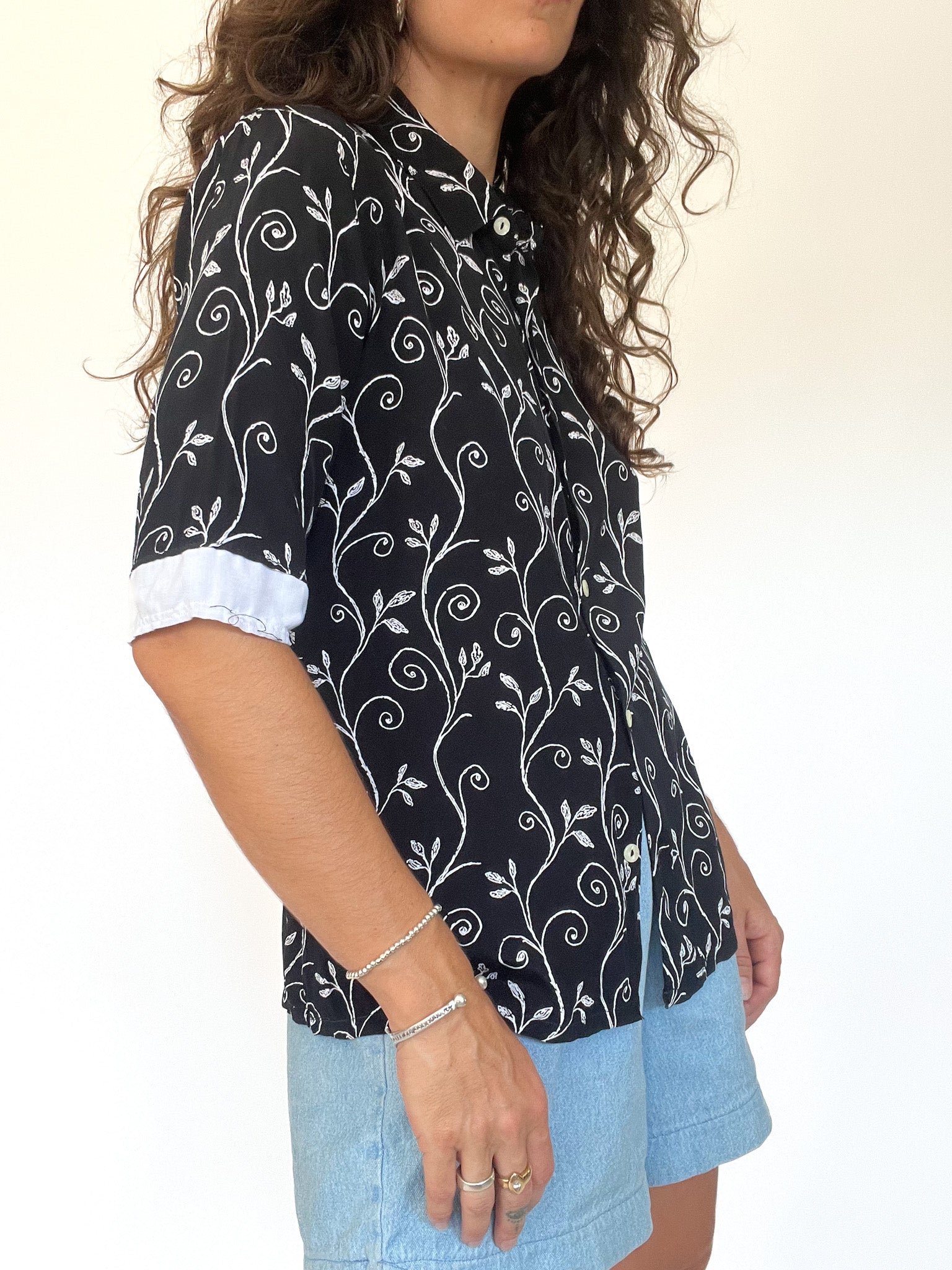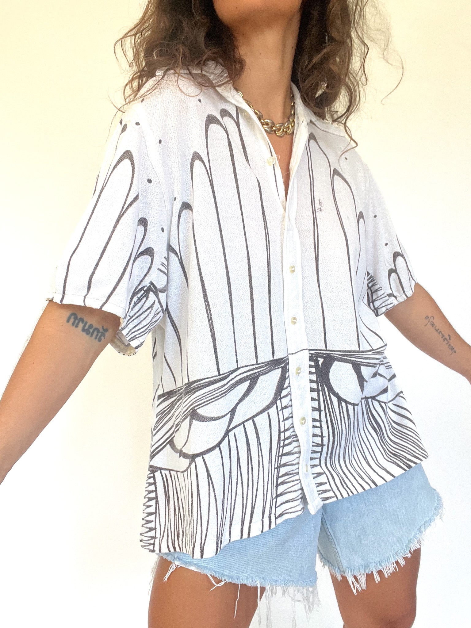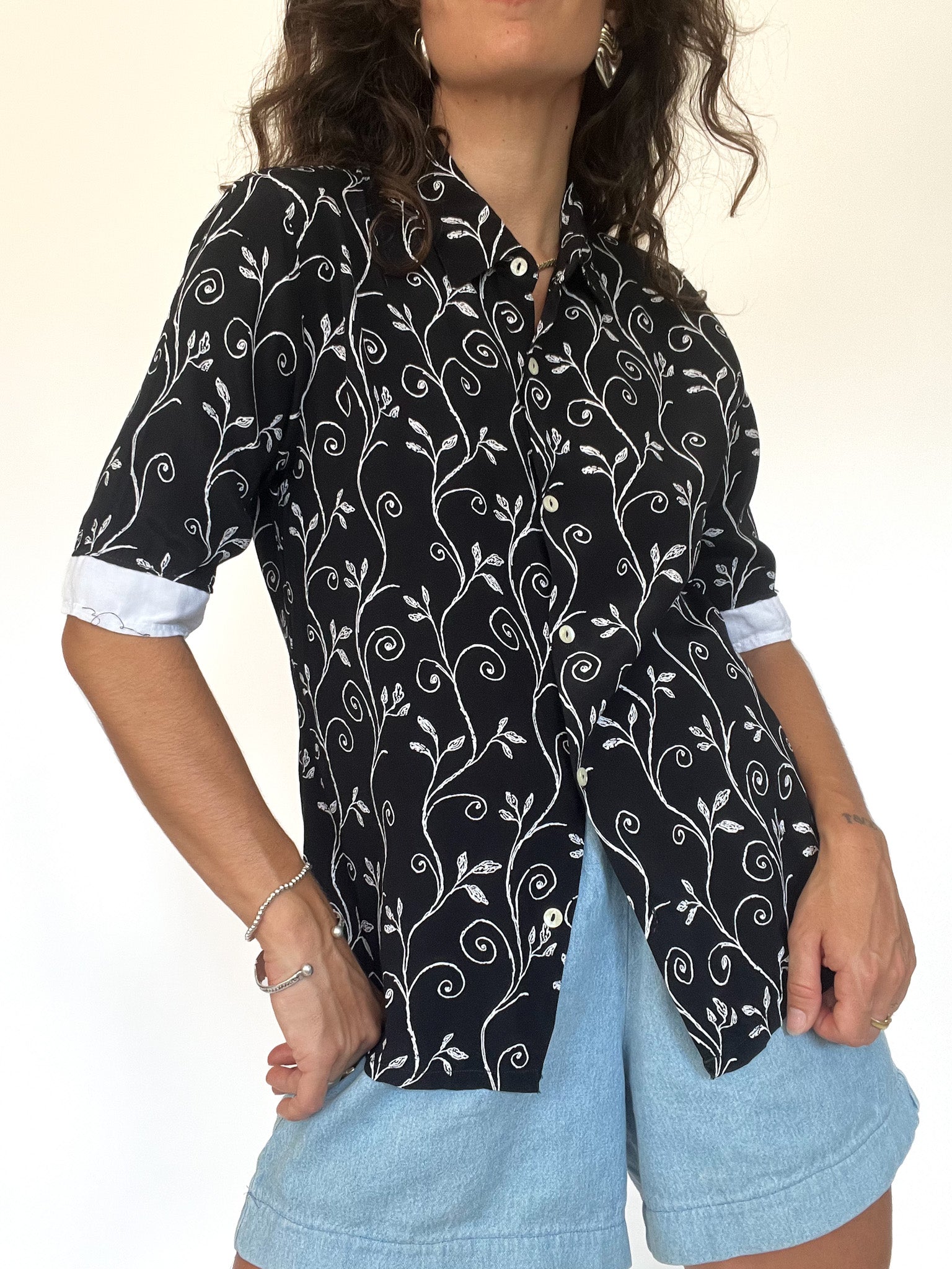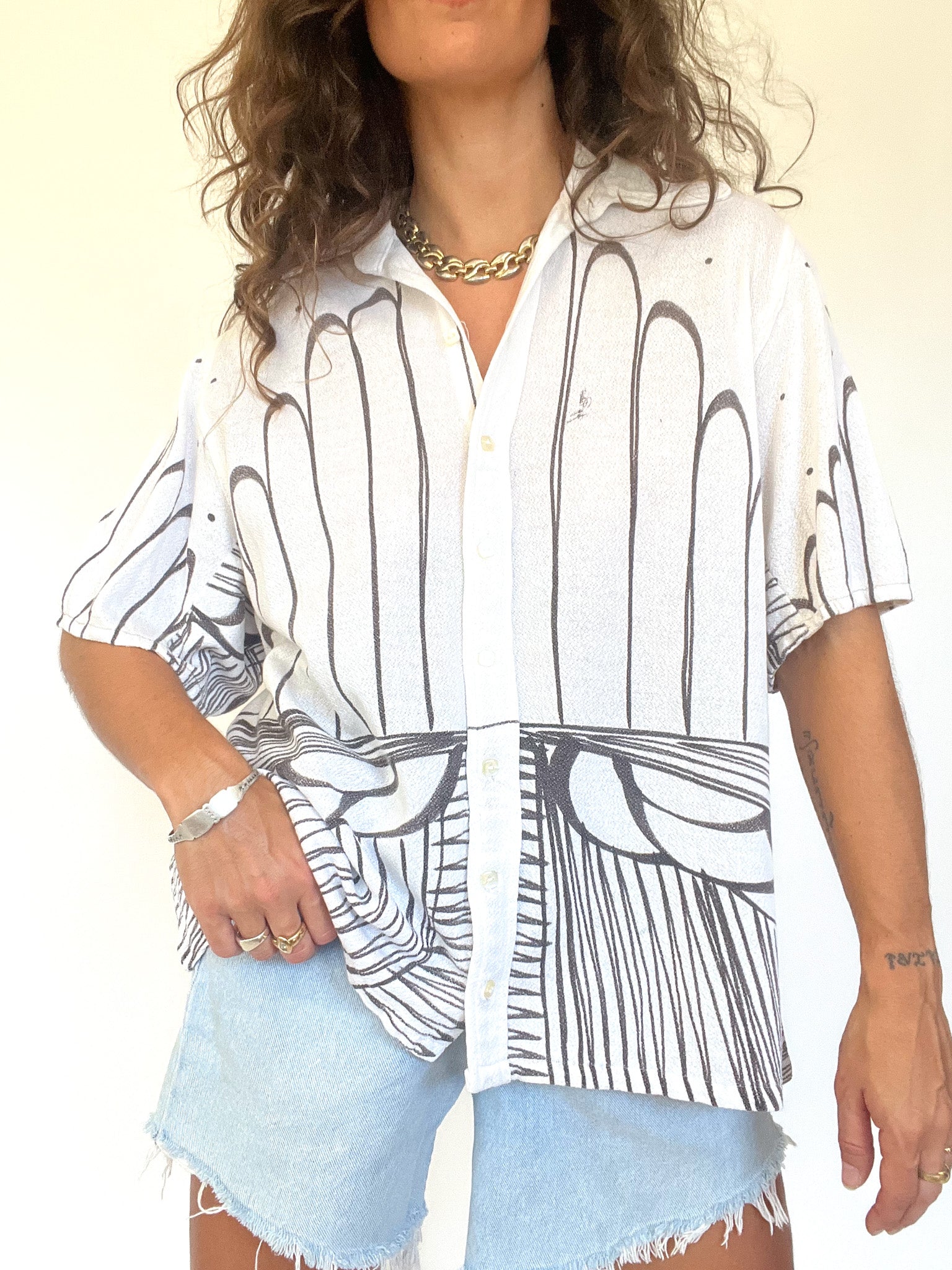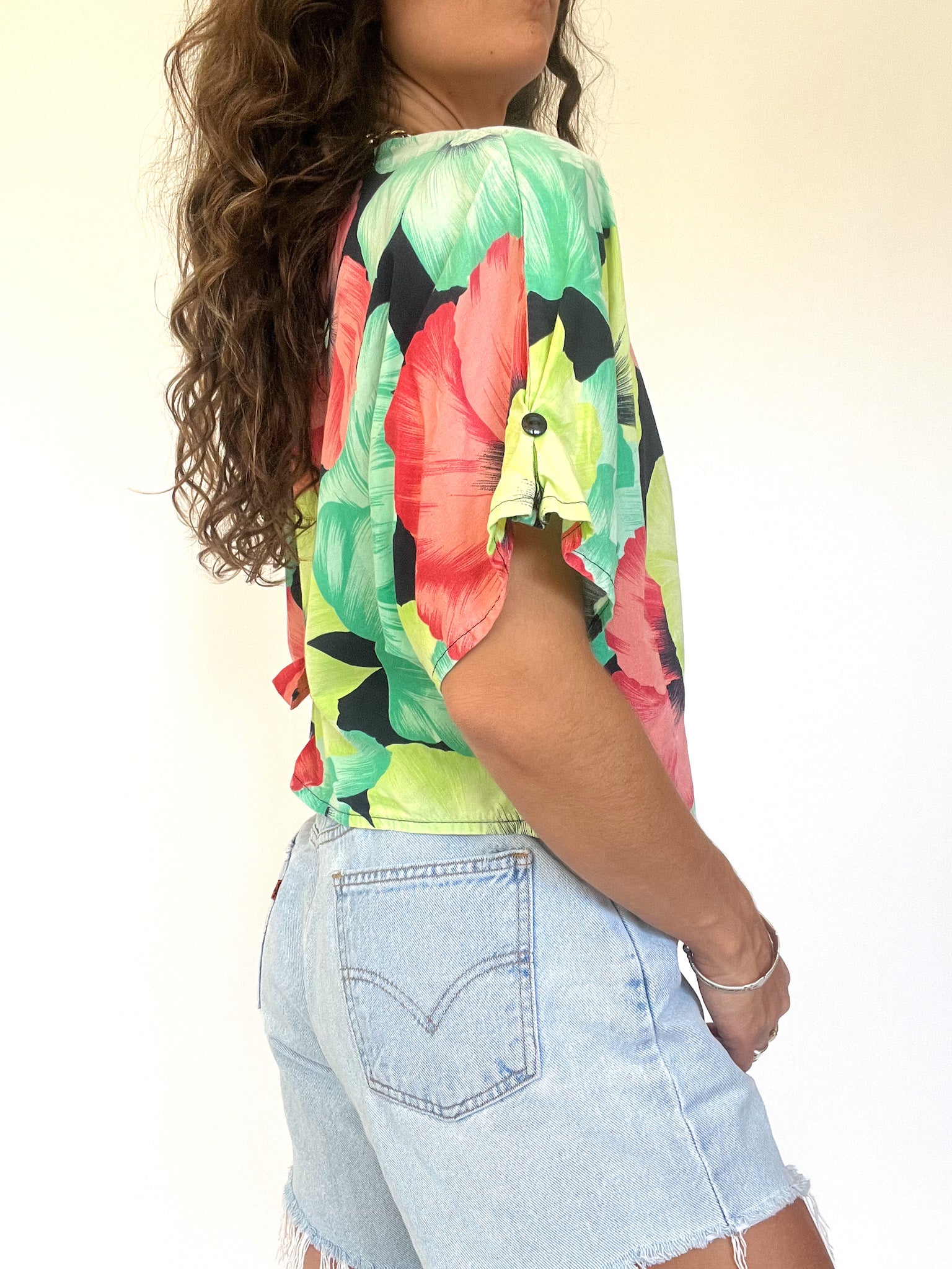 Vintage 90’s Tropical Butterfly & Hibiscus Short Sleeve Shirt