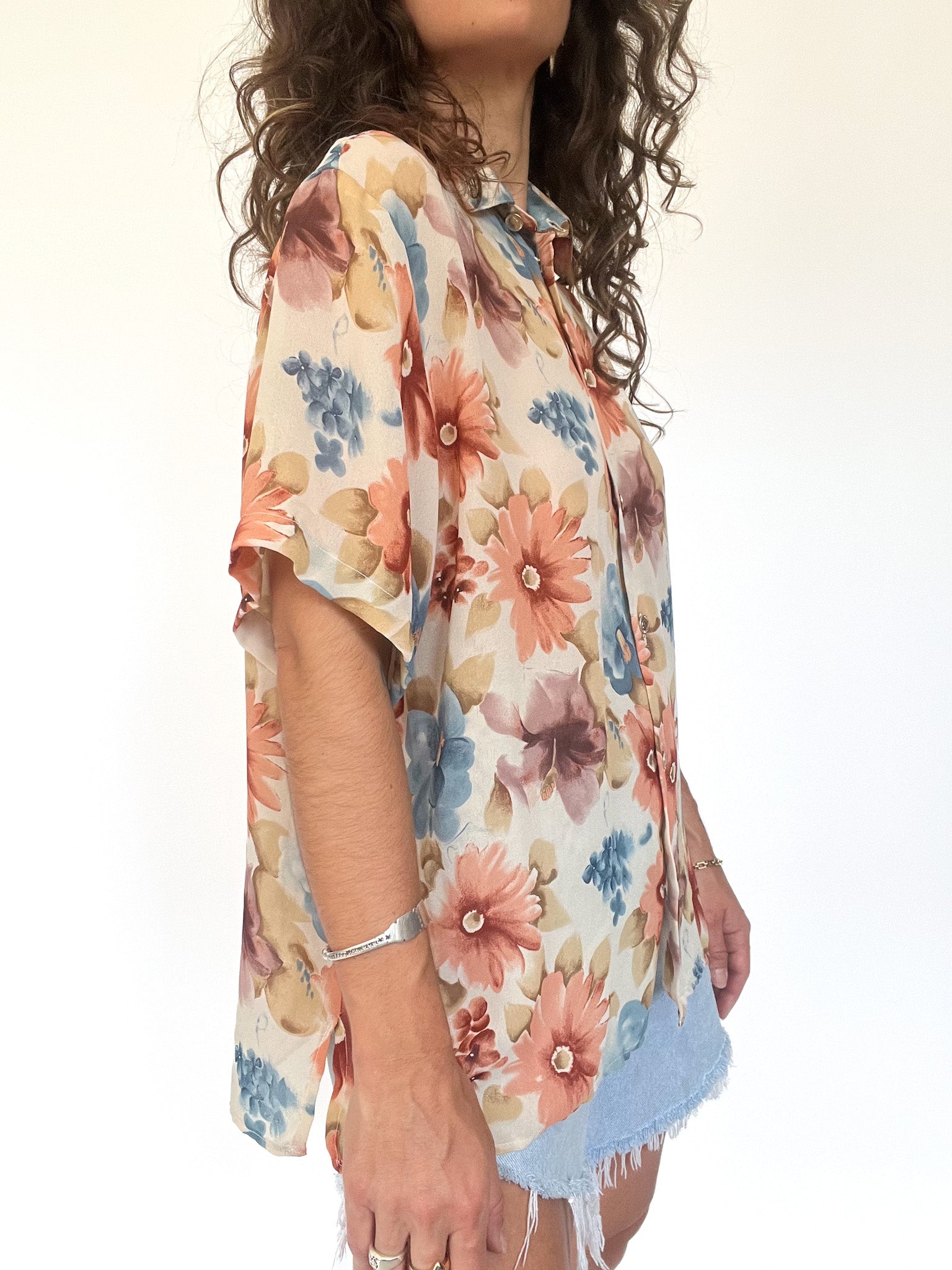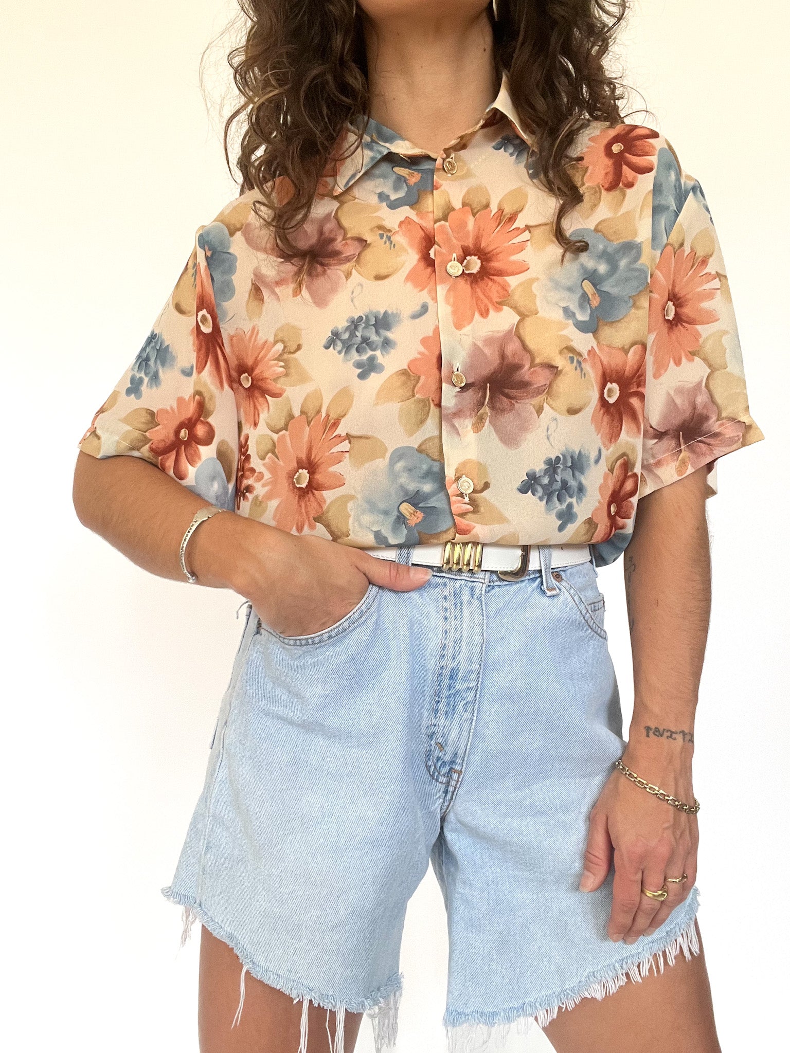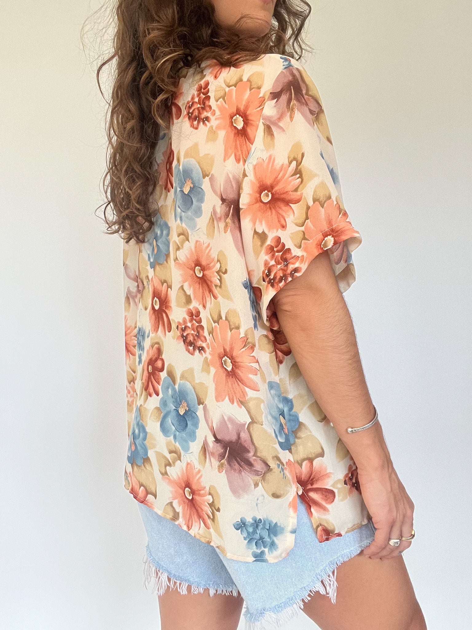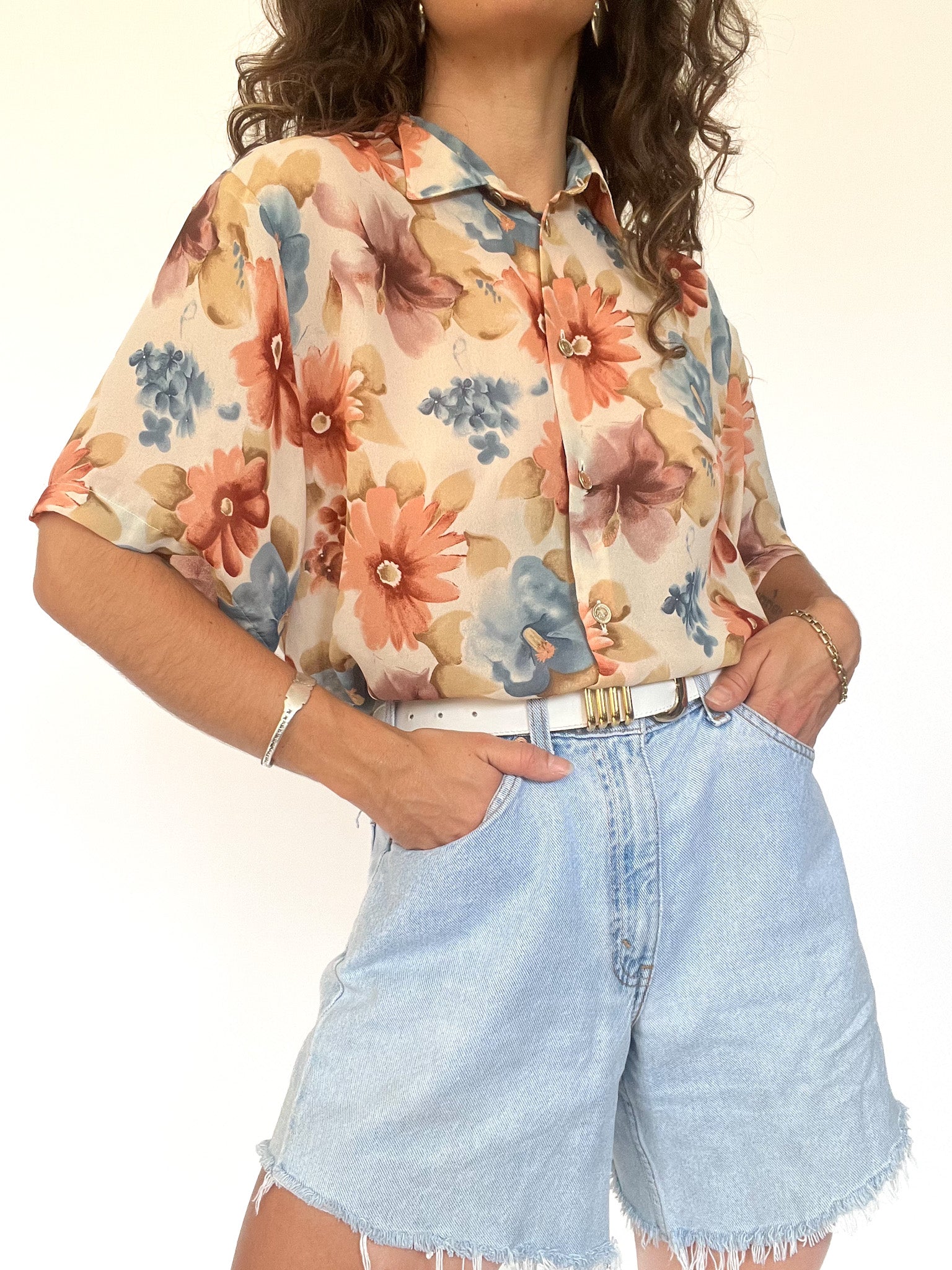 Vintage 80’s Beige Floral Short Sleeve Shirt