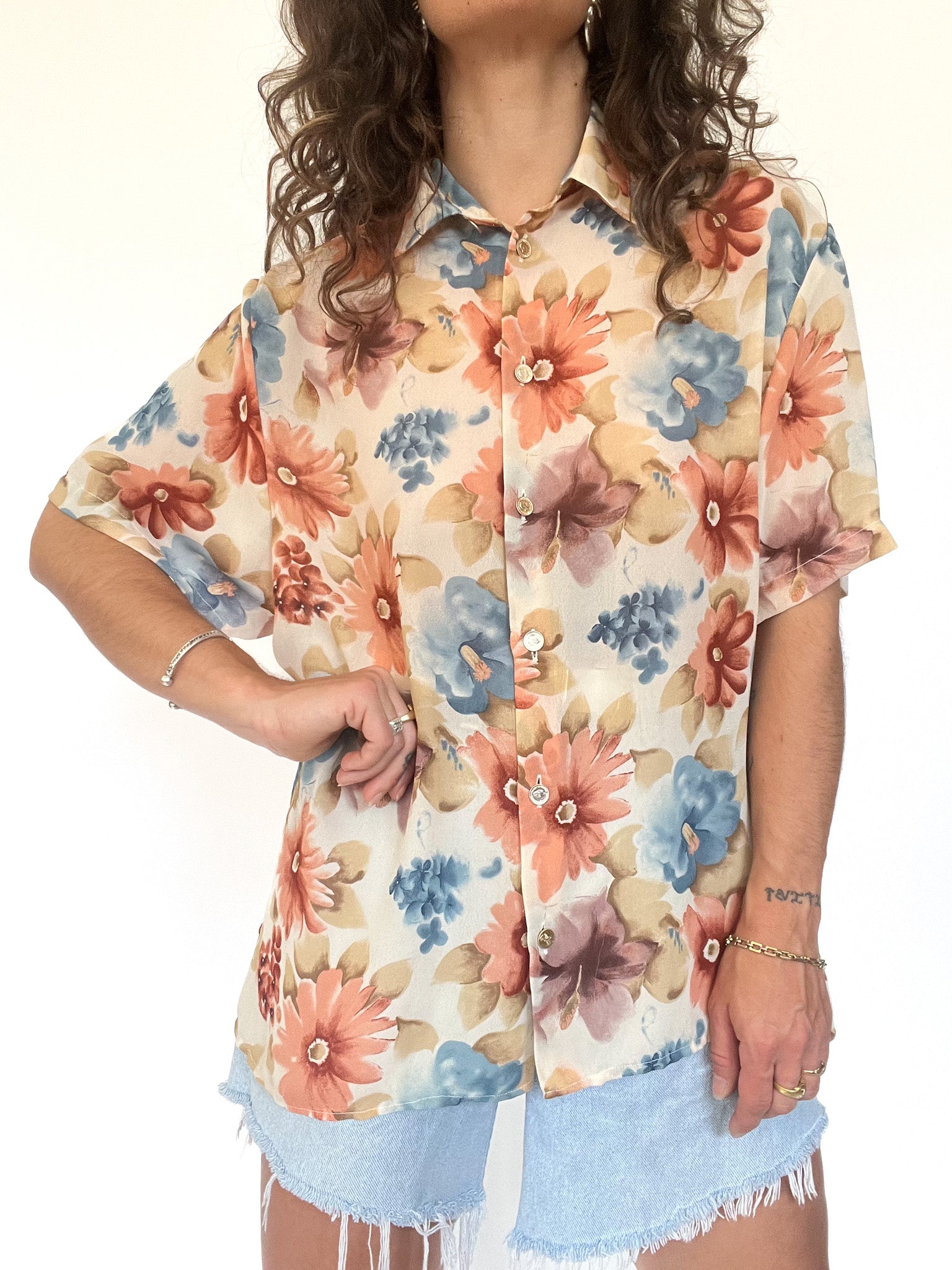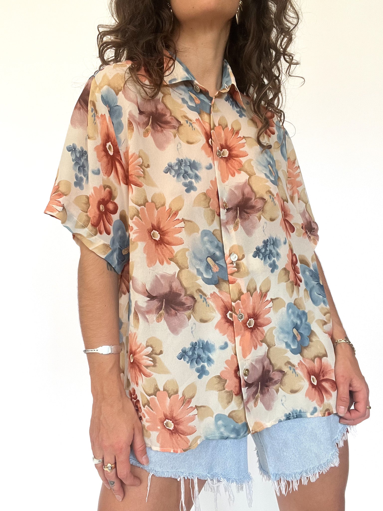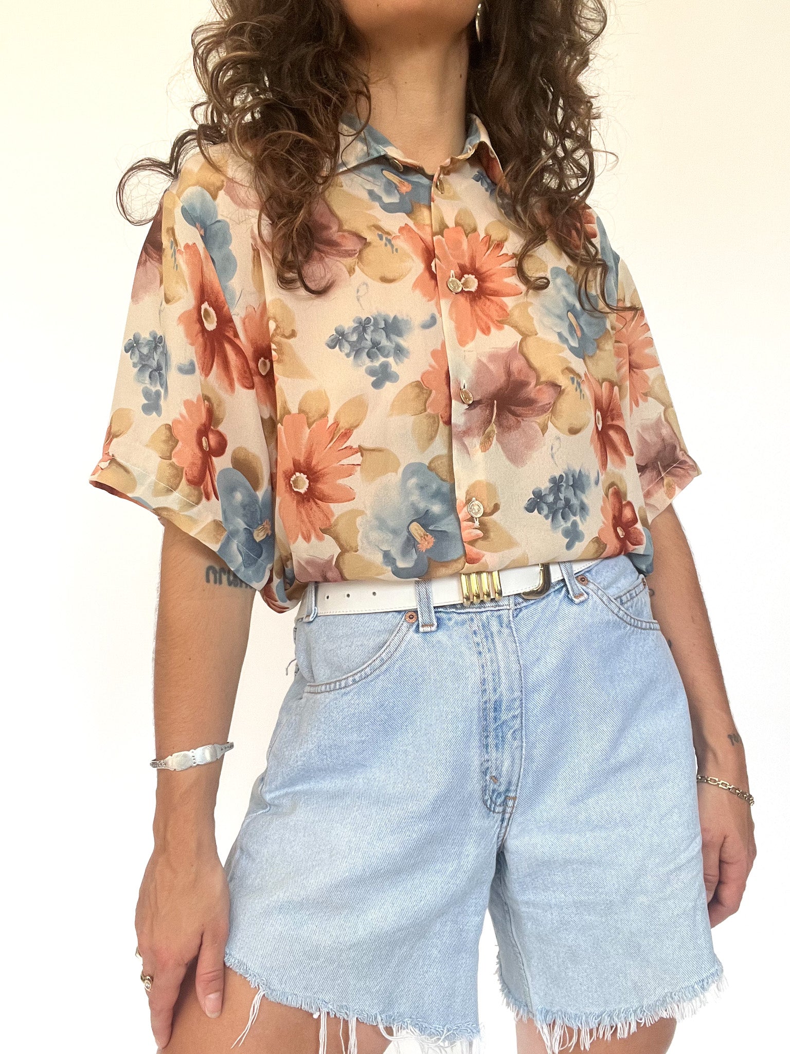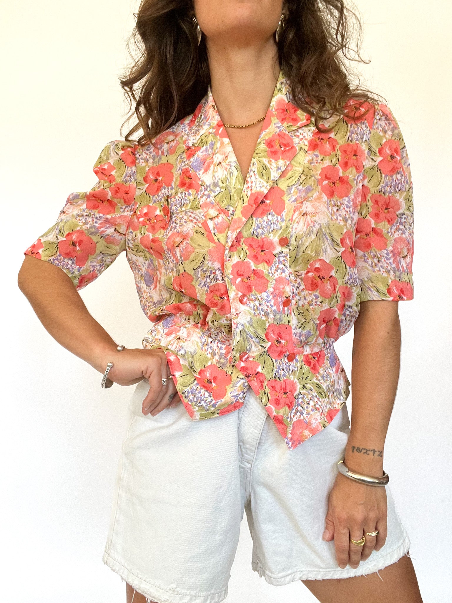 Vintage 80’s Beige Floral Short Sleeve Shirt