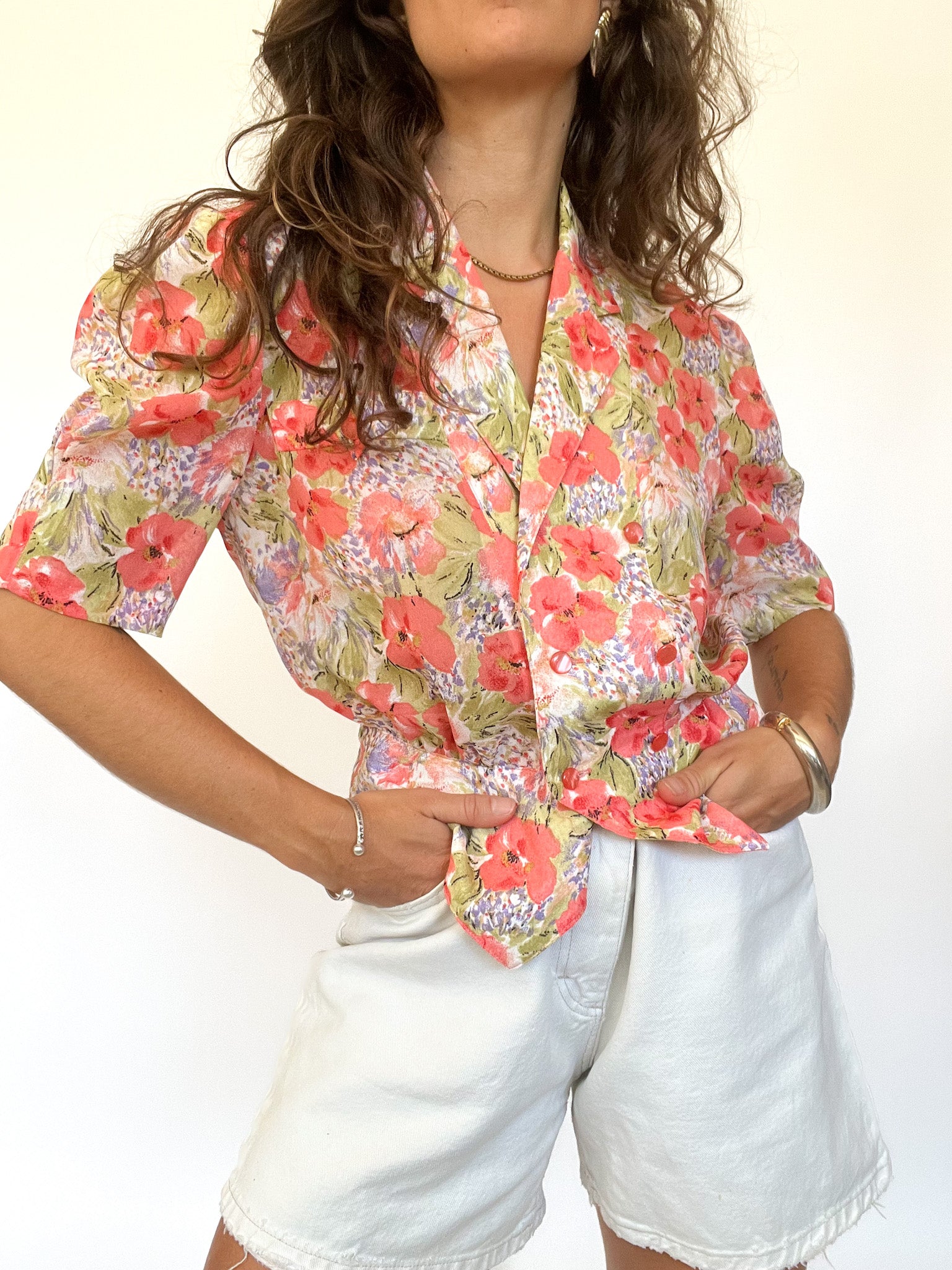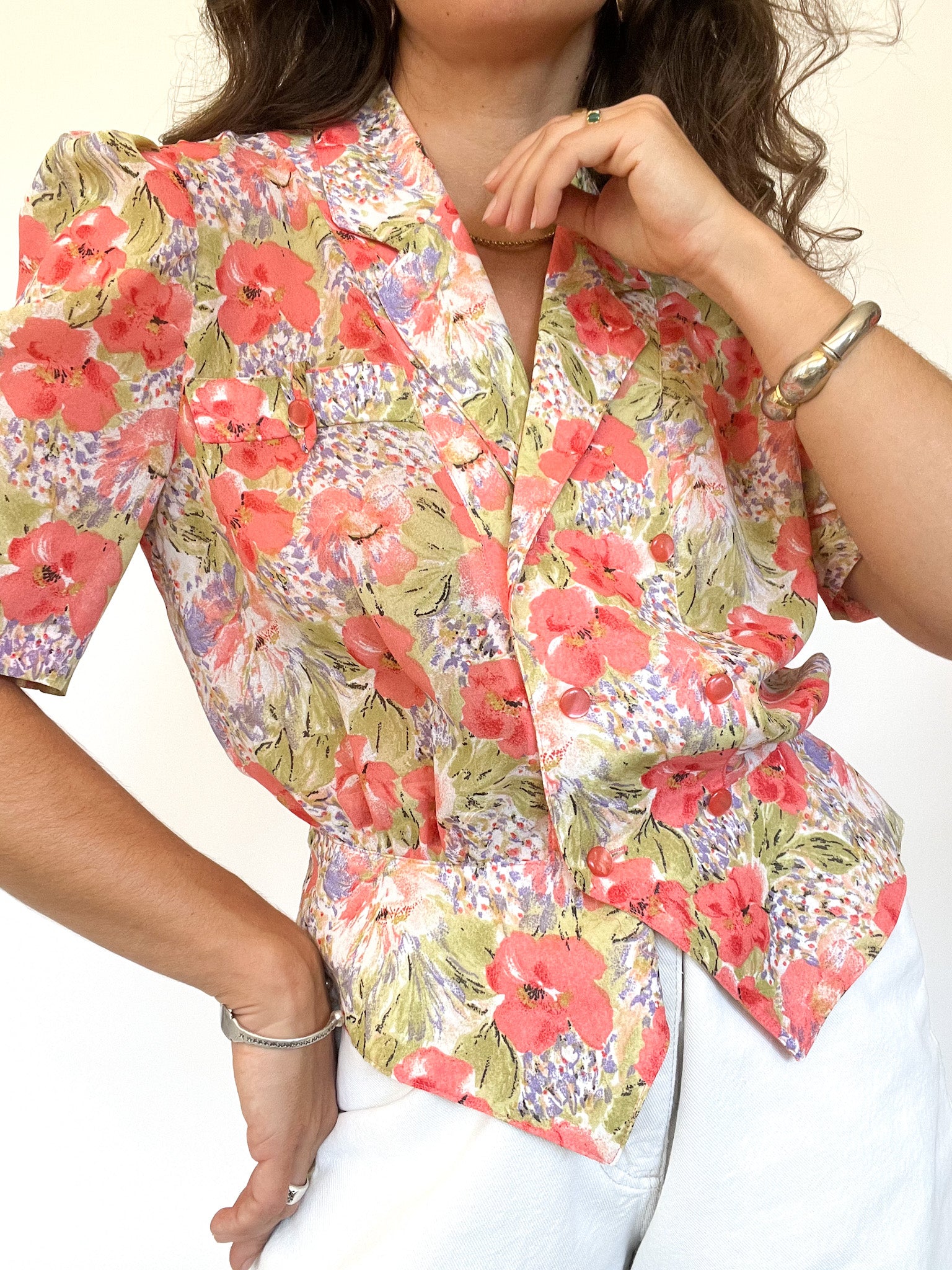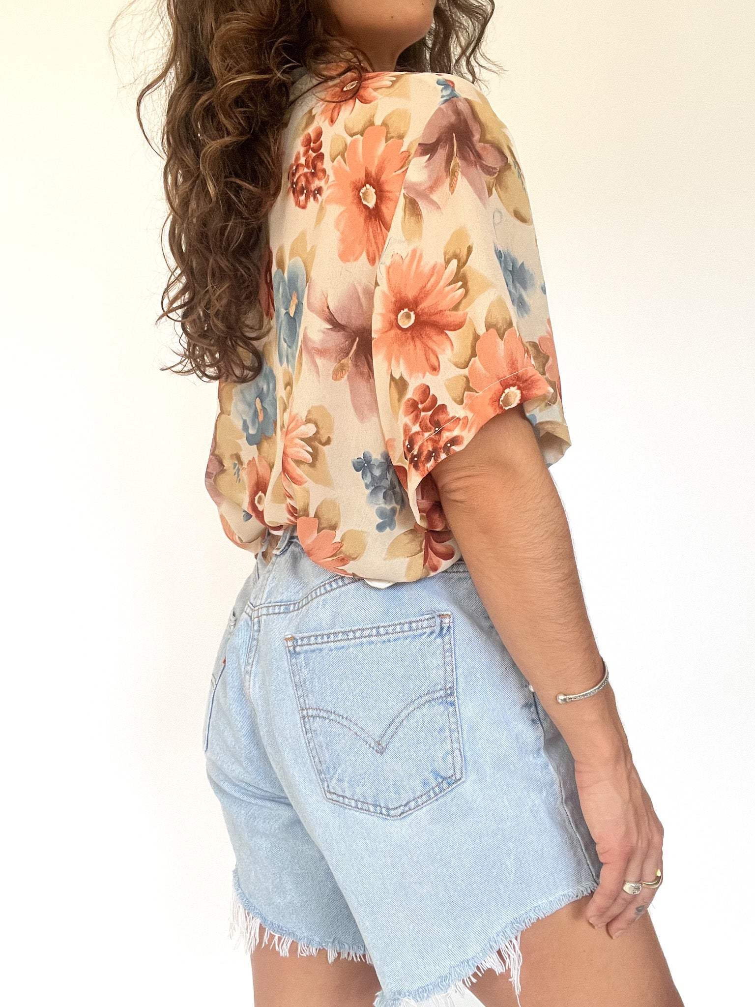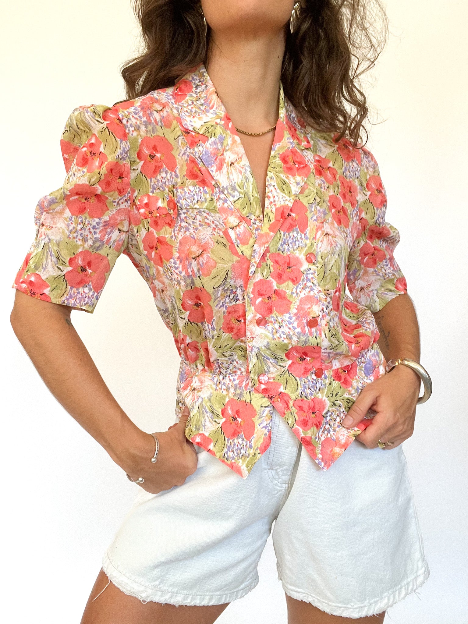 Vintage 80’s Beige Floral Short Sleeve Shirt