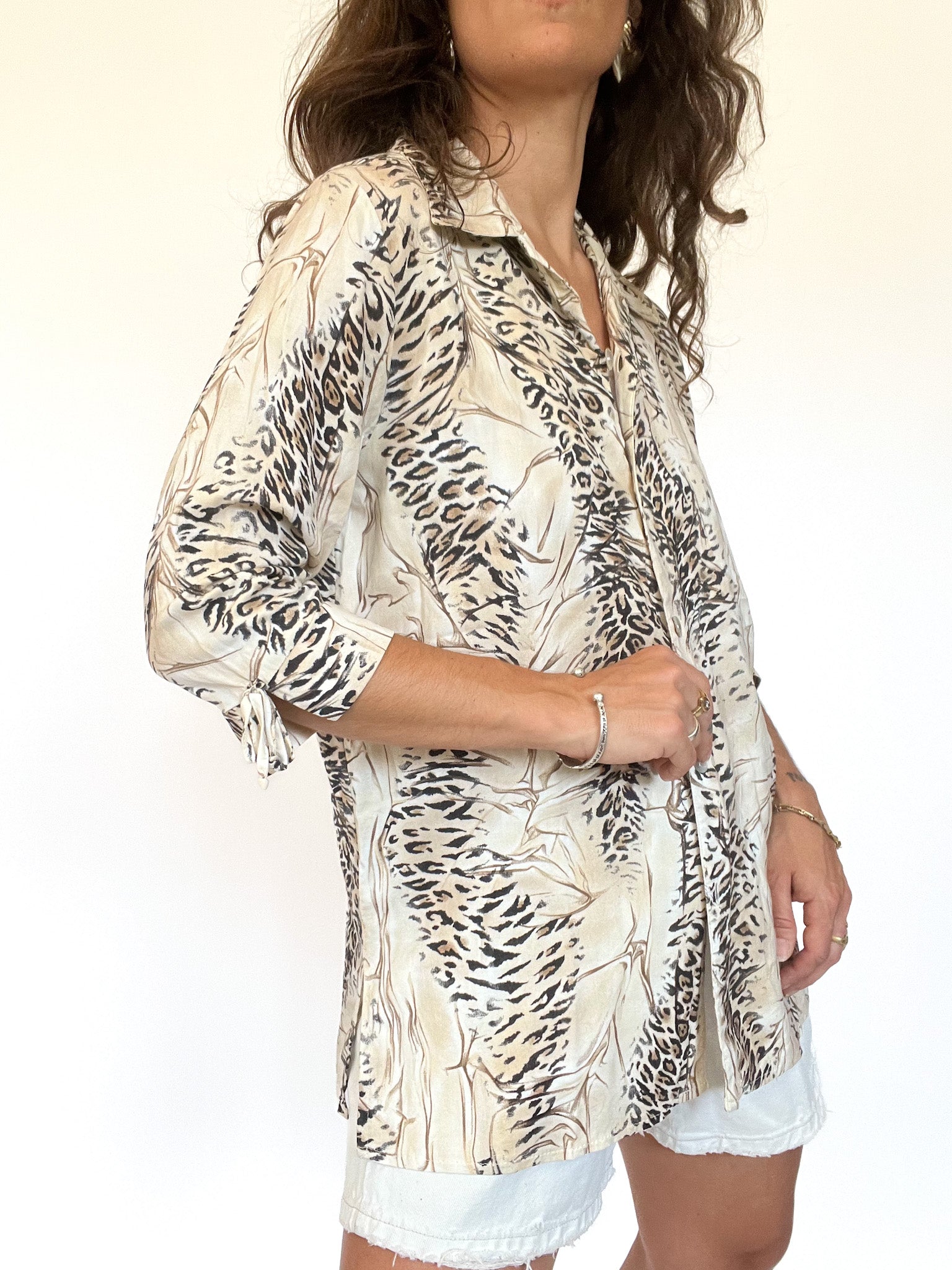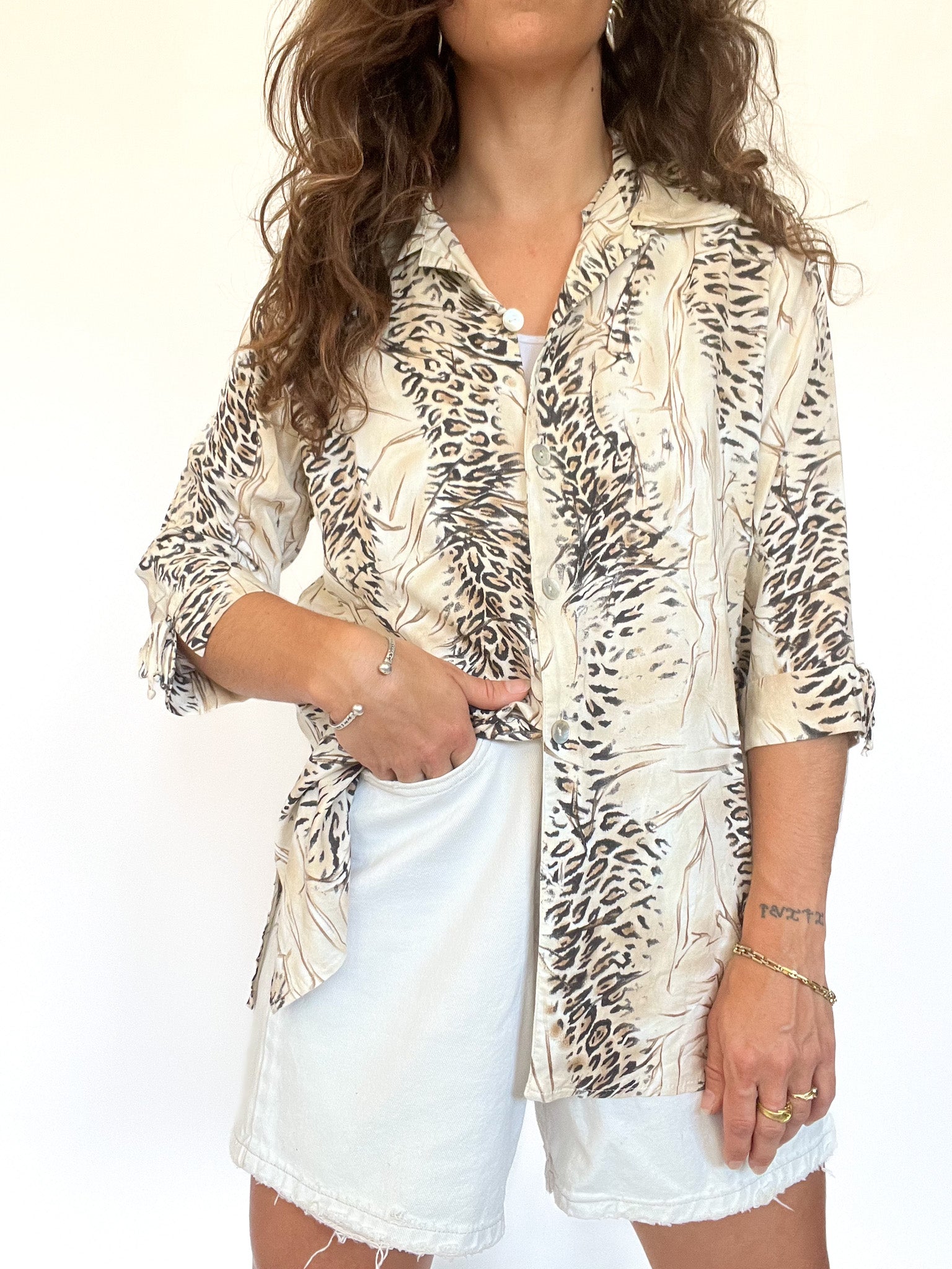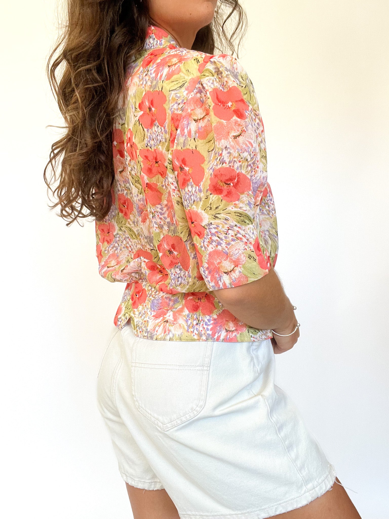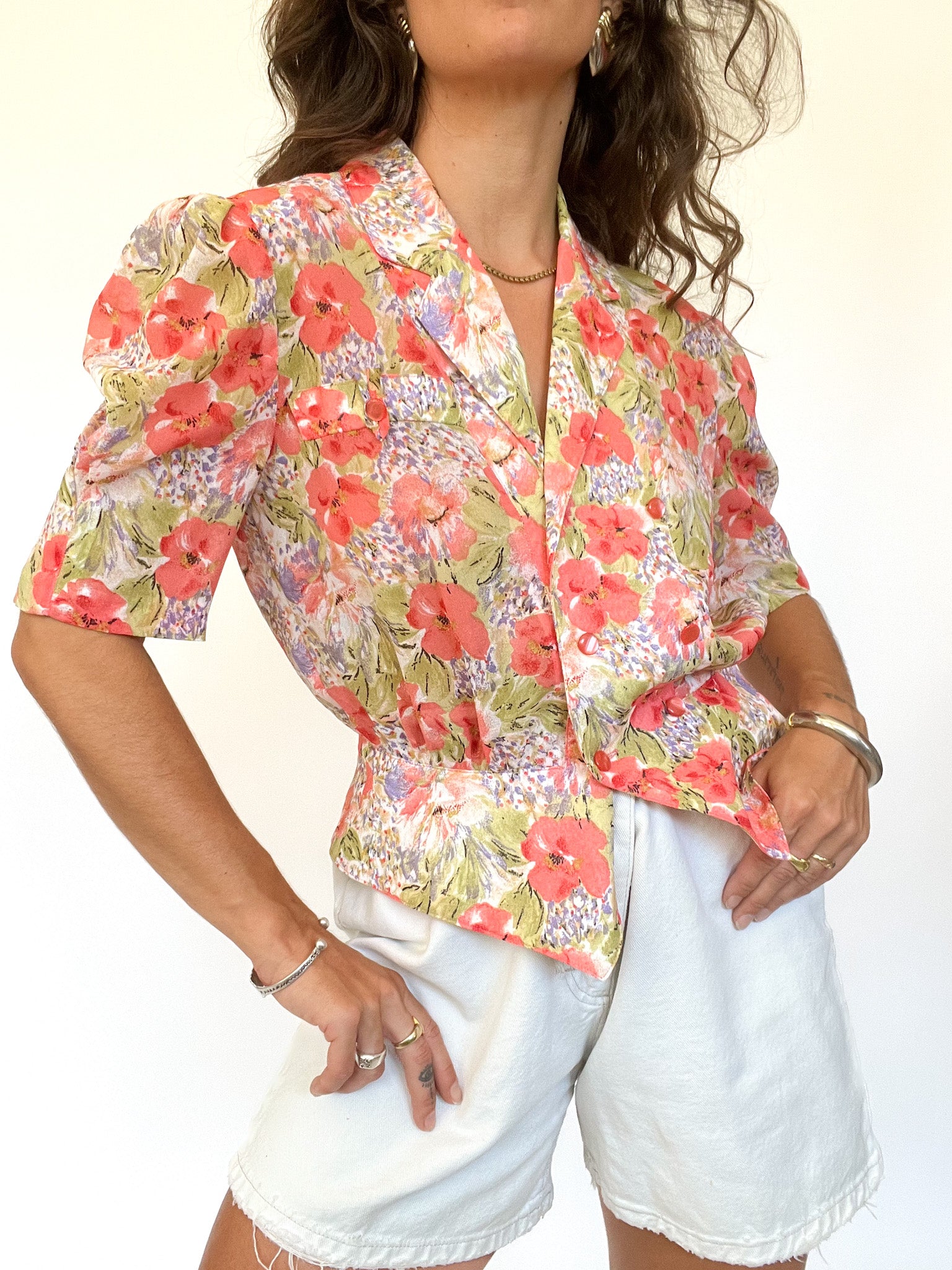 Vintage 80’s Beige Floral Short Sleeve Shirt