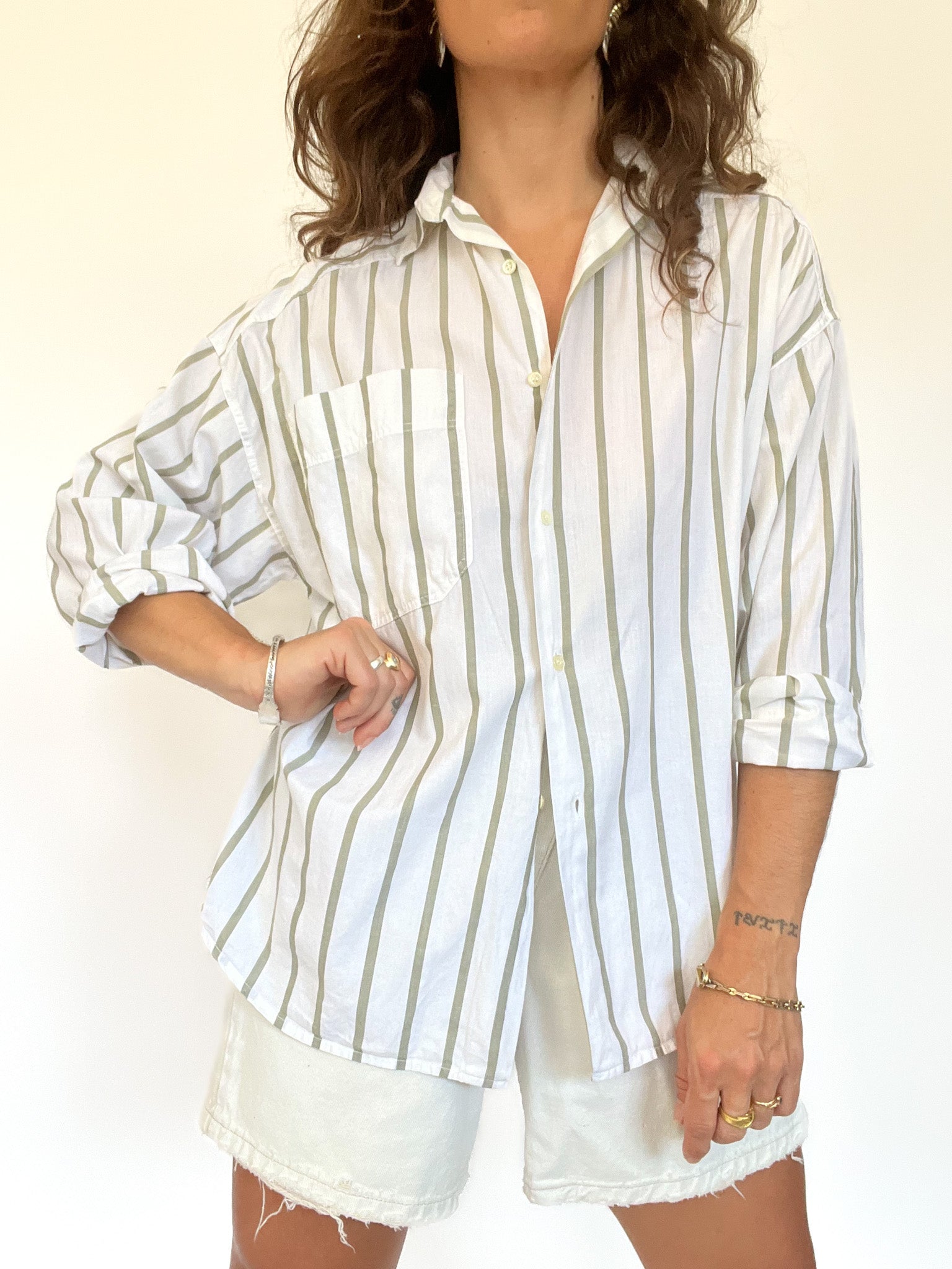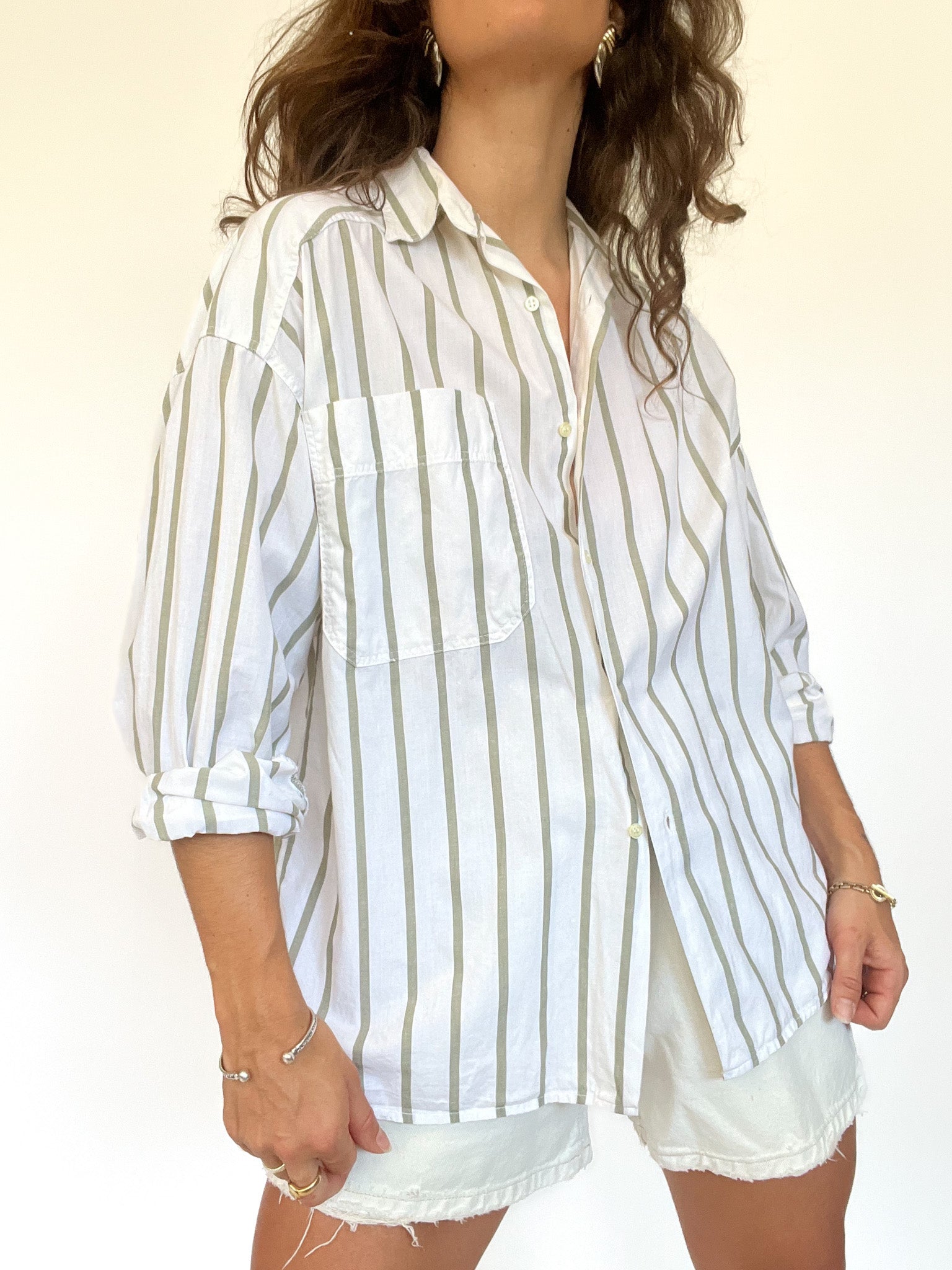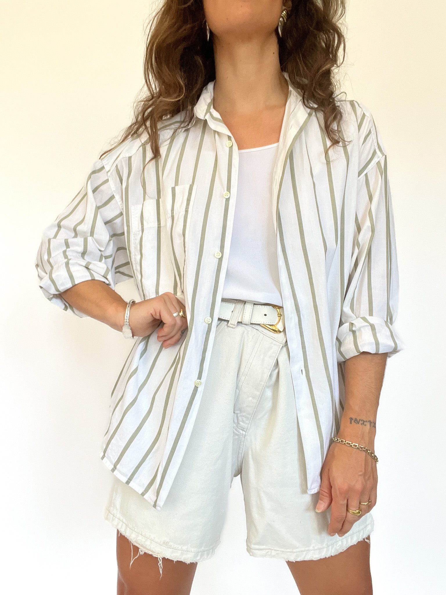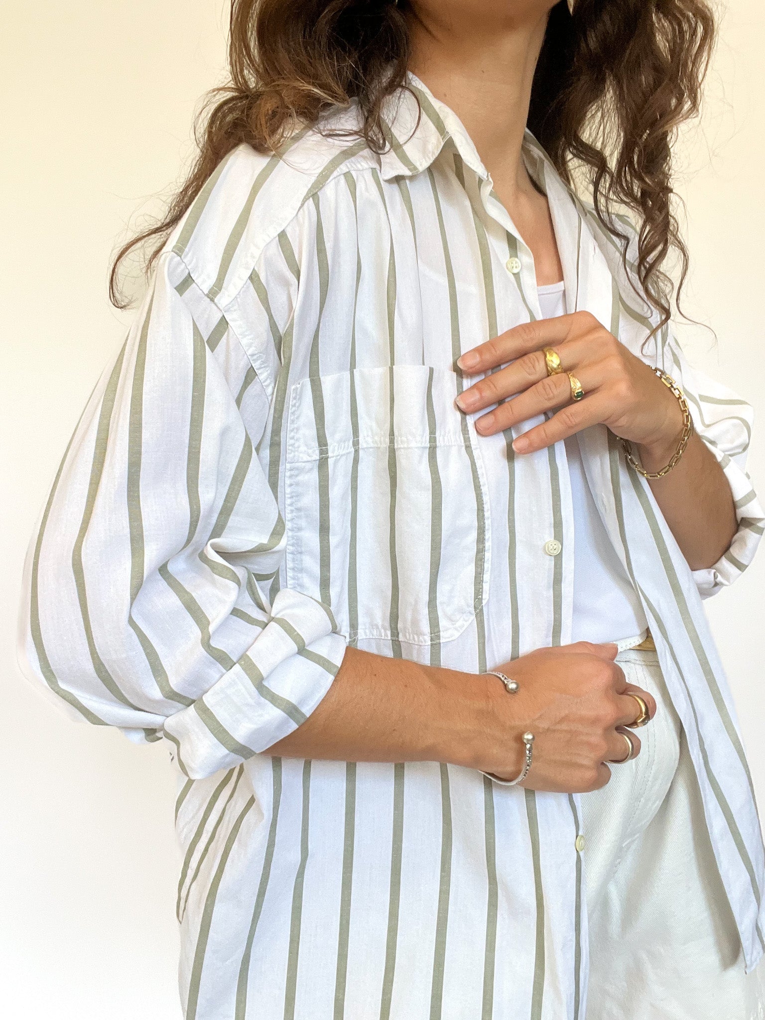 Vintage 90’s White & Sage Striped Cotton Shirt