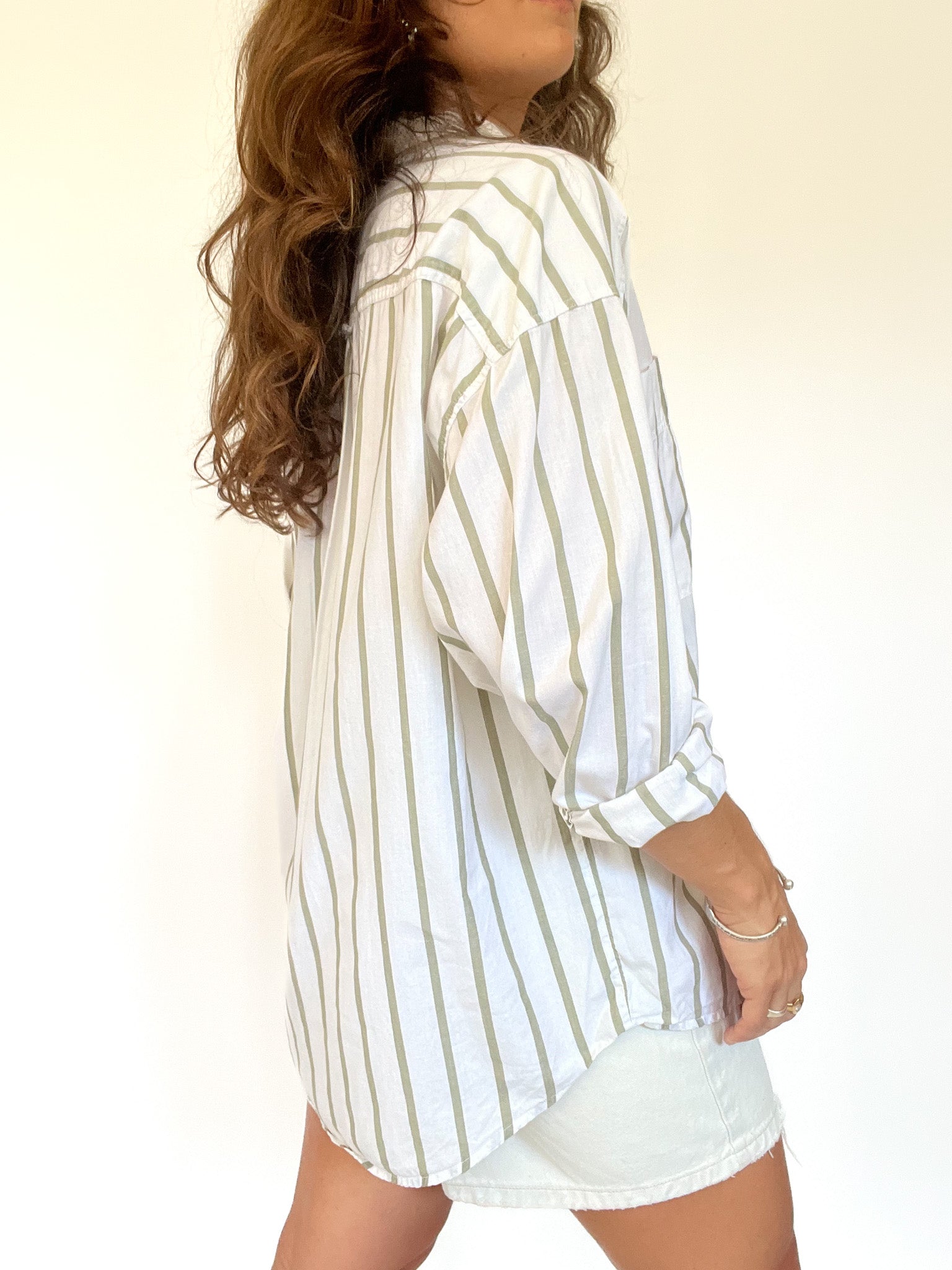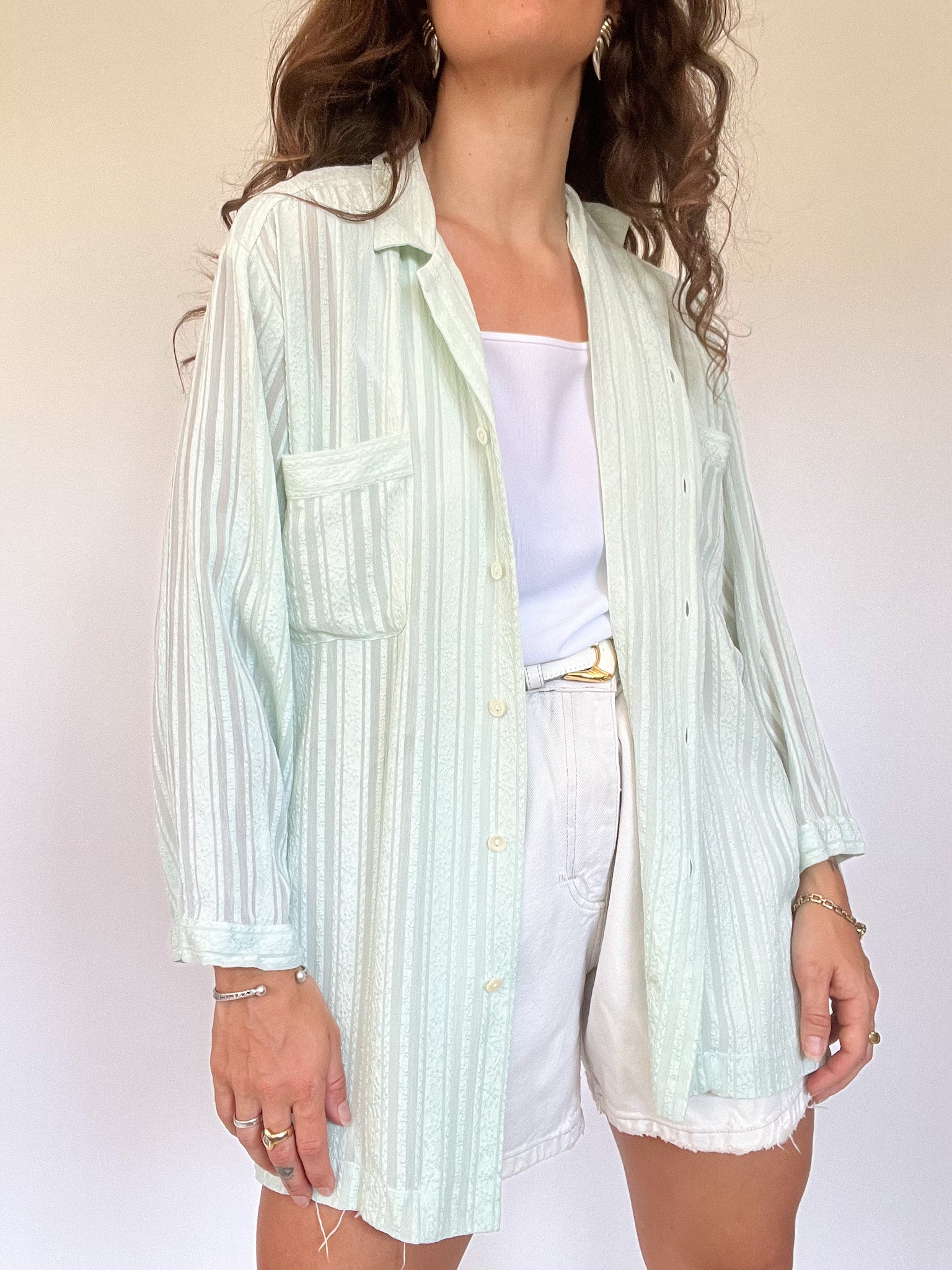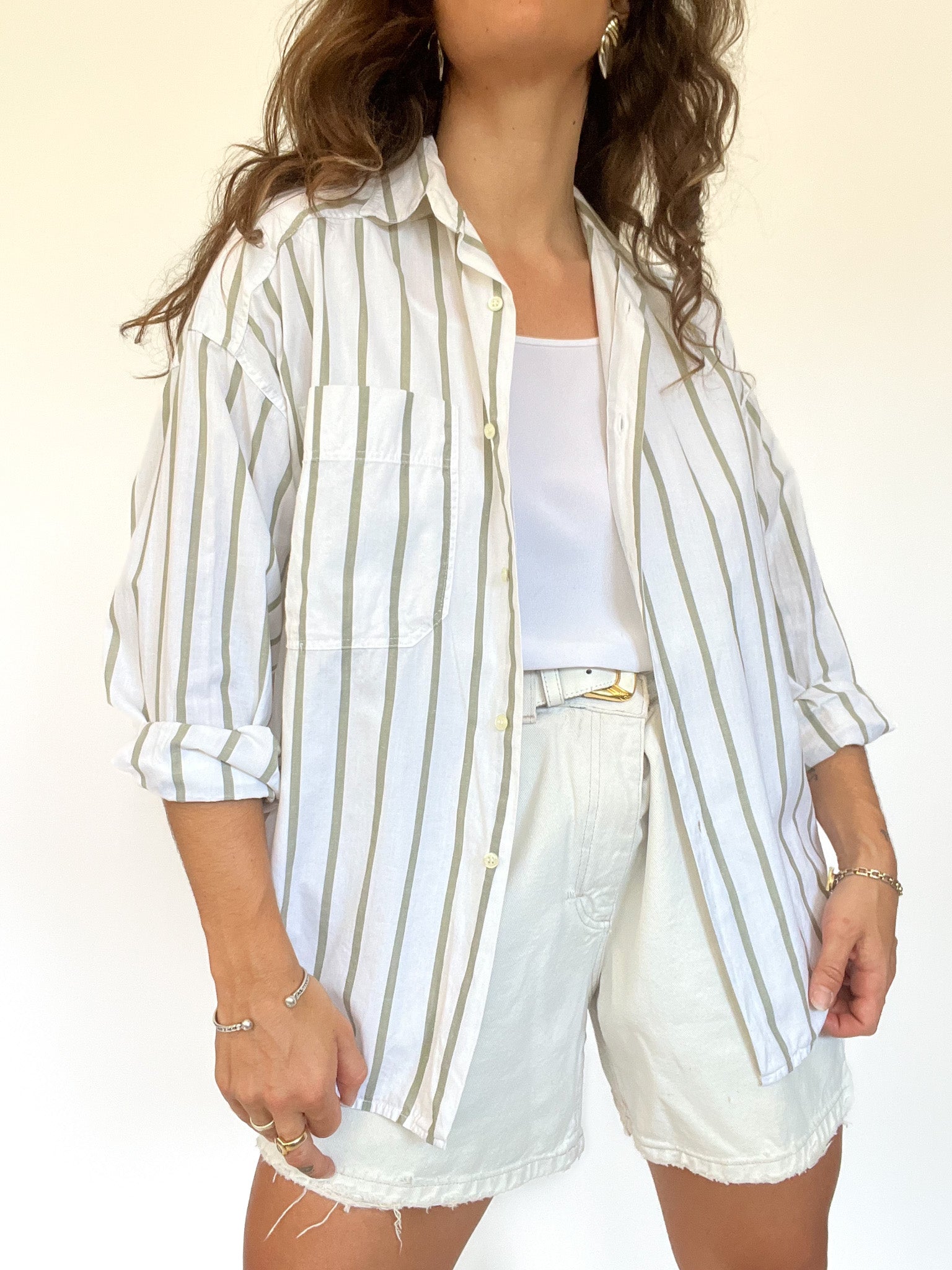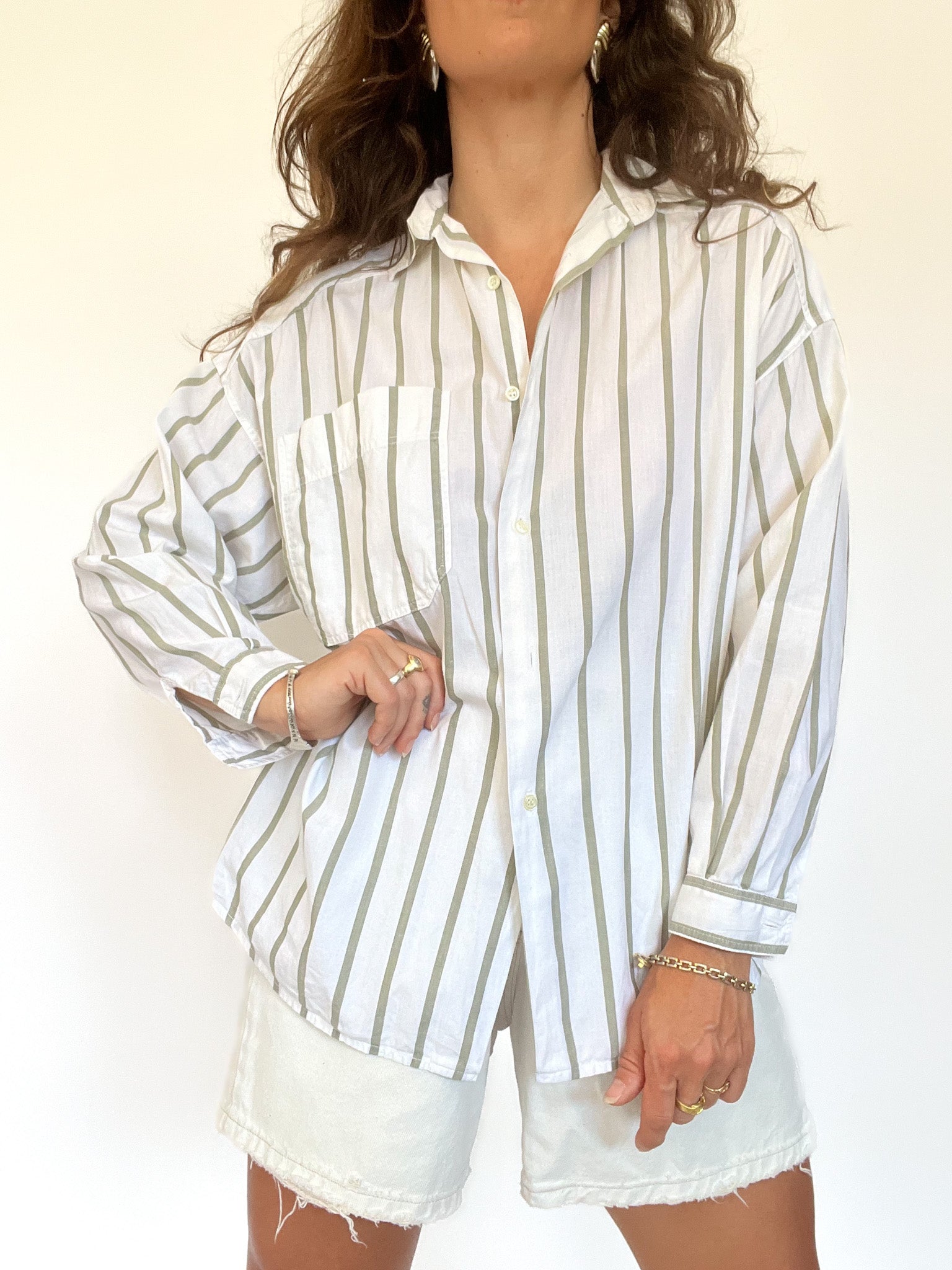 Vintage 90’s White & Sage Striped Cotton Shirt