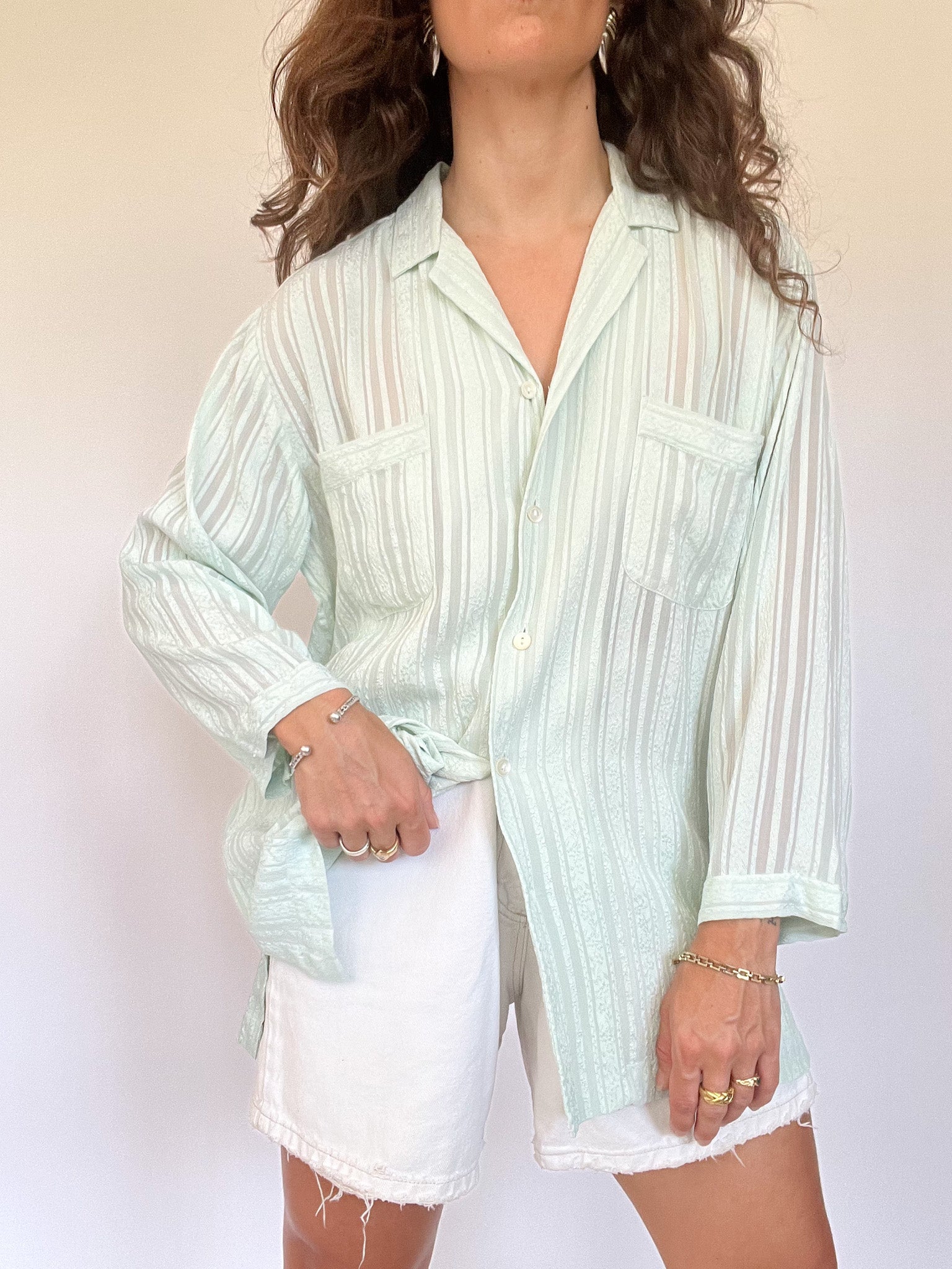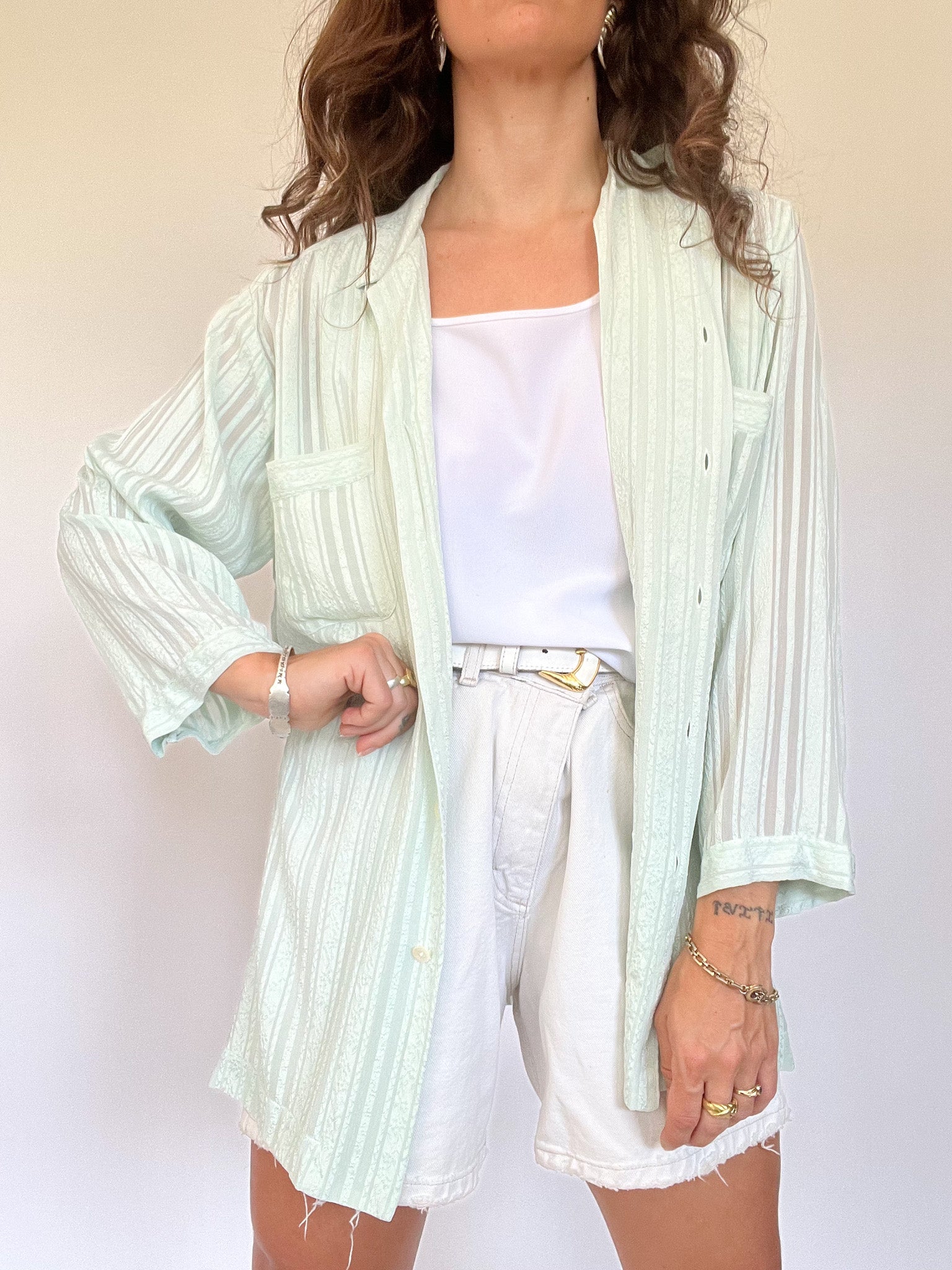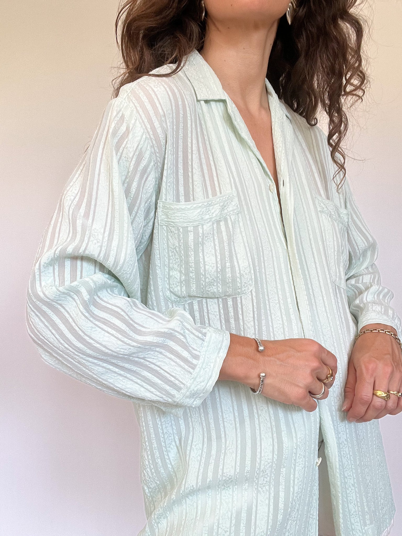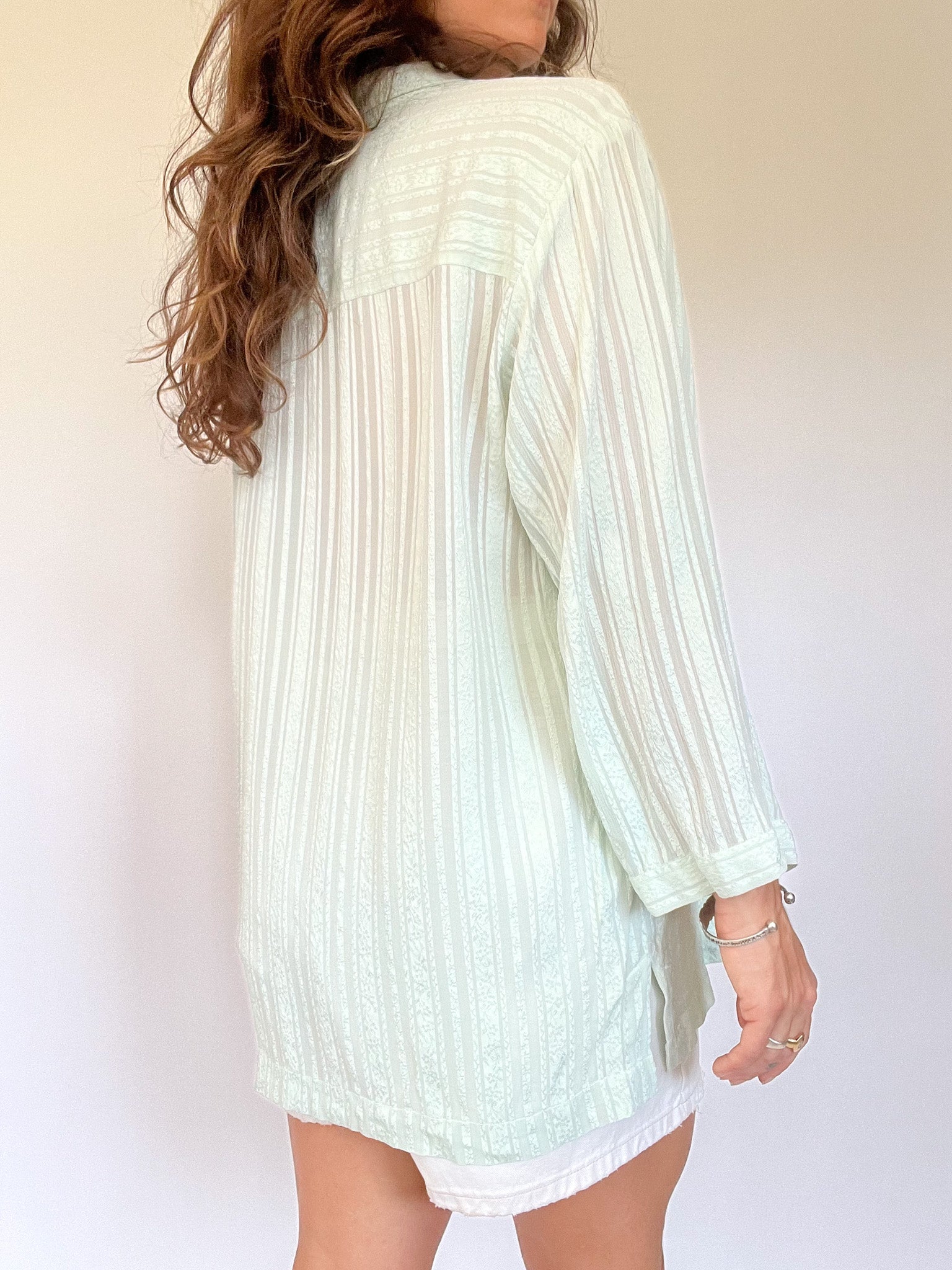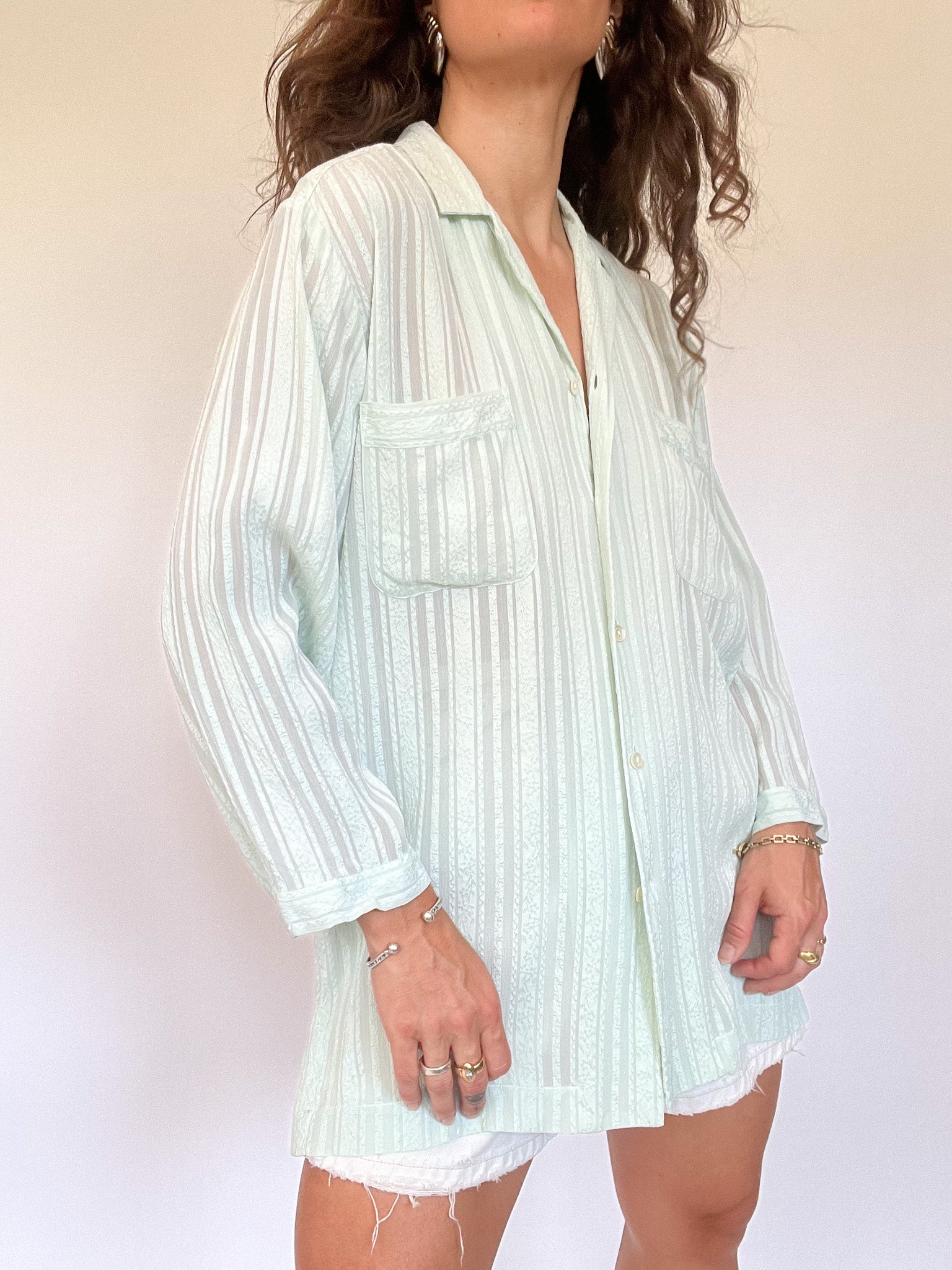 Vintage 90’s White & Sage Striped Cotton Shirt