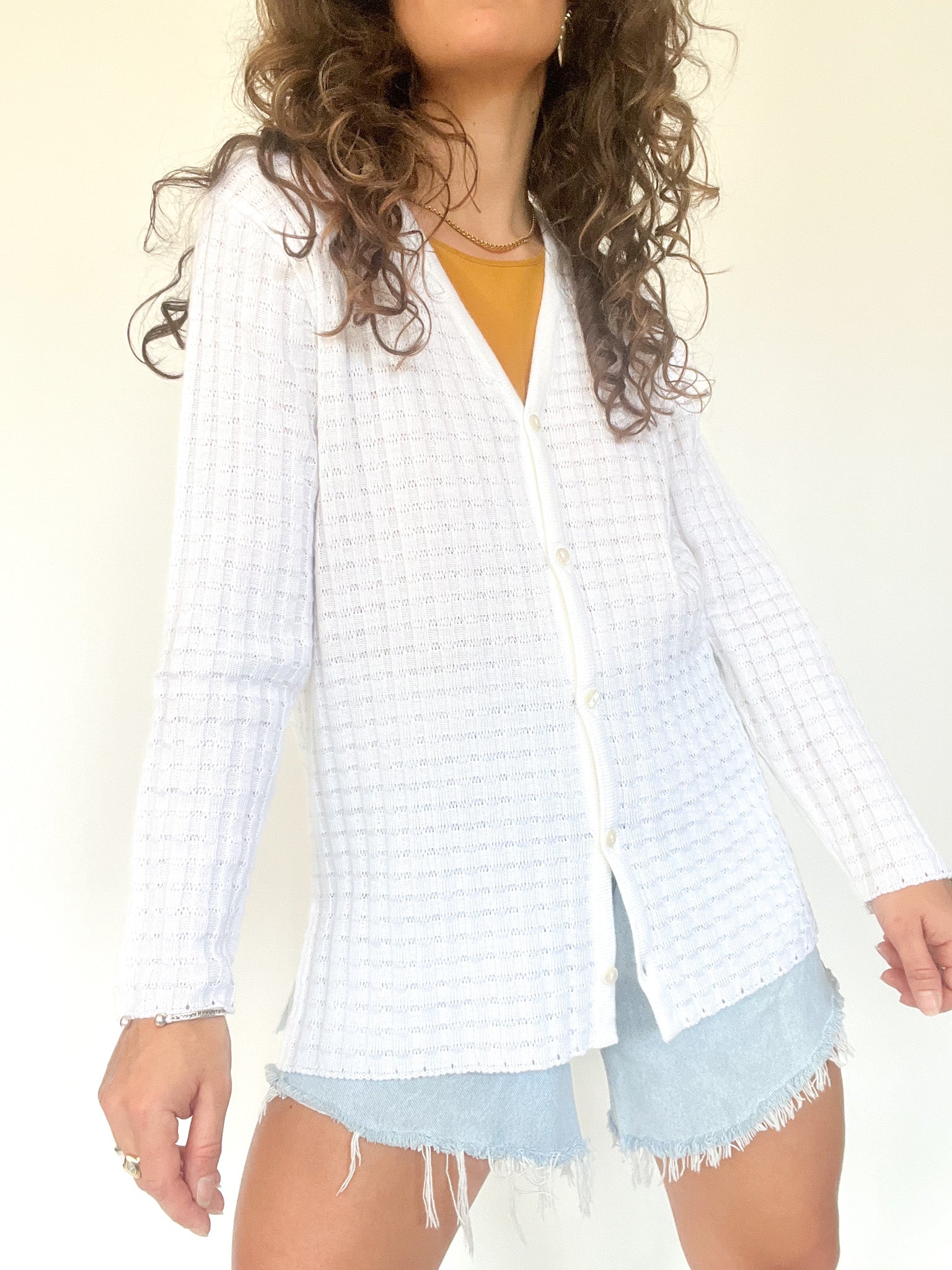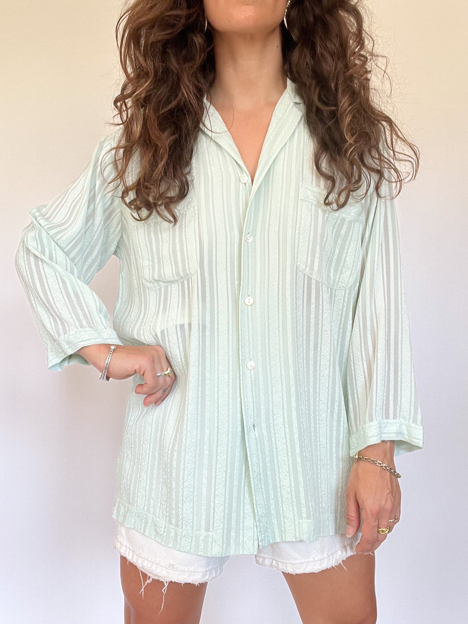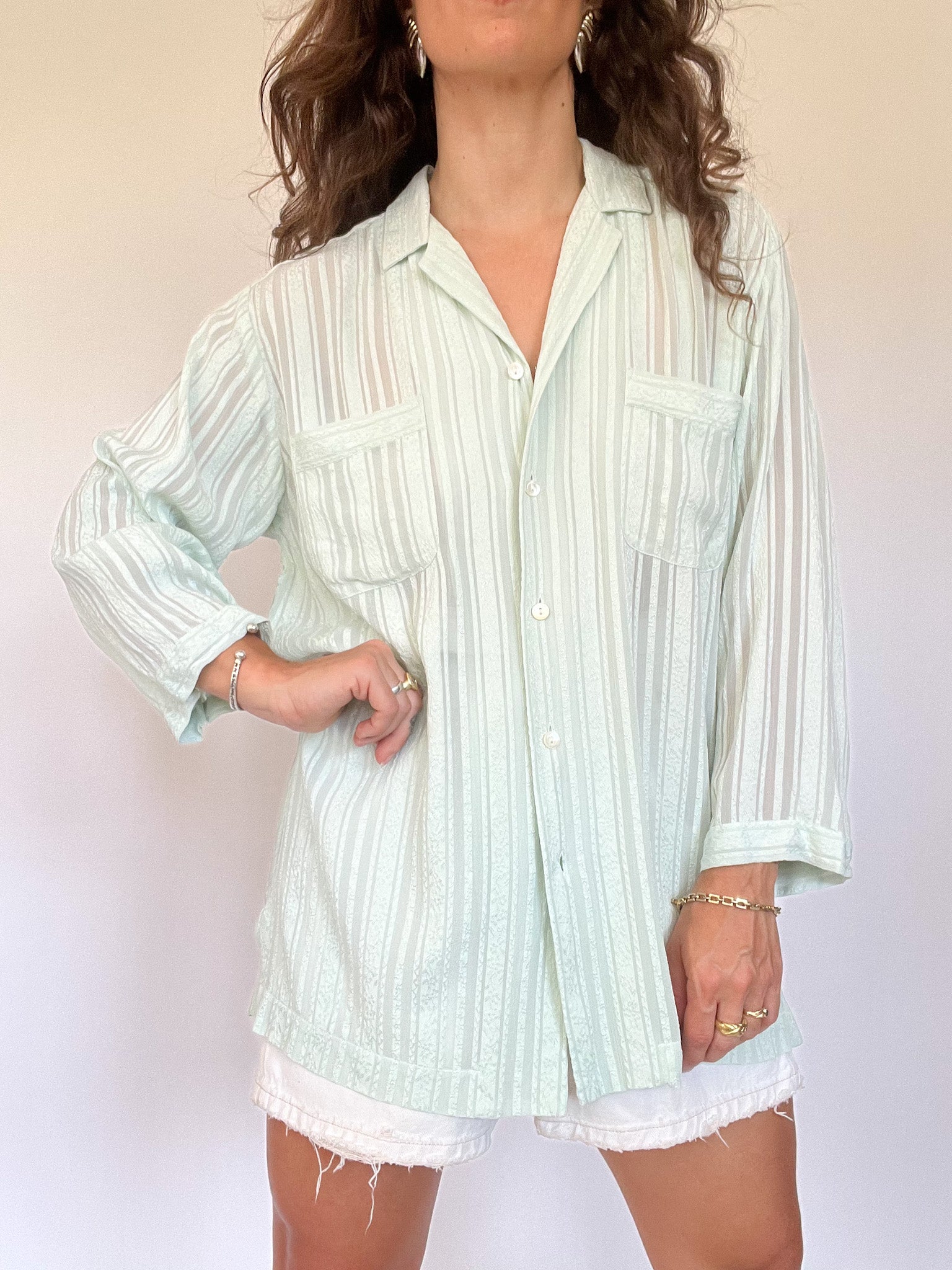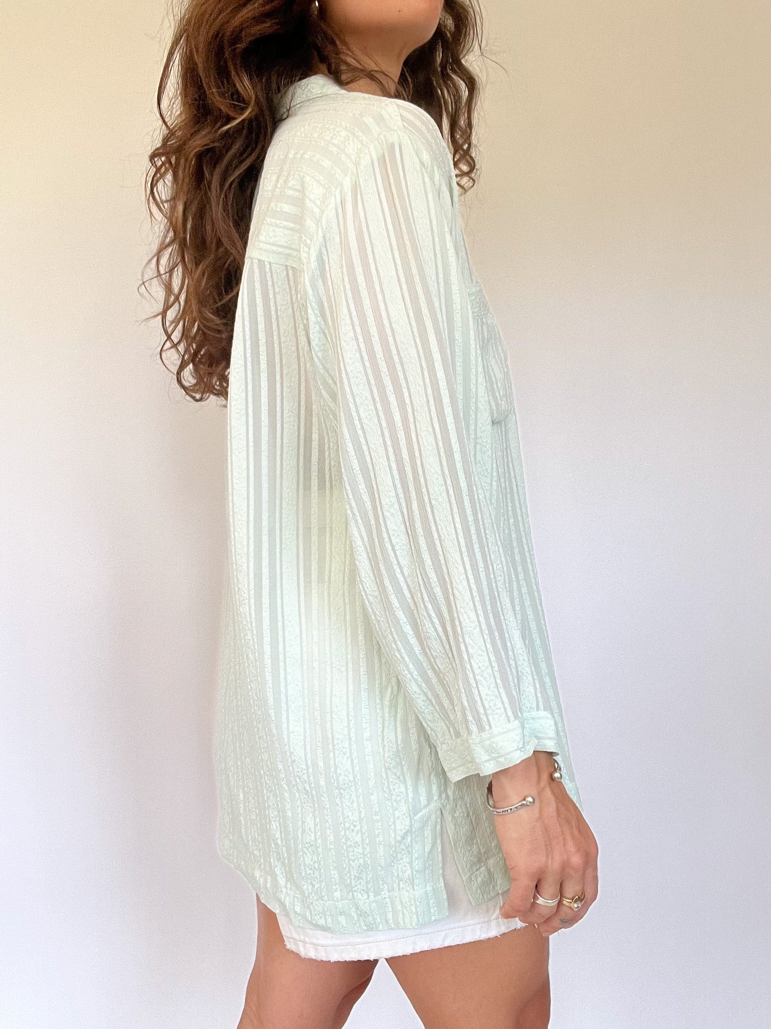 Vintage 90’s White & Sage Striped Cotton Shirt