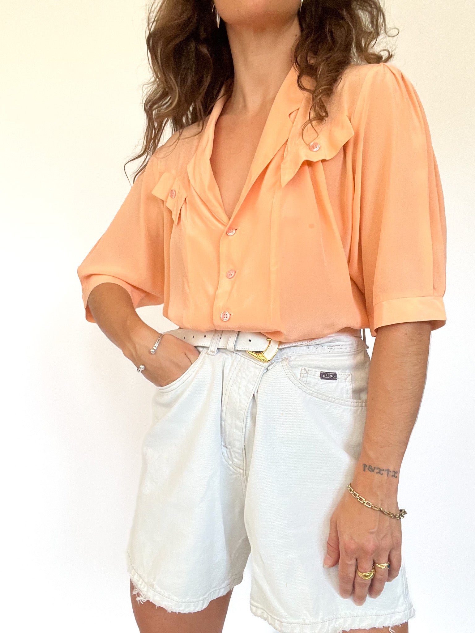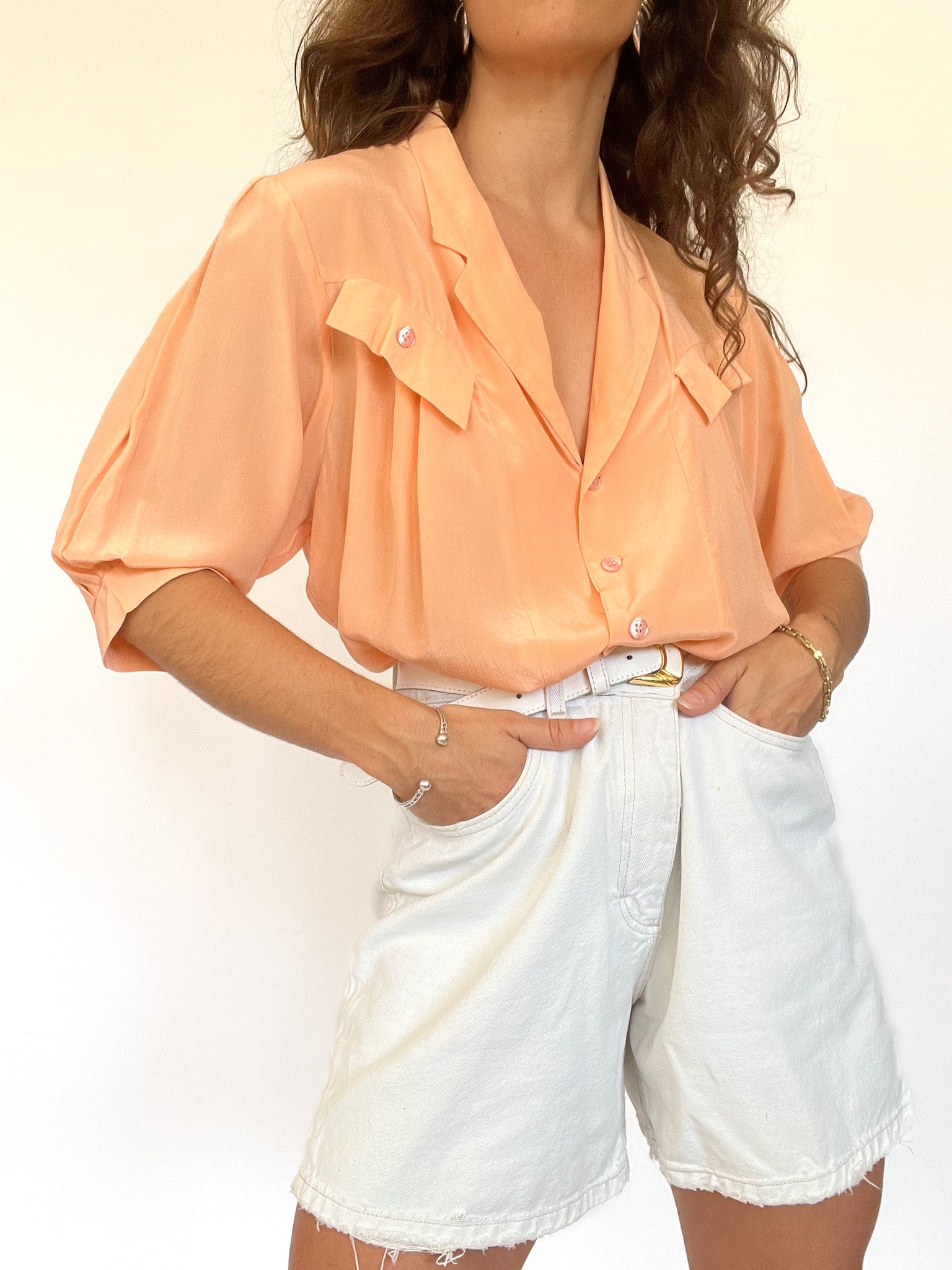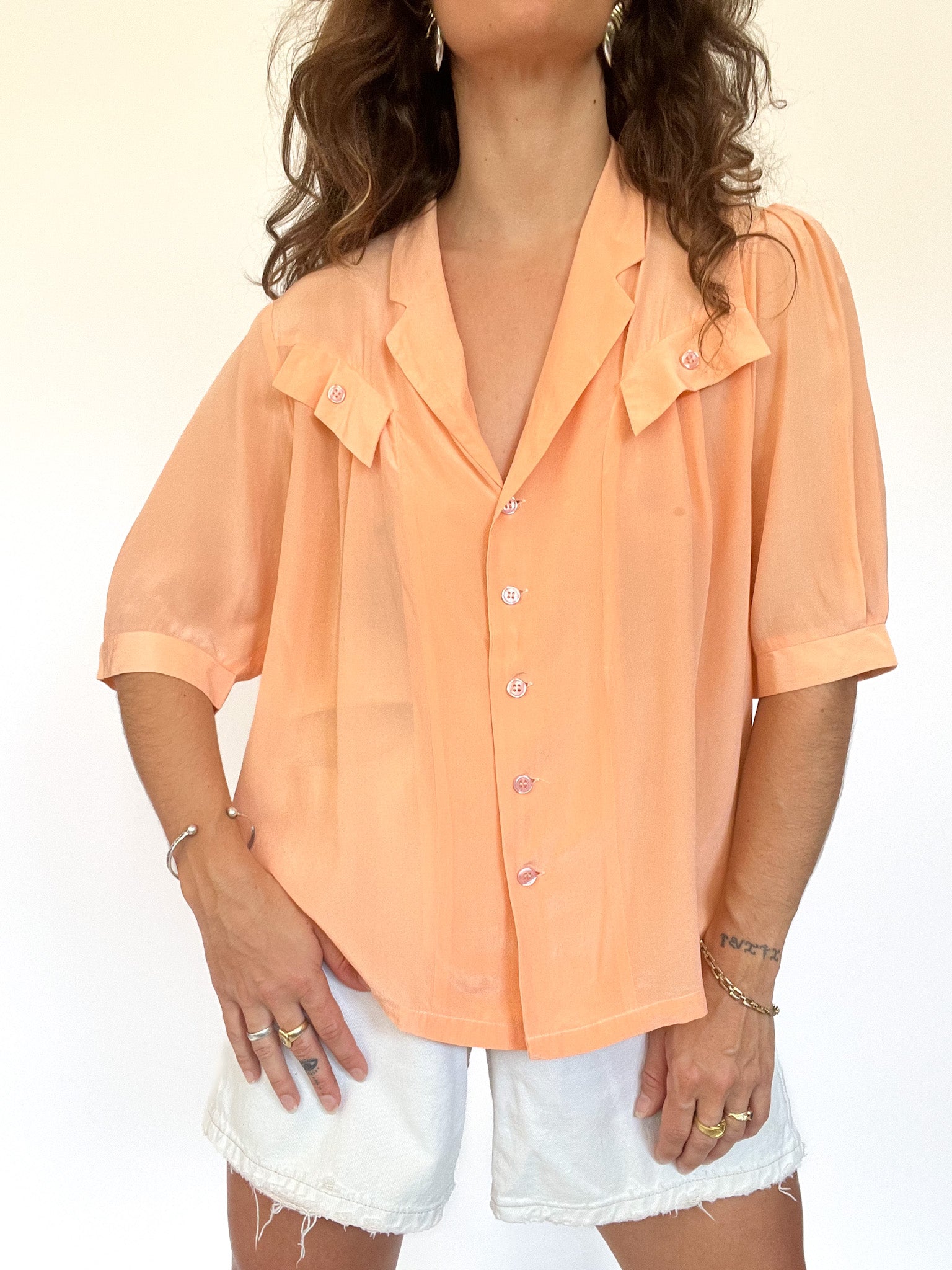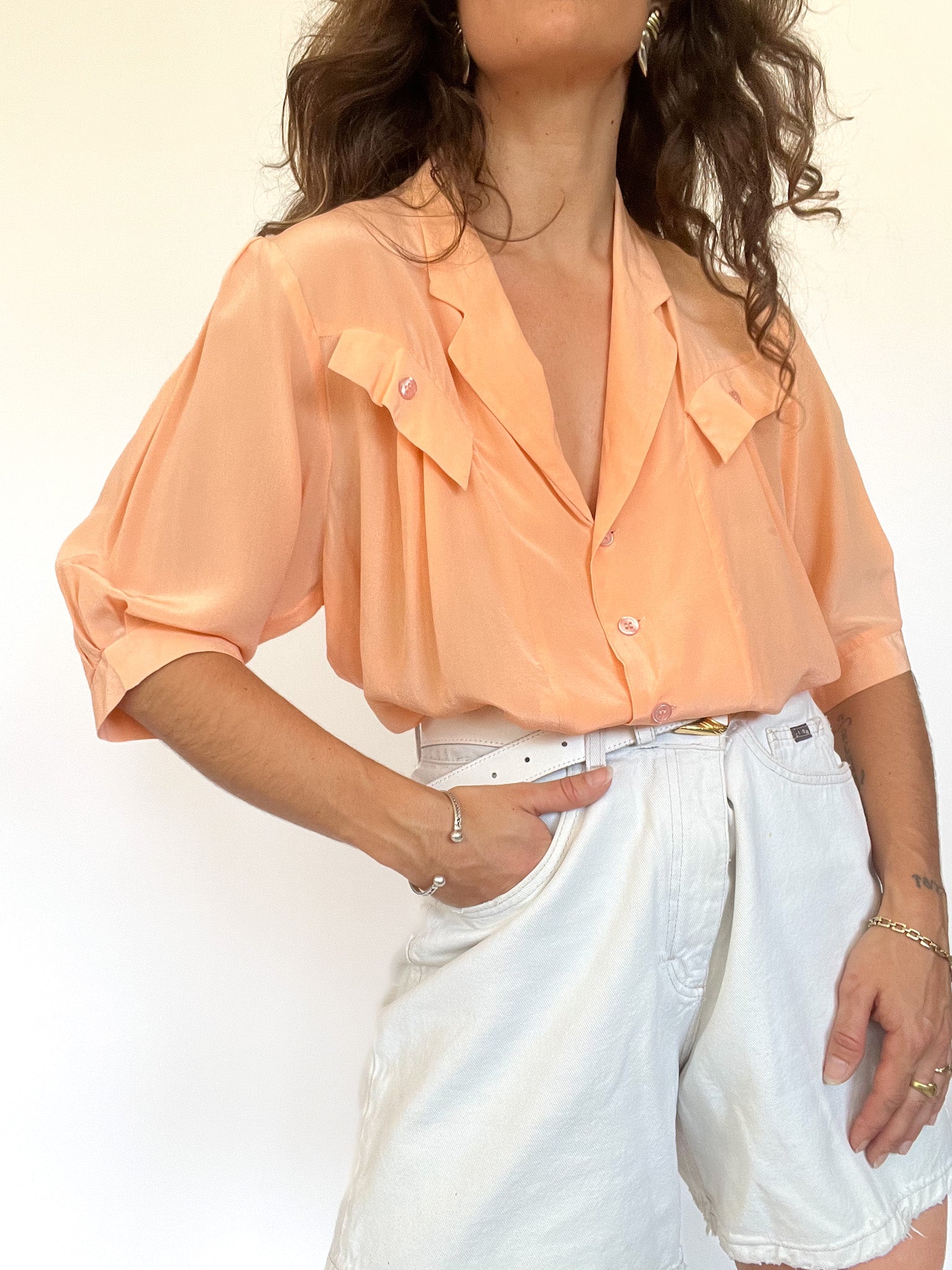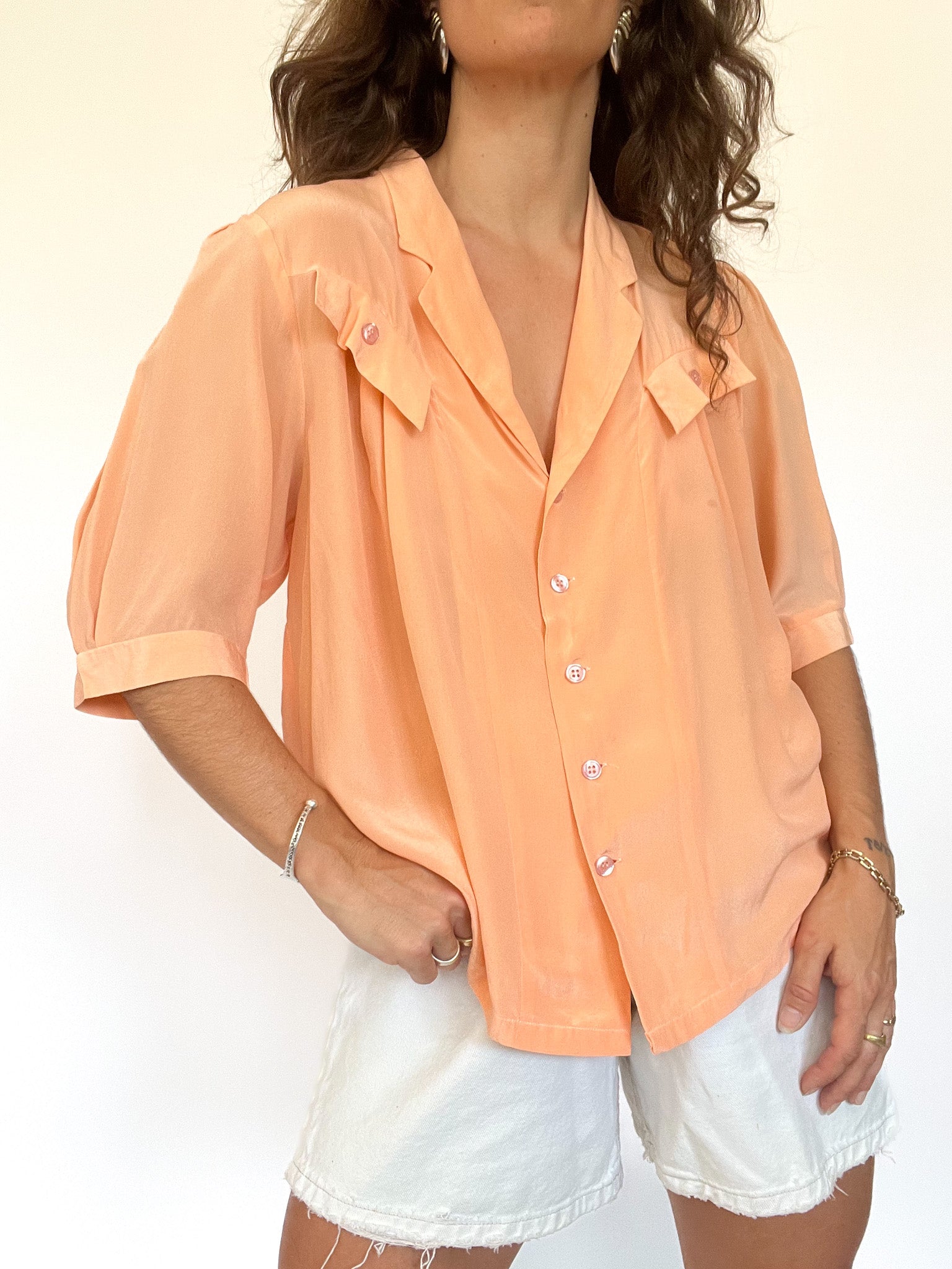 Vintage 90’s Peach Silk Shirt with Pocket Detail