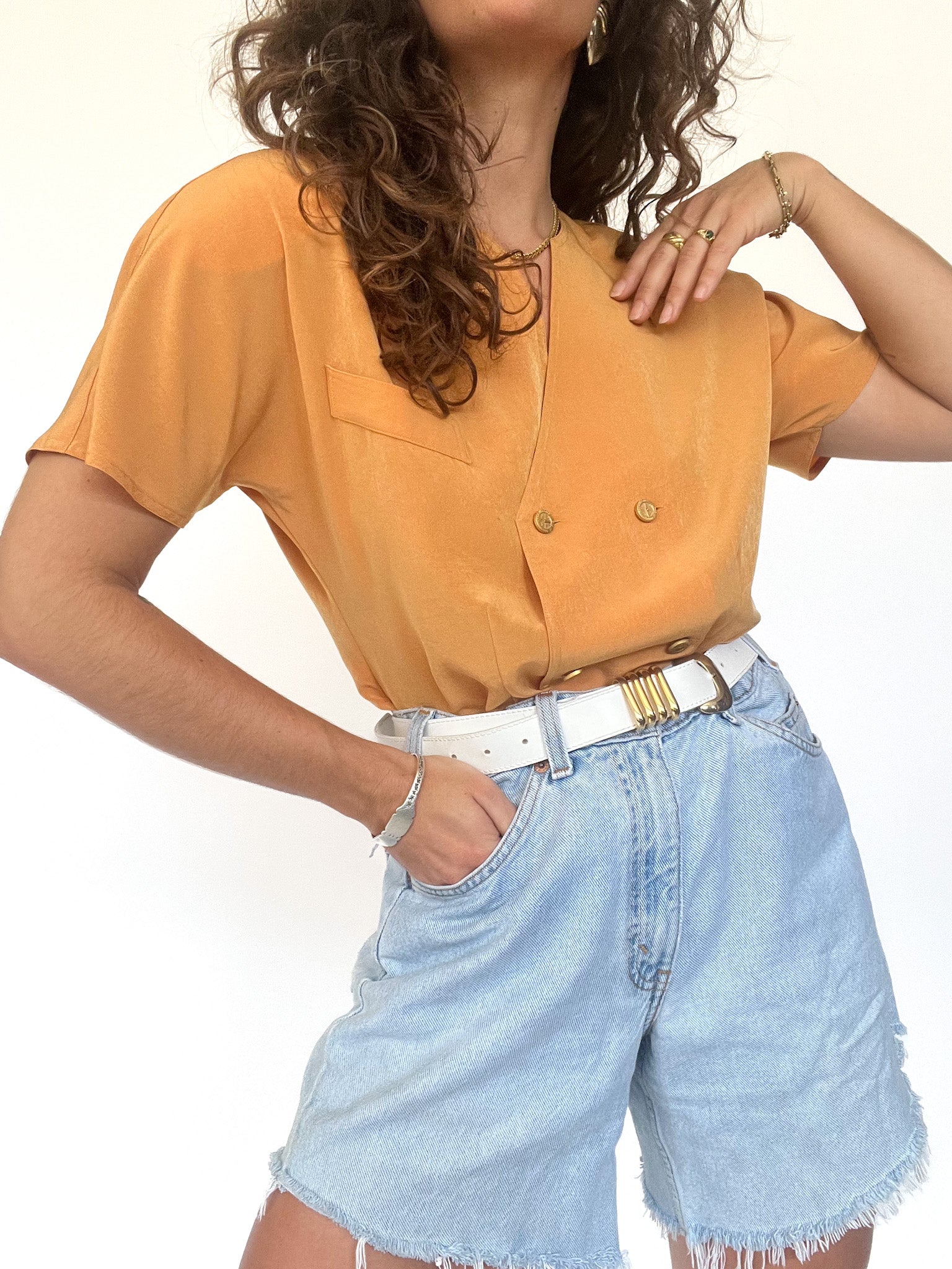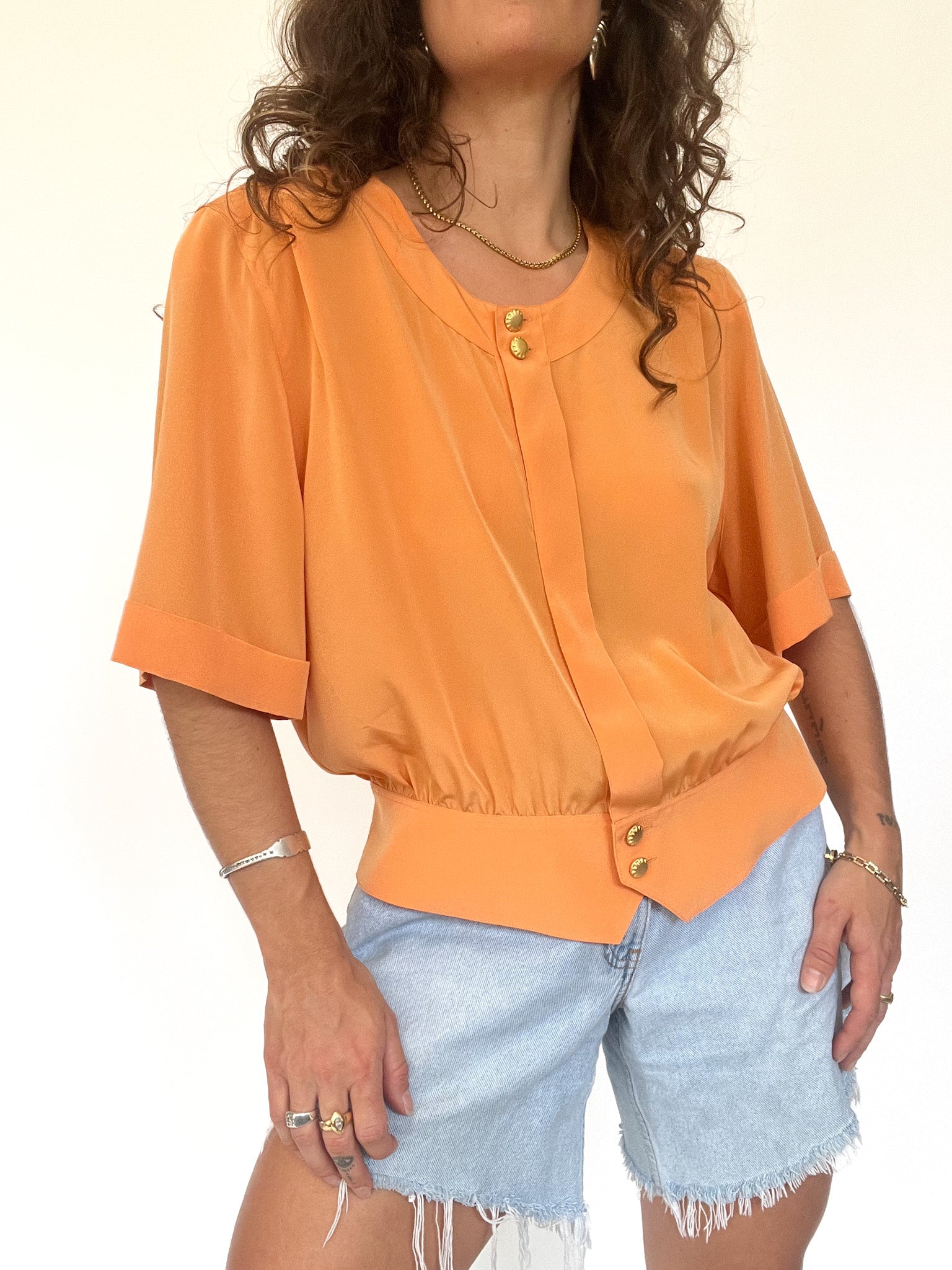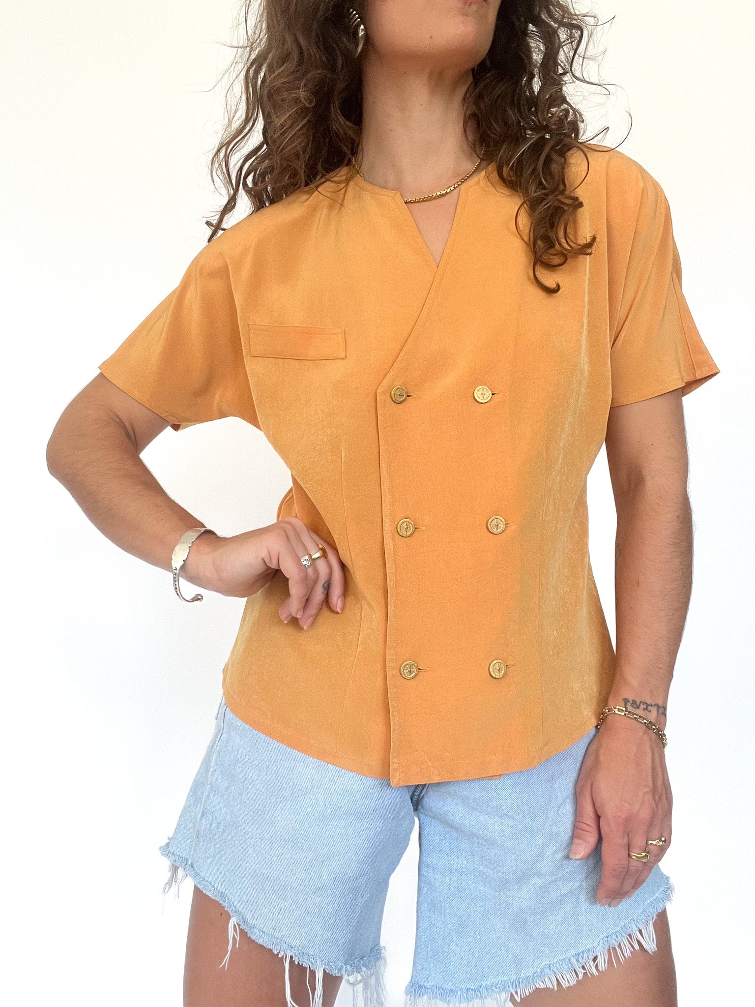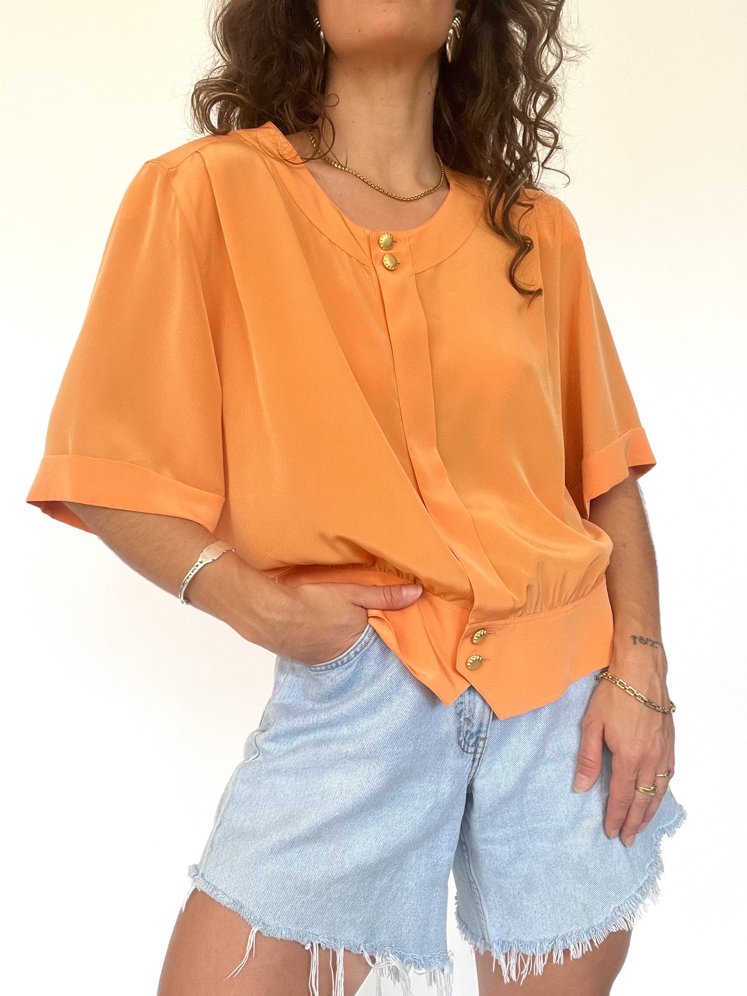 Vintage 90’s Peach Silk Shirt with Pocket Detail
