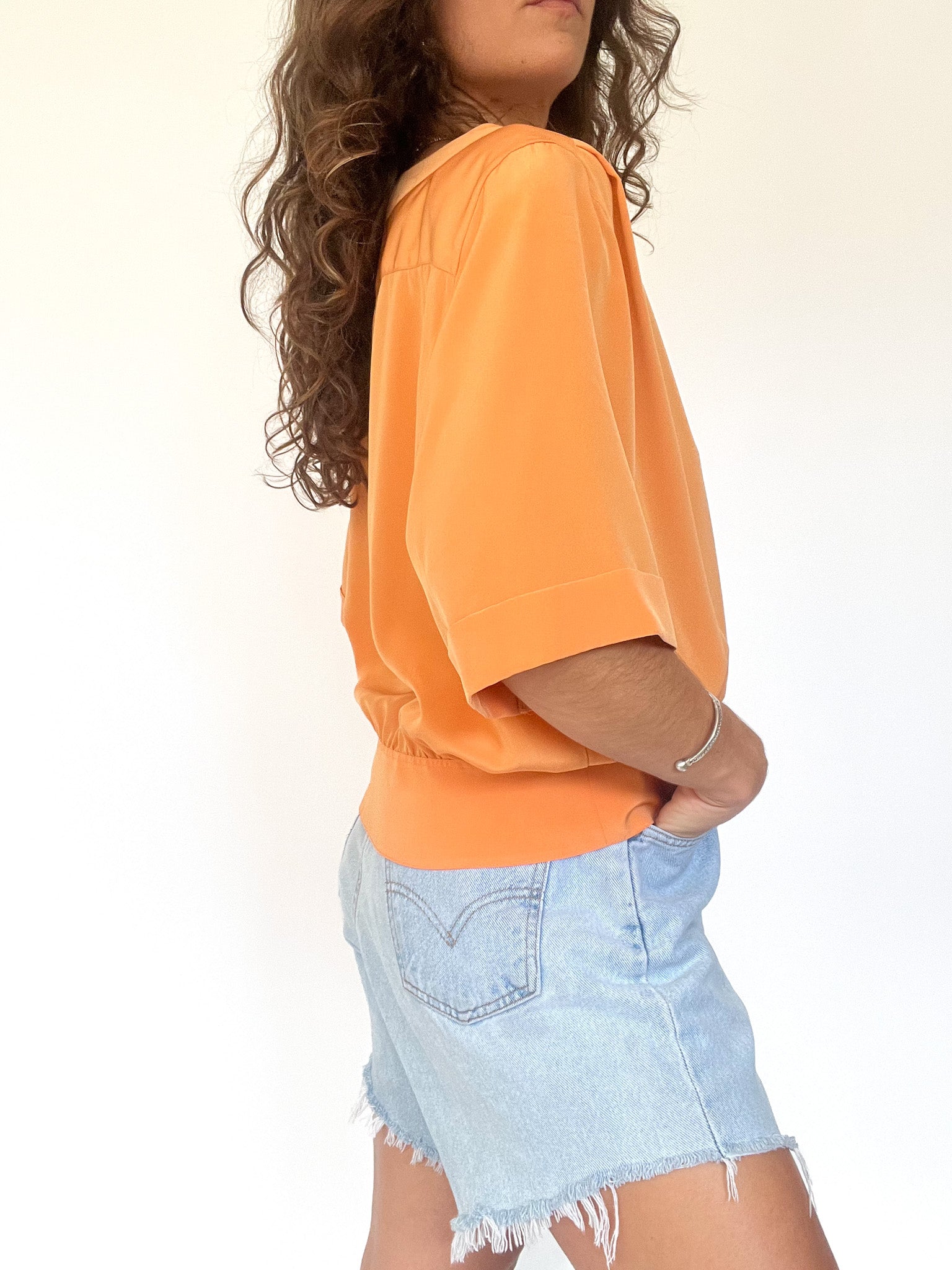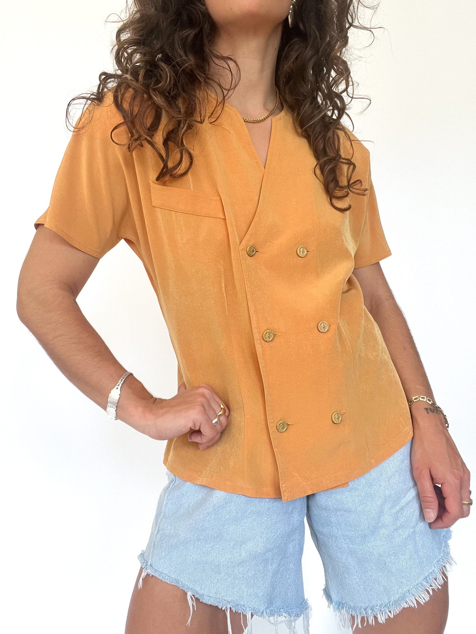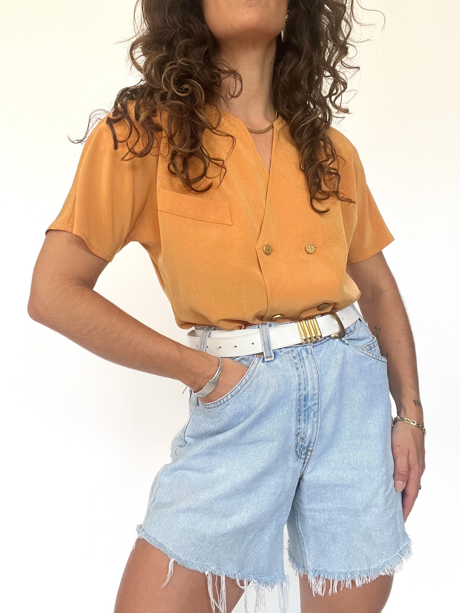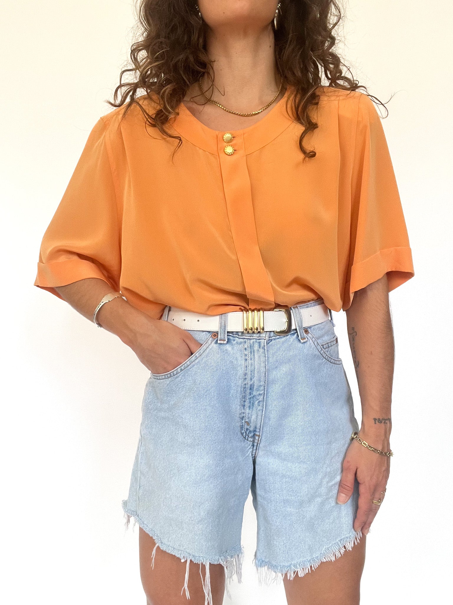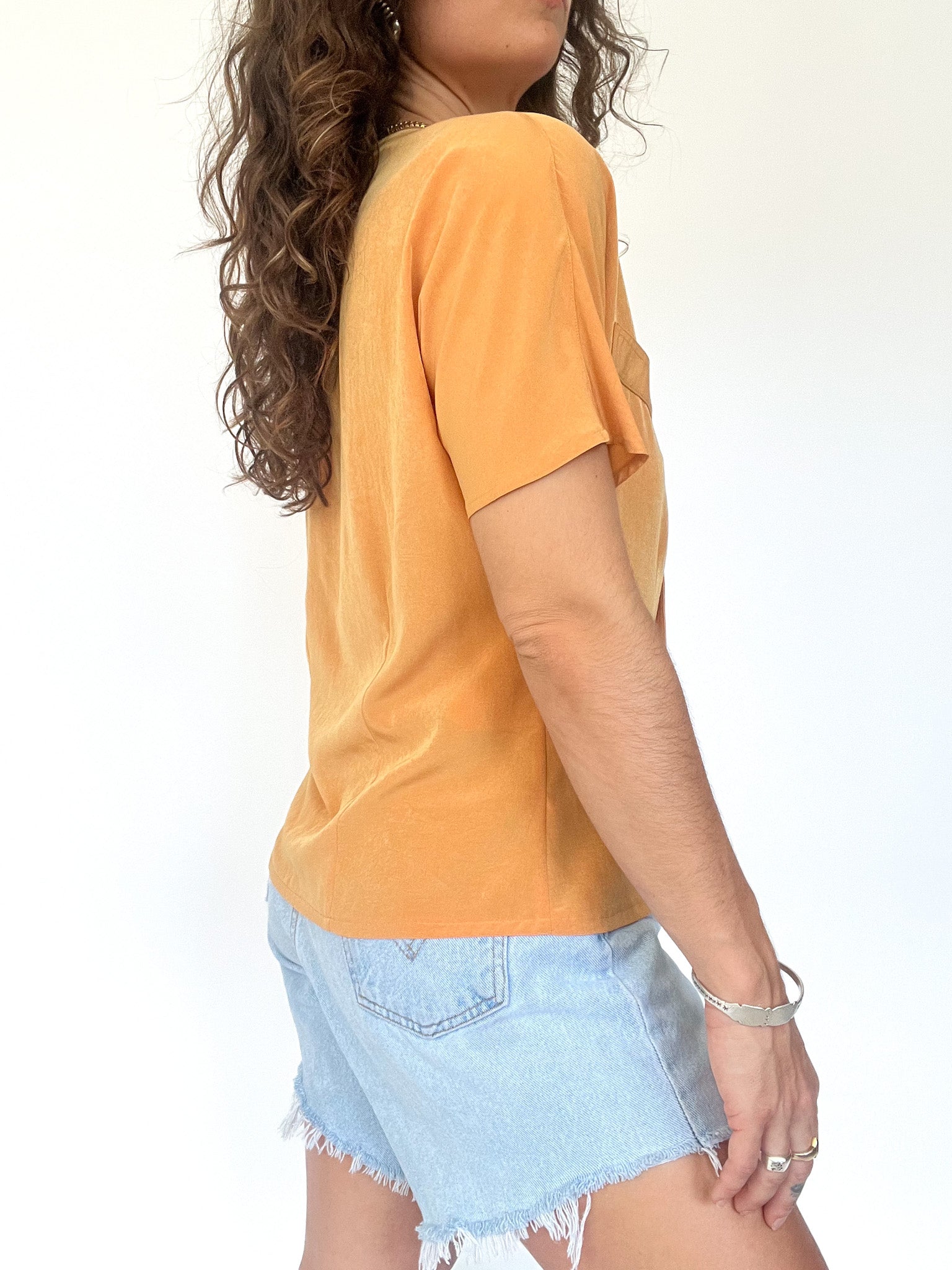 Vintage 90’s Peach Silk Shirt with Pocket Detail