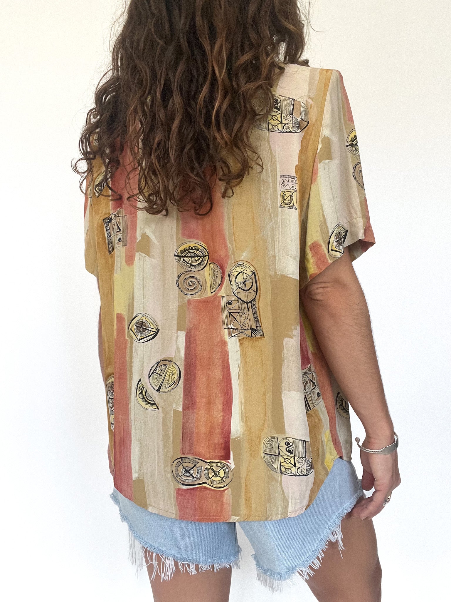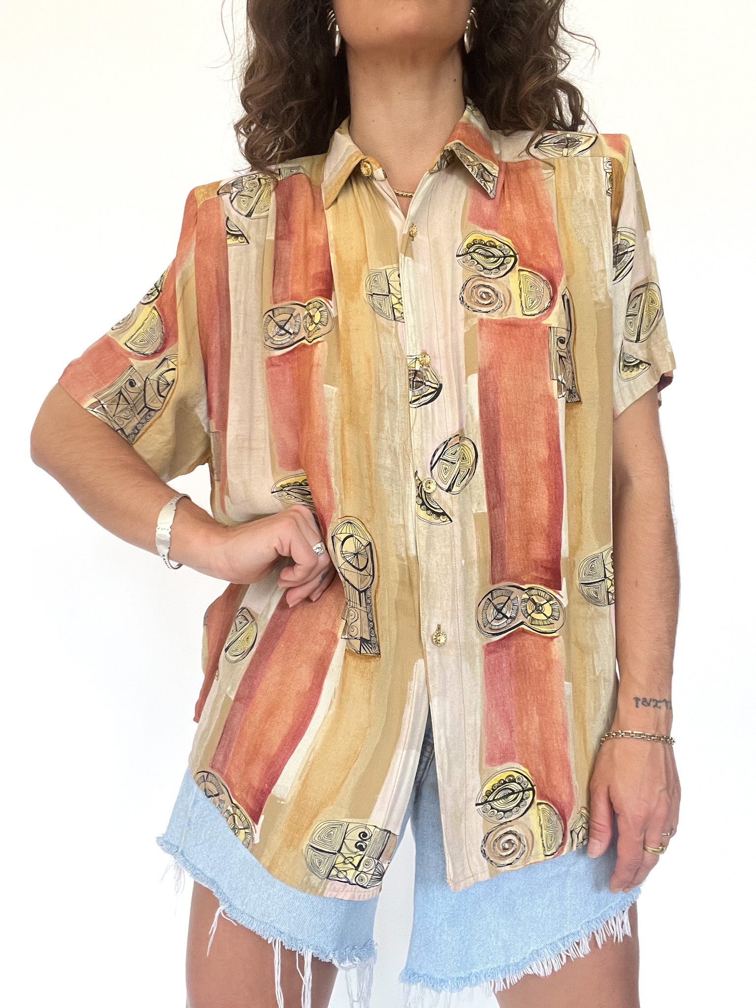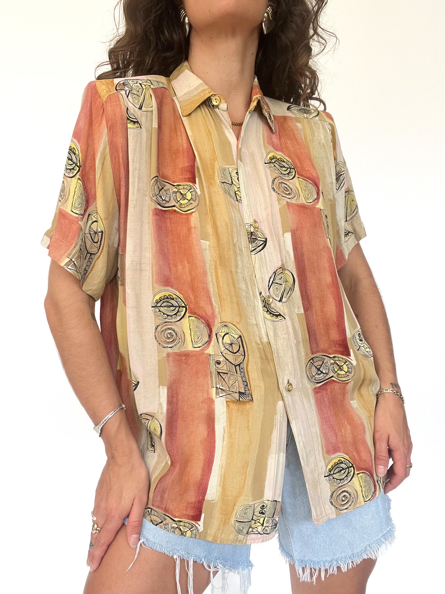 Vintage 90’s Rust & Ocher Abstract Print Shirt