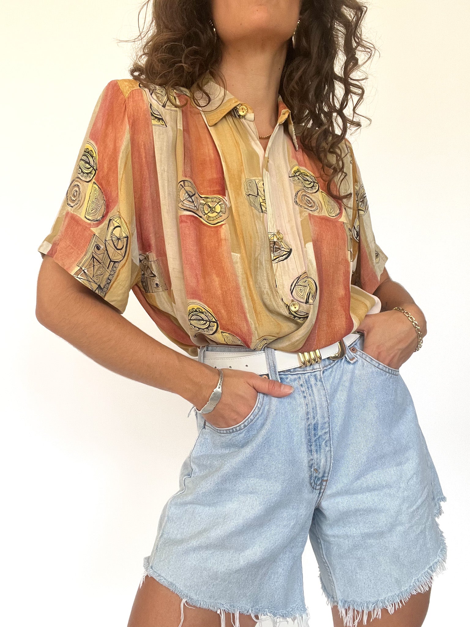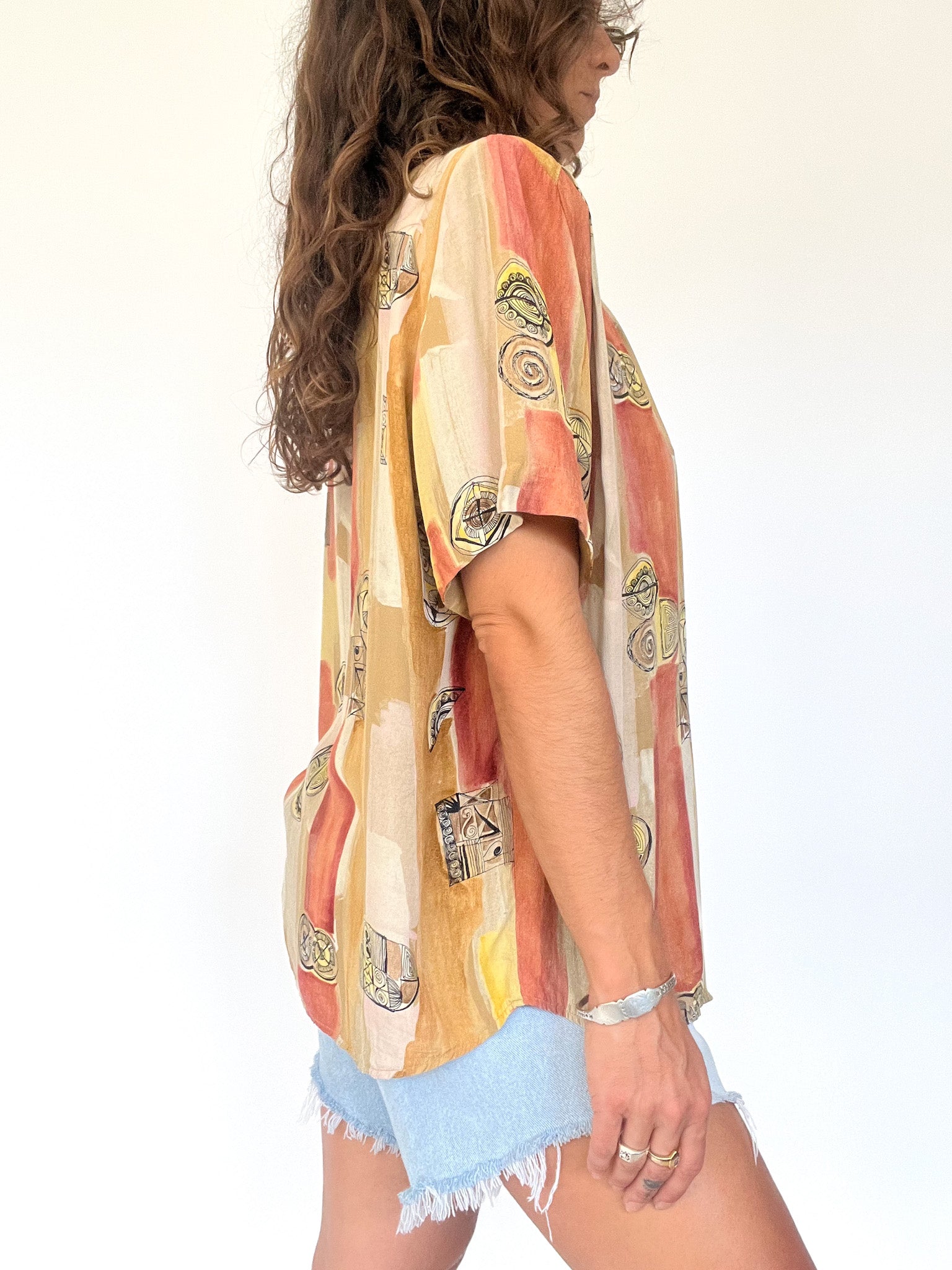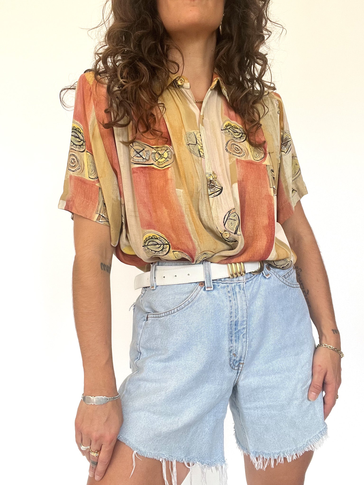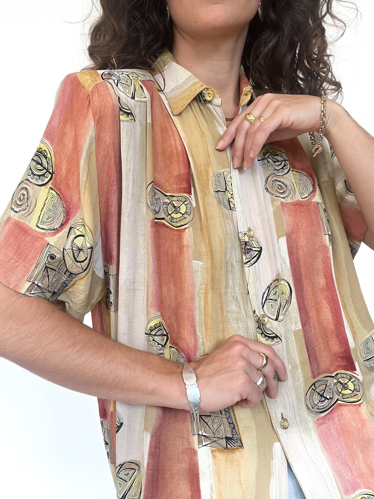 Vintage 90’s Rust & Ocher Abstract Print Shirt