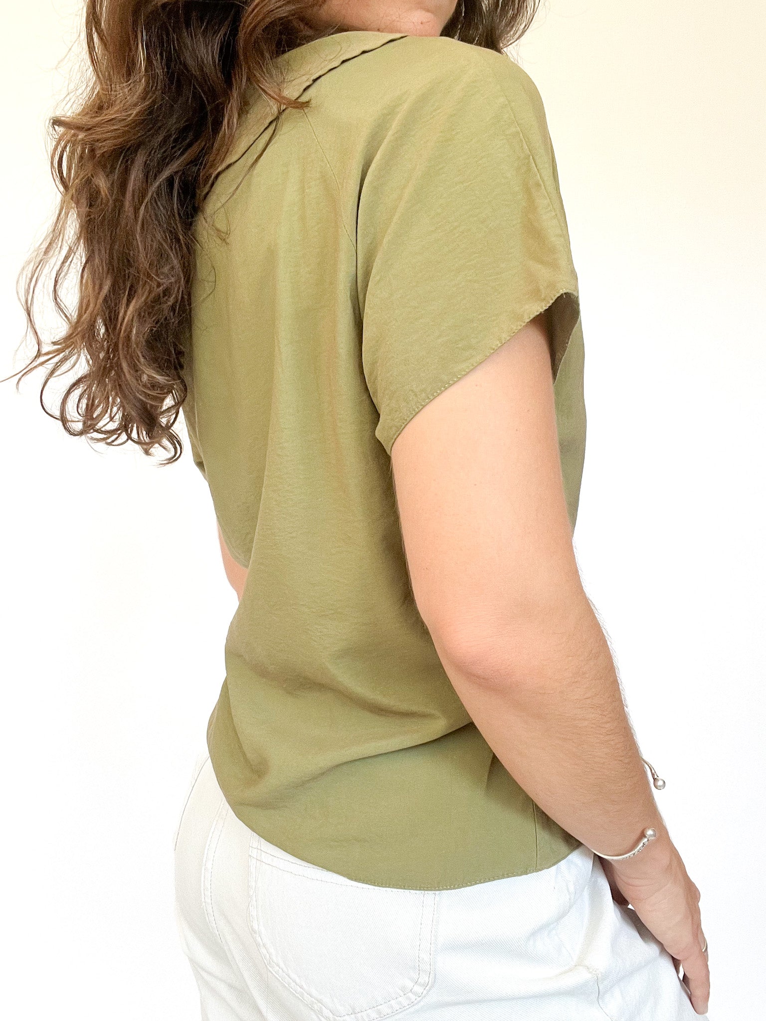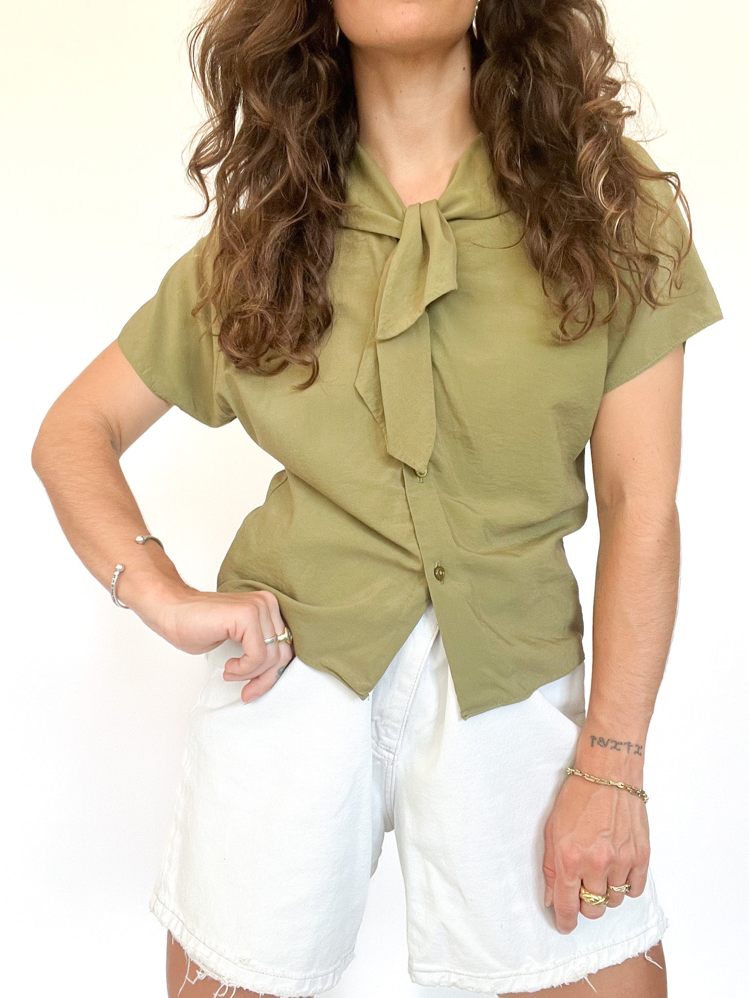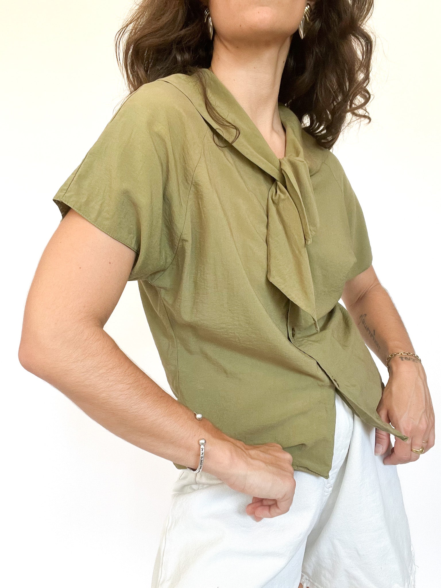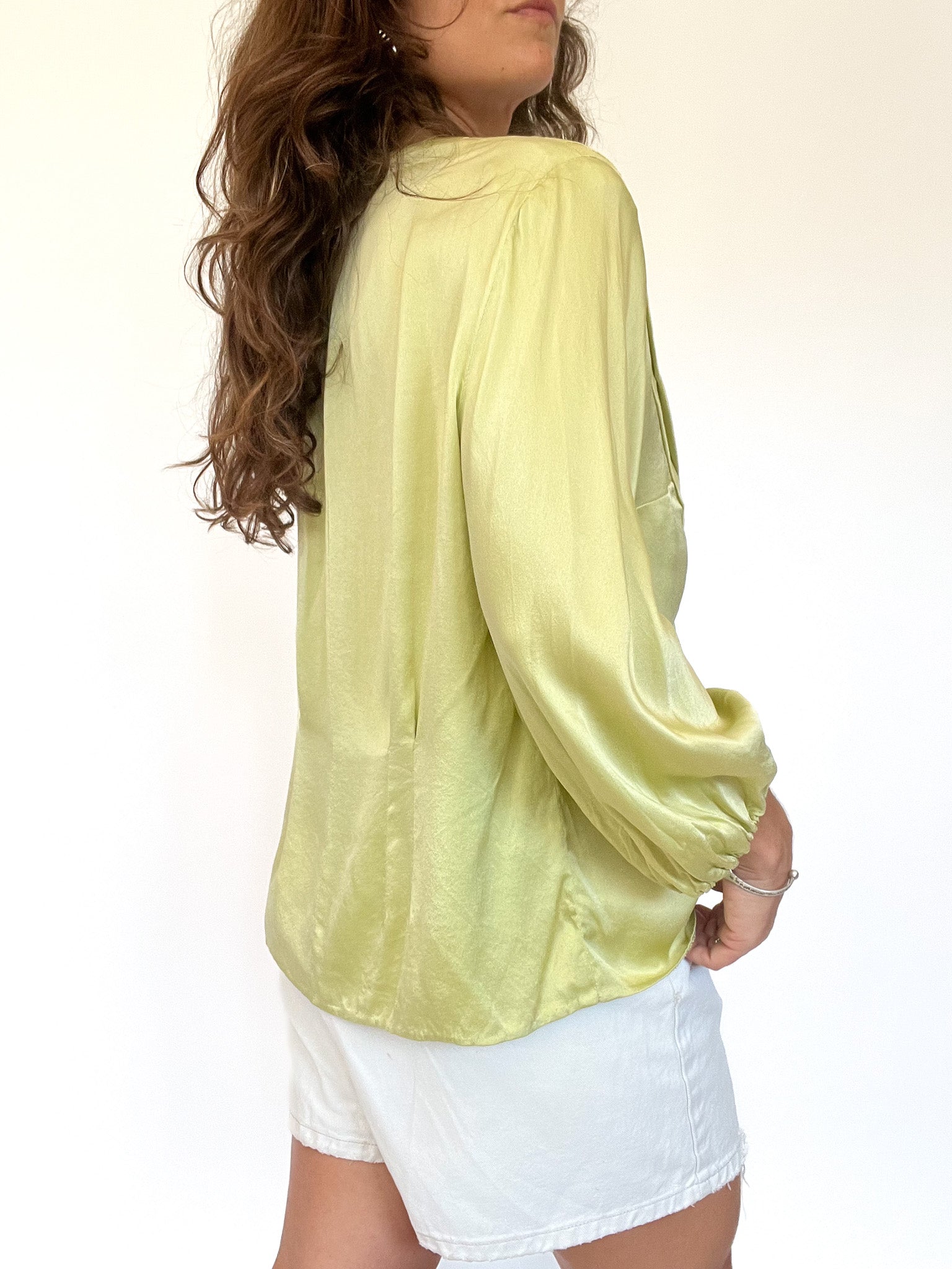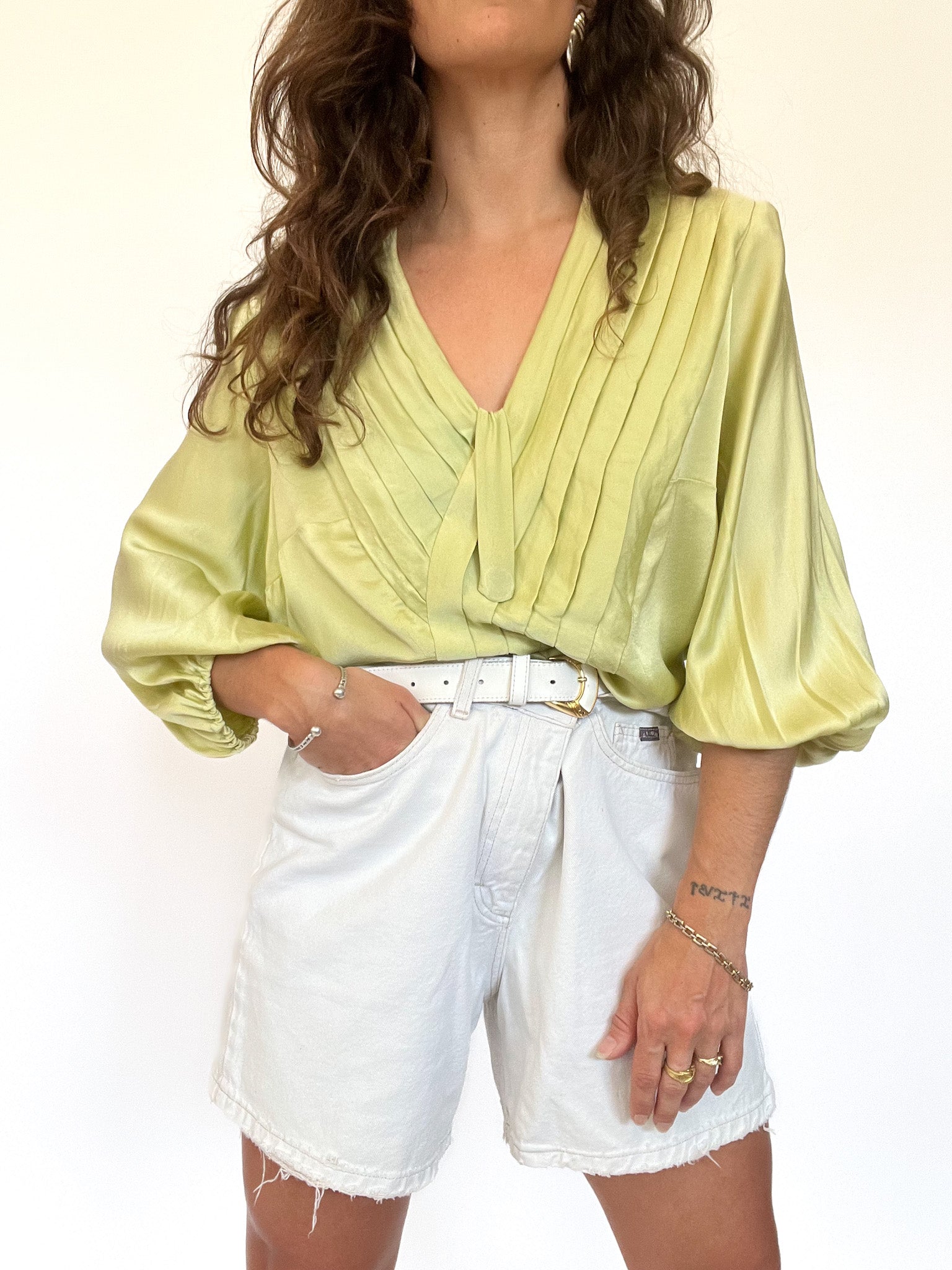Vintage 80’s Lime Satin Blouse with Pleated Detail