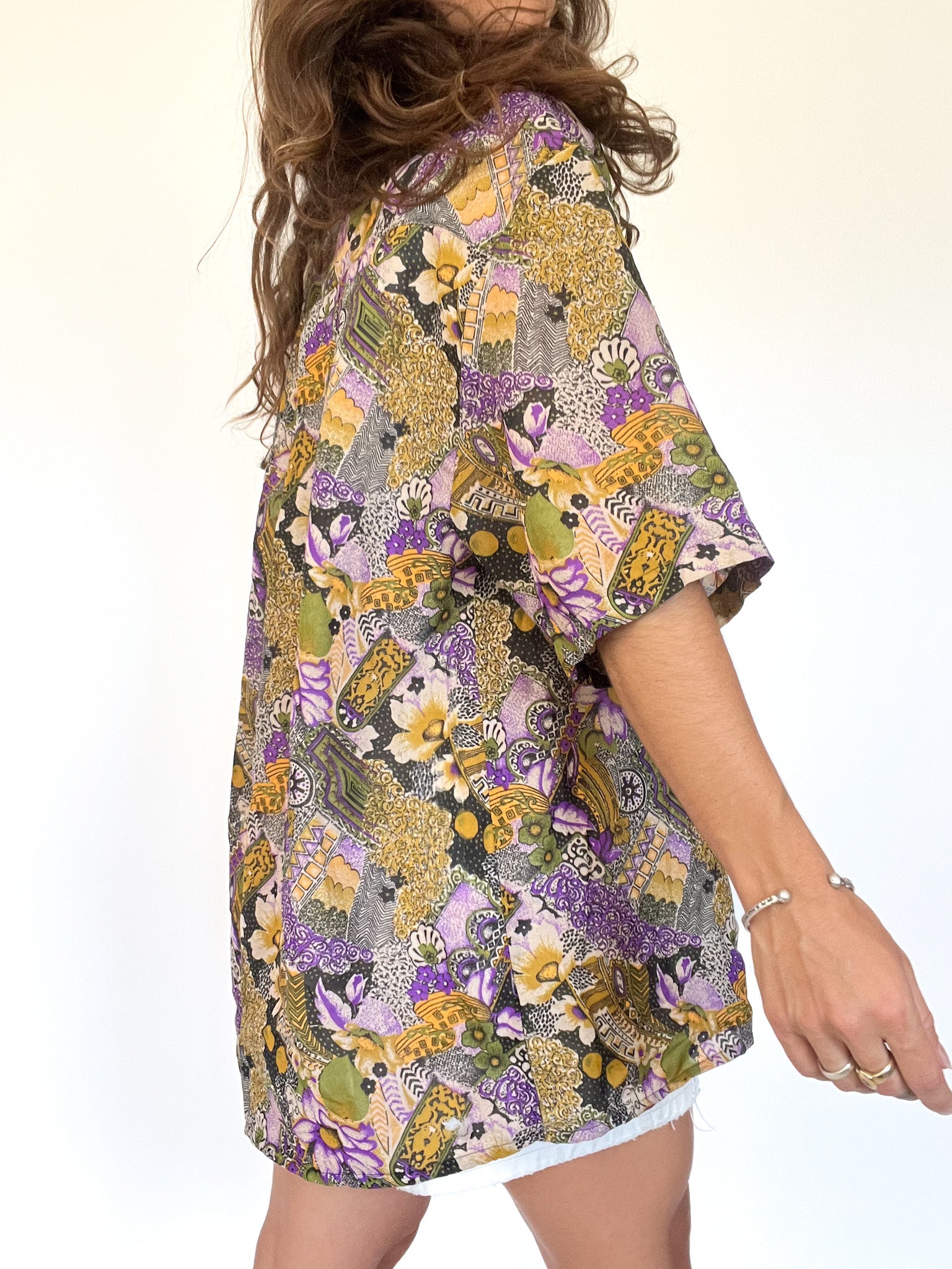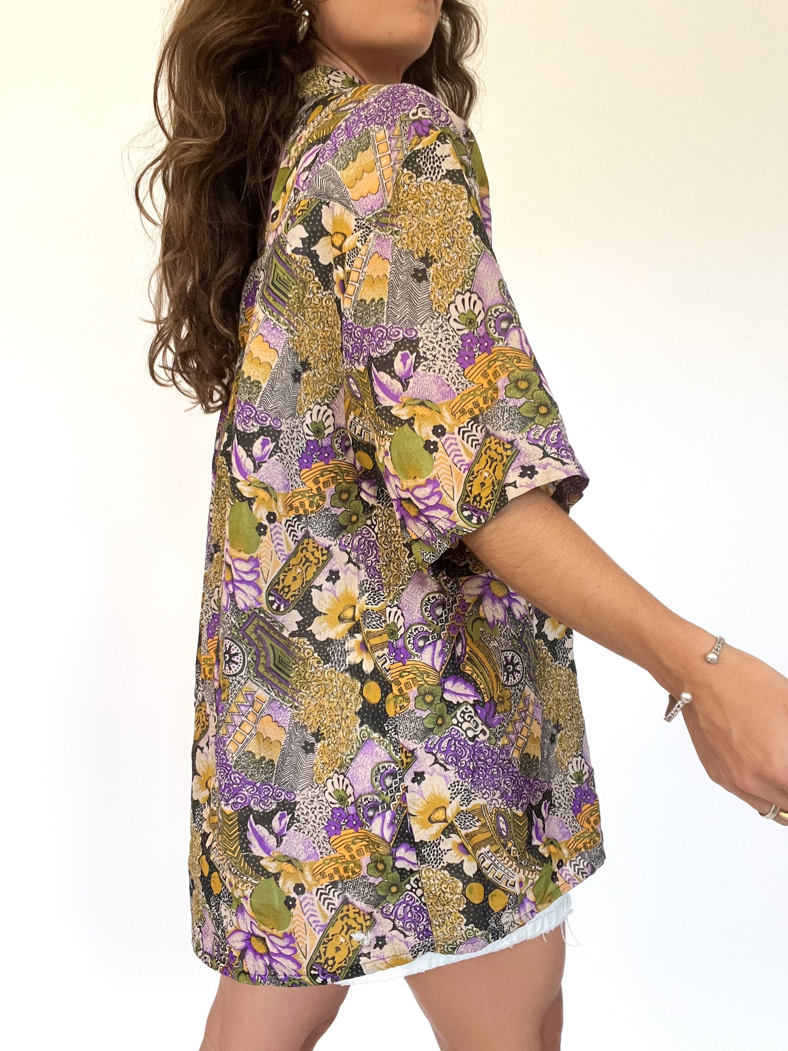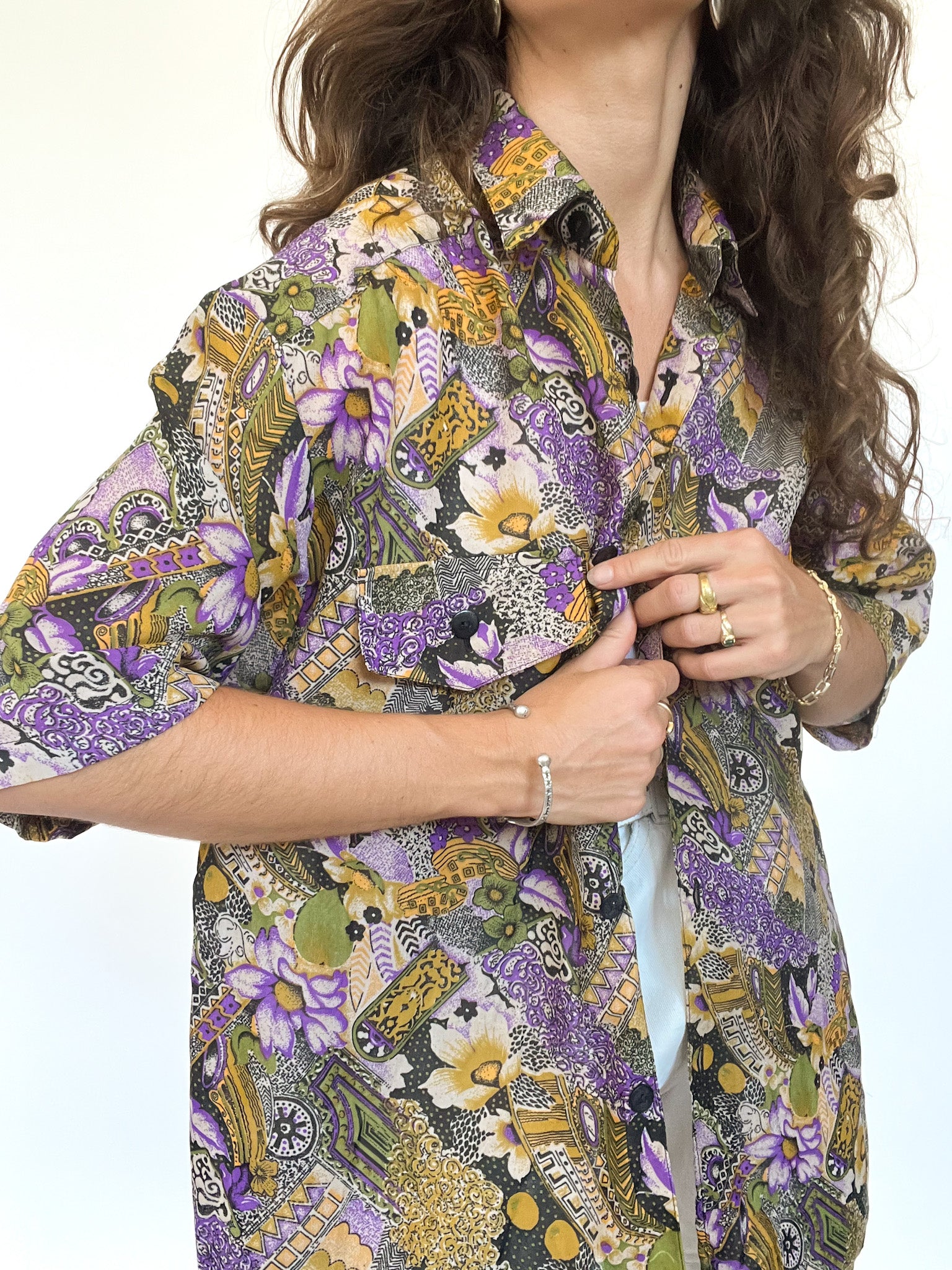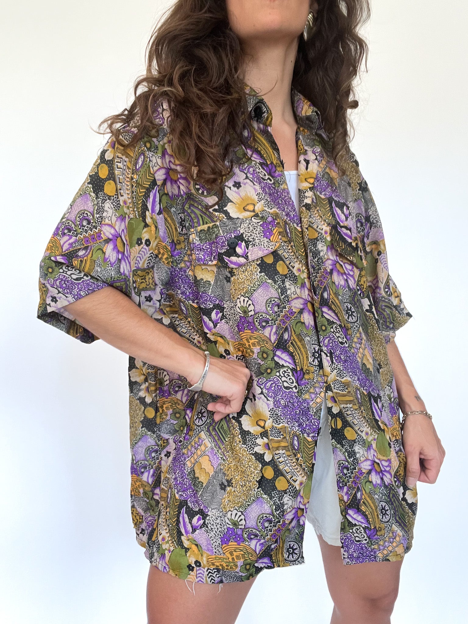Vintage 90’s Purple & Gold Floral Print Shirt